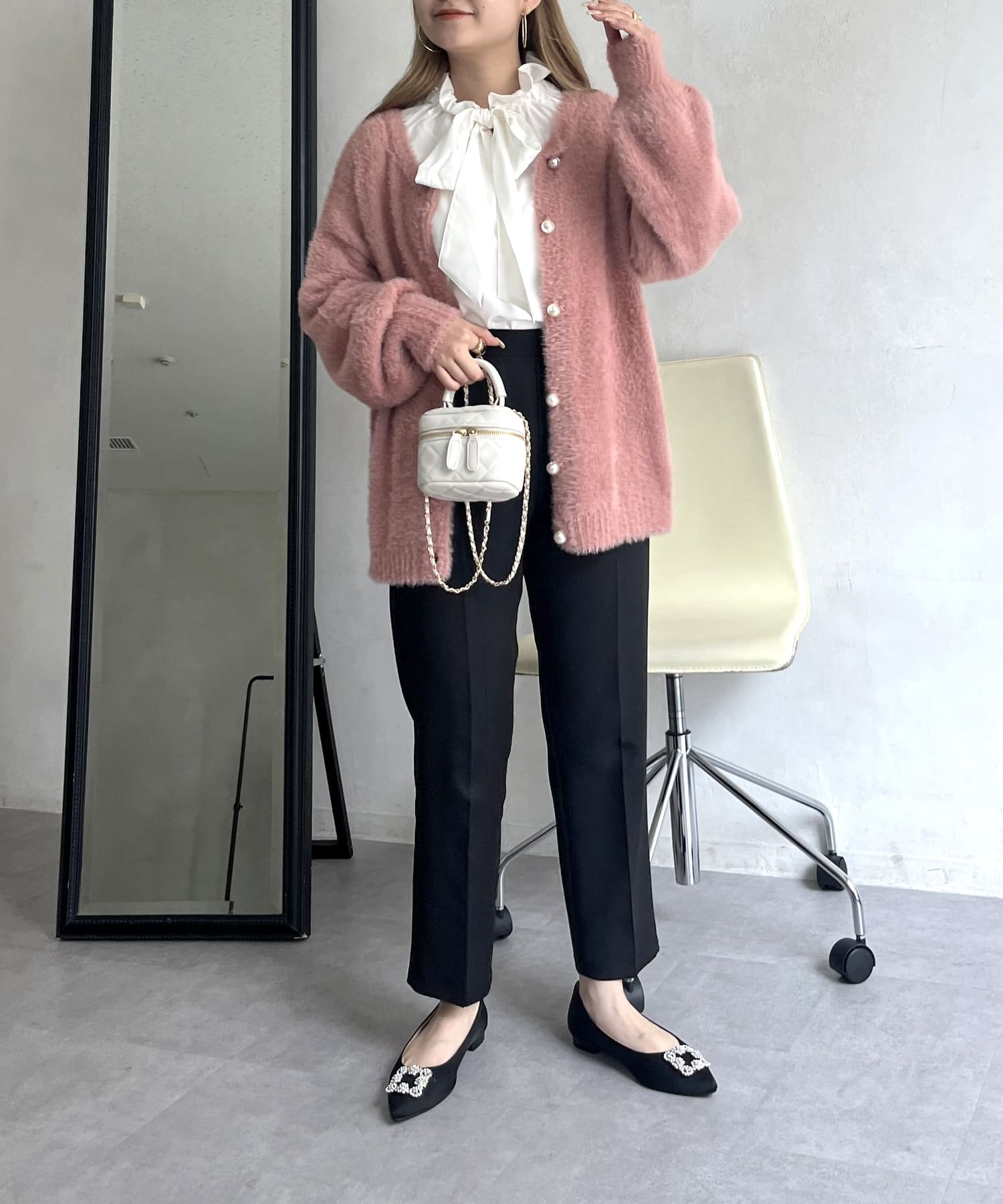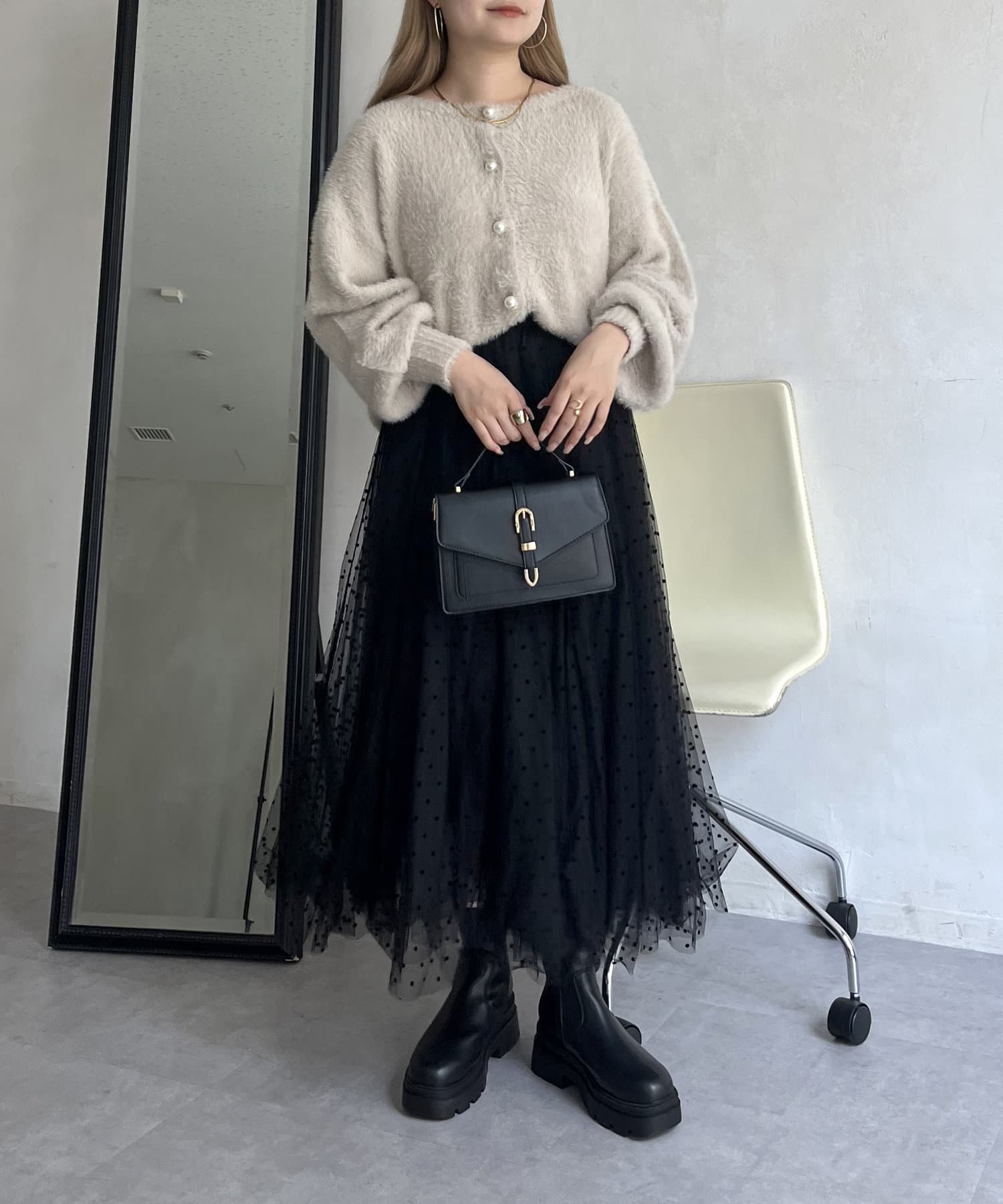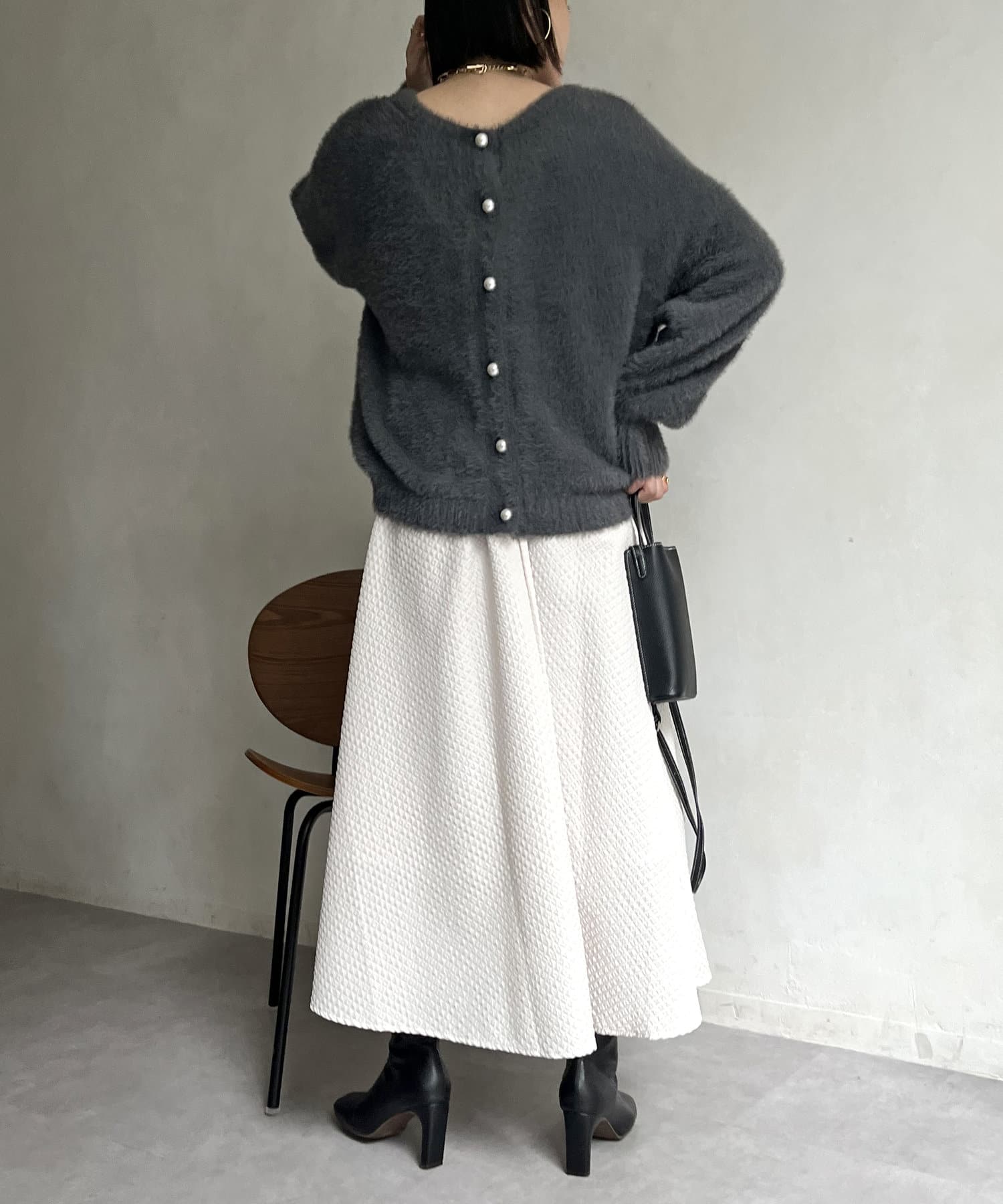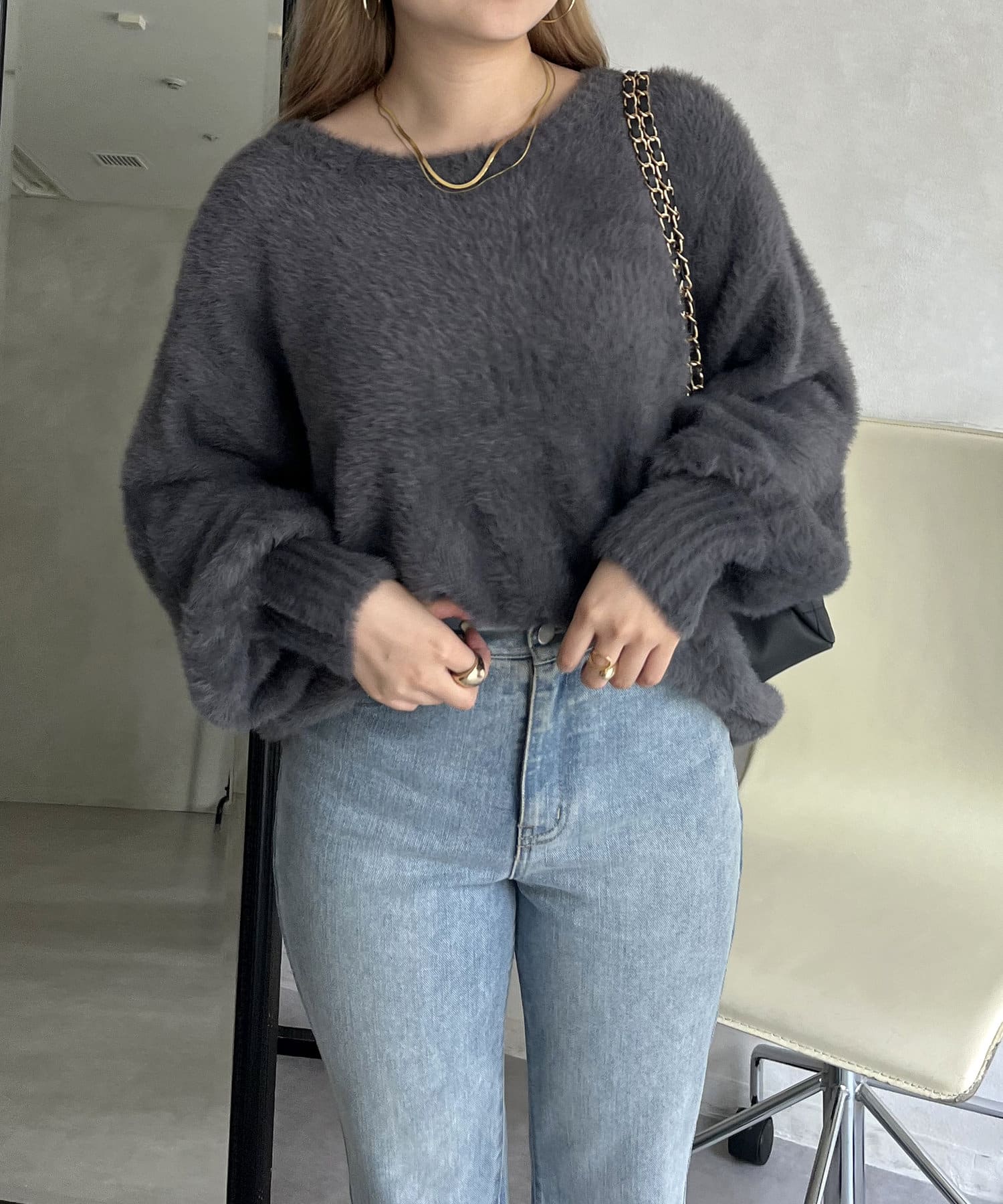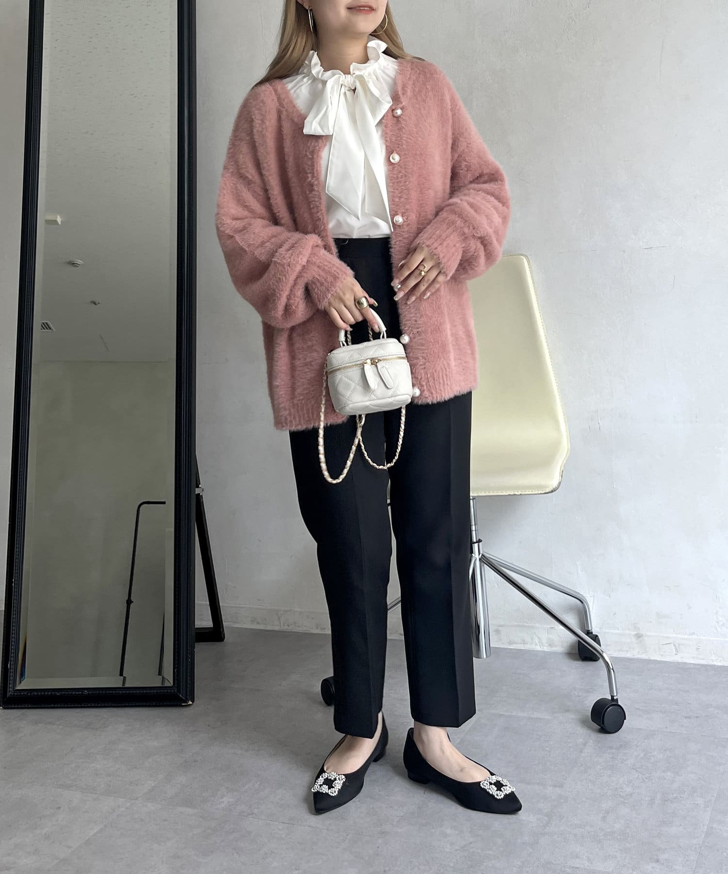 パールボタン2WAYシャギーニットカーデ