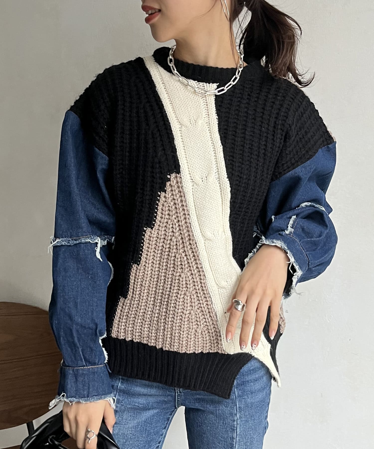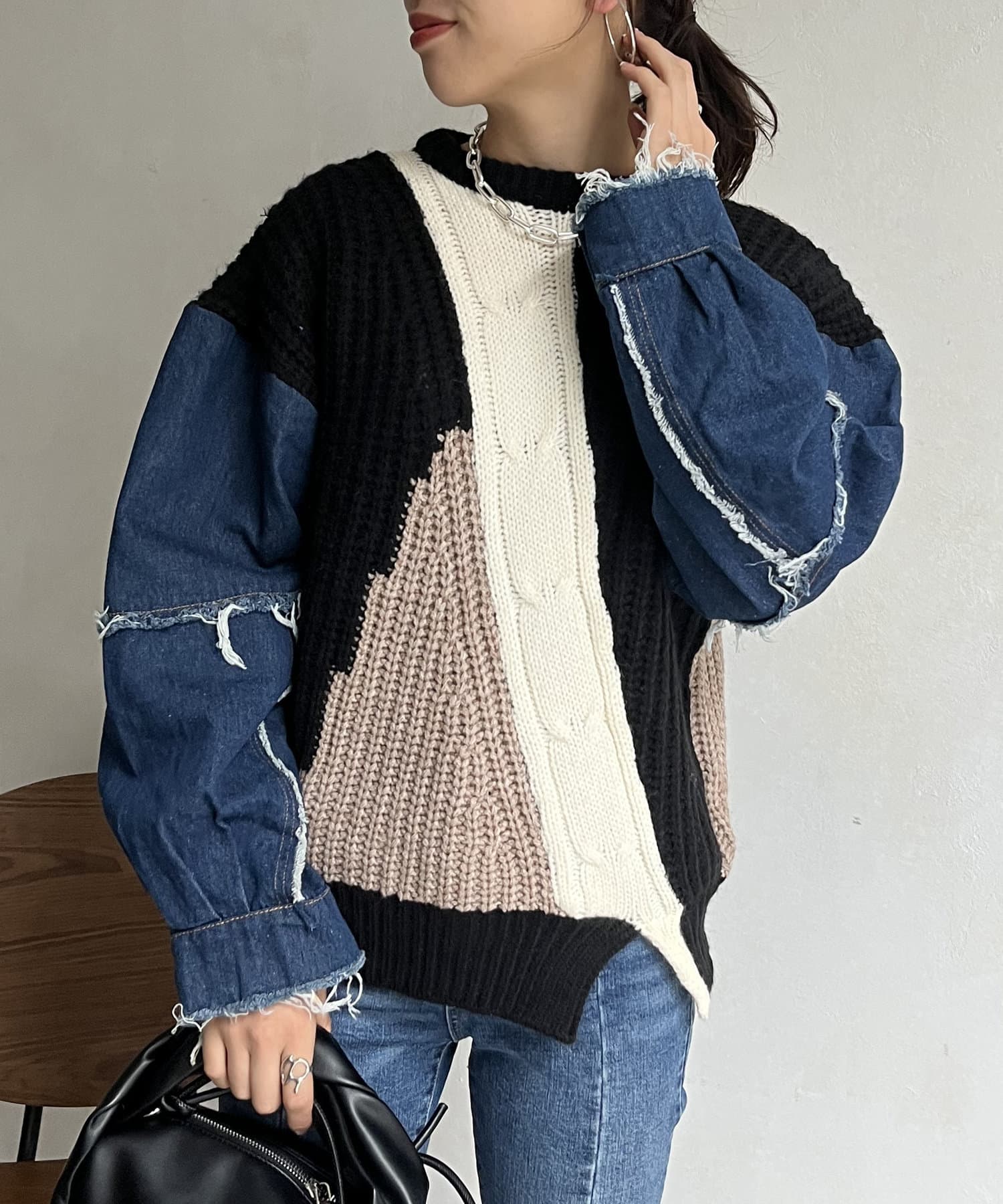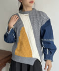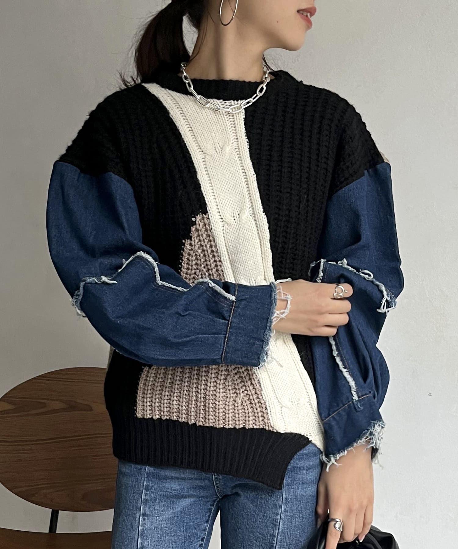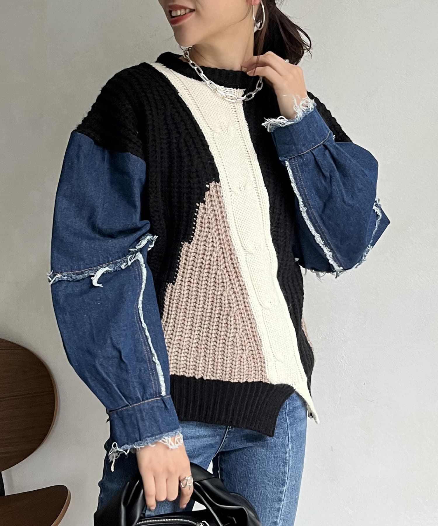 TOP > prose verse > レディース > トップス > ニット/セーター > 袖デニム切替配色ニット