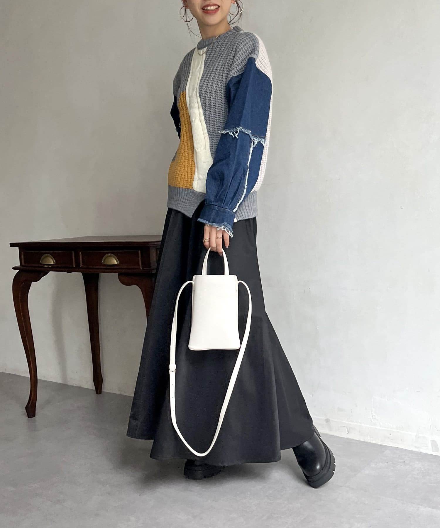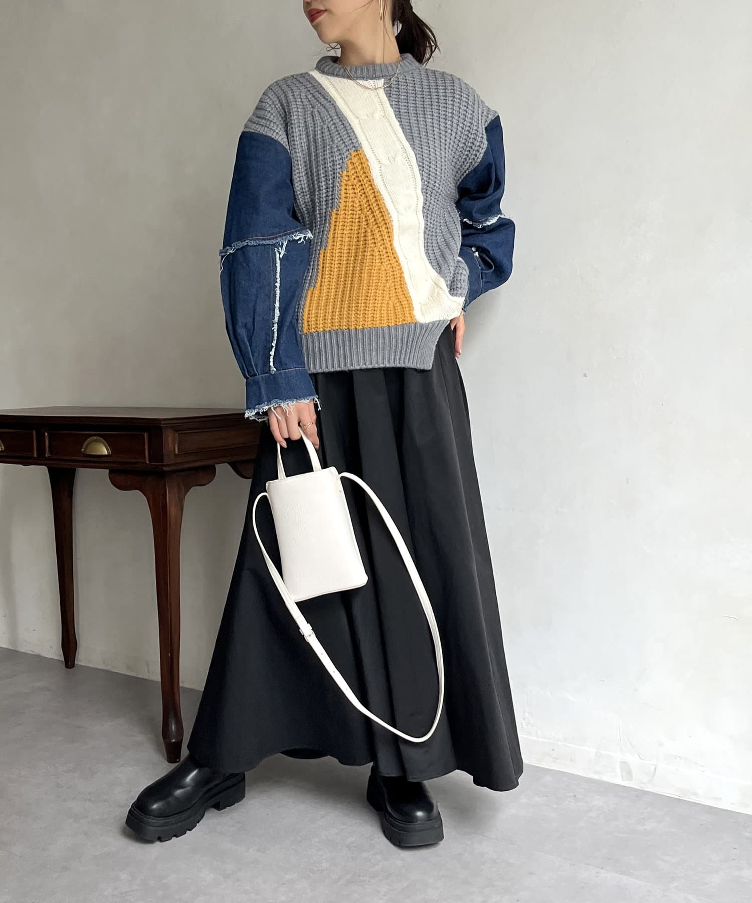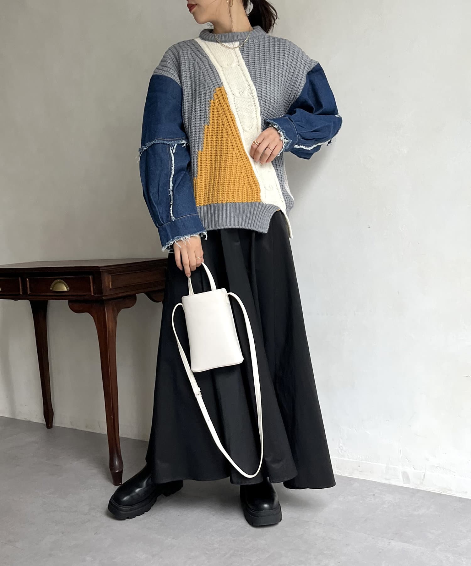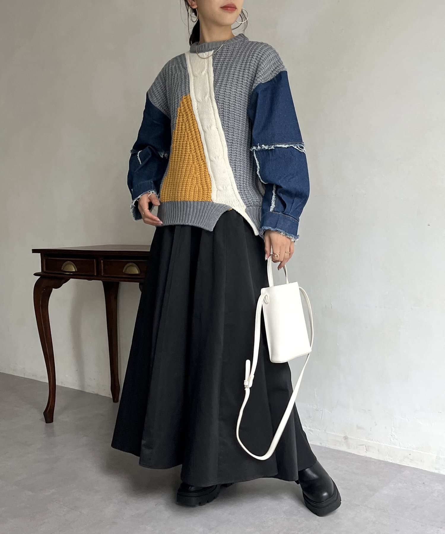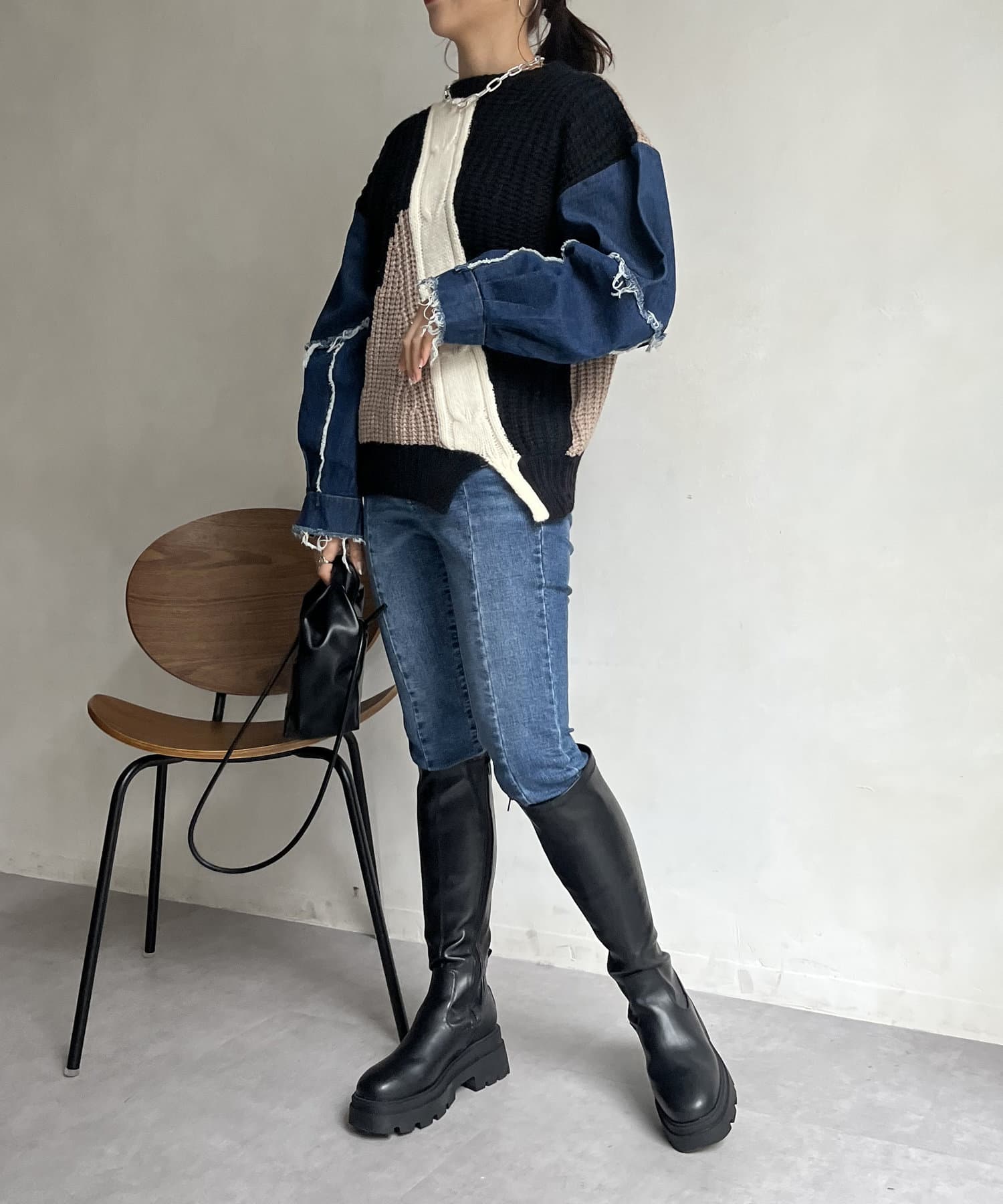TOP > prose verse > レディース > トップス > ニット/セーター > 袖デニム切替配色ニット