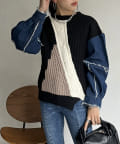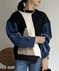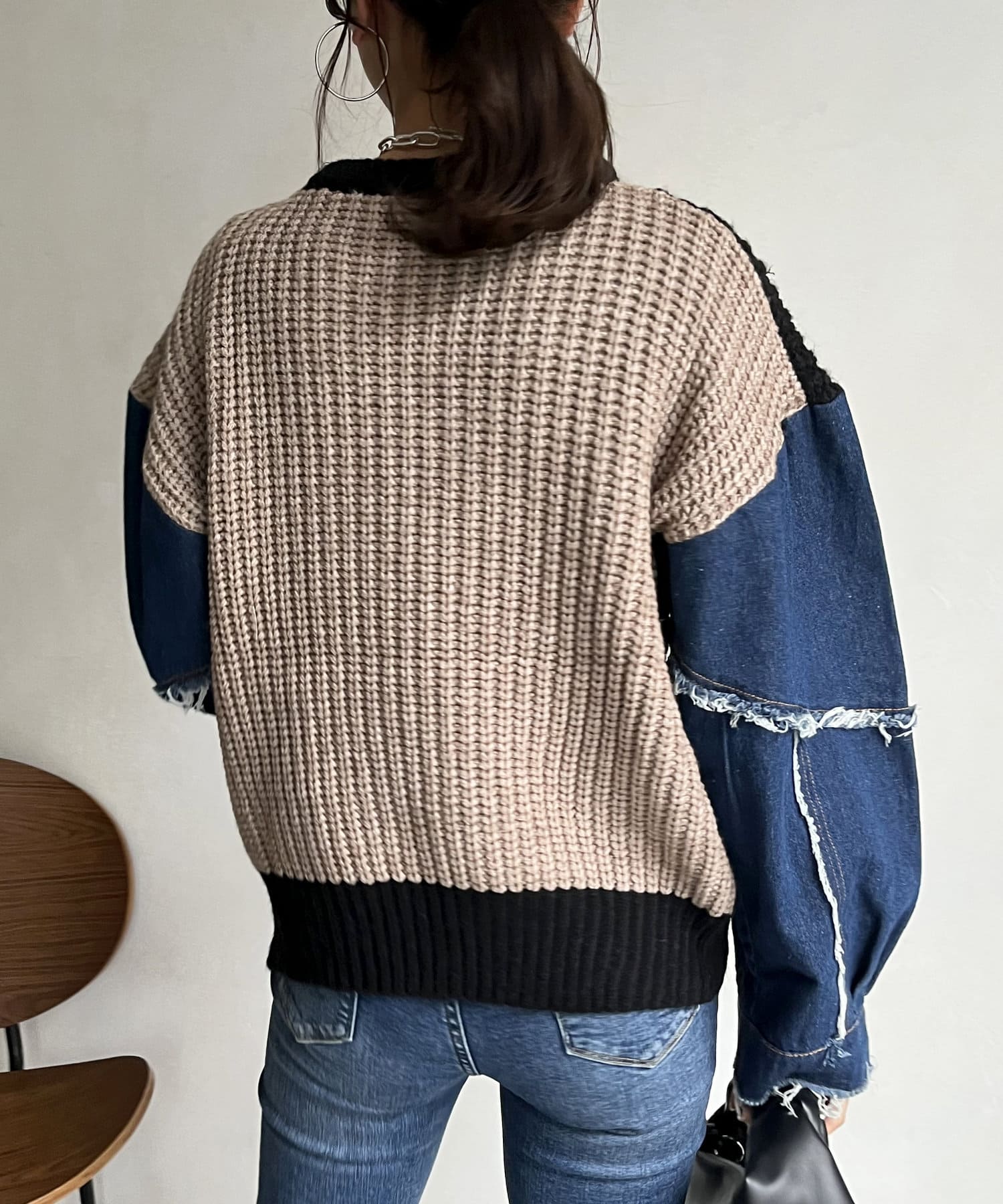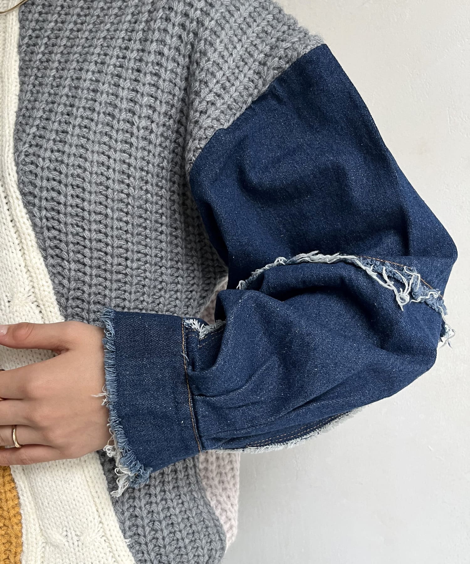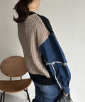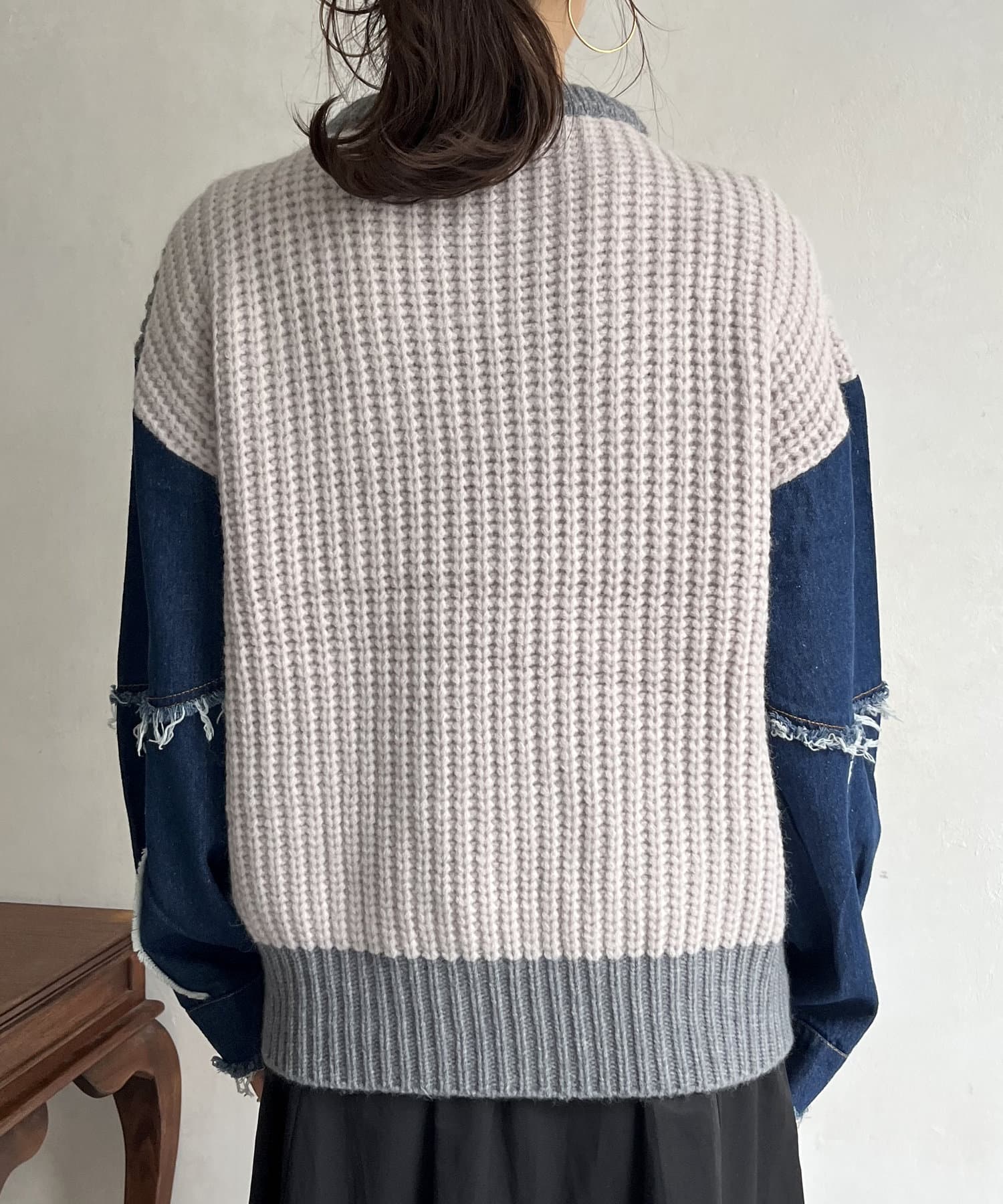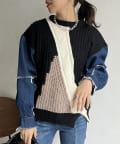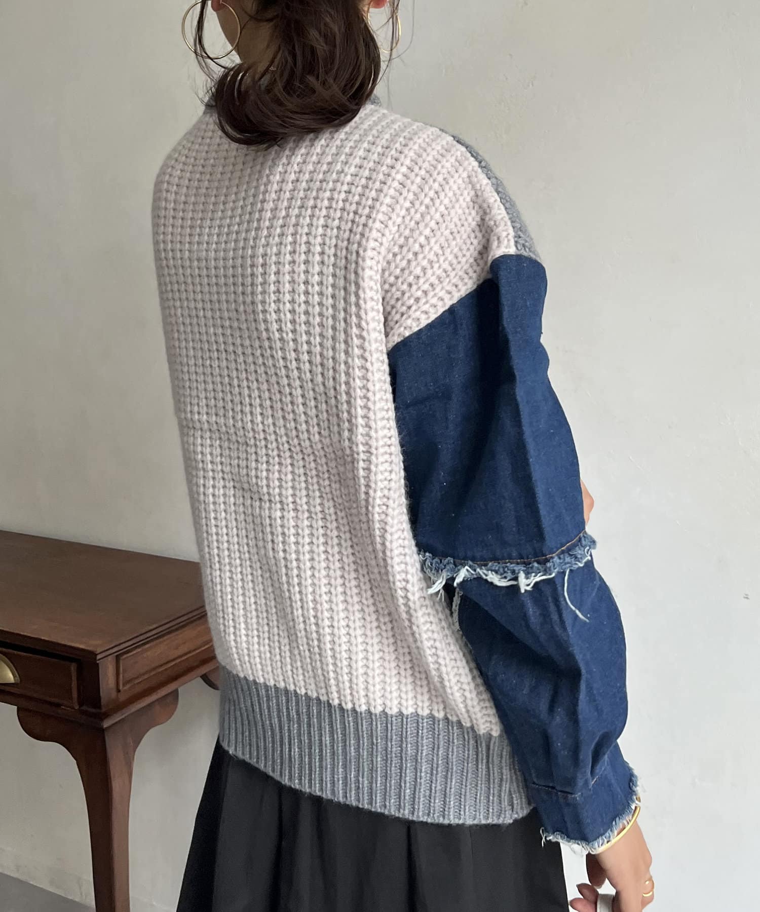 • prose verse(プロズヴェール) 袖デニム切替配色ニット