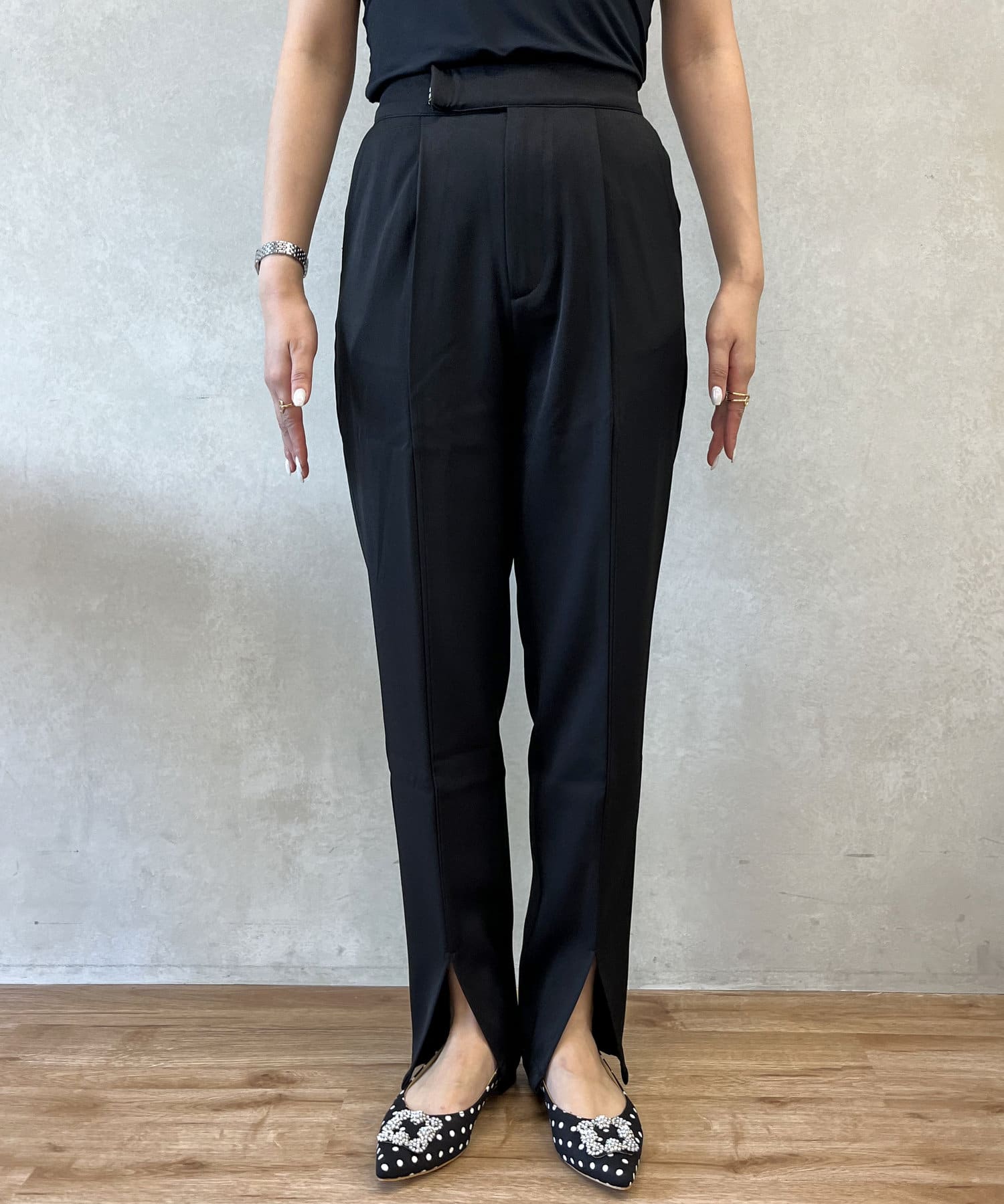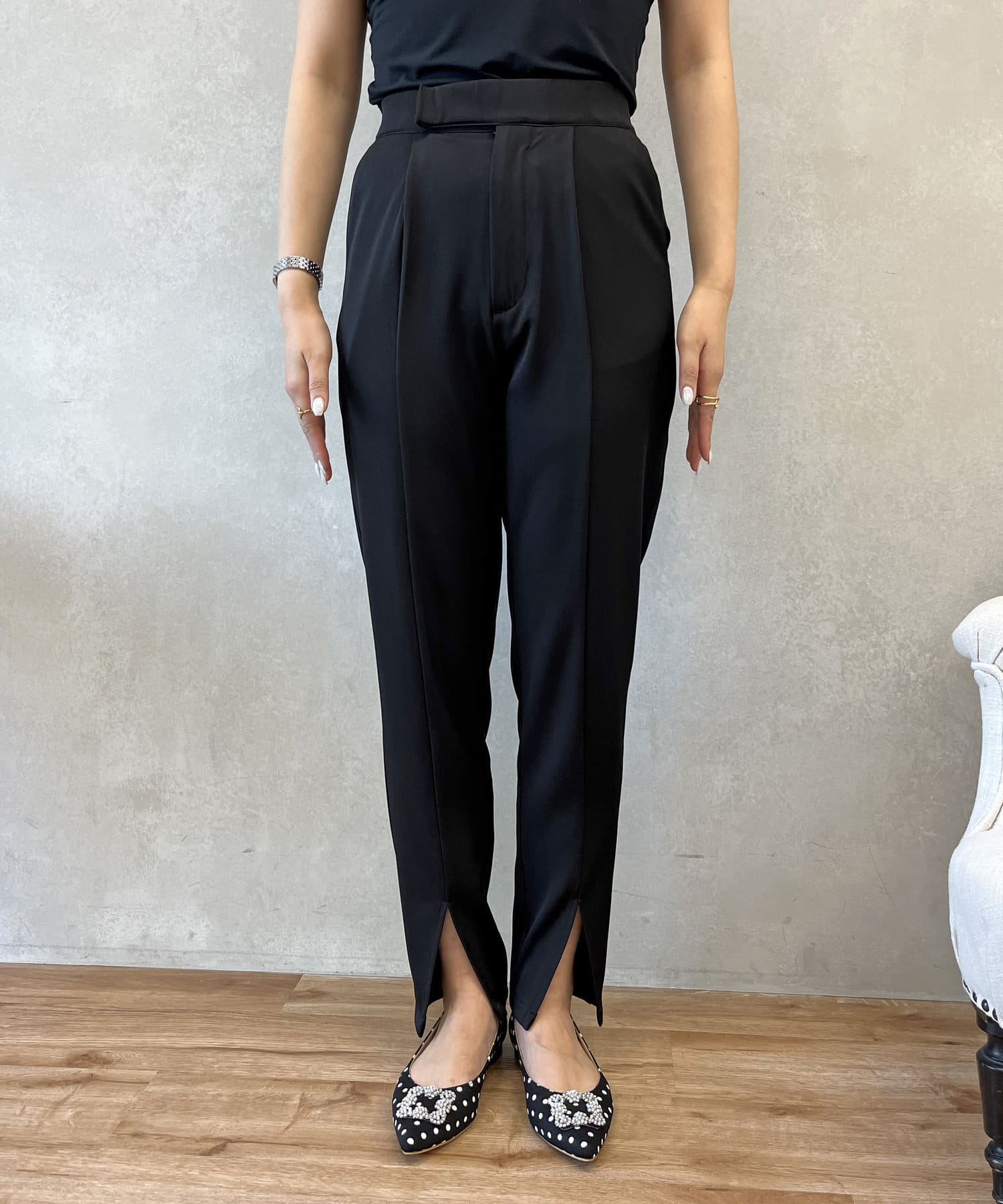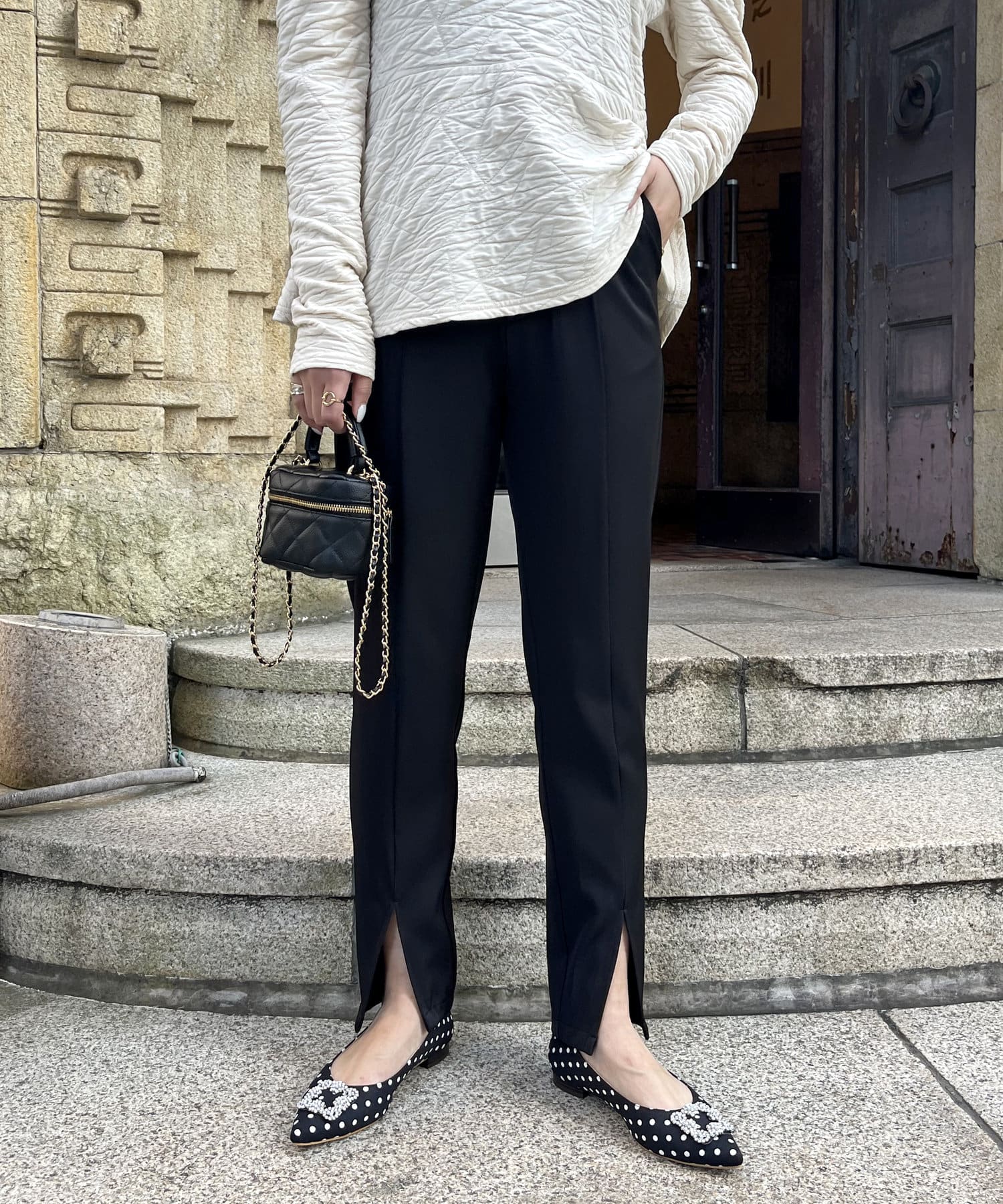 センターラインが脚長に見せてくれるハイウエストスリットペンシルパンツ
