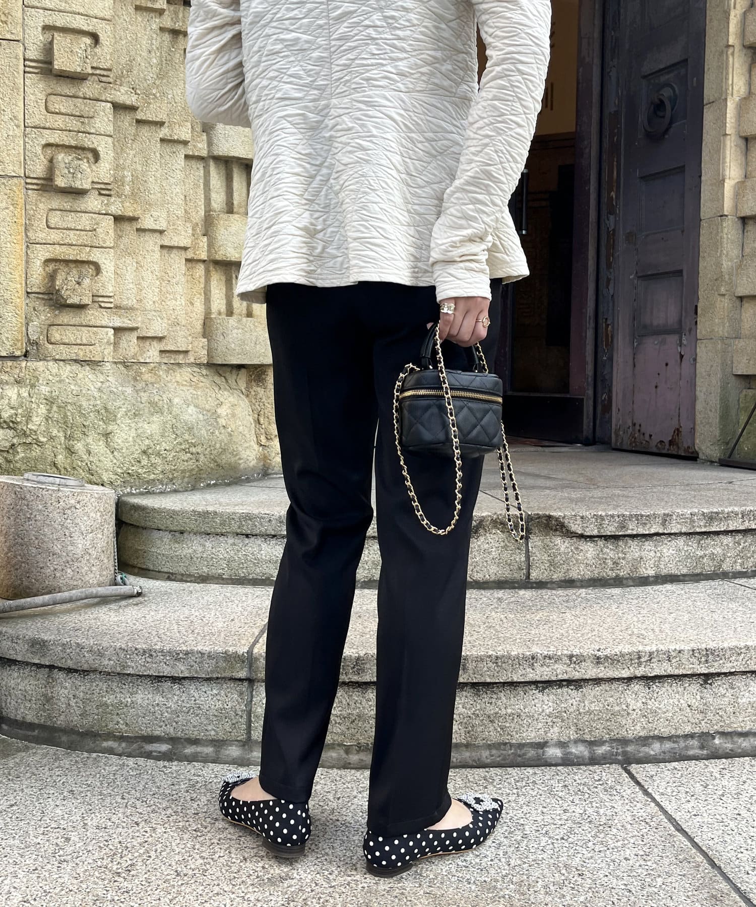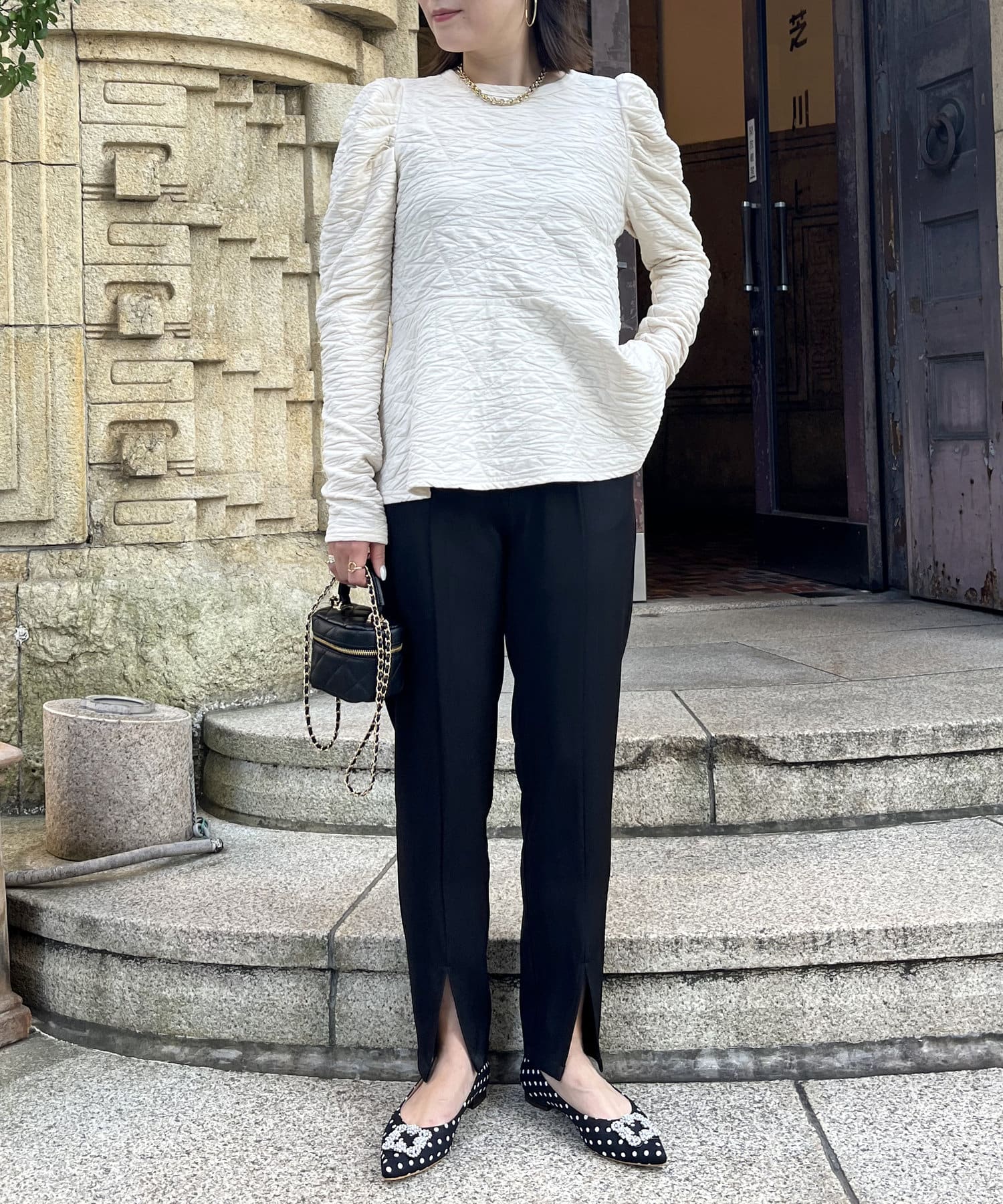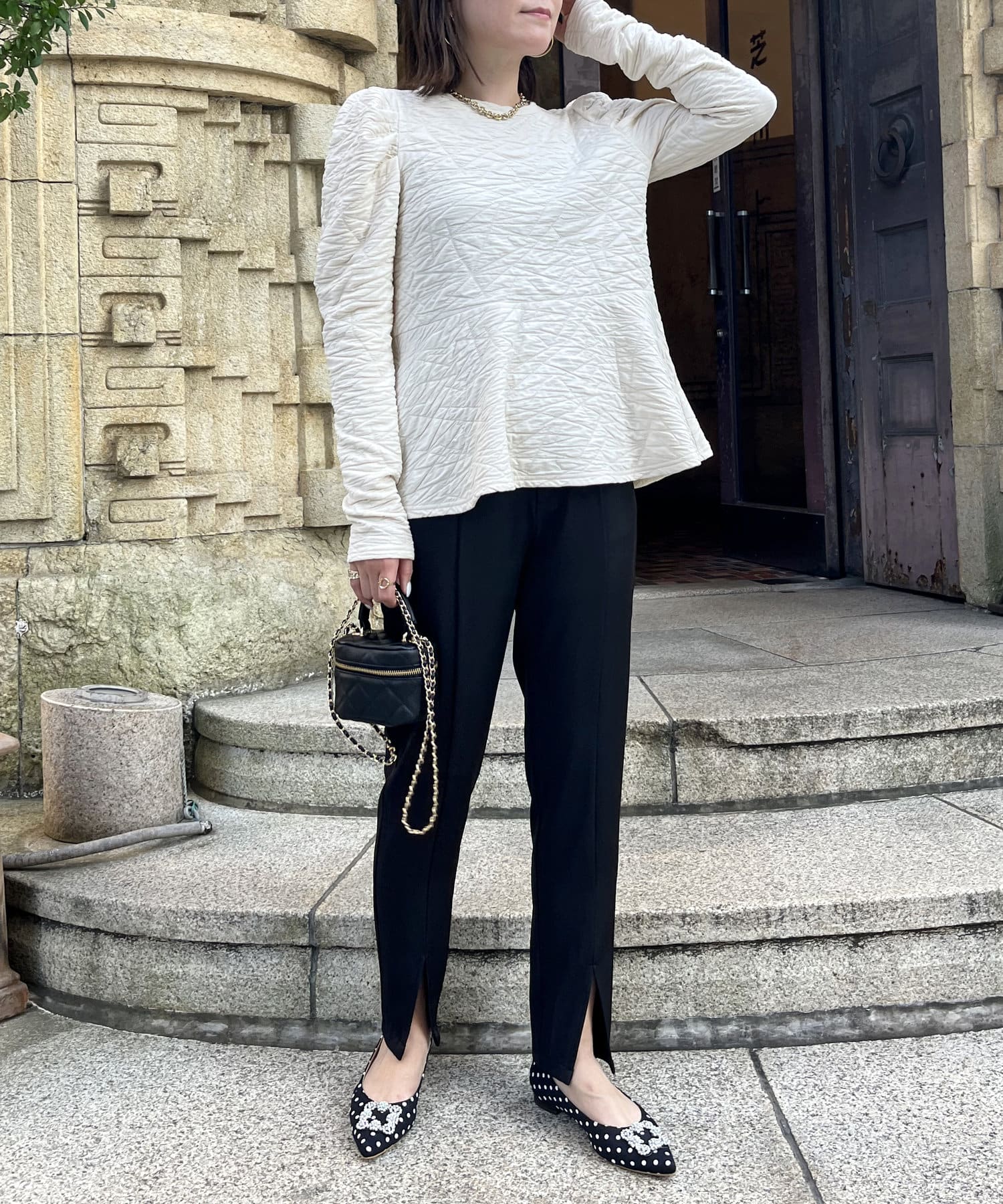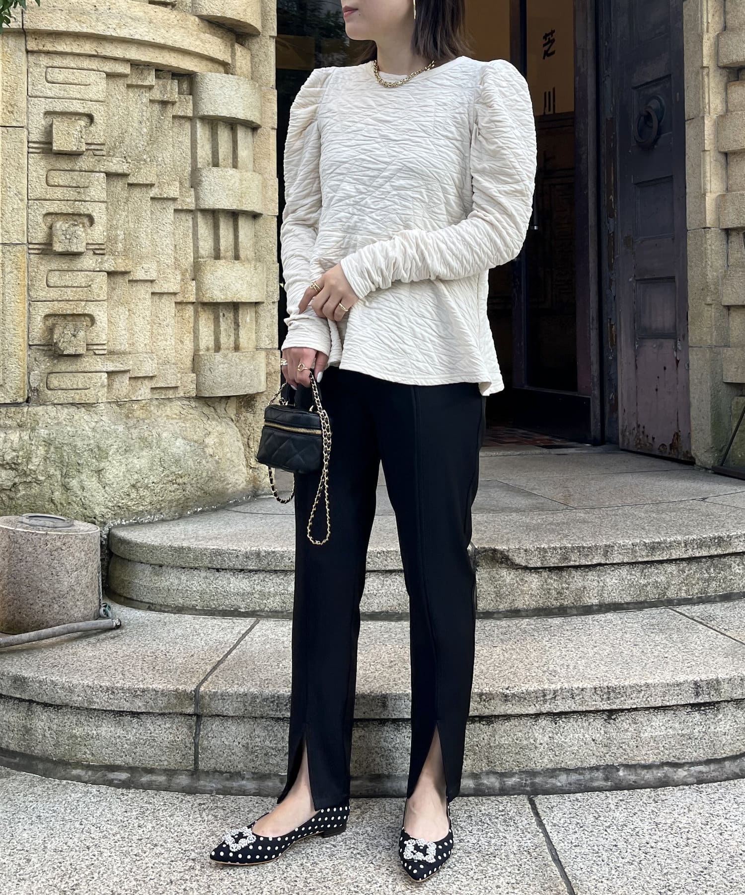センターラインが脚長に見せてくれるハイウエストスリットペンシルパンツ