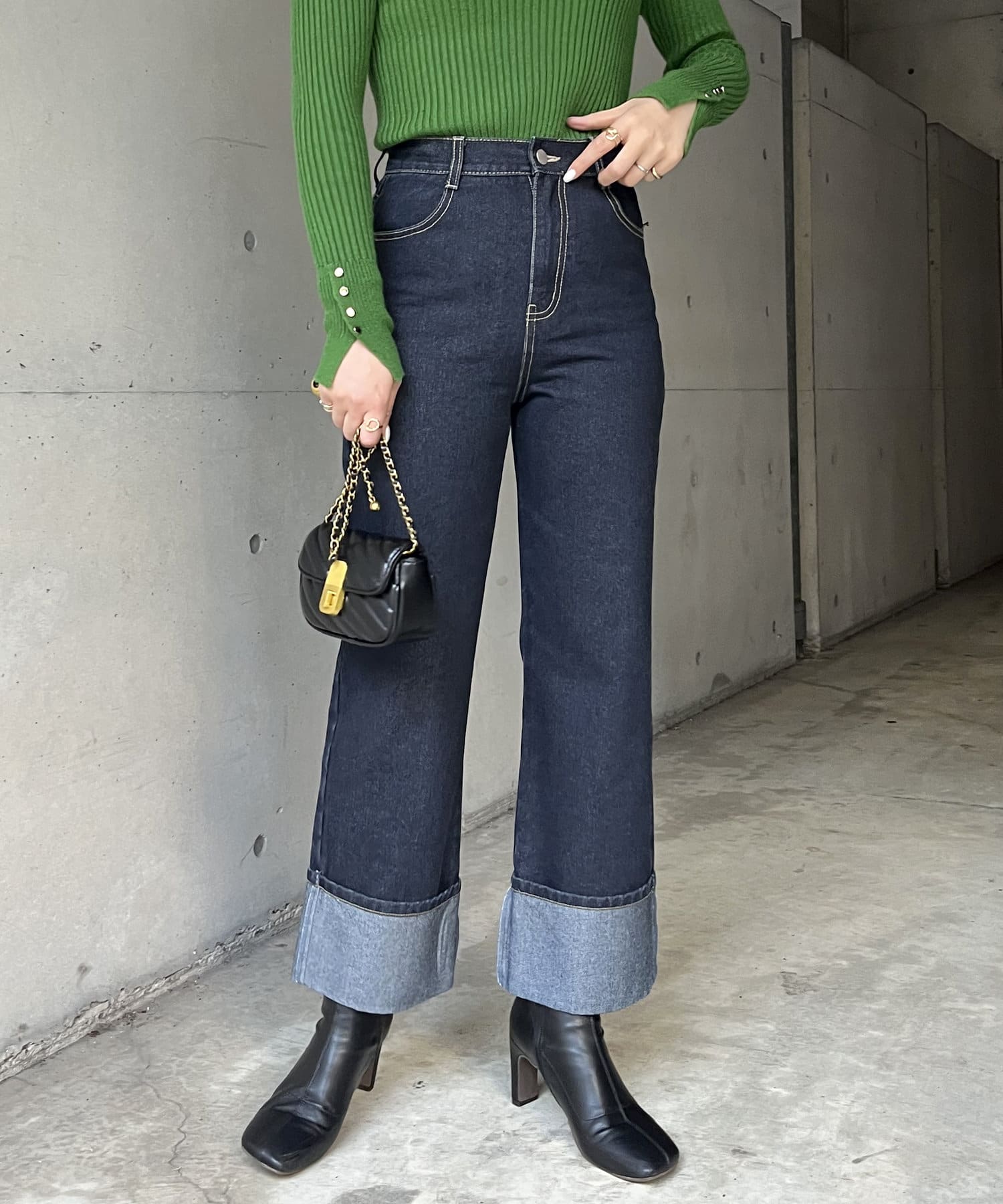 デニム / ロールアップ/フレア/ フレアパンツ /オールシーズン/