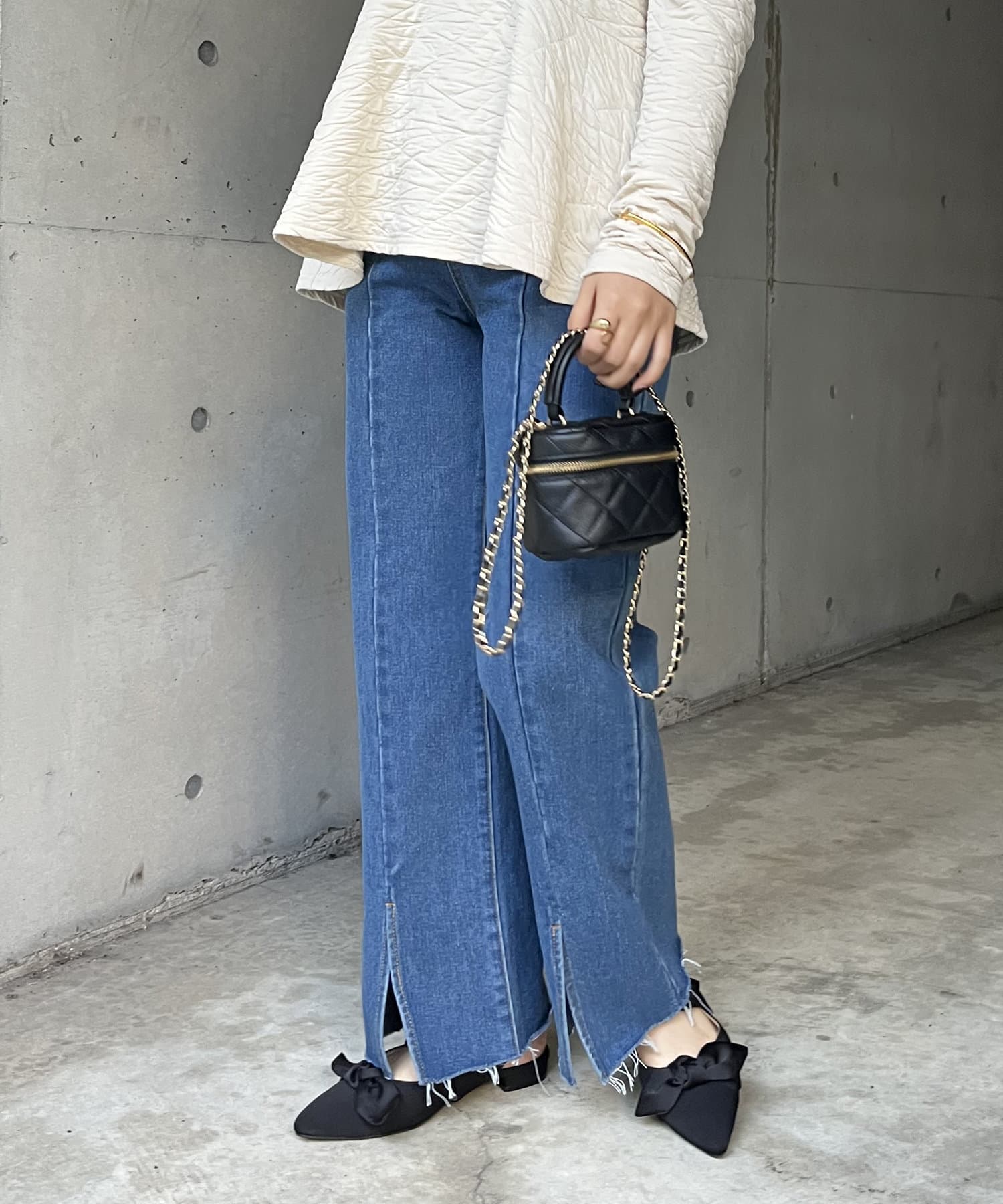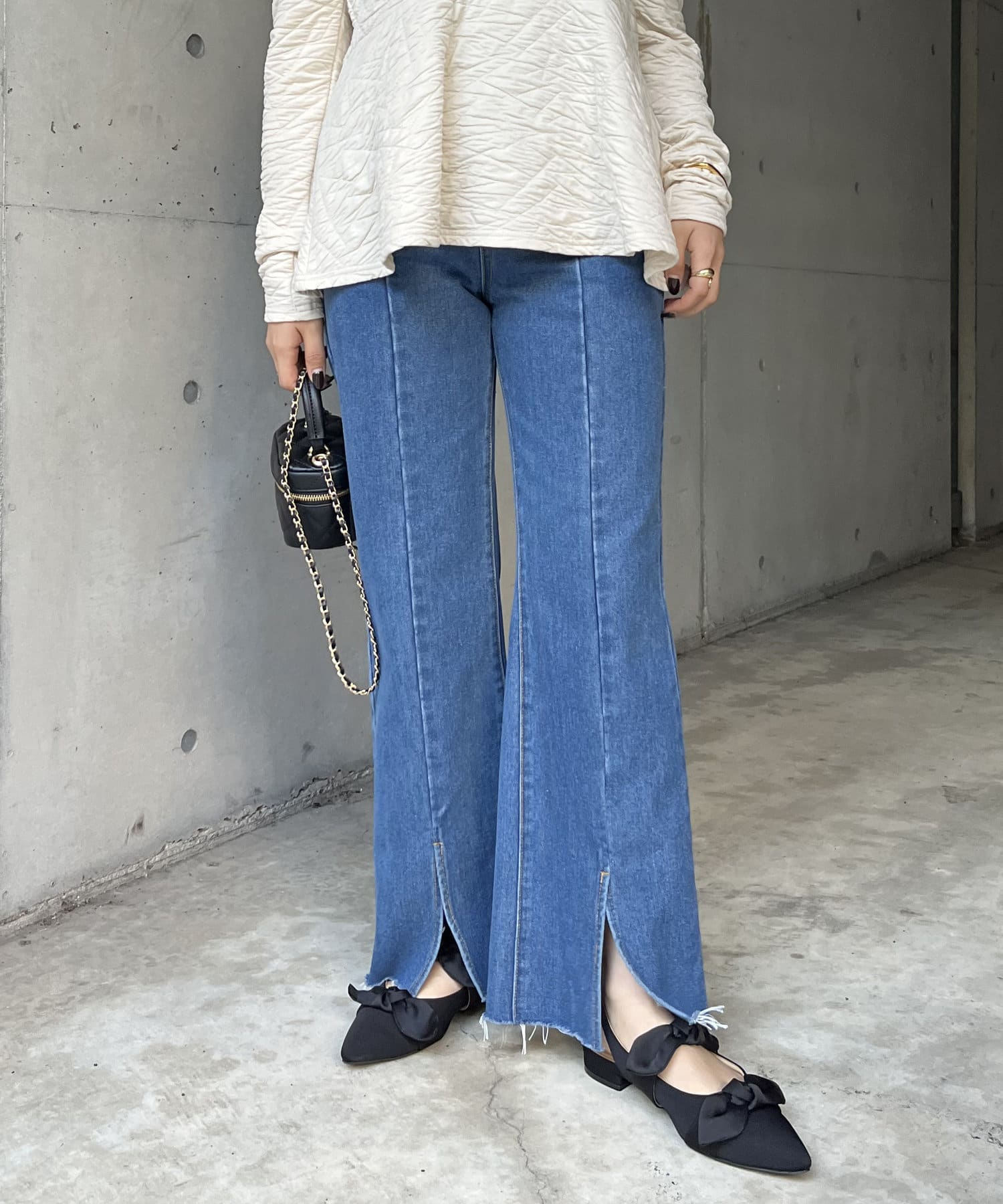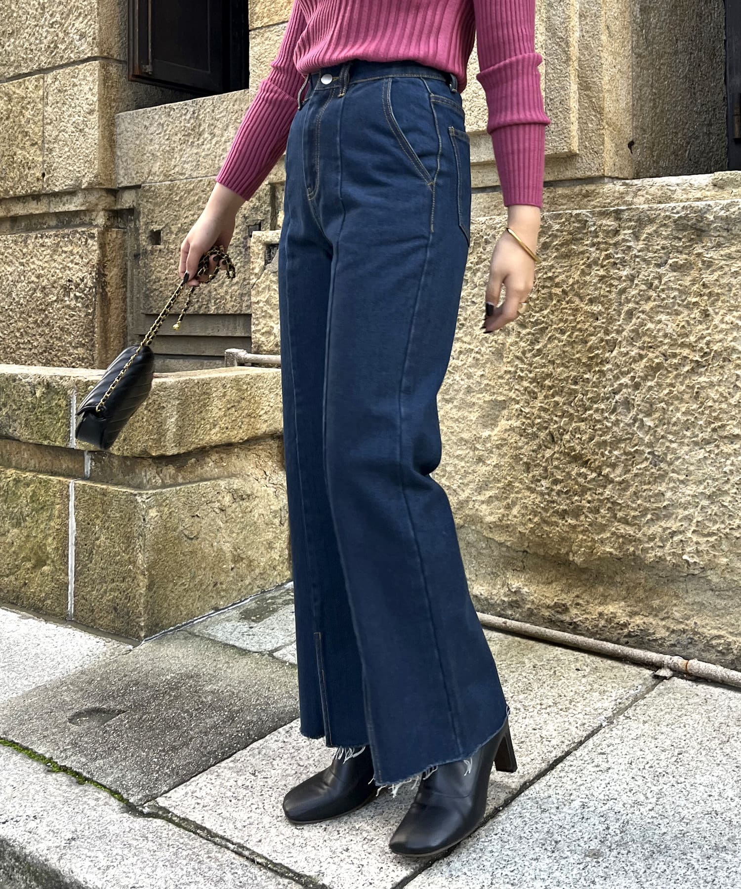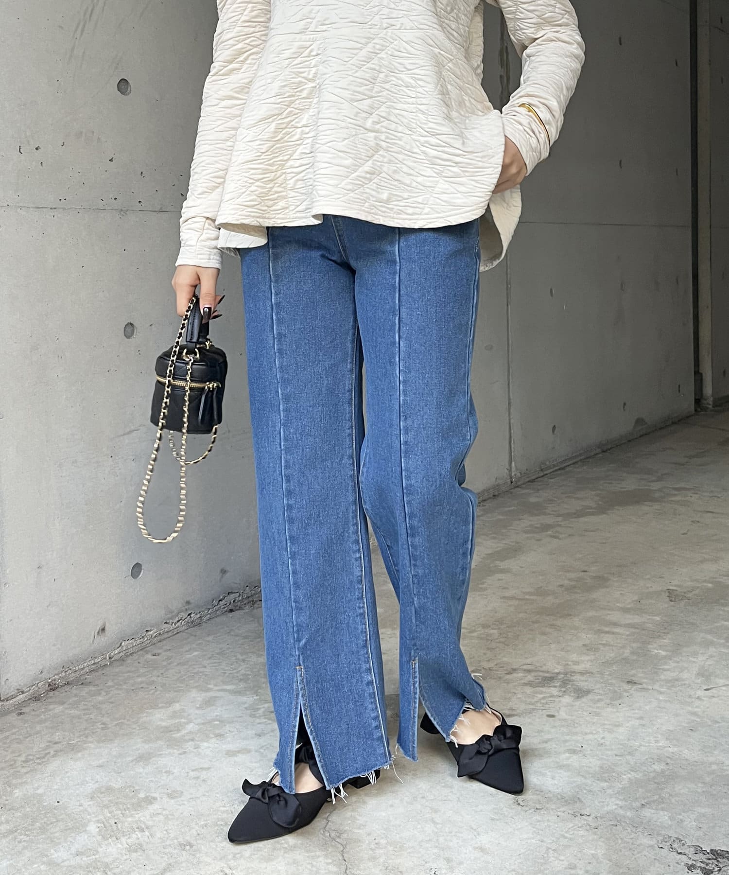【M・Lサイズ展開】フロントスリットデニムパンツ