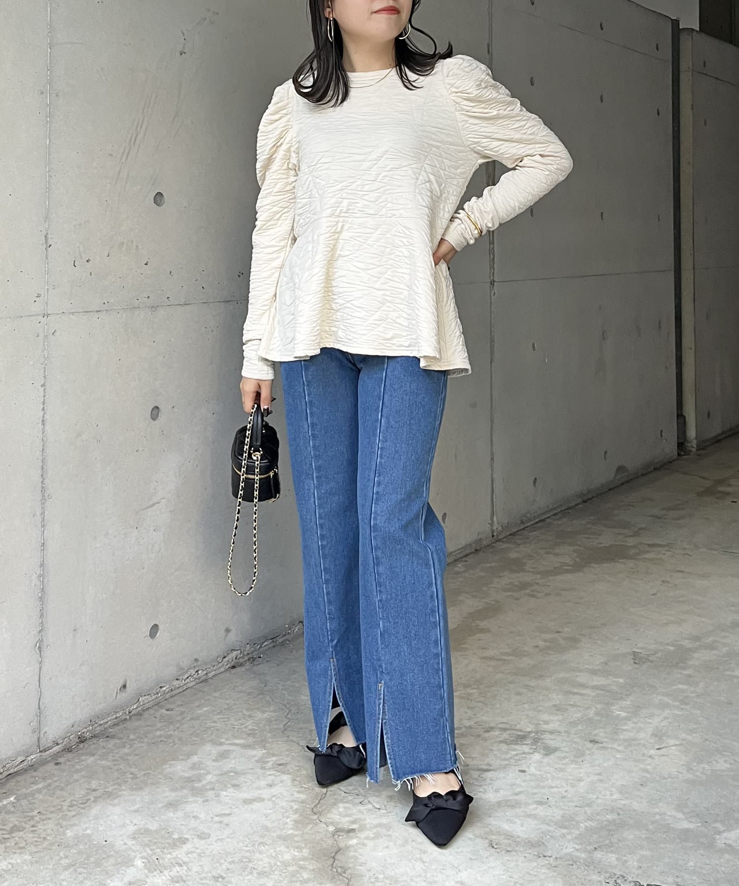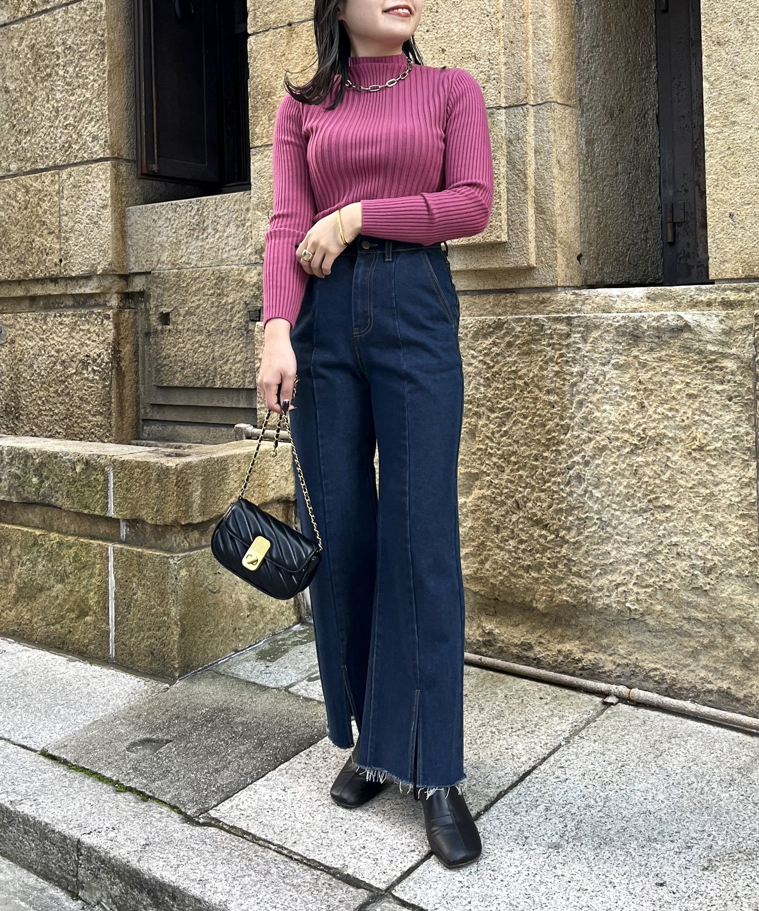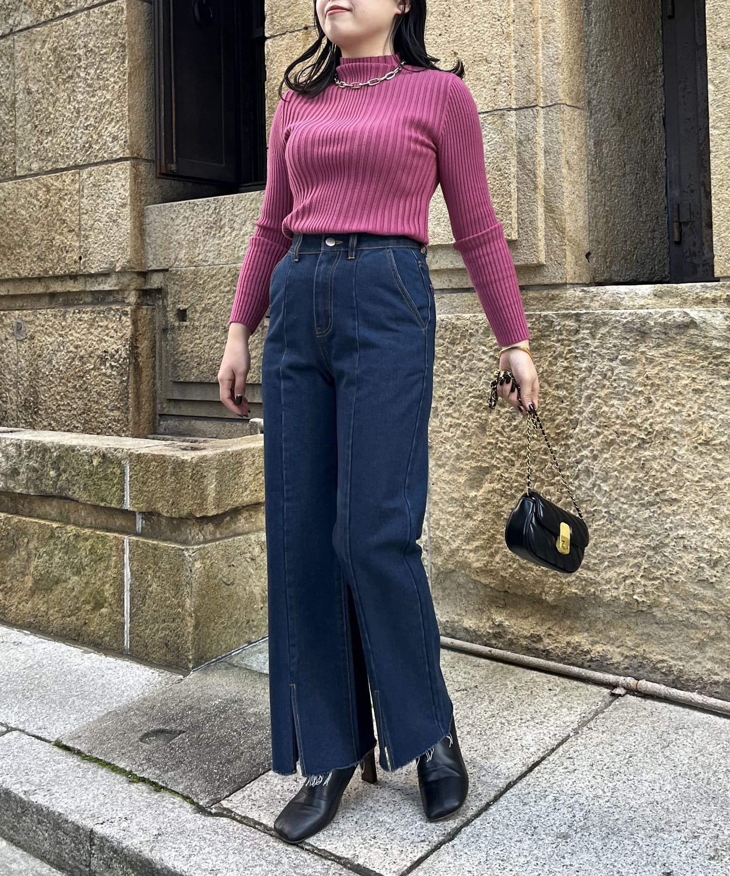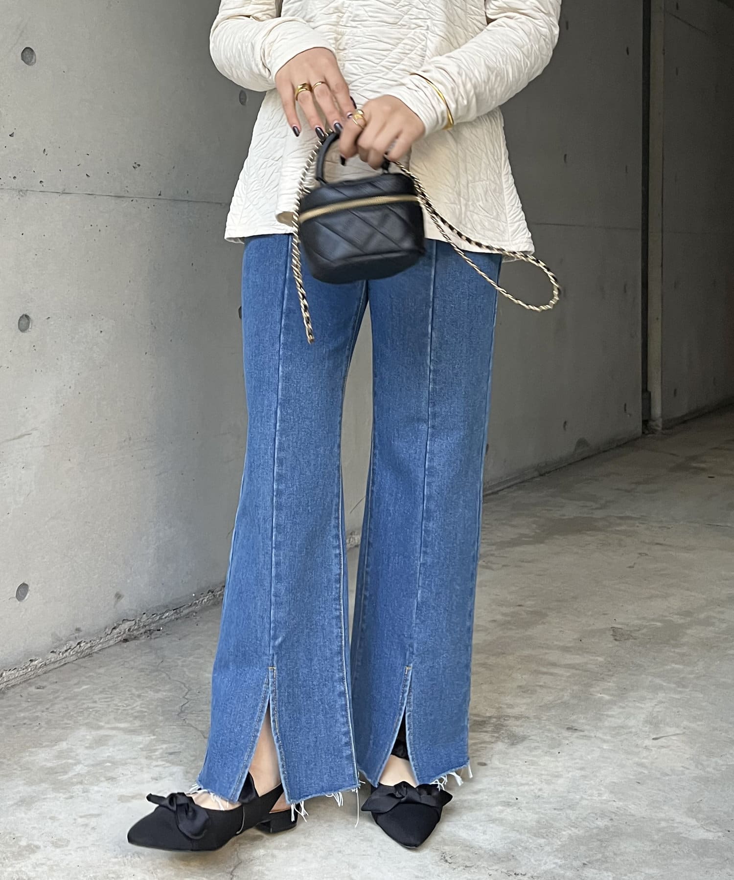 【M・Lサイズ展開】フロントスリットデニムパンツ