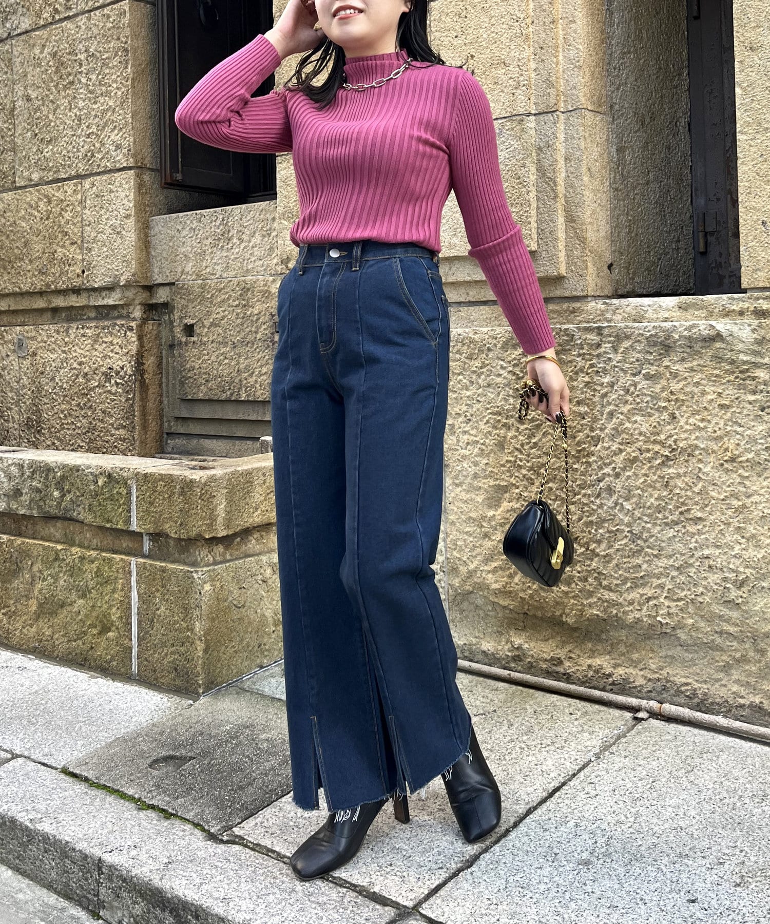 フロントスリットがぬけ感を出してくれるデニムパンツ