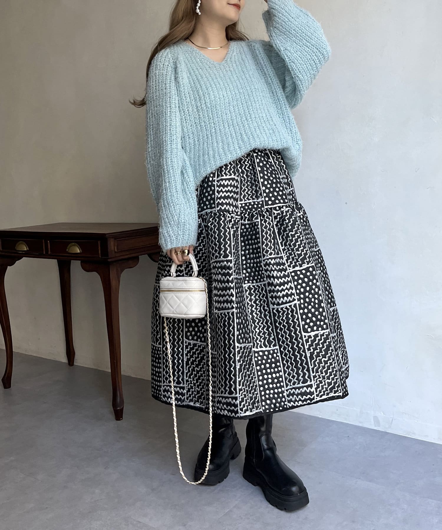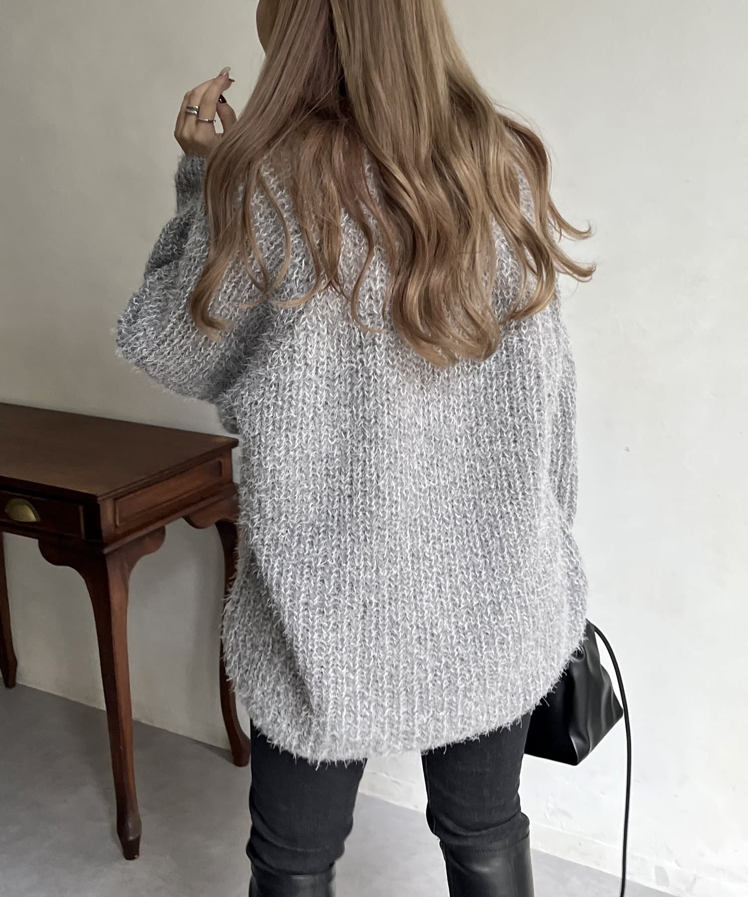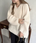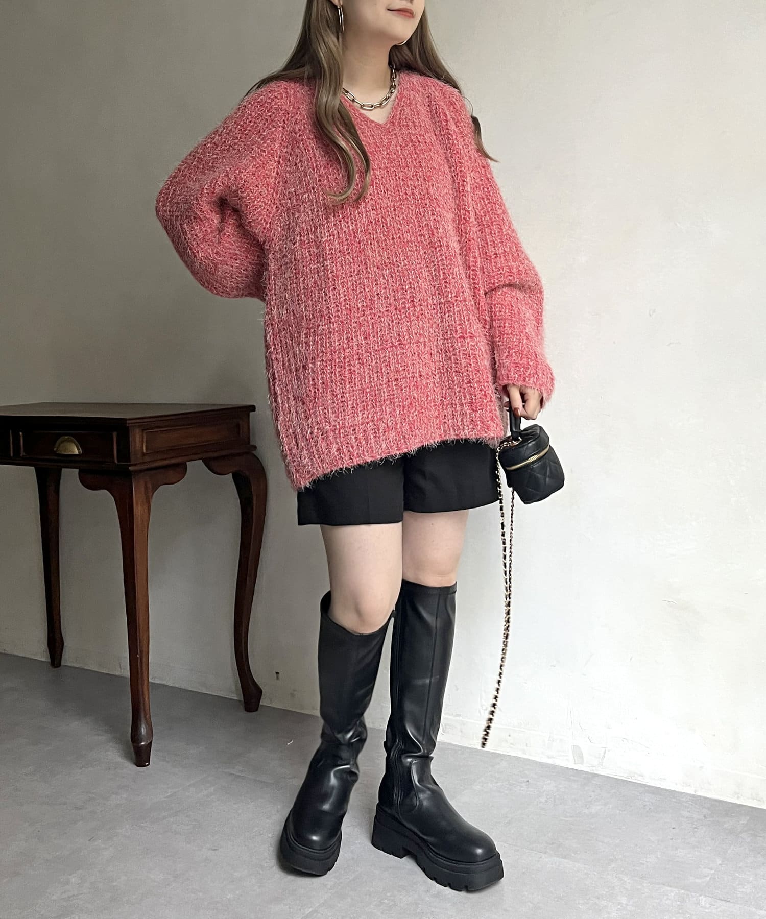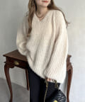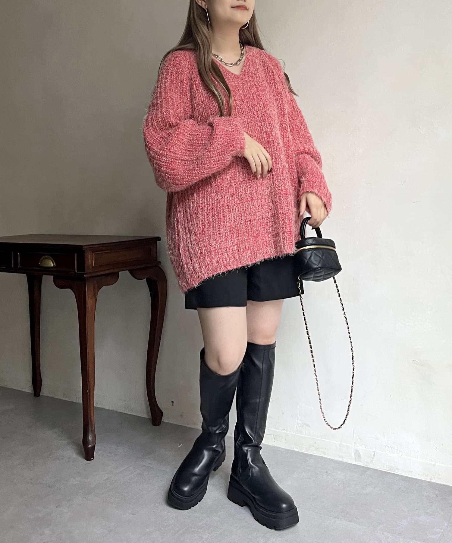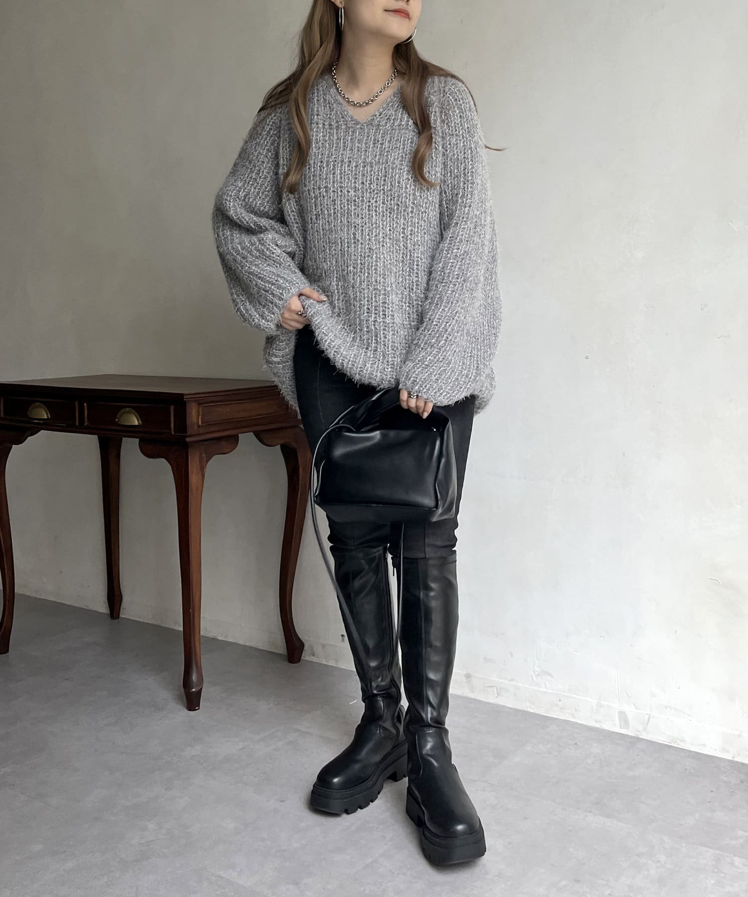 Vネック×フェザーで優しい大人な印象に見せてくれるニット