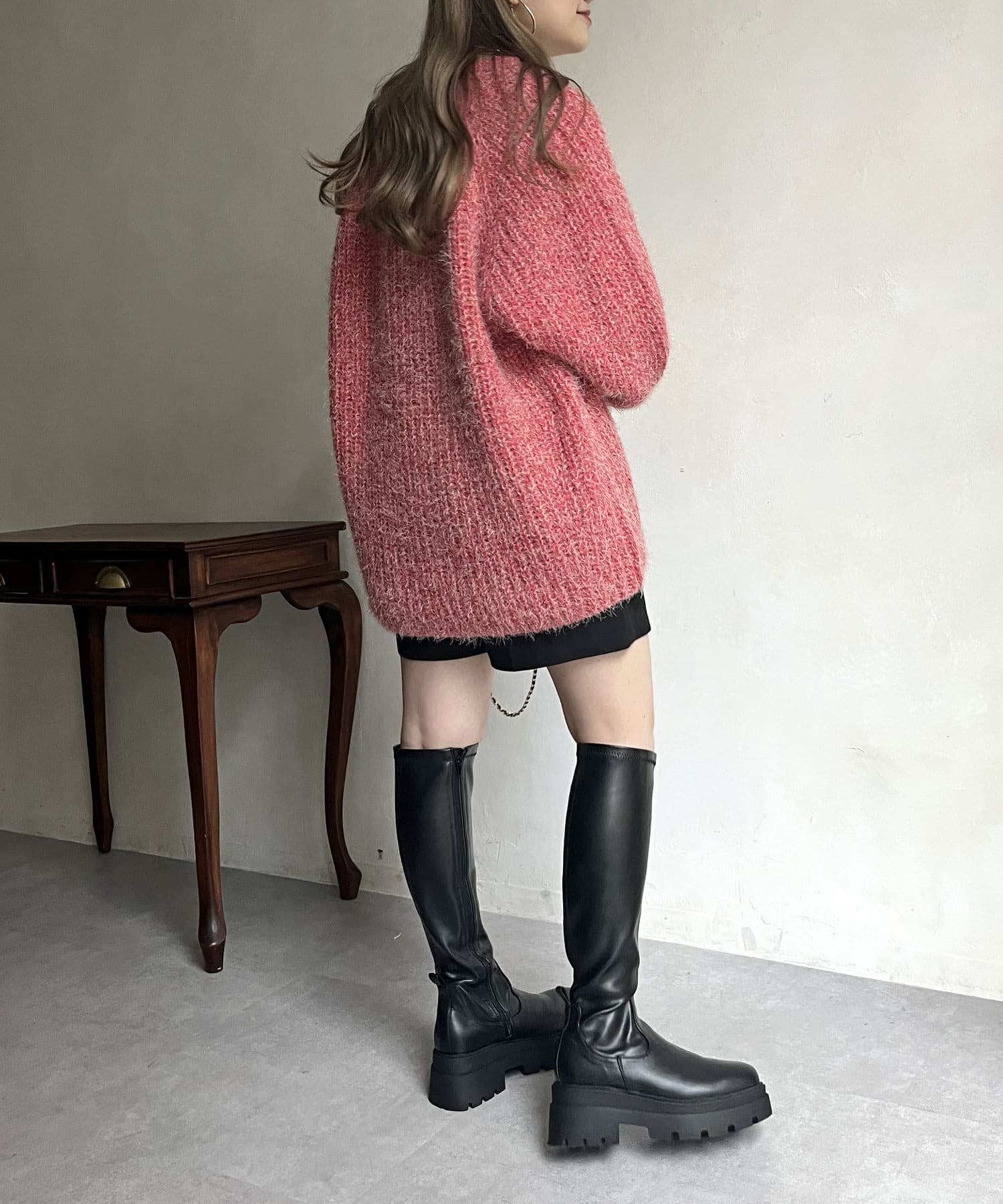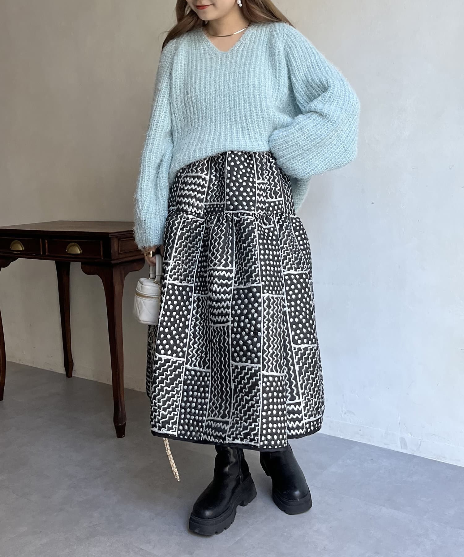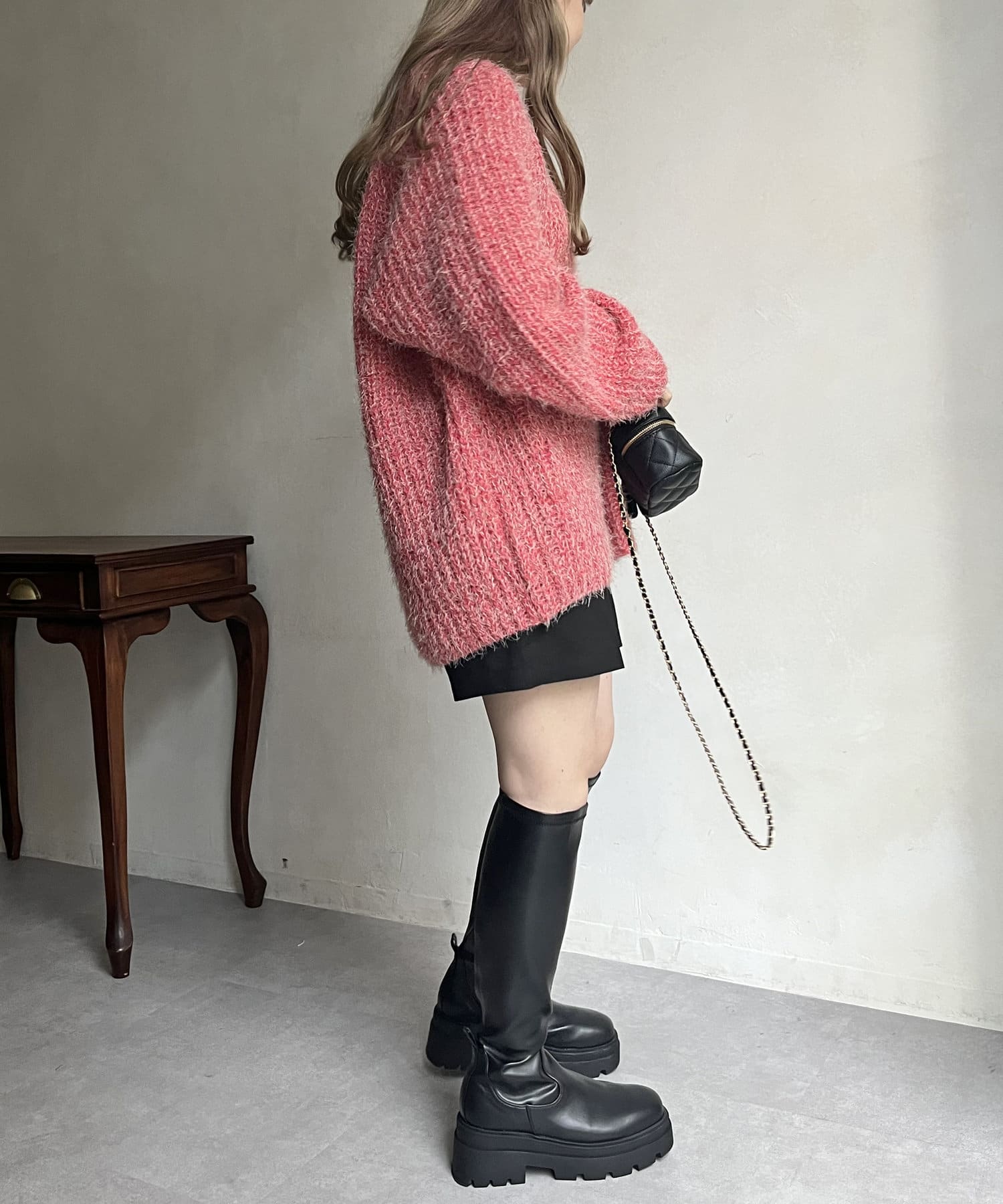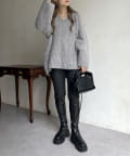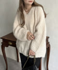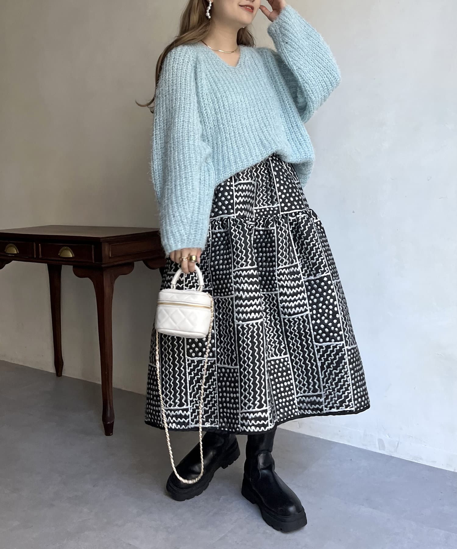 Vネック×フェザーで優しい大人な印象に見せてくれるニット