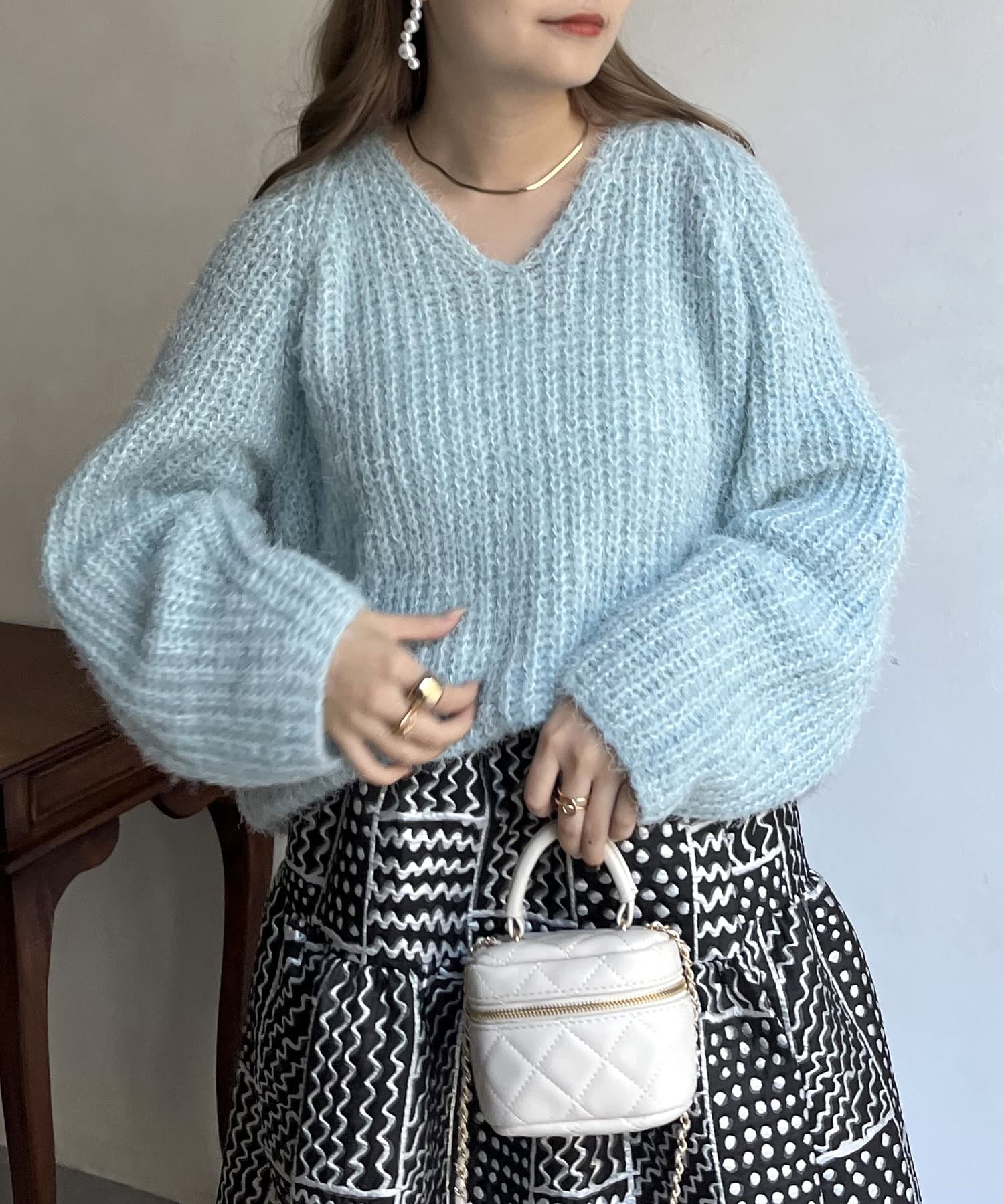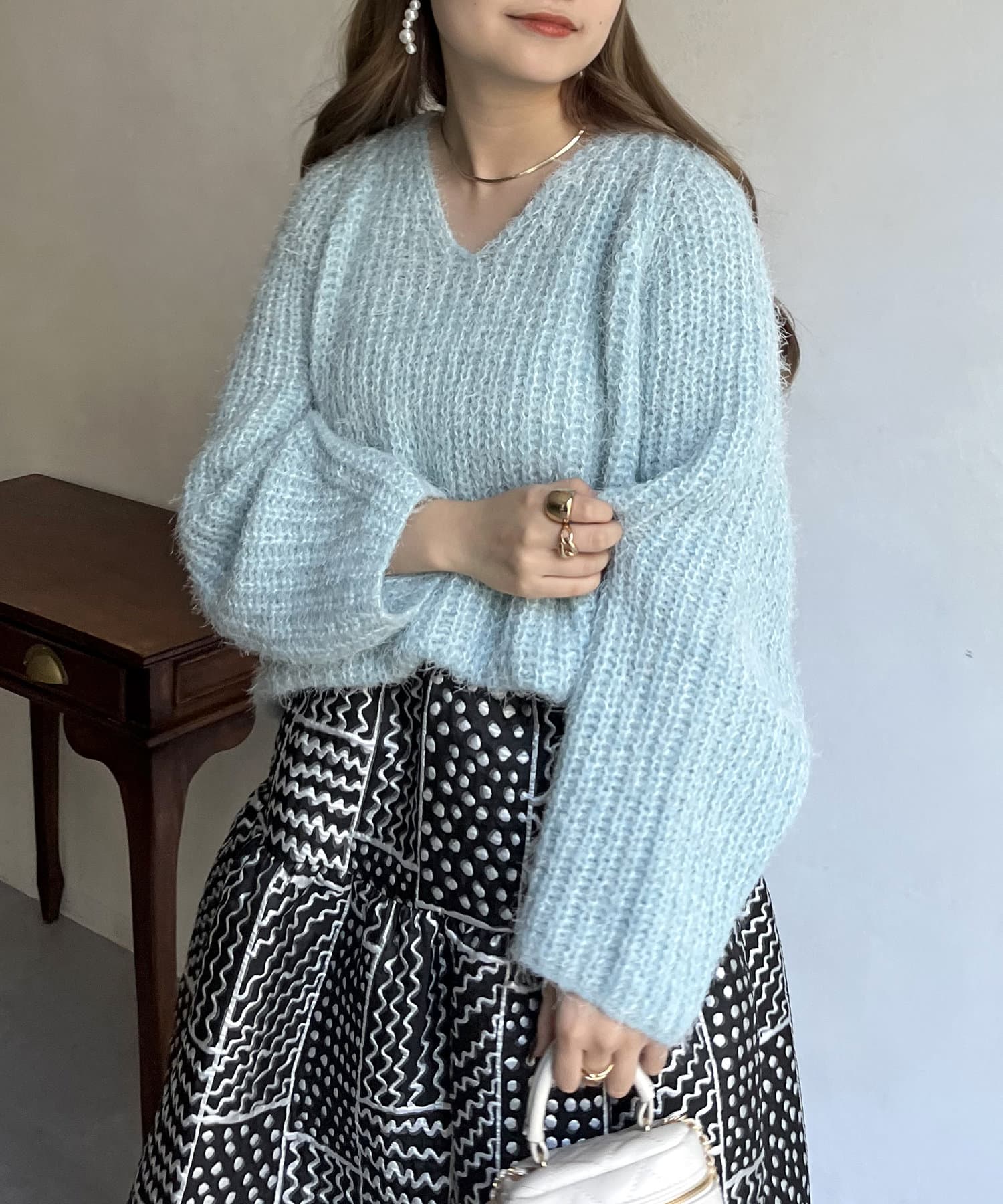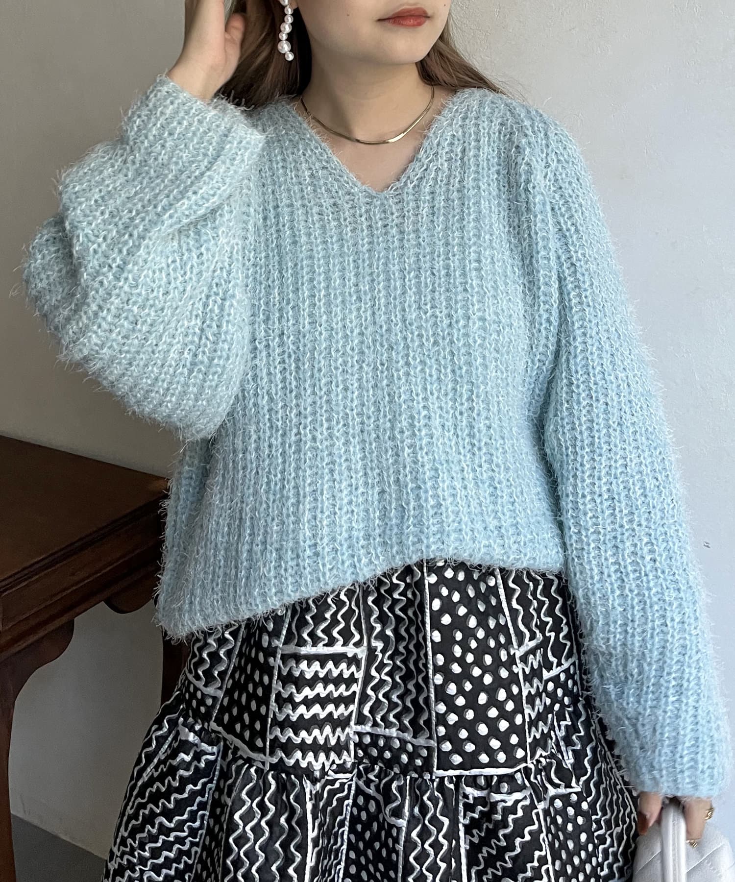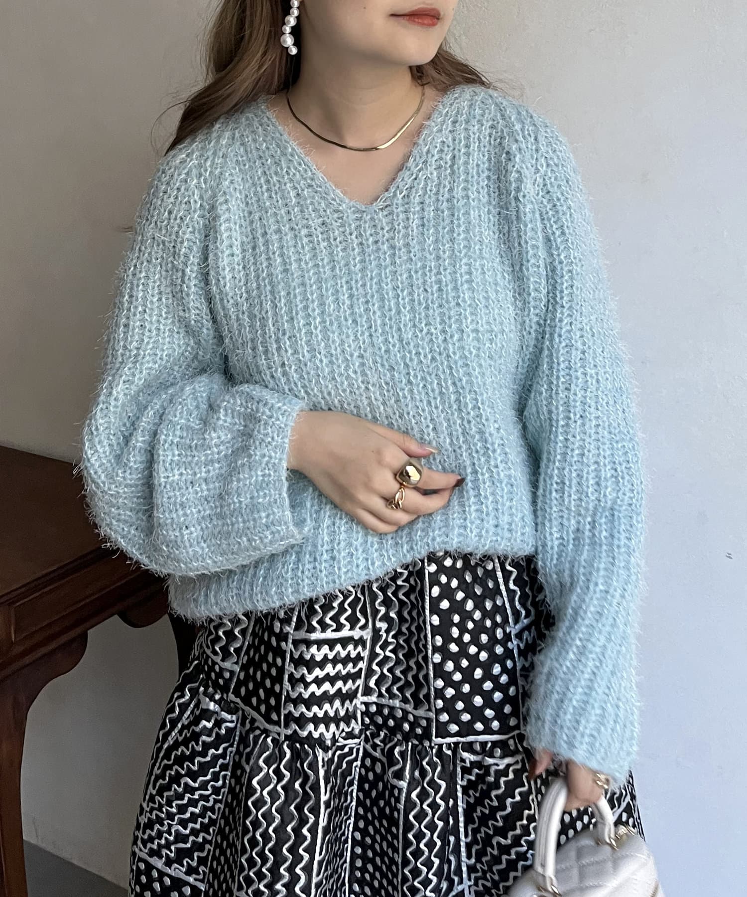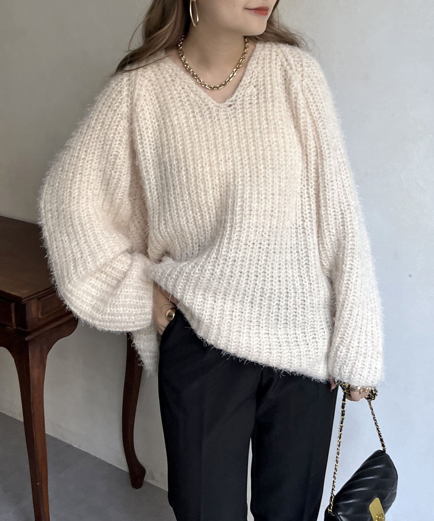 ニット /フェザー/ Vネック /袖ボリューム/ 大人キレイめカジュアル