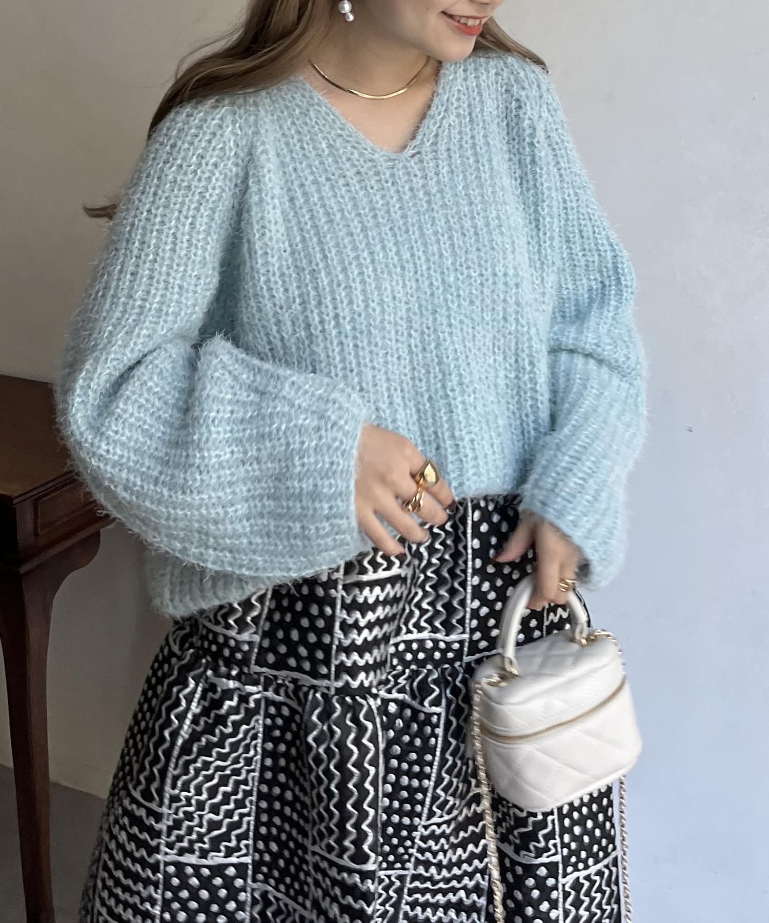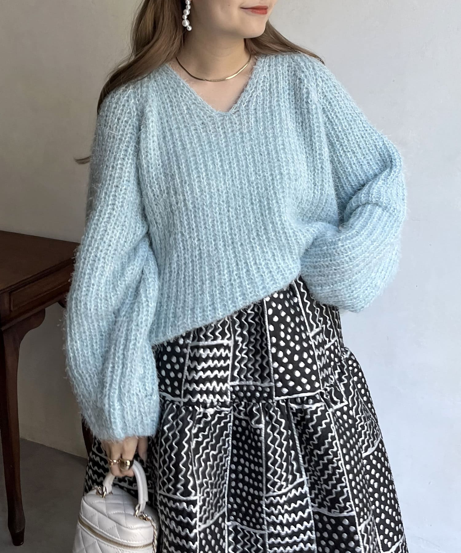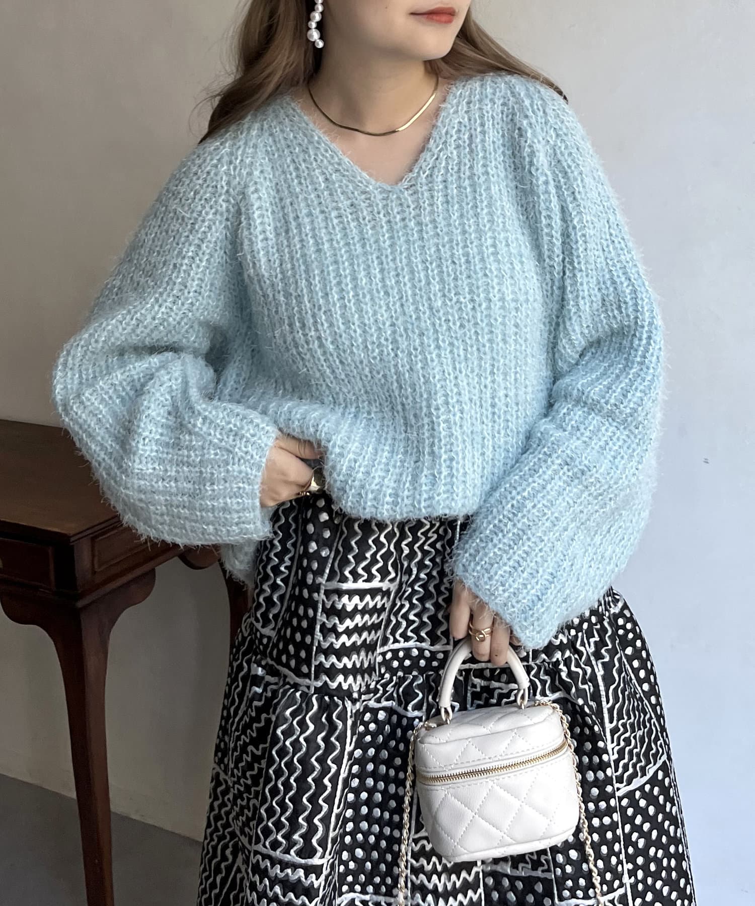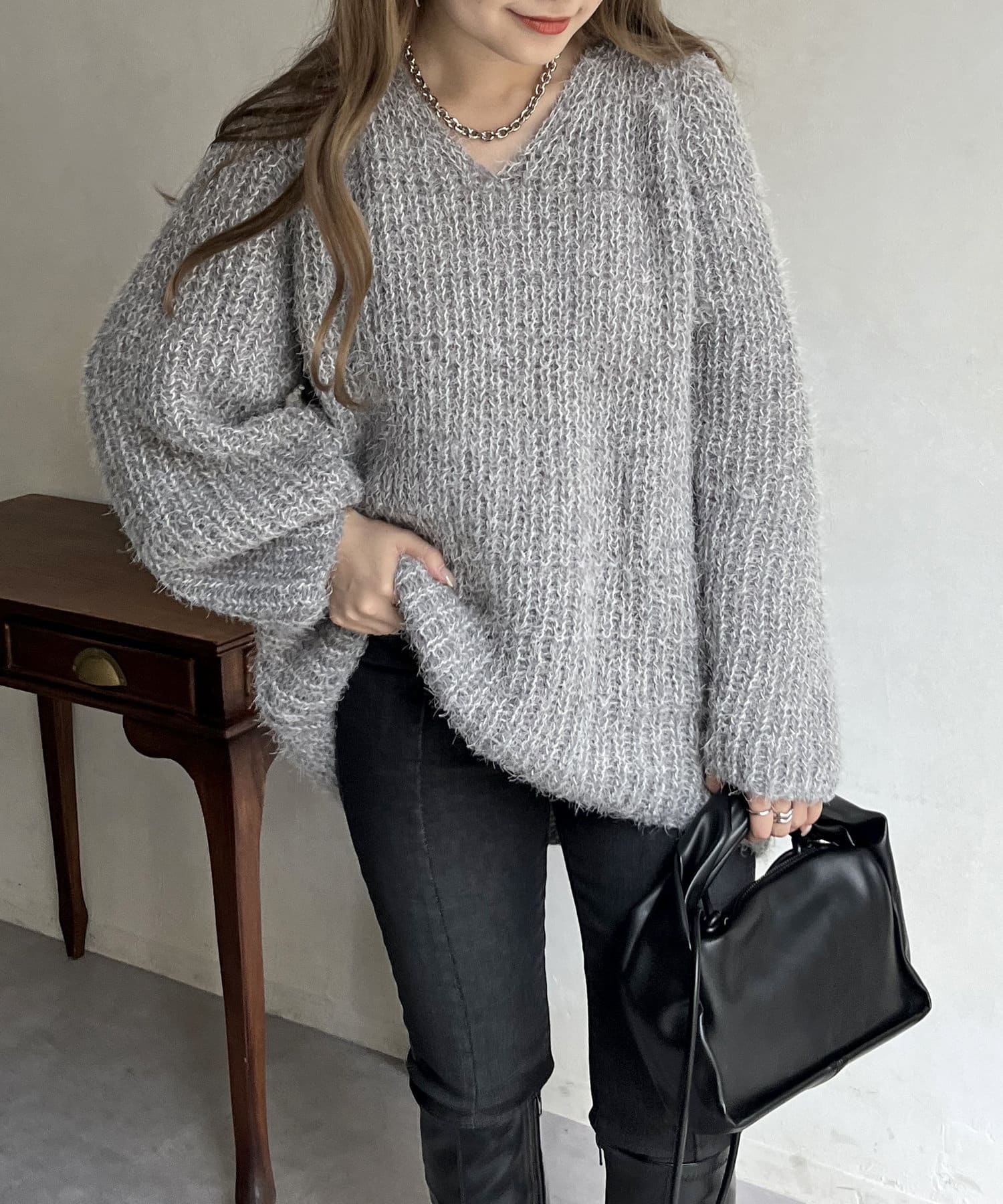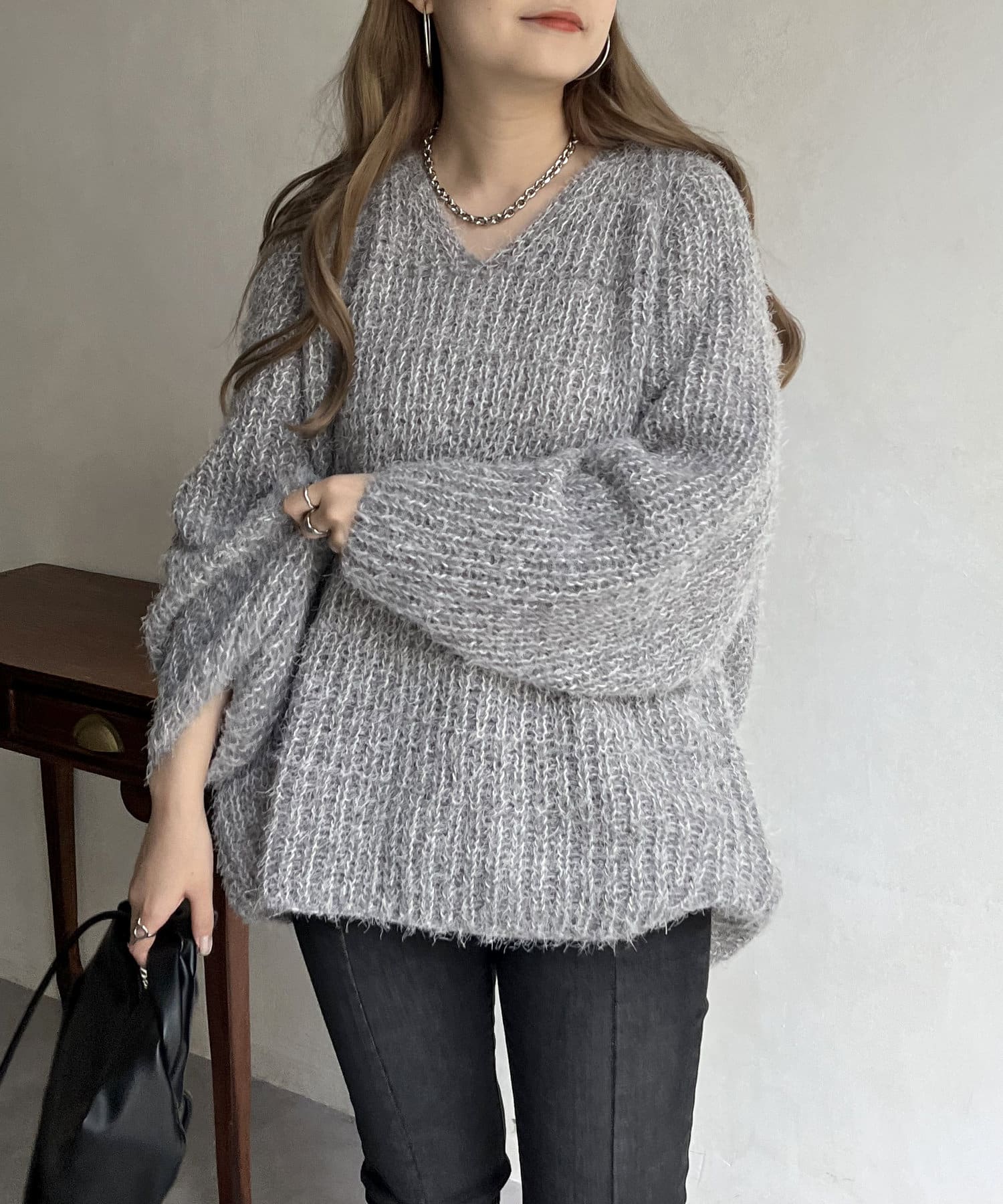 ニット /フェザー/ Vネック /袖ボリューム/ 大人キレイめカジュアル