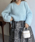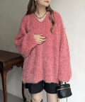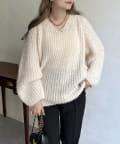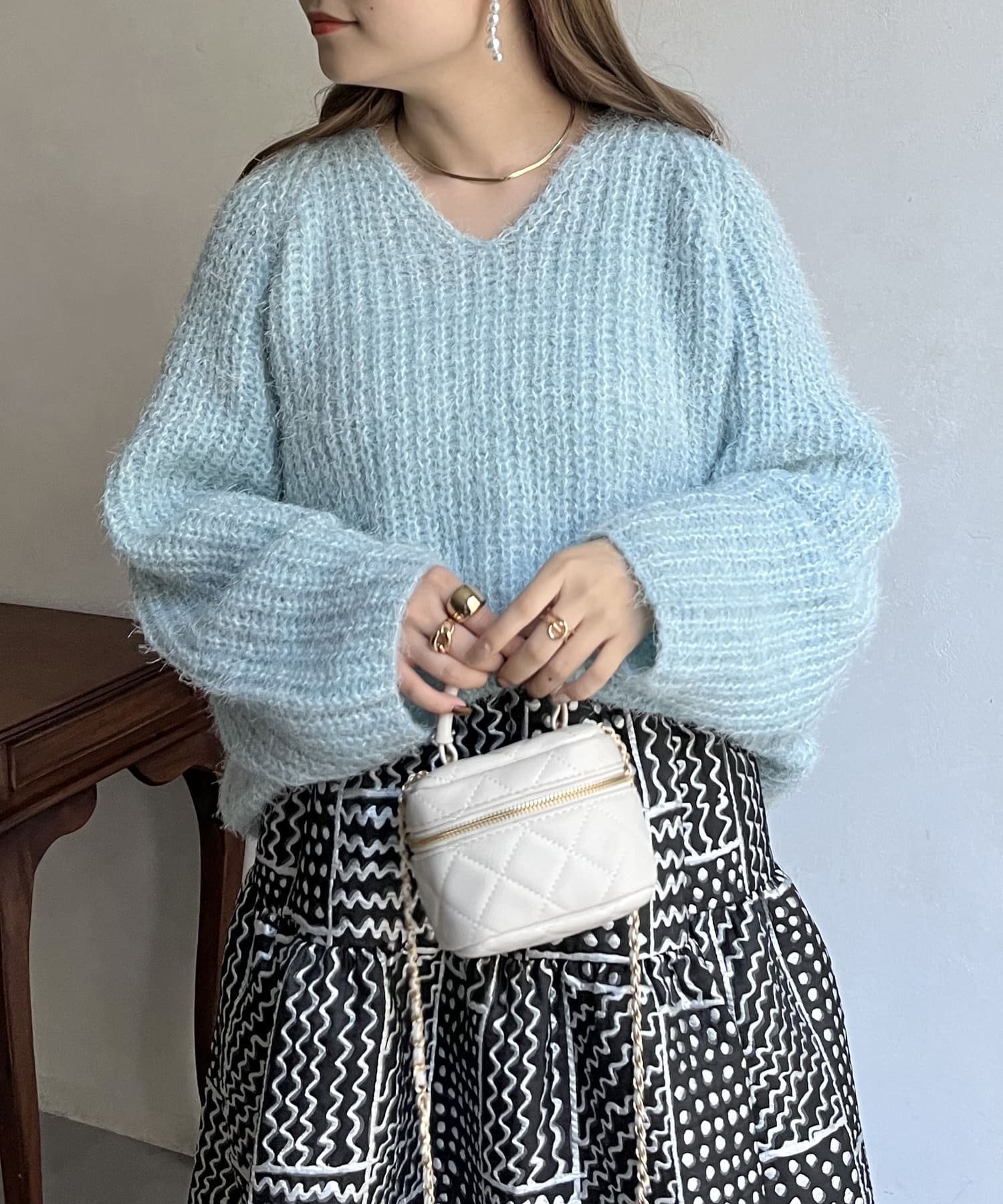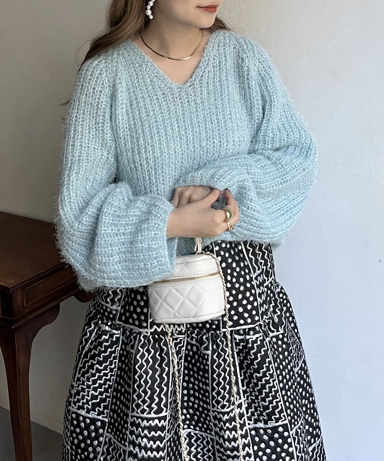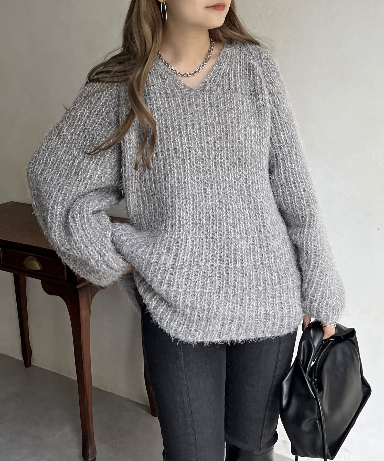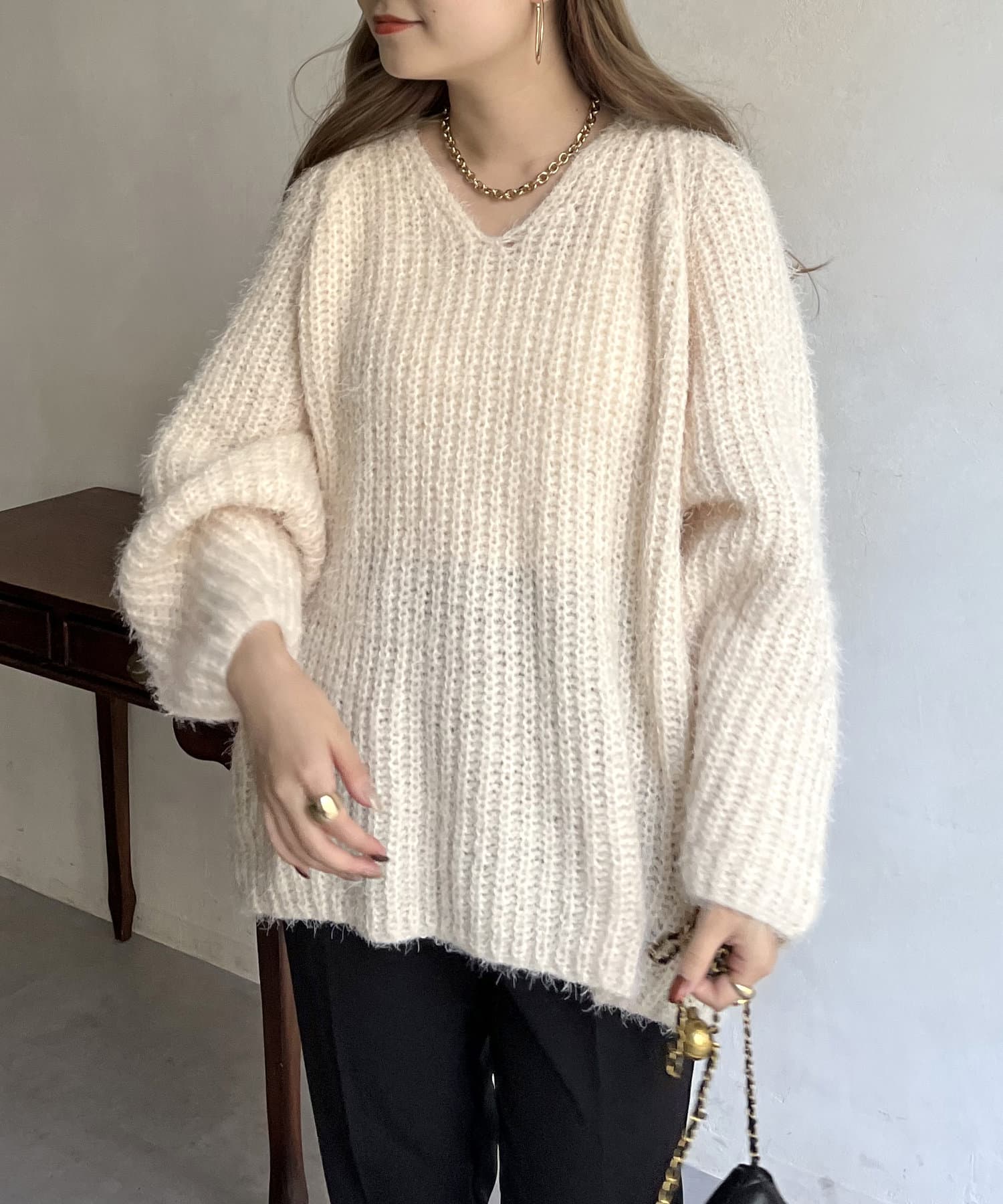 ニット /フェザー/ Vネック /袖ボリューム/ 大人キレイめカジュアル
