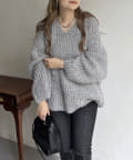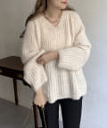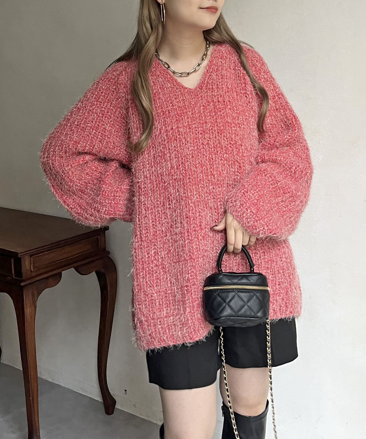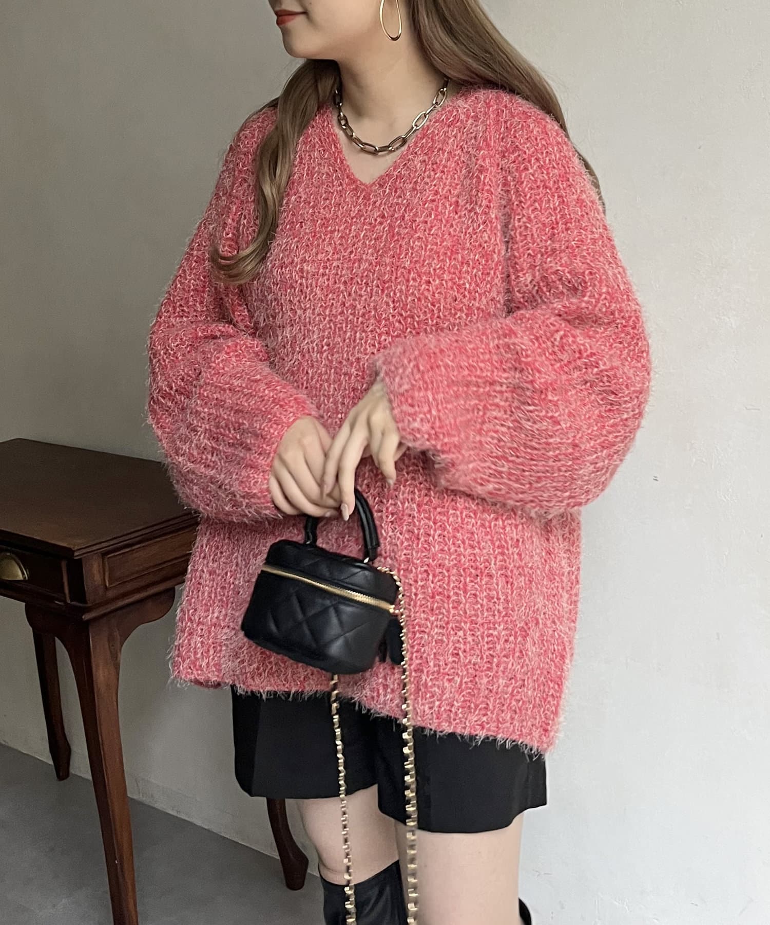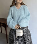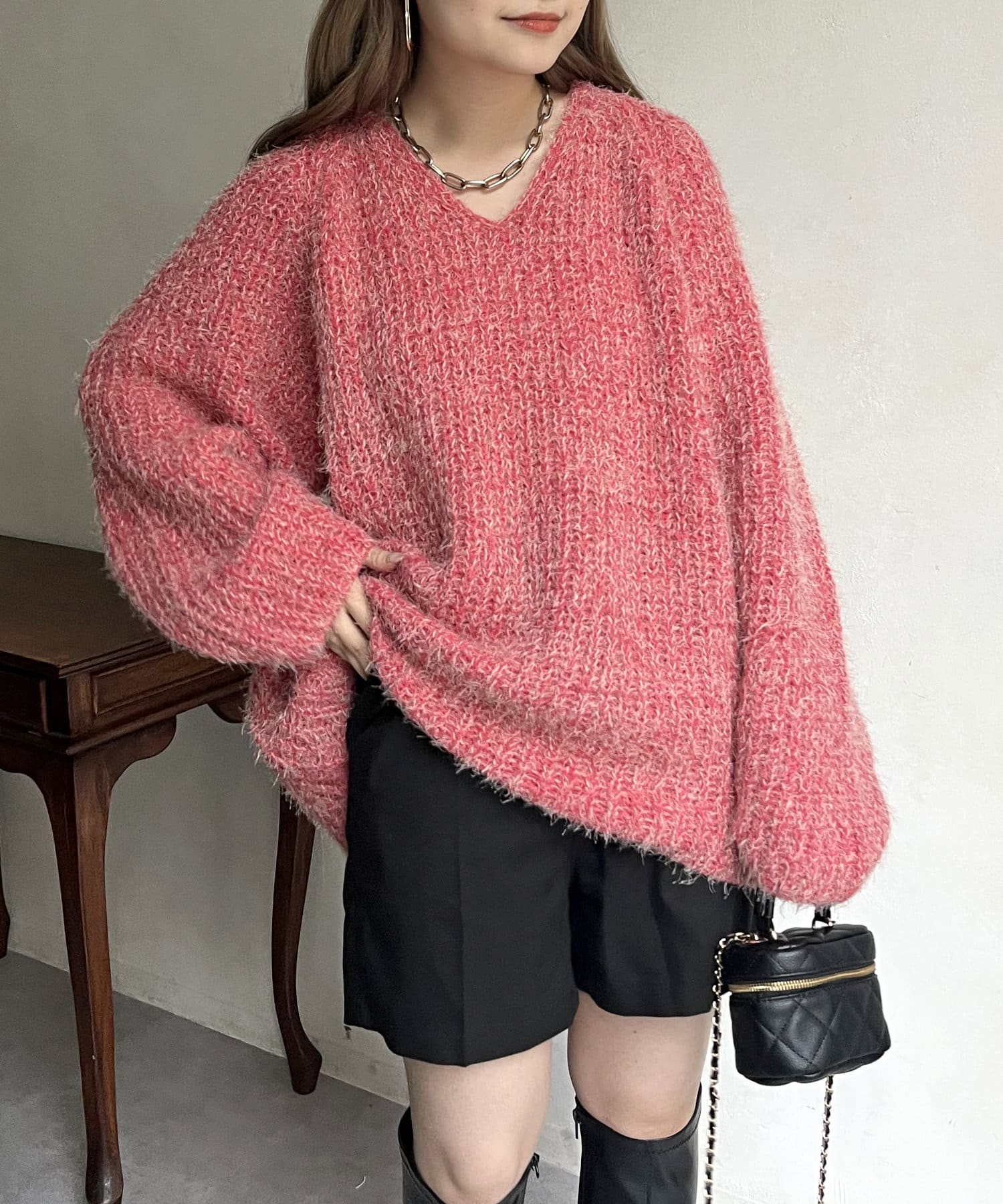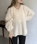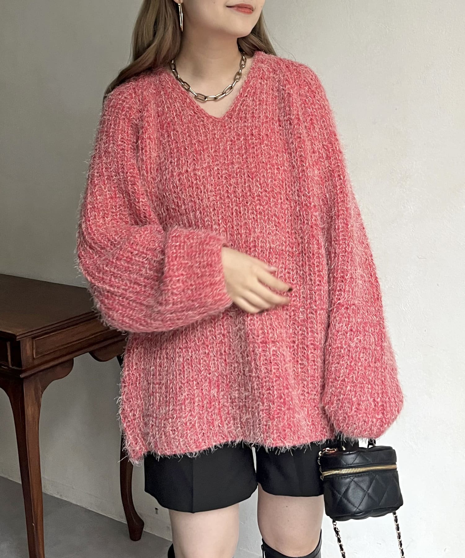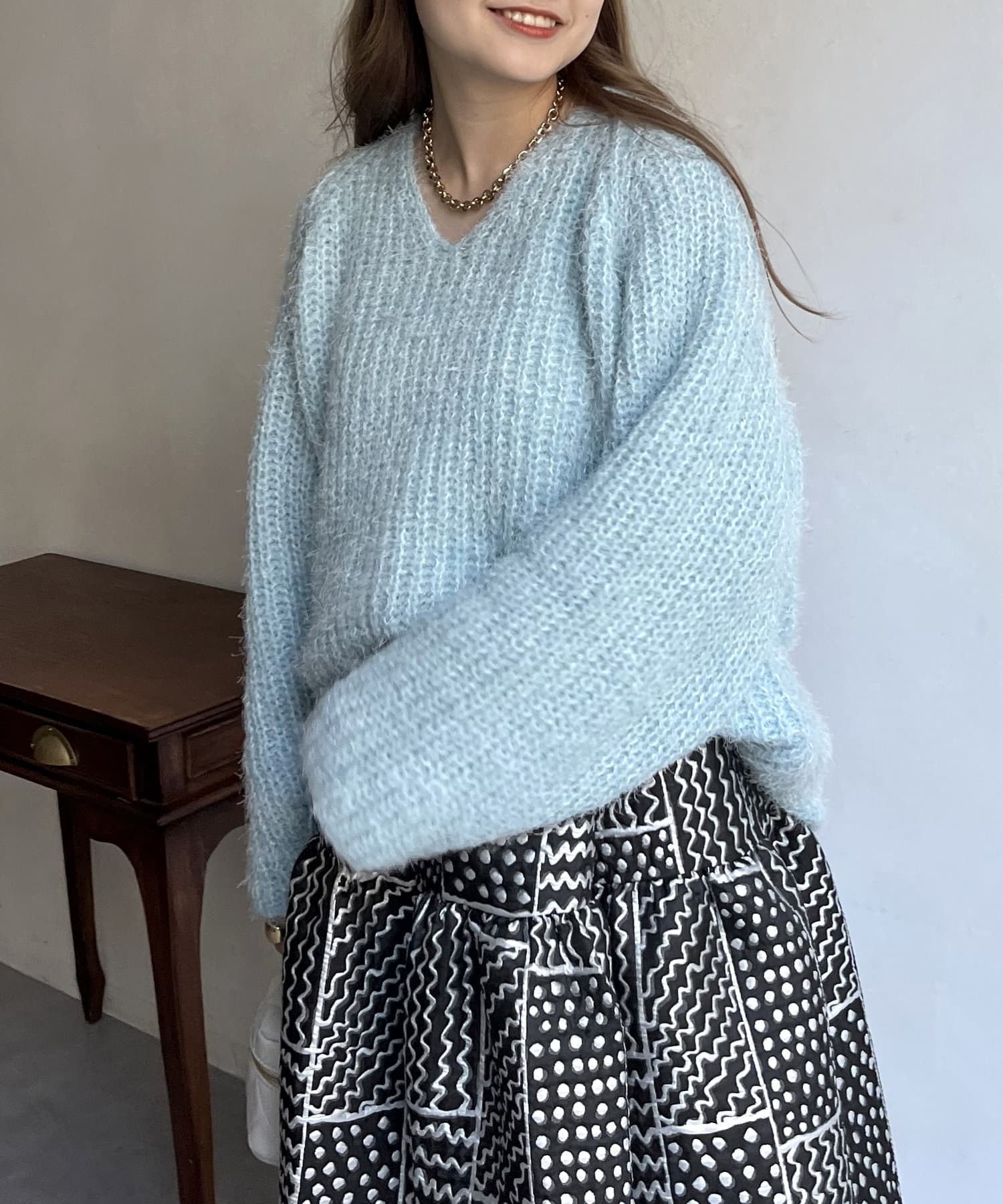 ニット /フェザー/ Vネック /袖ボリューム/ 大人キレイめカジュアル