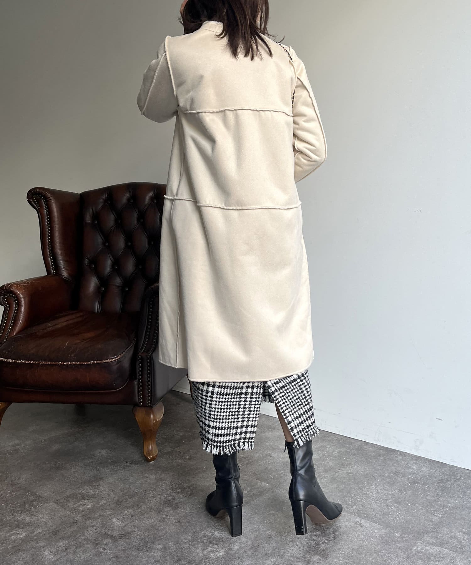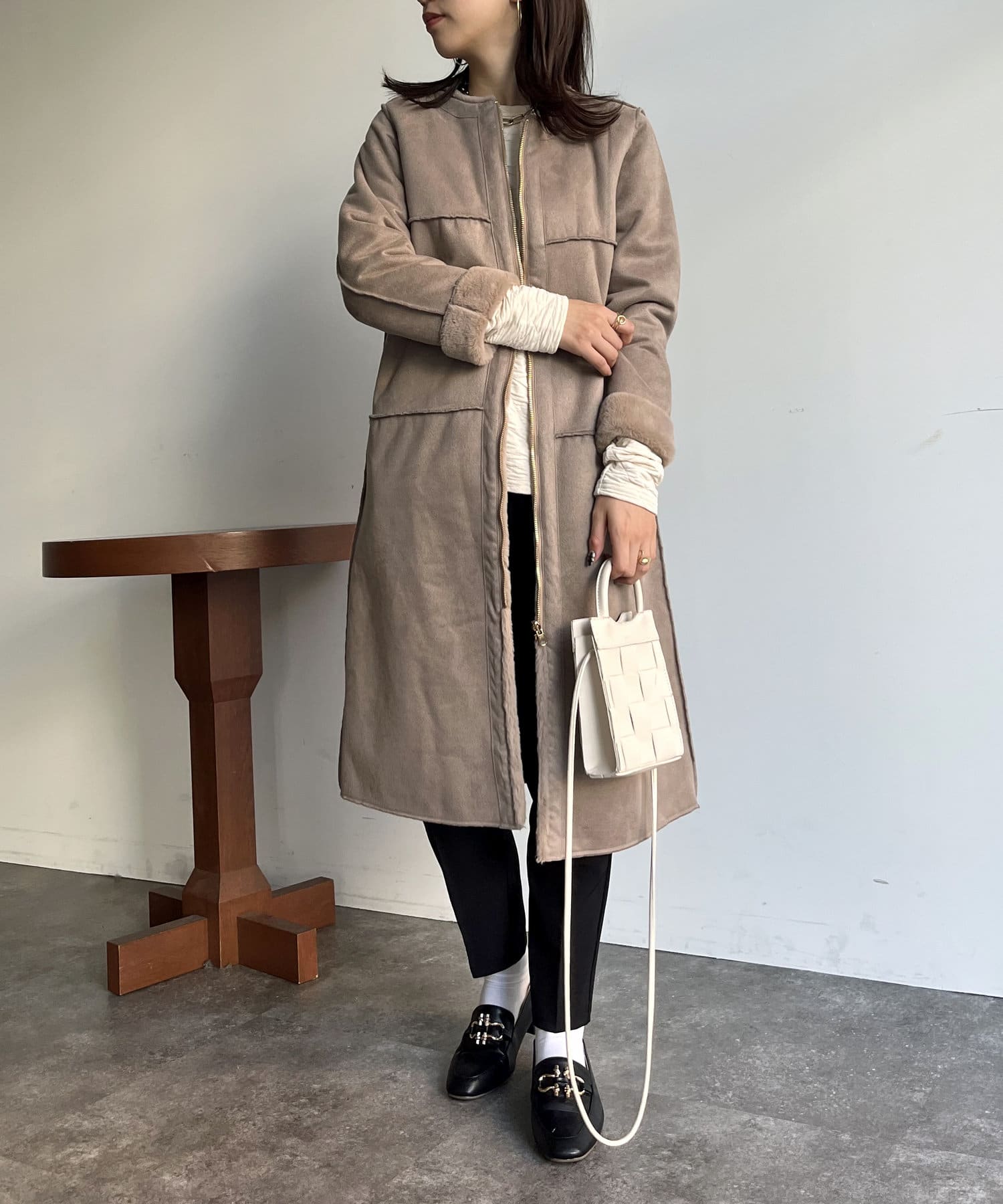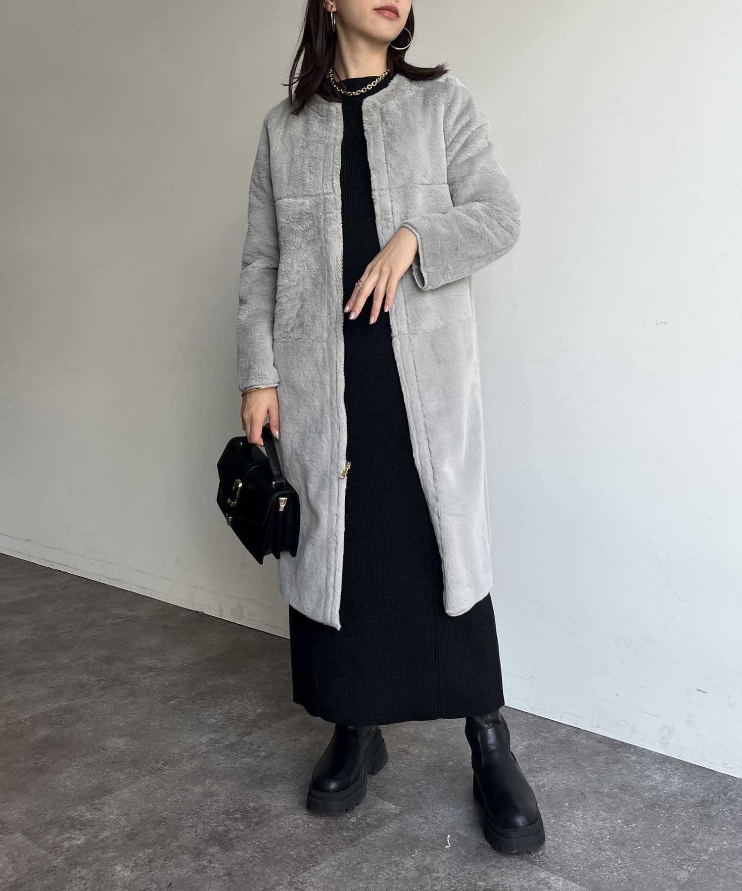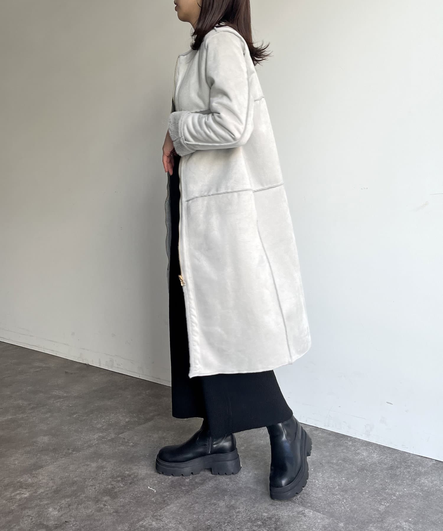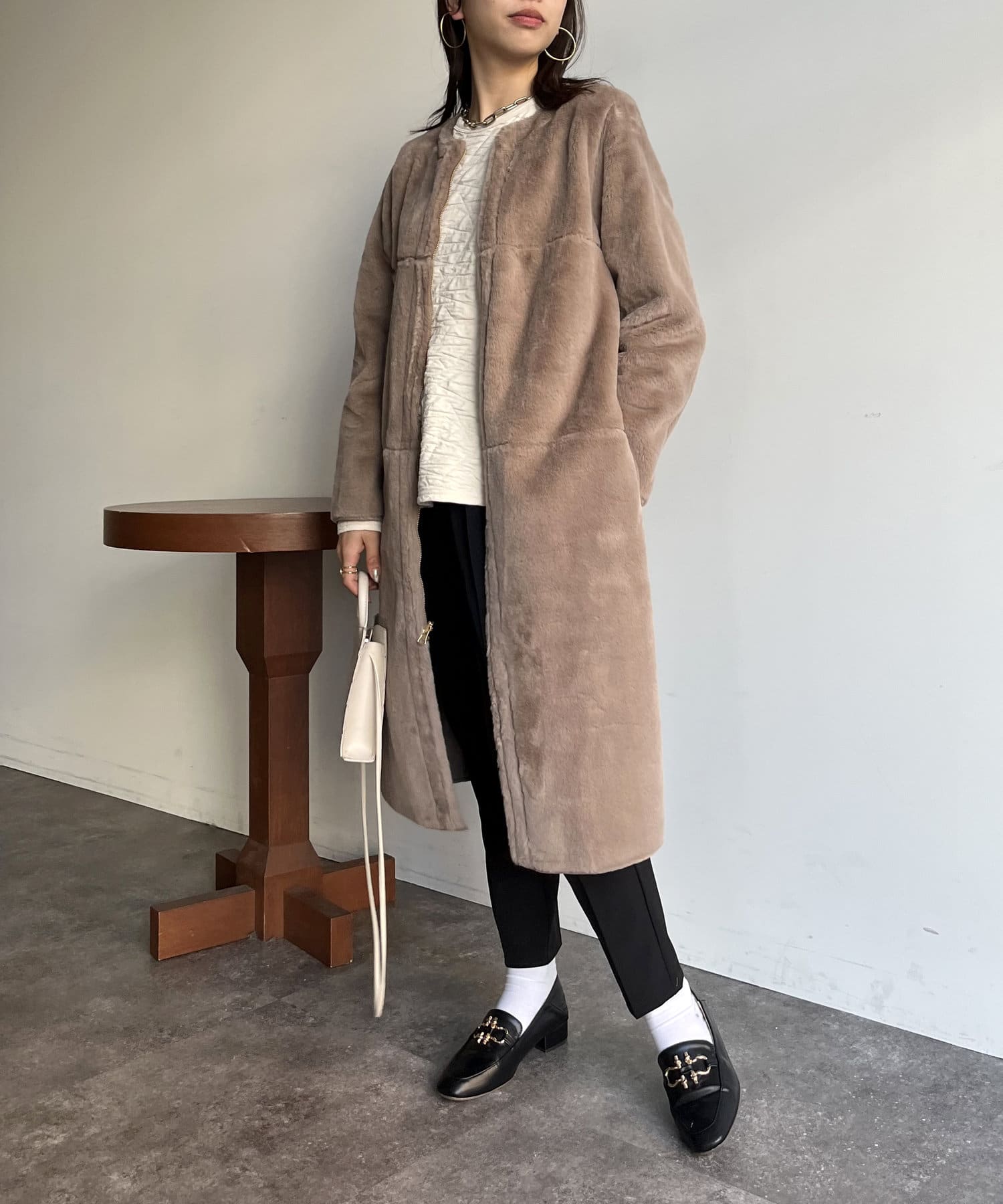 ファー/フェイクファー/ノーカラー/ノーカラーコート/コート/ムートン/リバーシブル