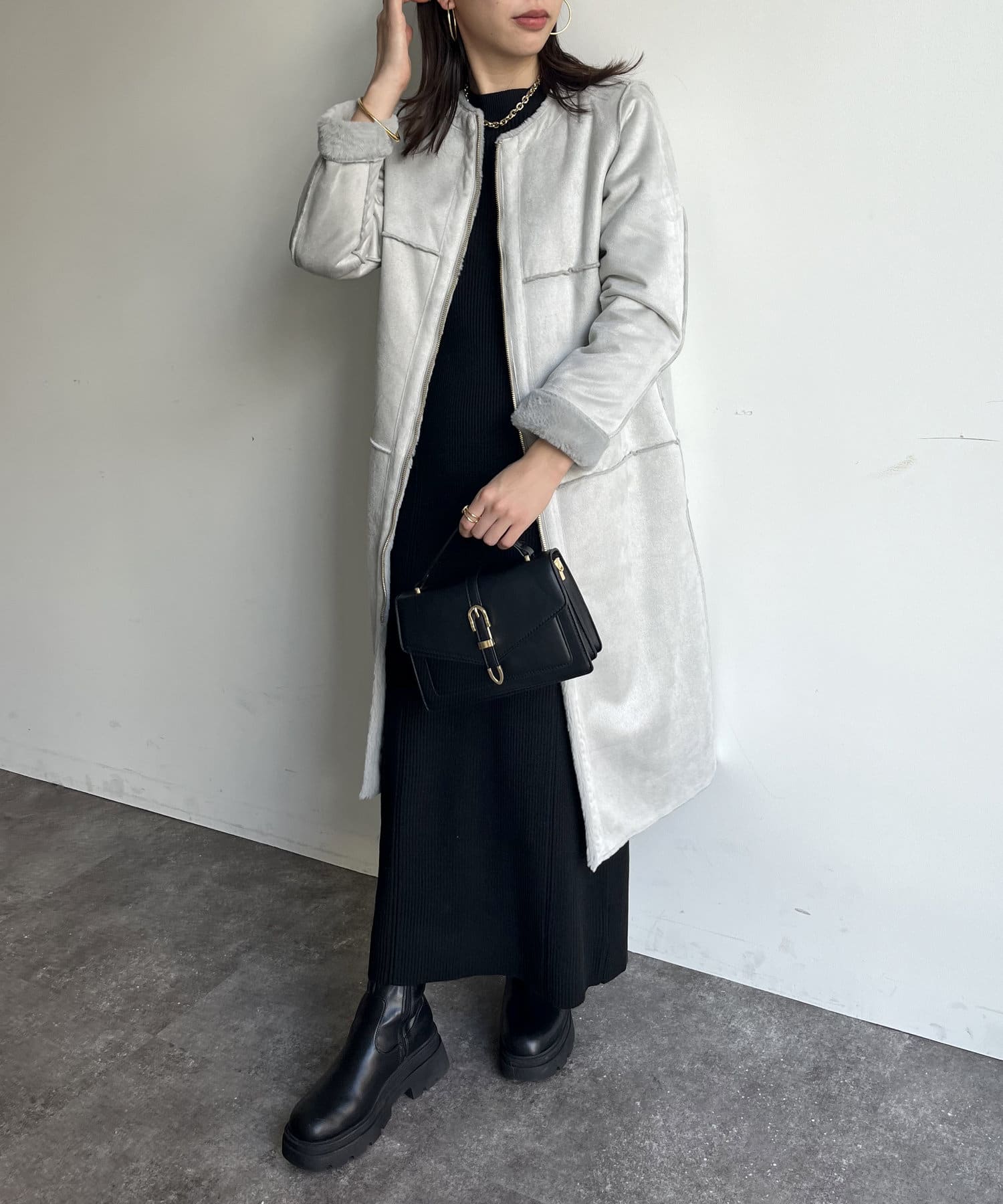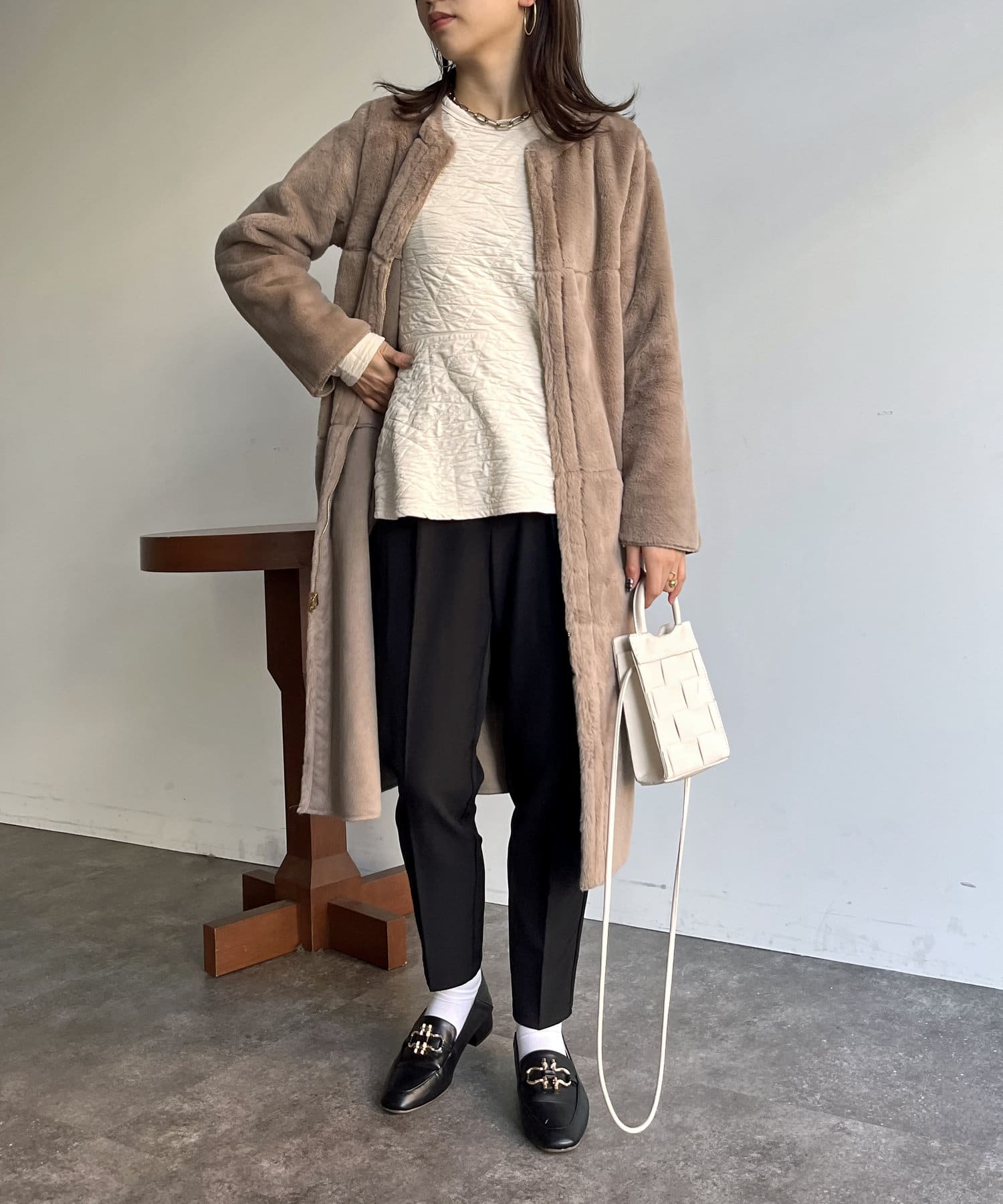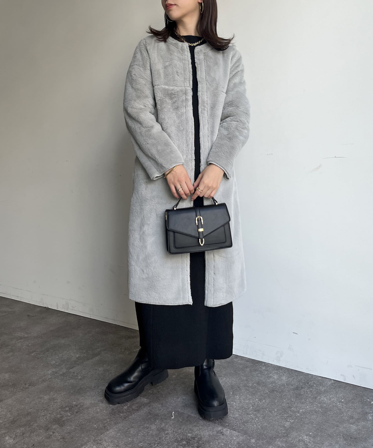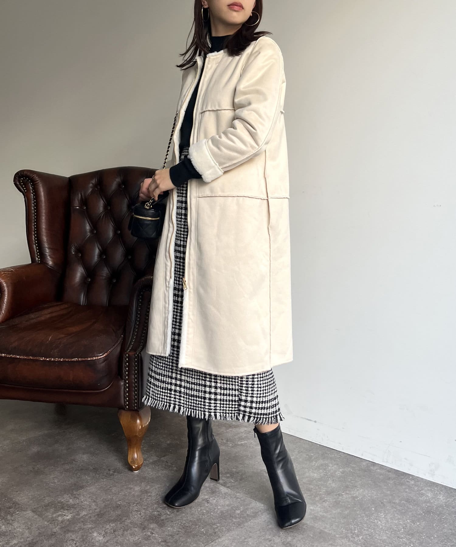 ファー/フェイクファー/ノーカラー/ノーカラーコート/コート/ムートン/リバーシブル