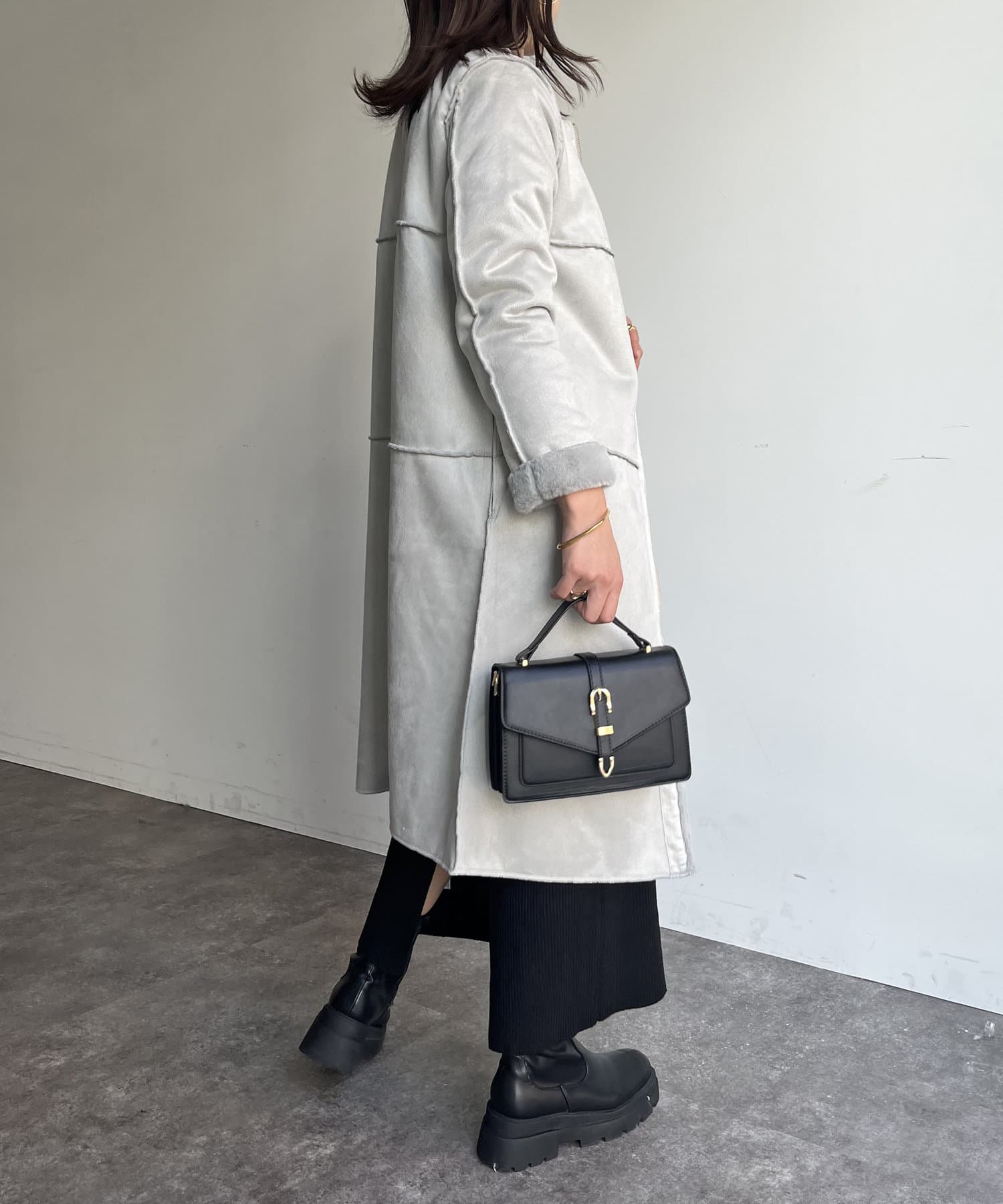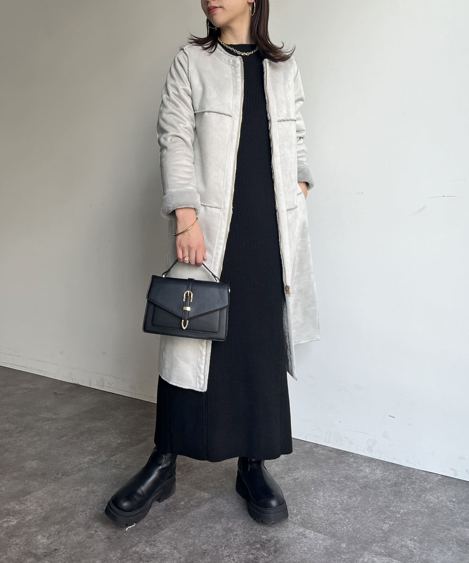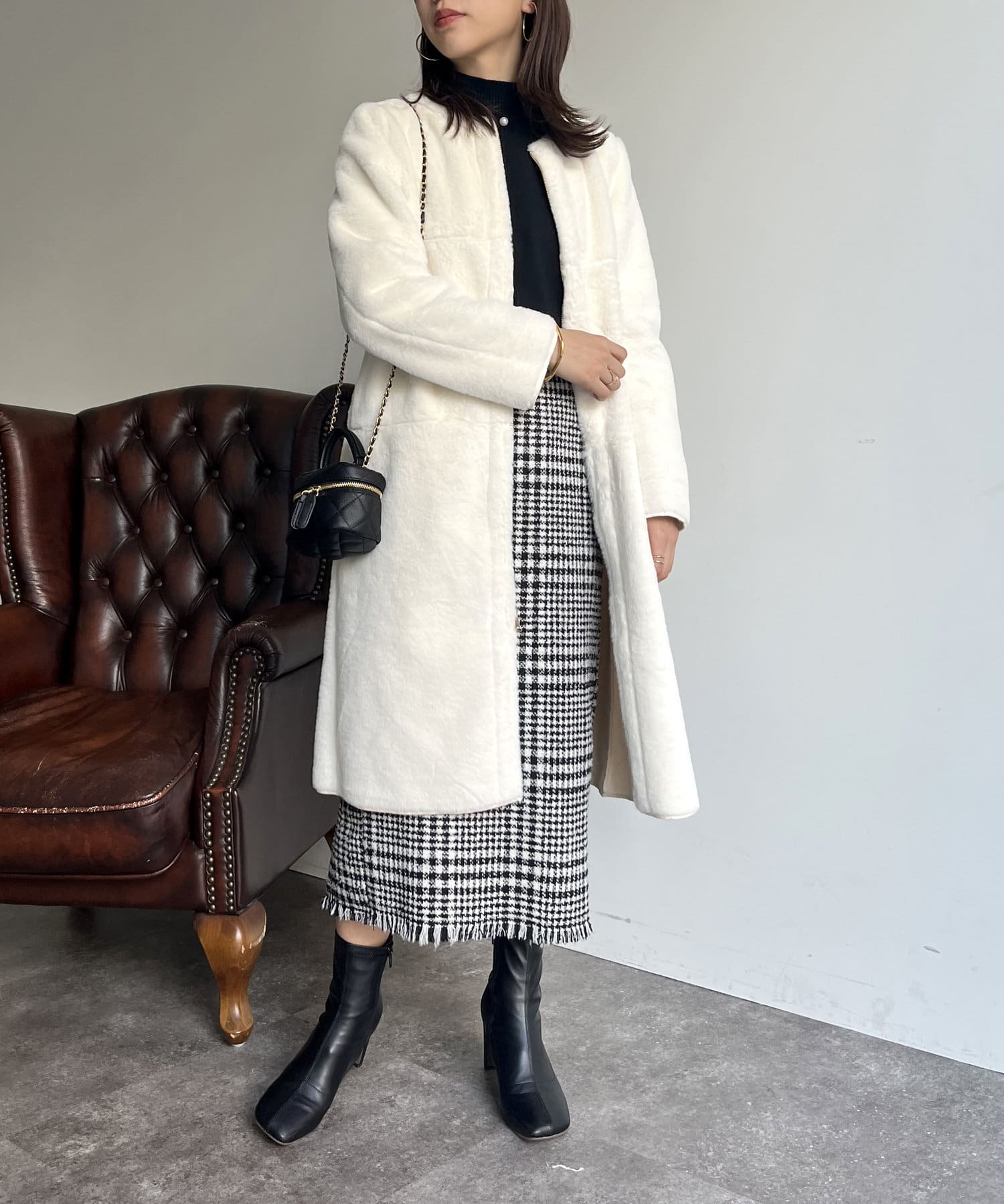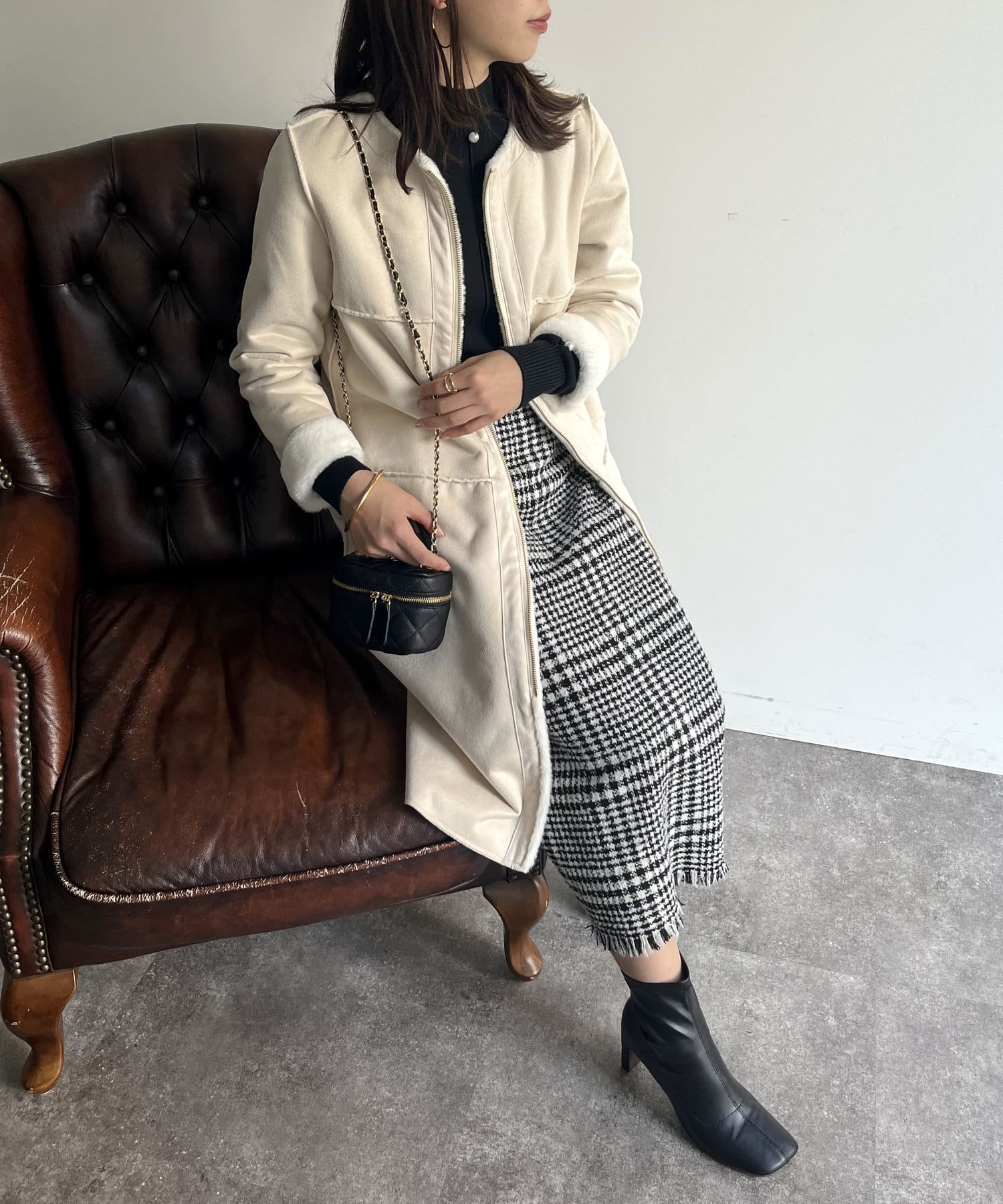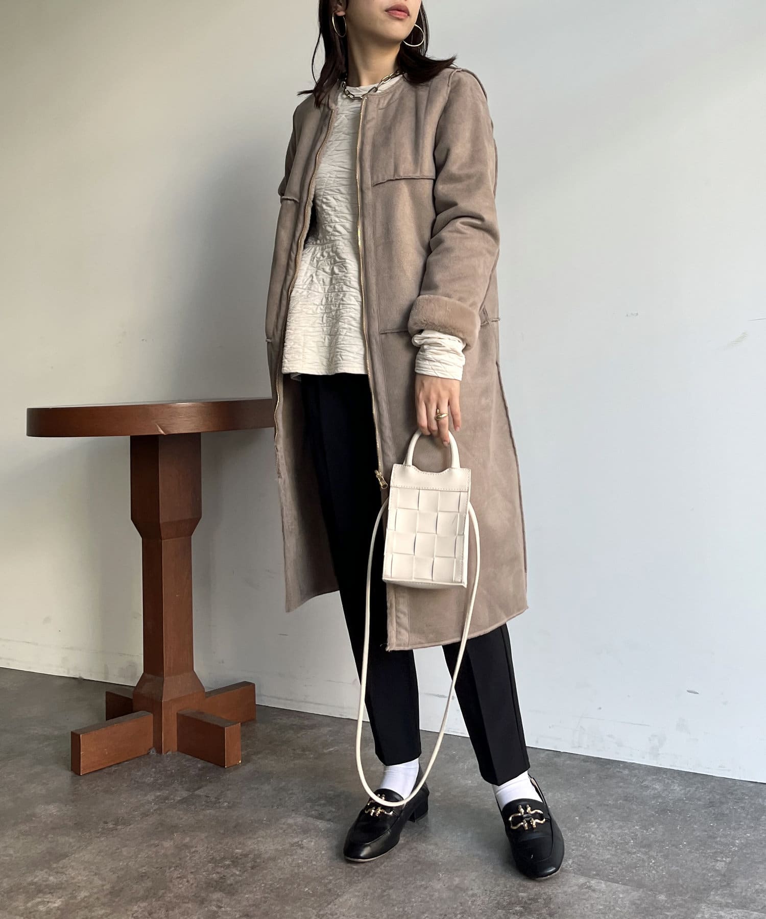 ファー/フェイクファー/ノーカラー/ノーカラーコート/コート/ムートン/リバーシブル