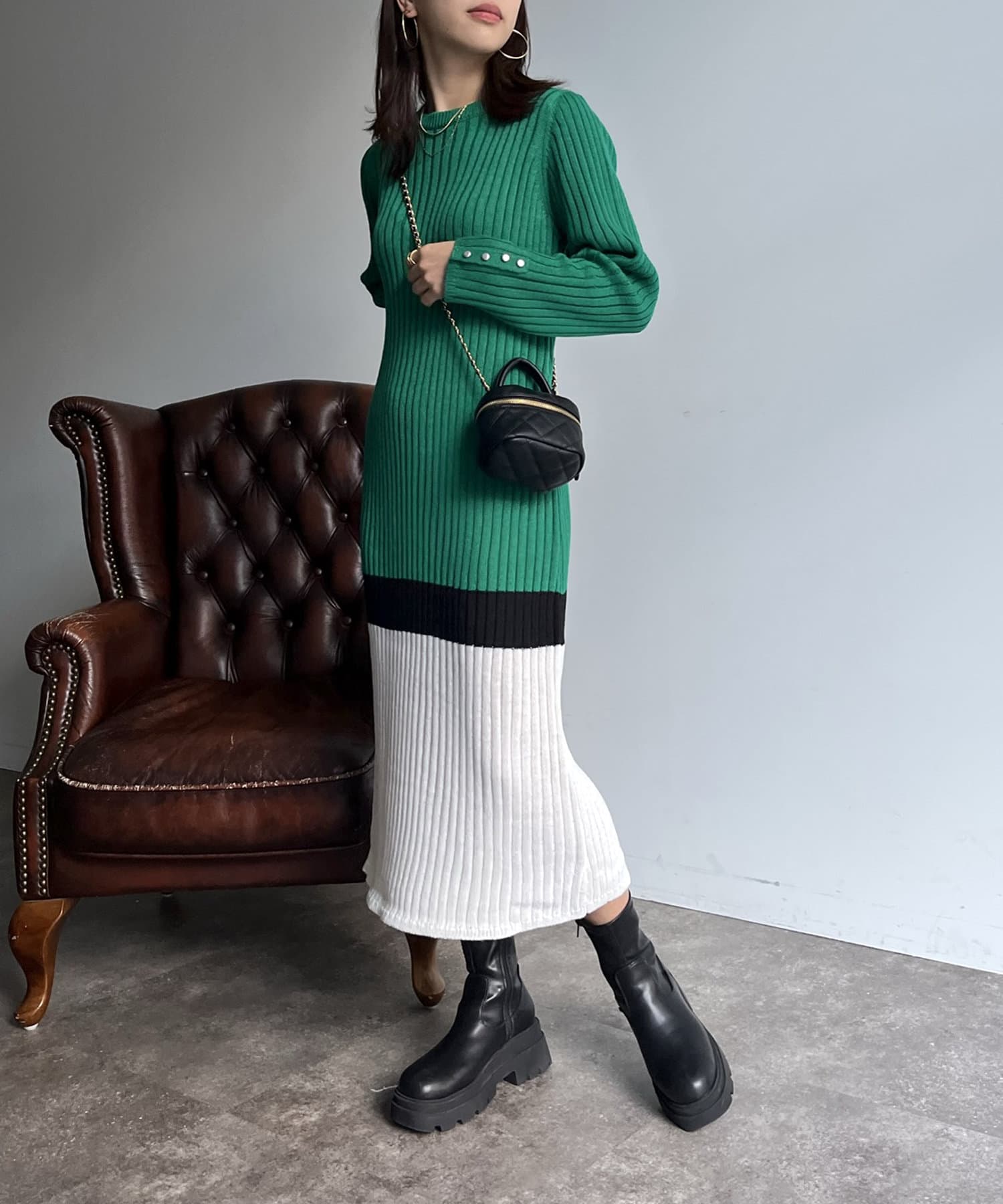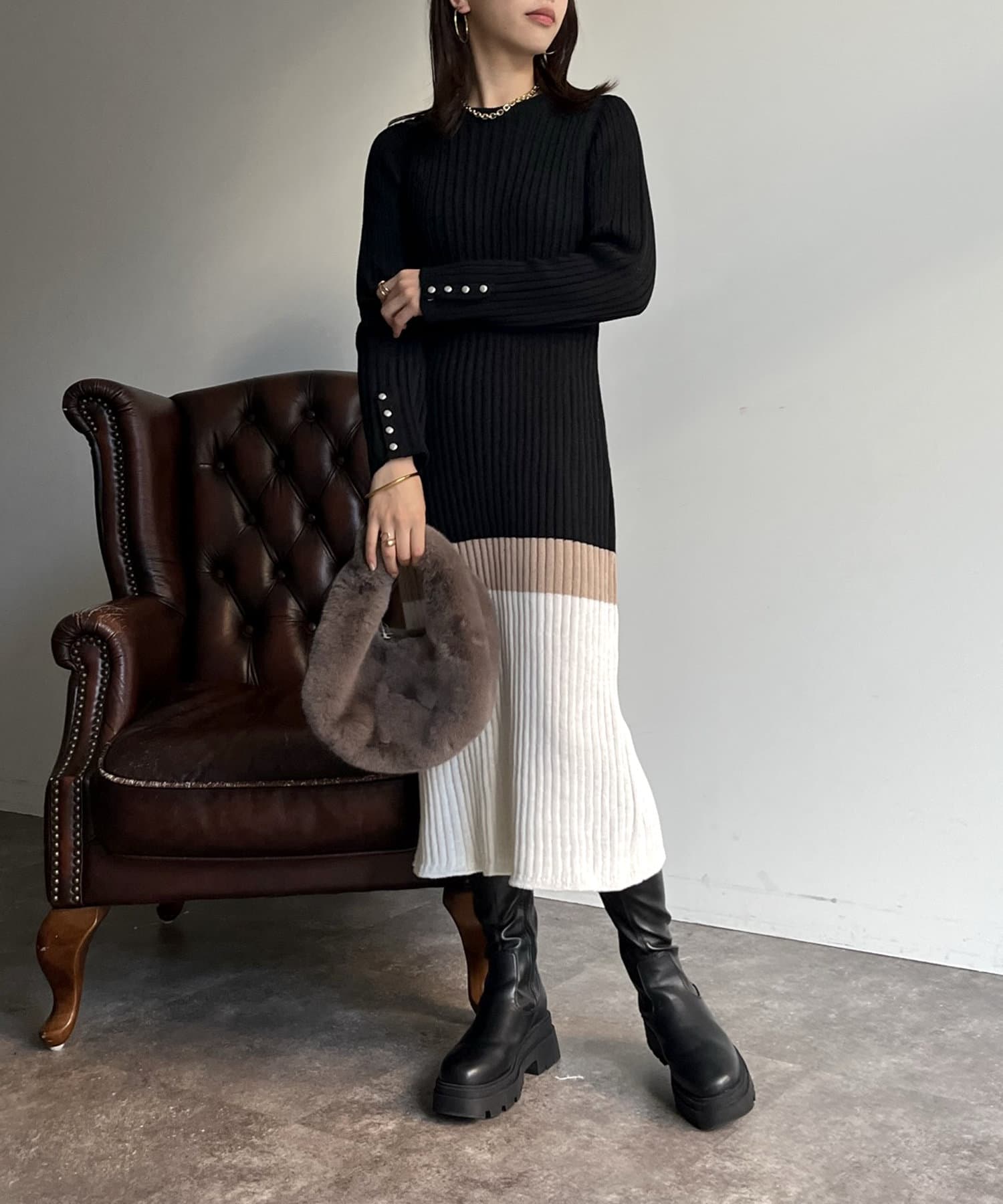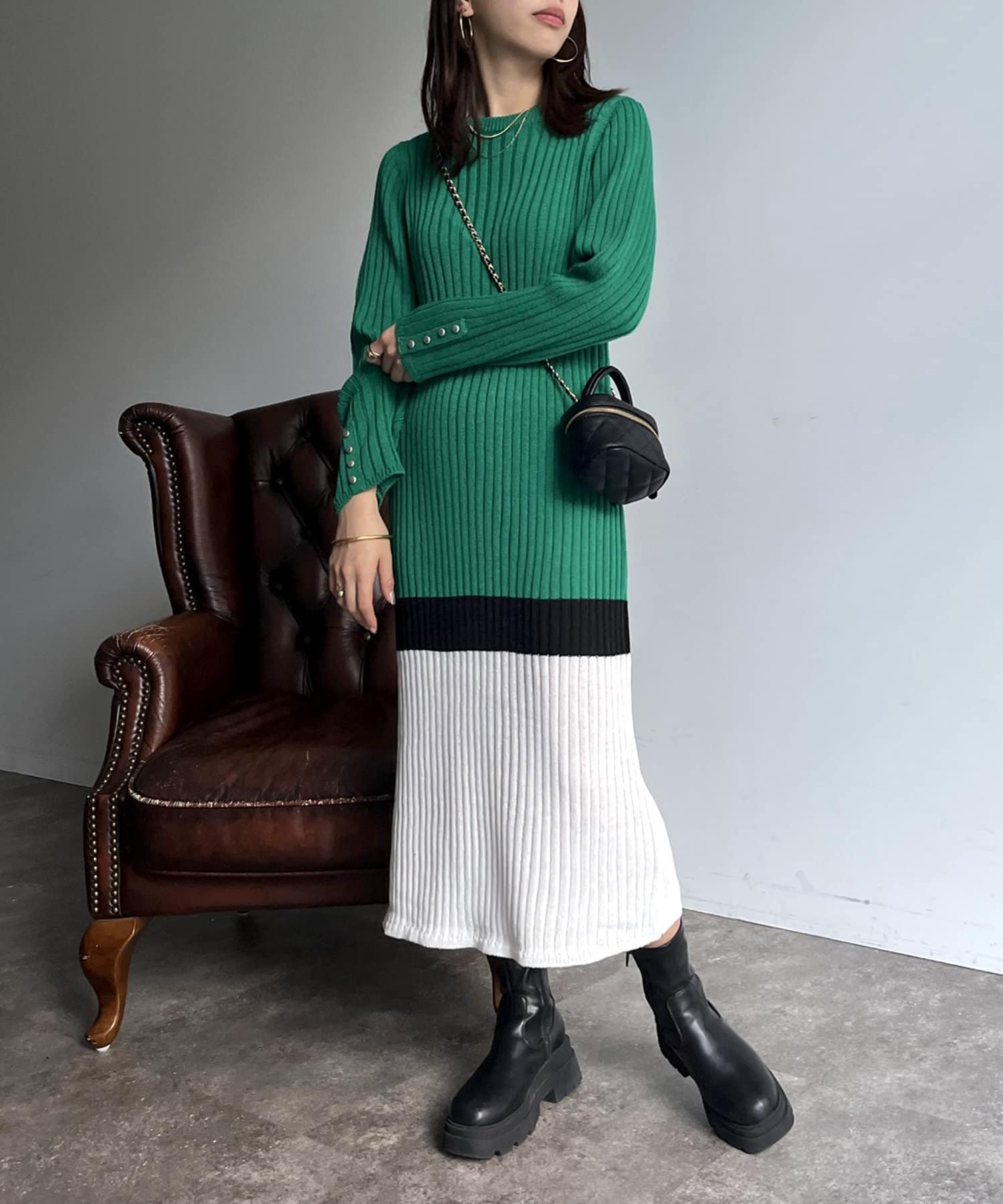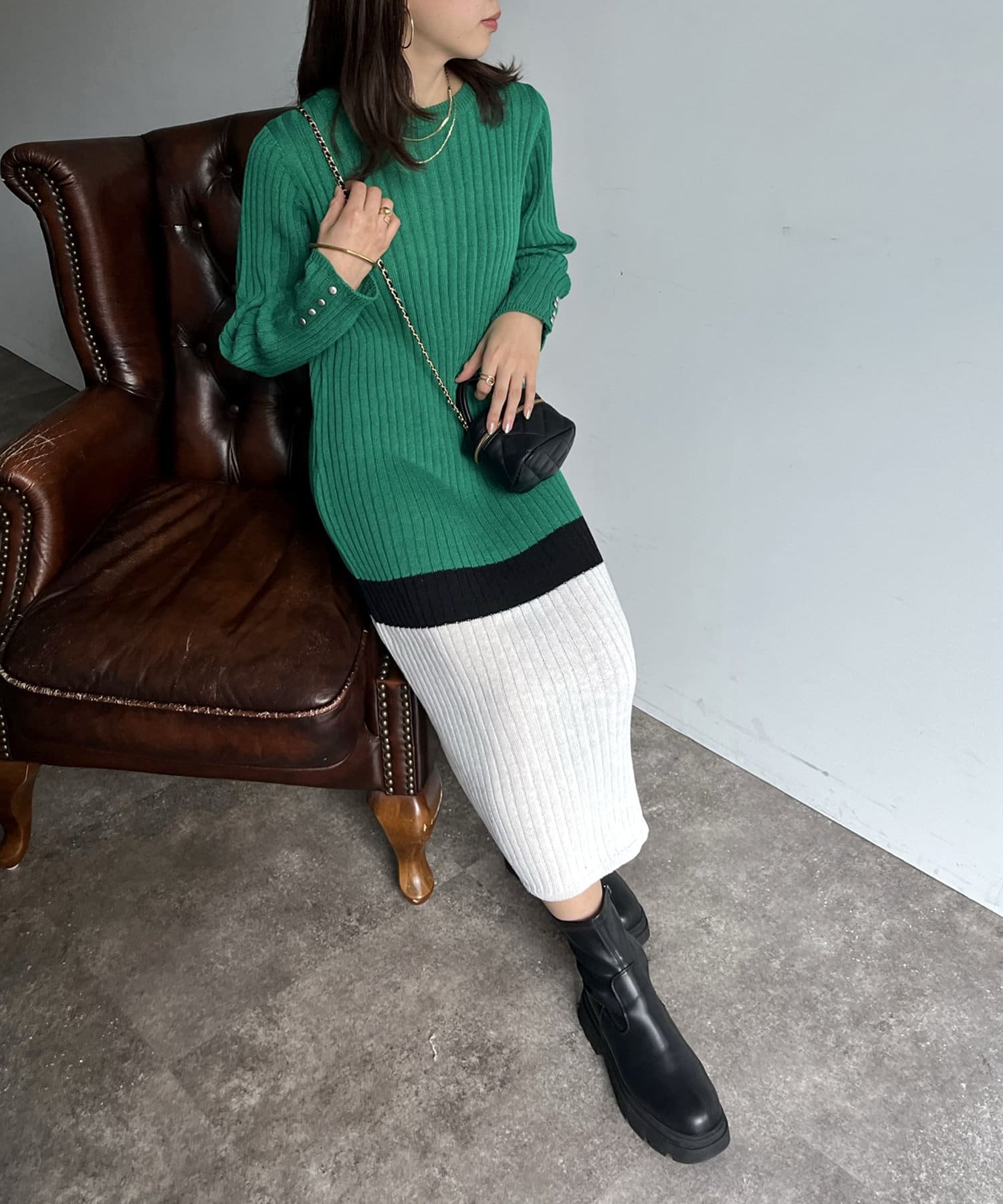Iラインがシルエットを綺麗に見せてくれるマルチカラーリブワンピ