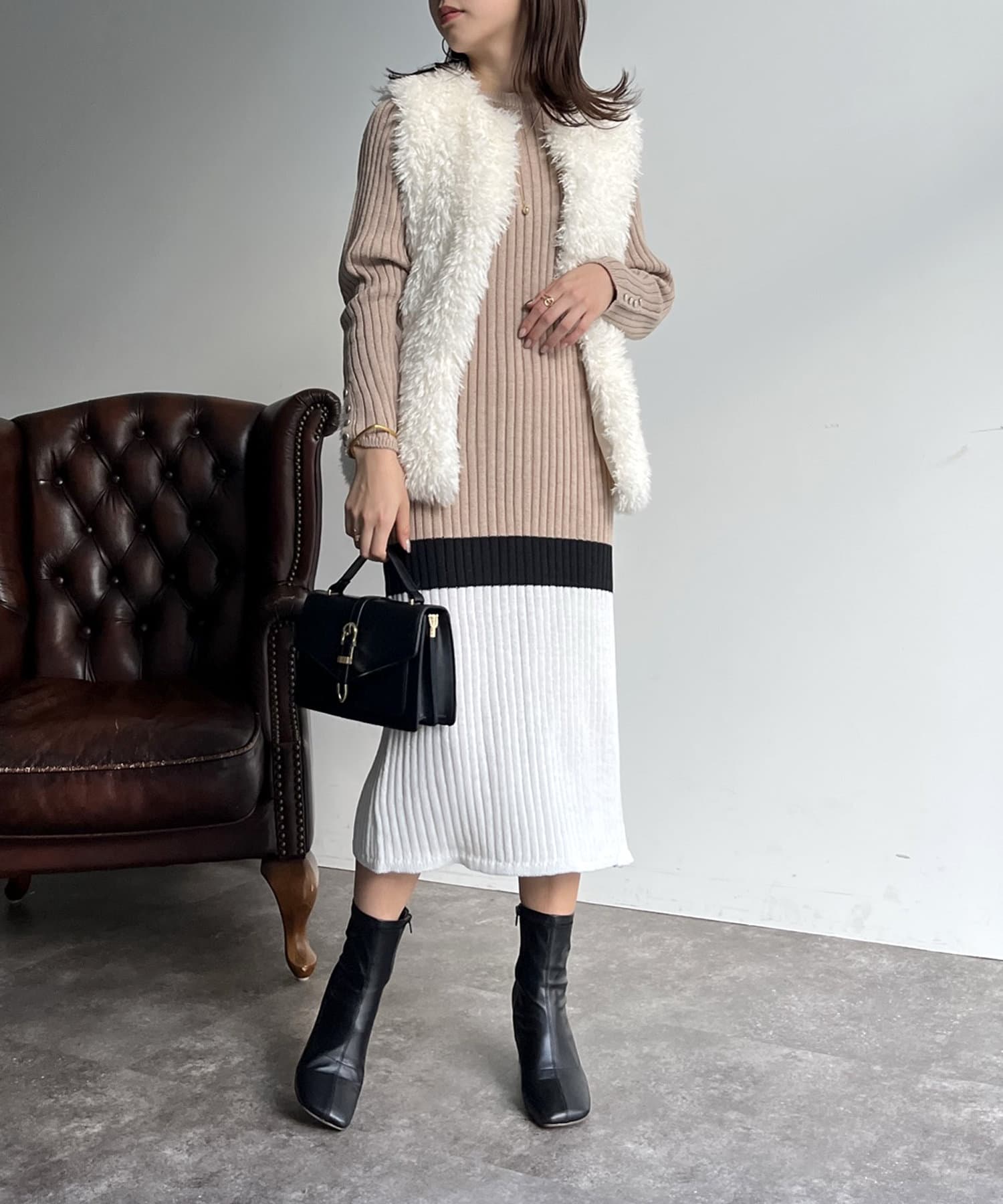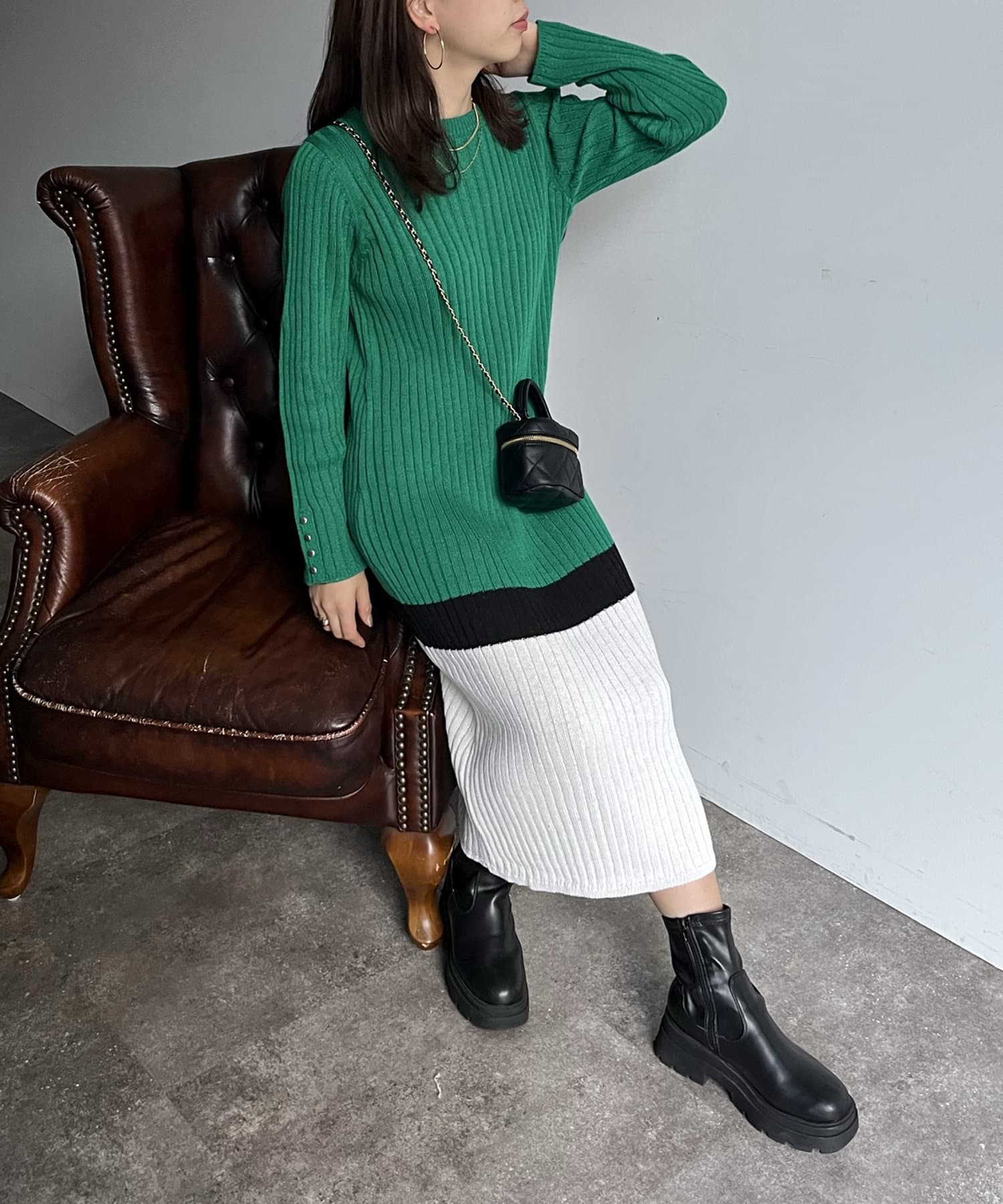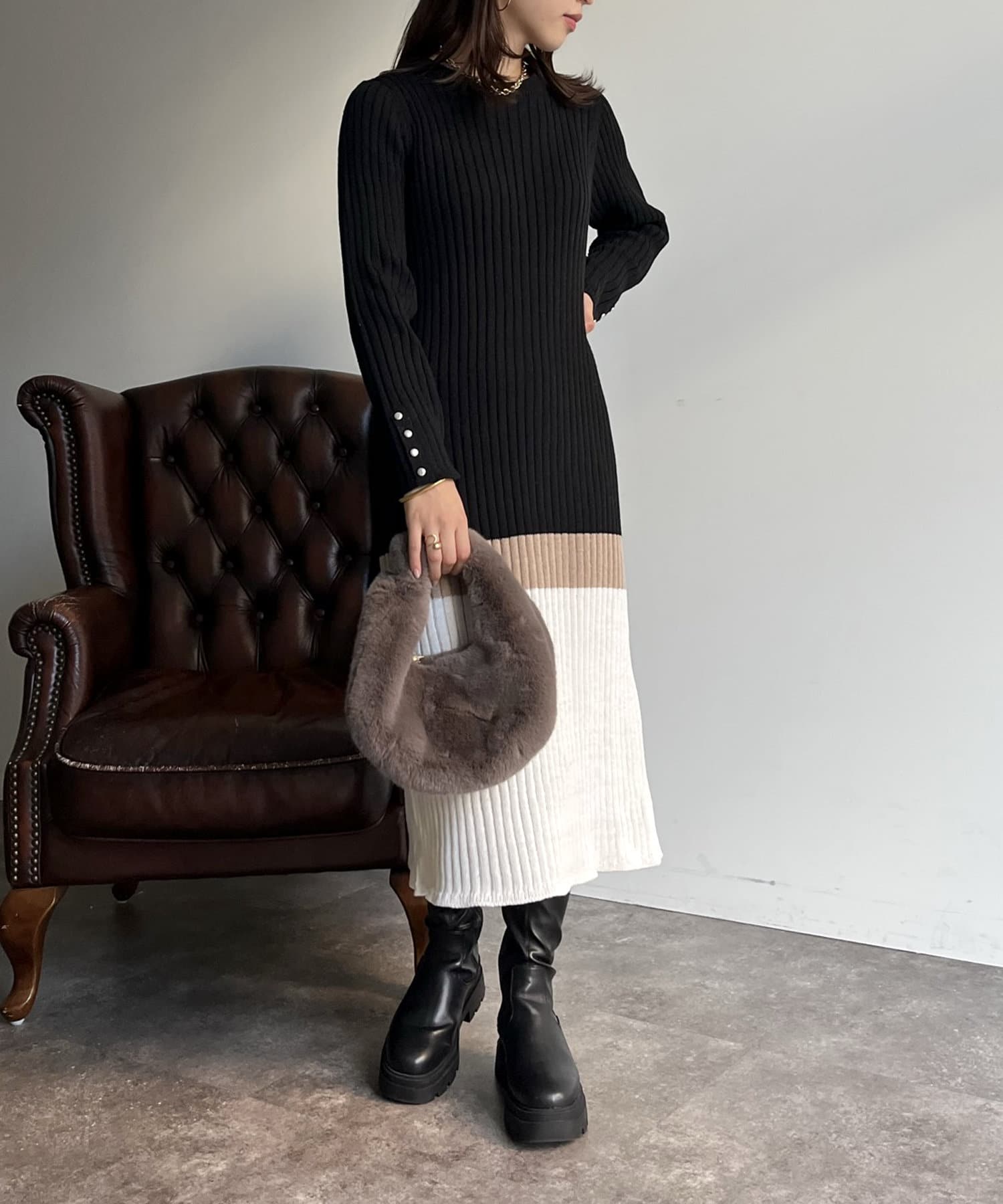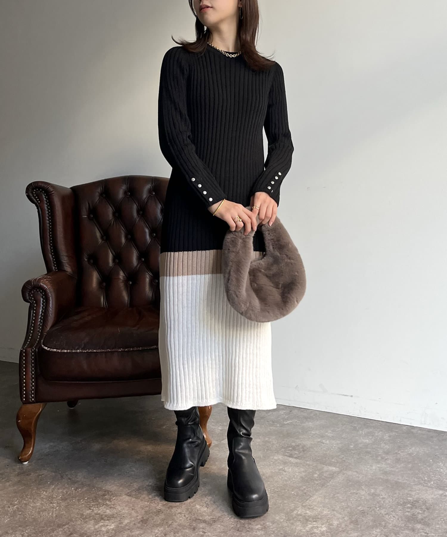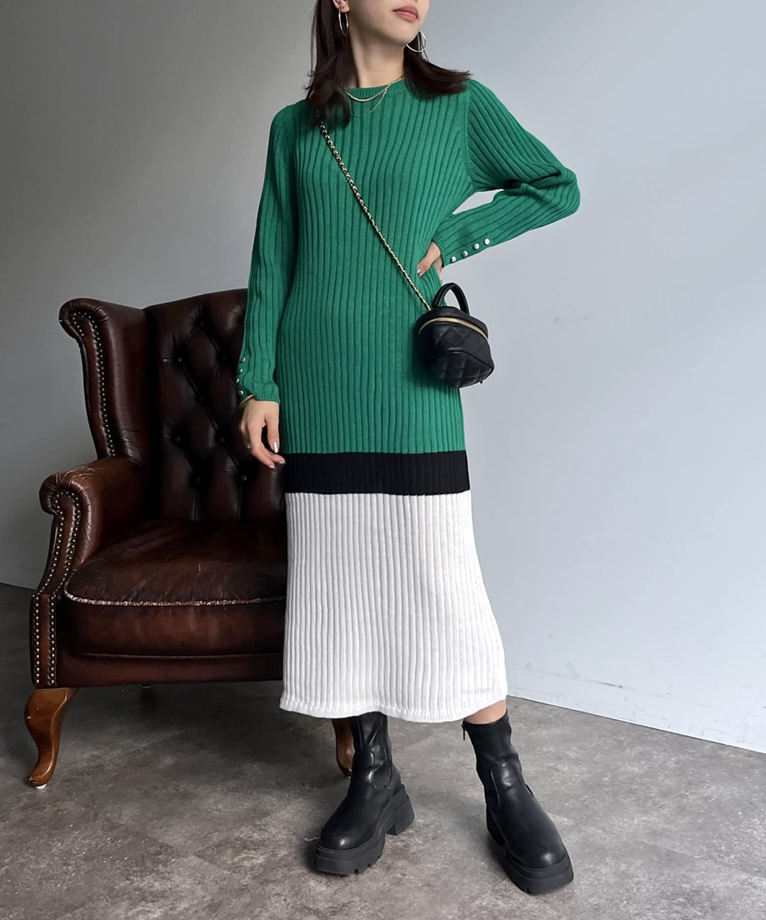 Iラインがシルエットを綺麗に見せてくれるマルチカラーリブワンピ
