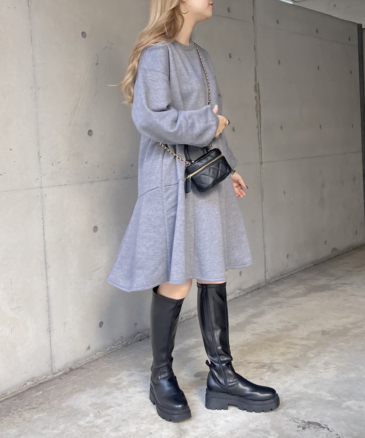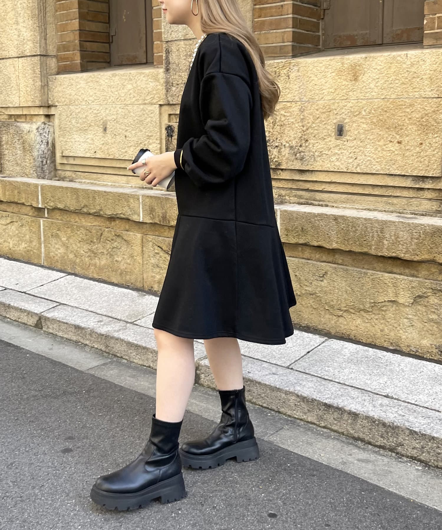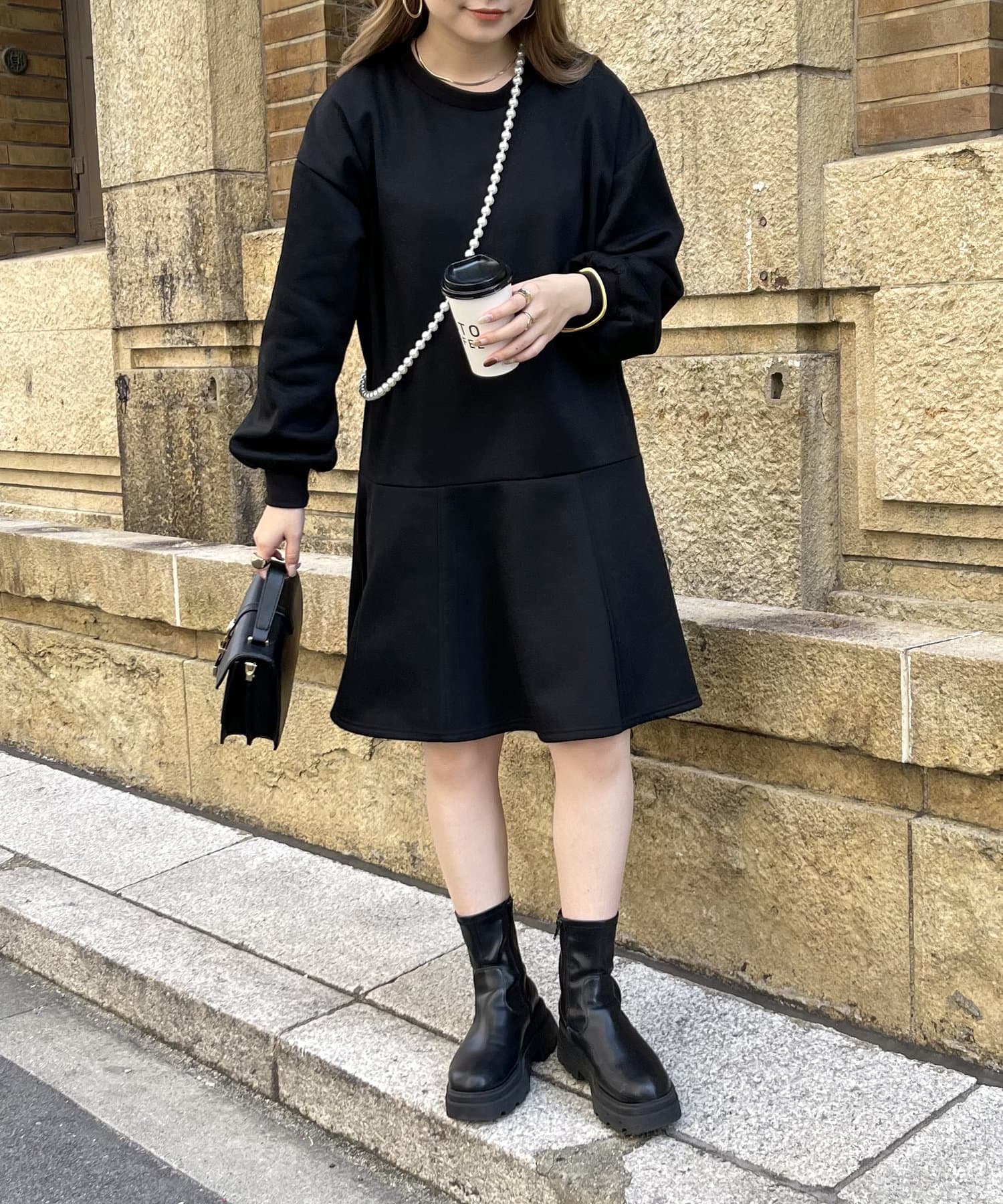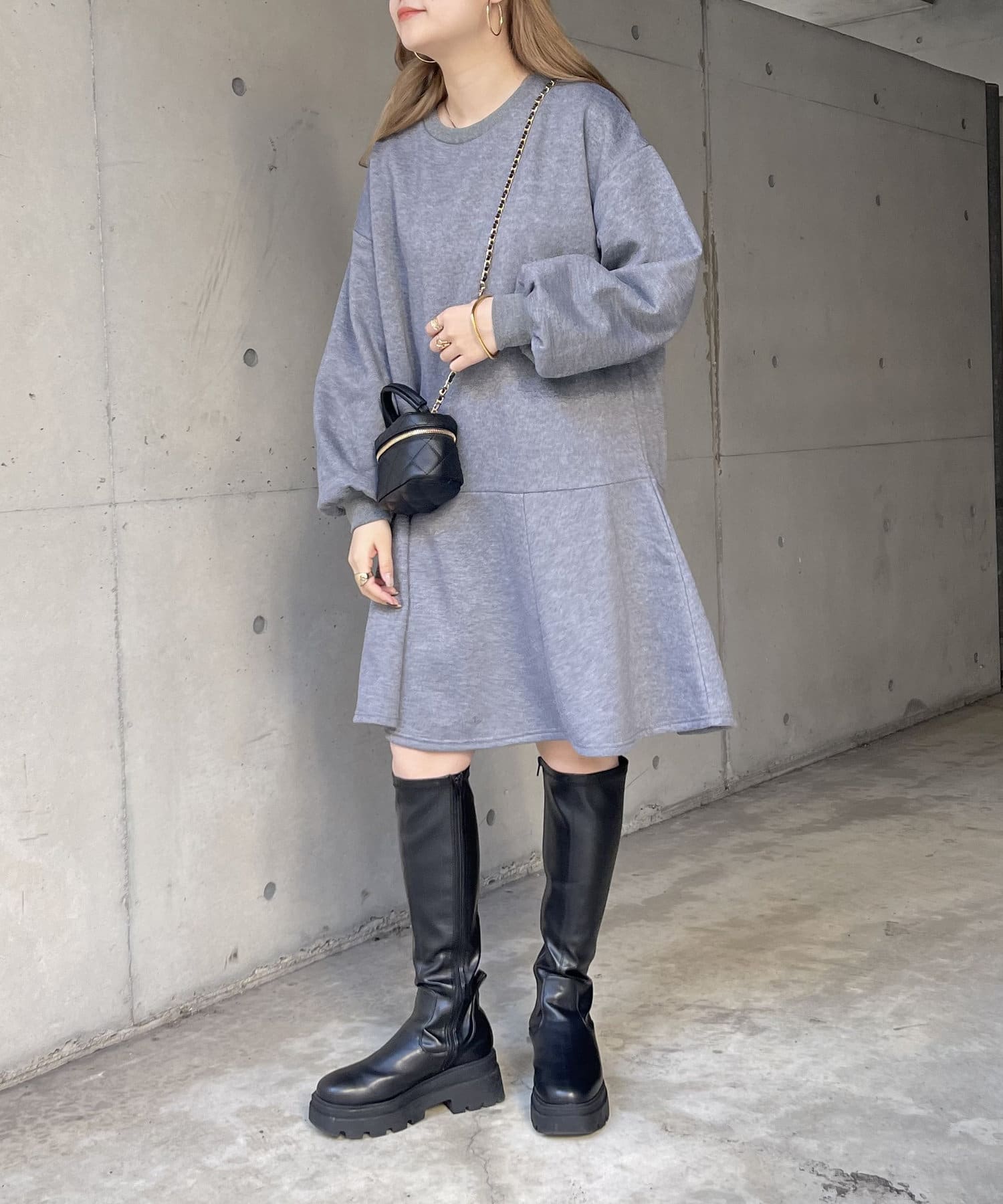 ワンピース / ミニワンピ /ミニ/袖ボリューム /裏起毛/