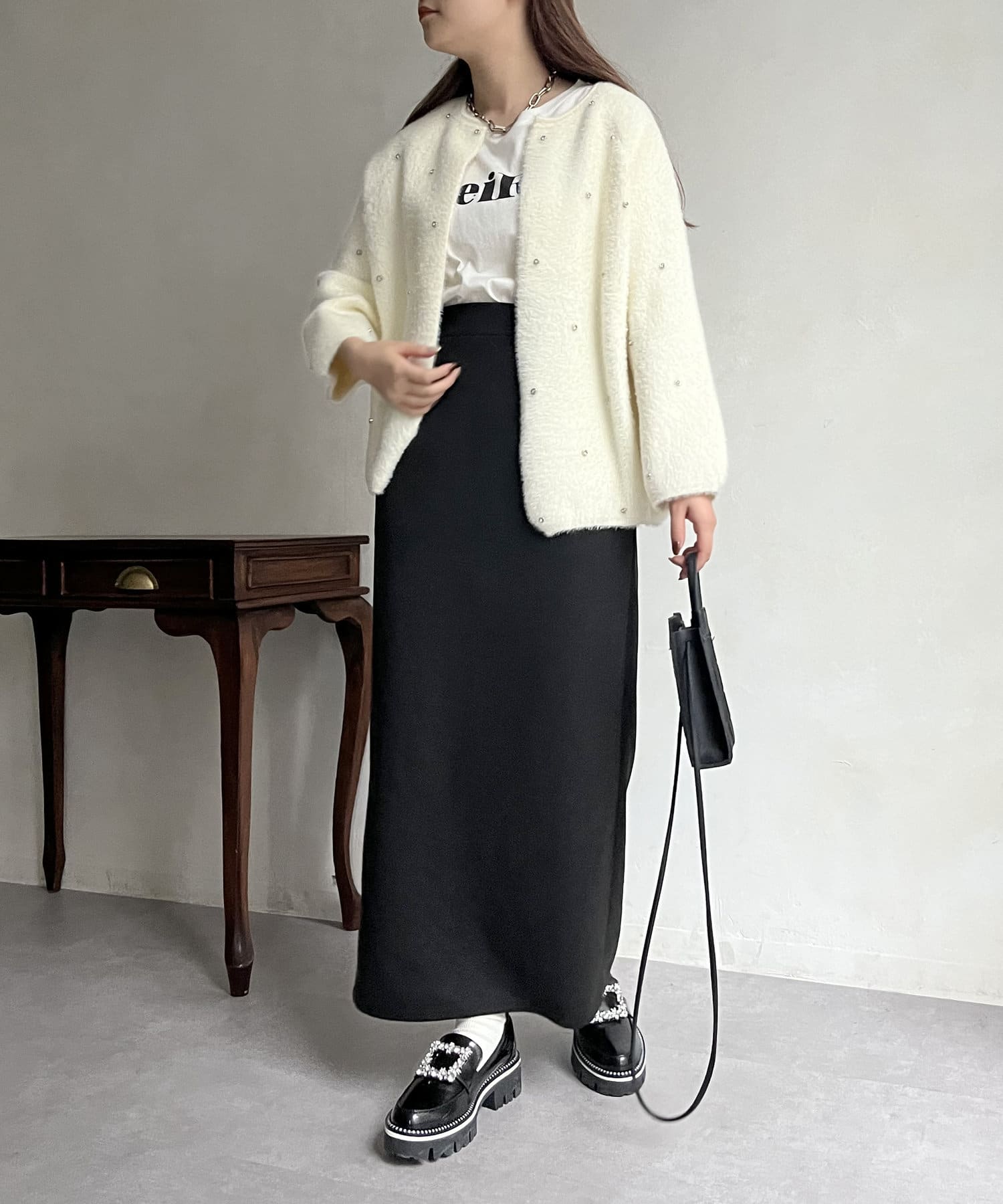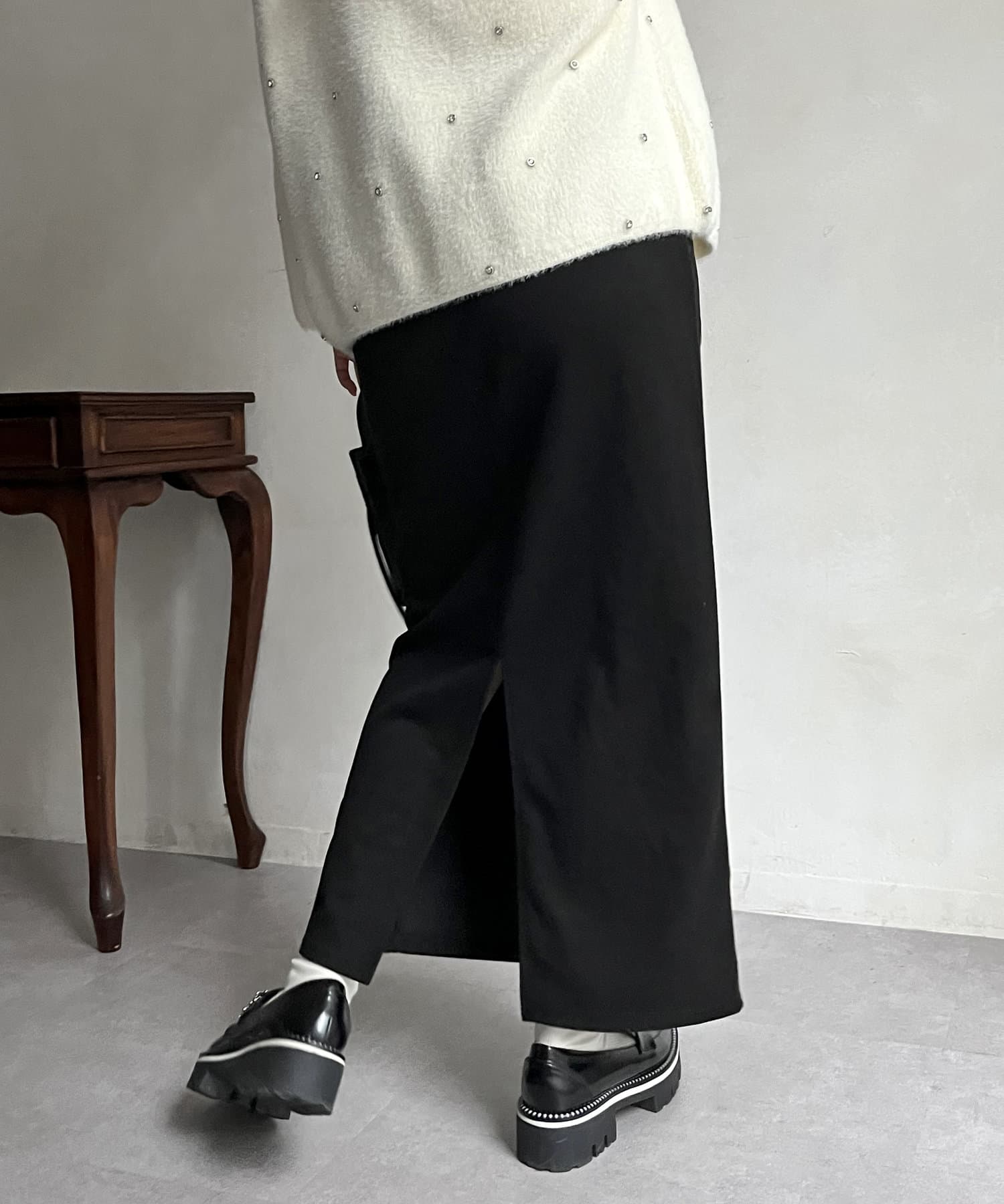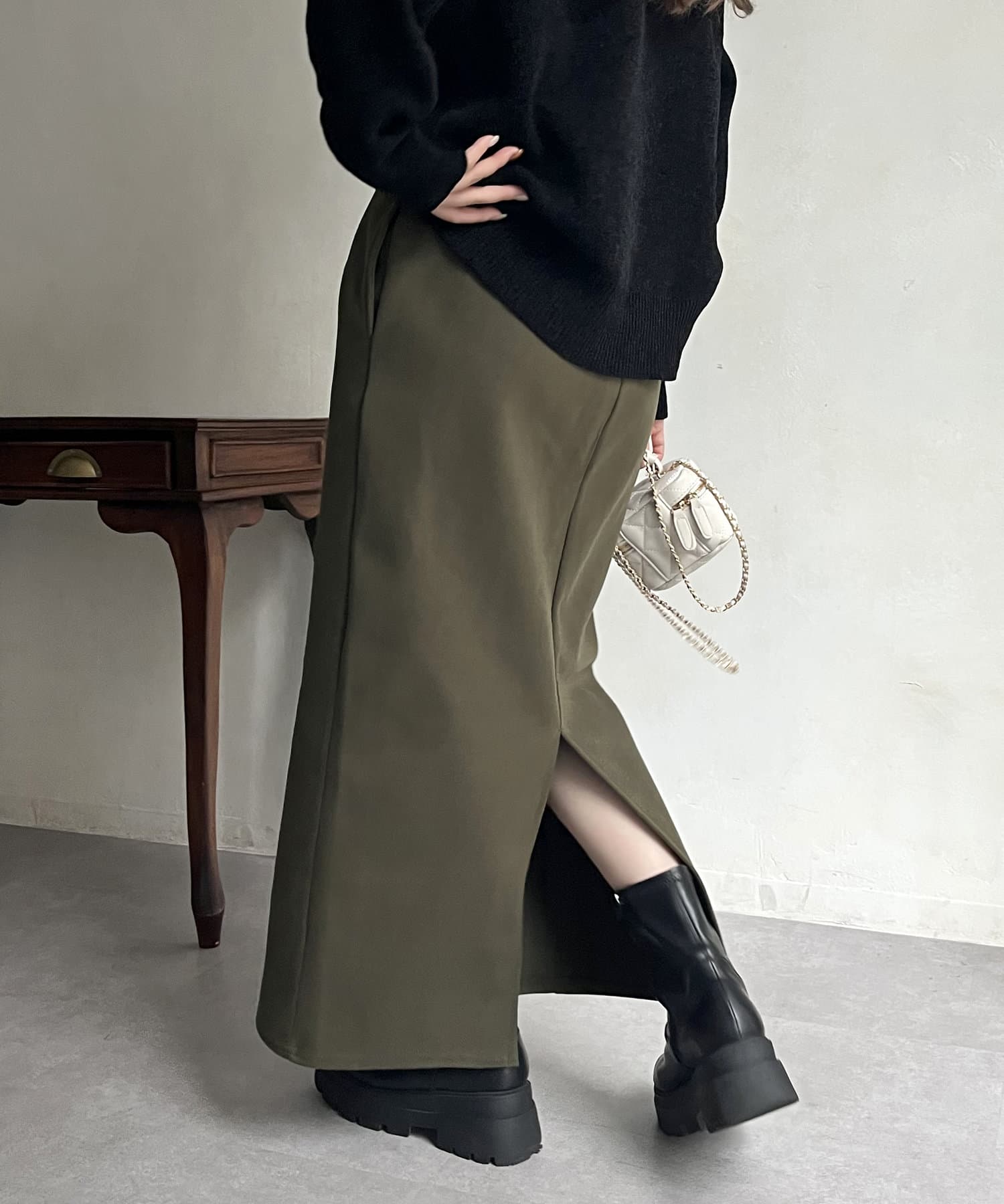シルエットが綺麗に見える着回し抜群起毛ナロースカート