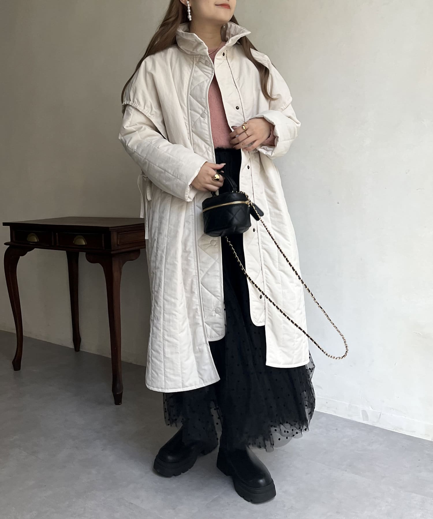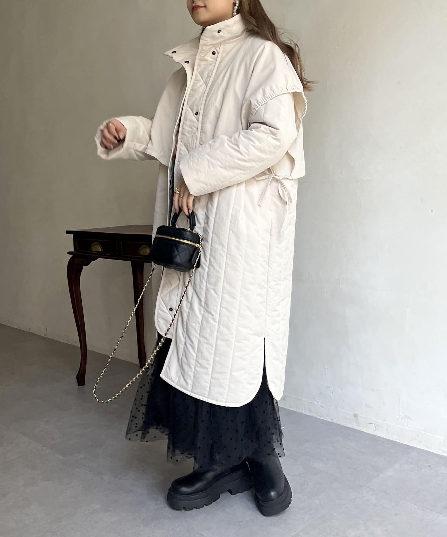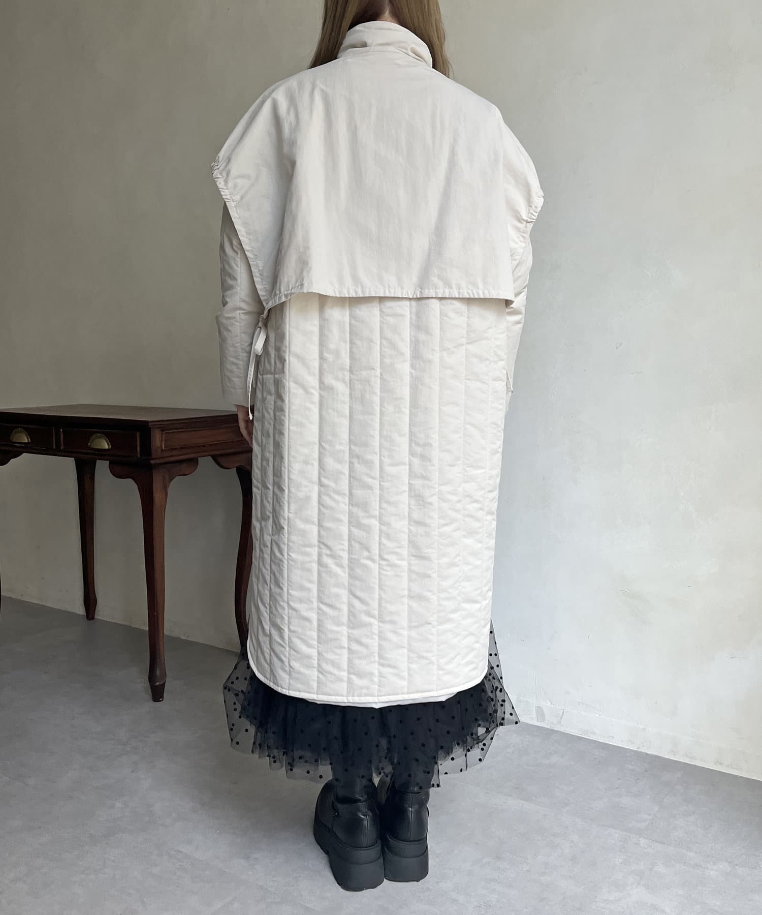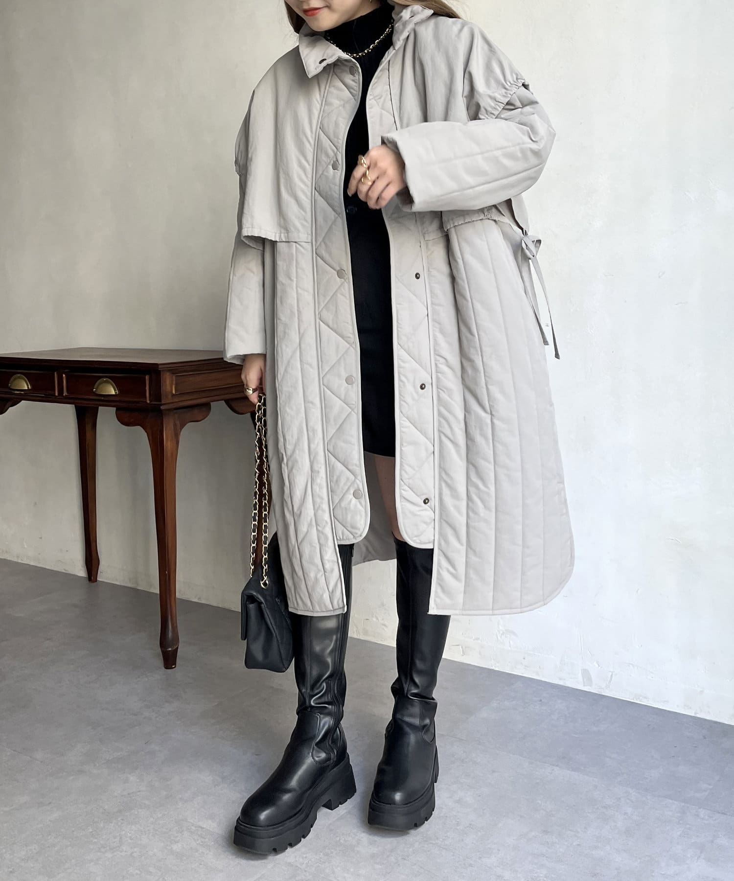 キルト切替スタンドネックコート