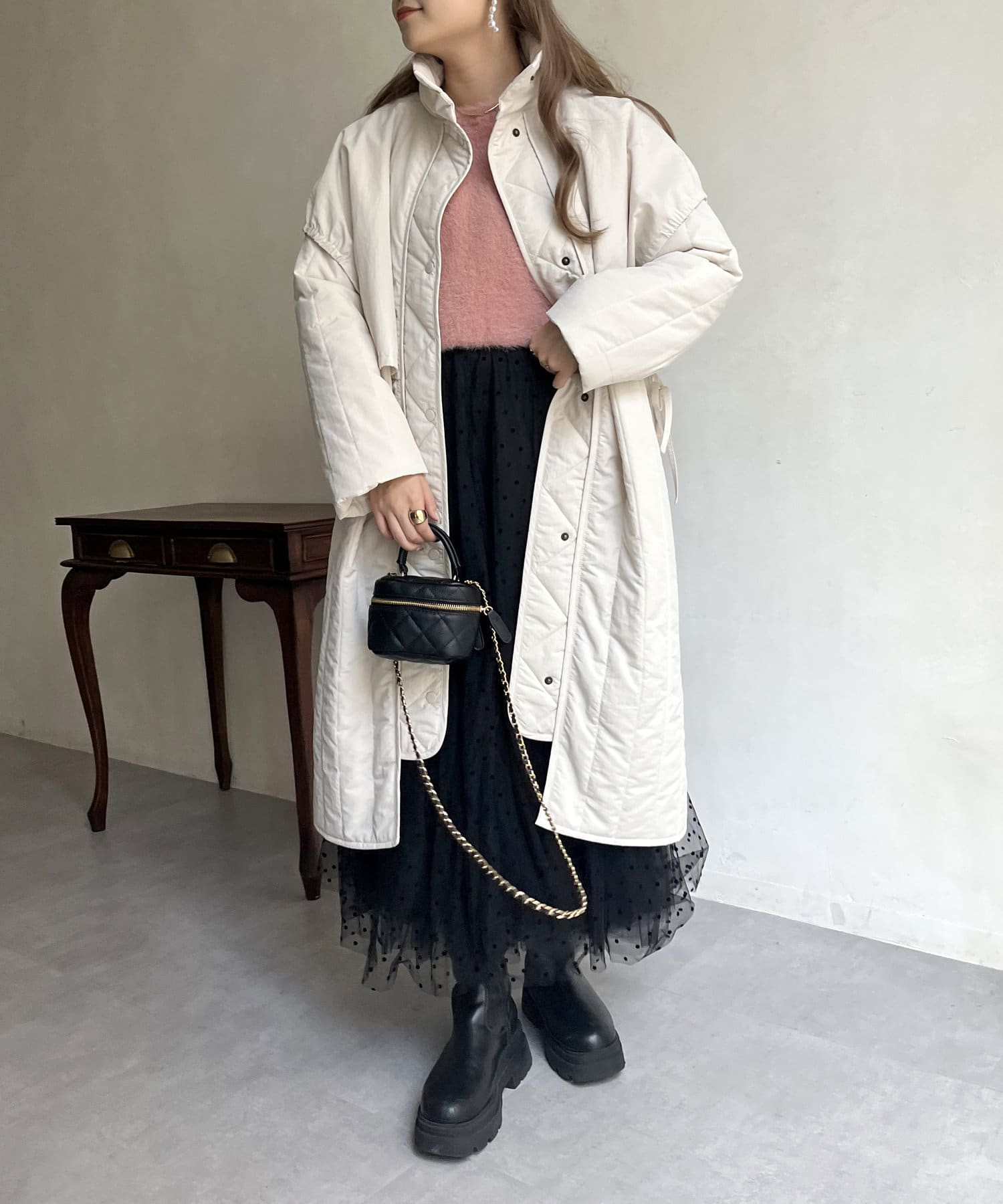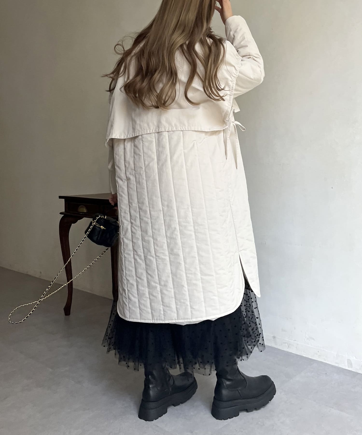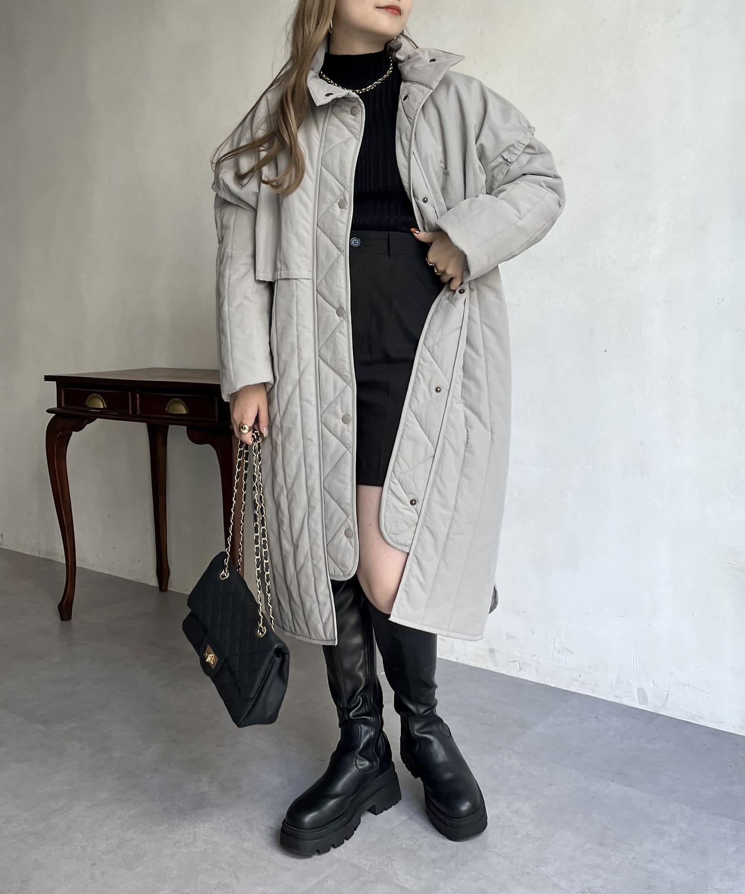 キルト切替スタンドネックコート