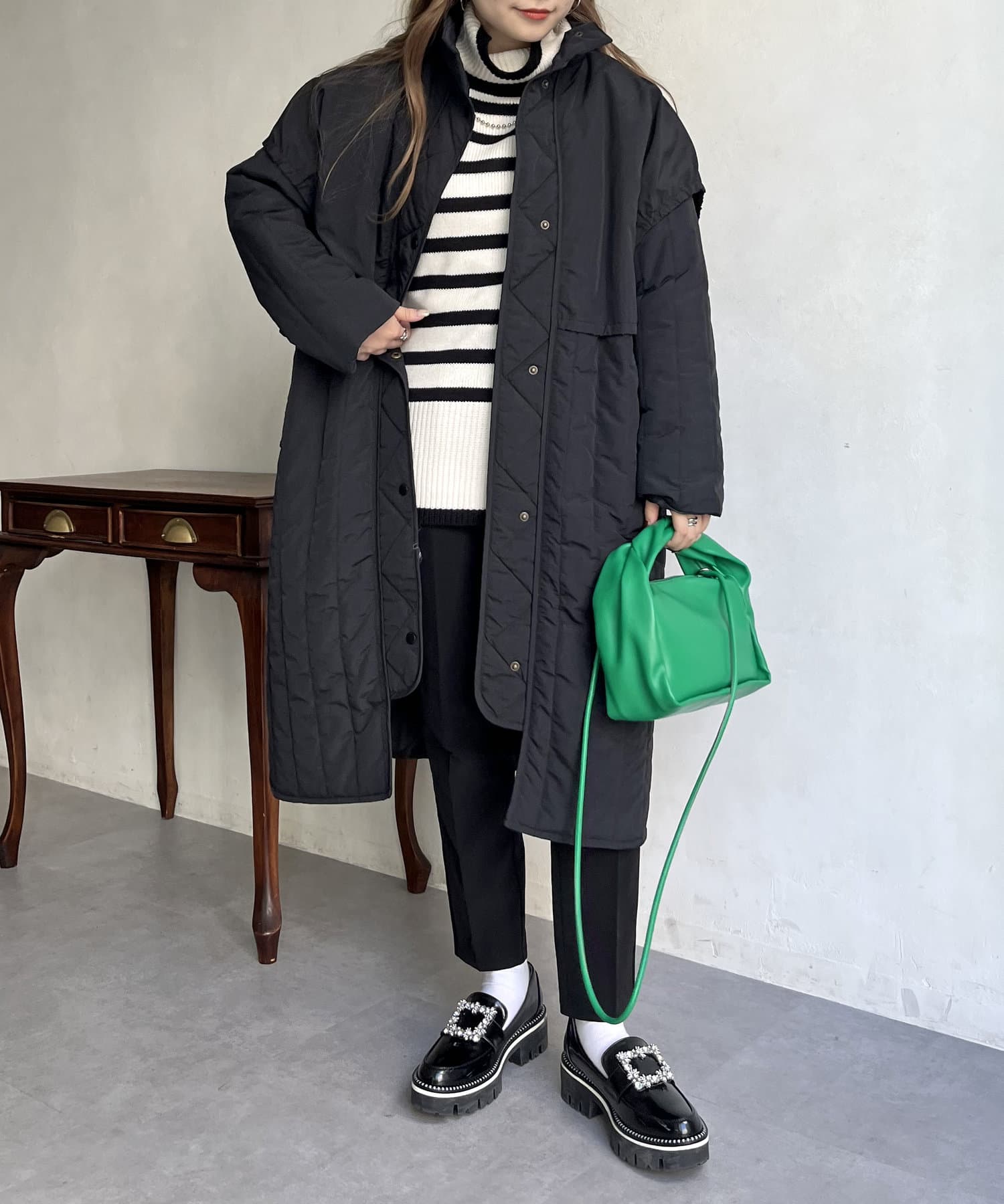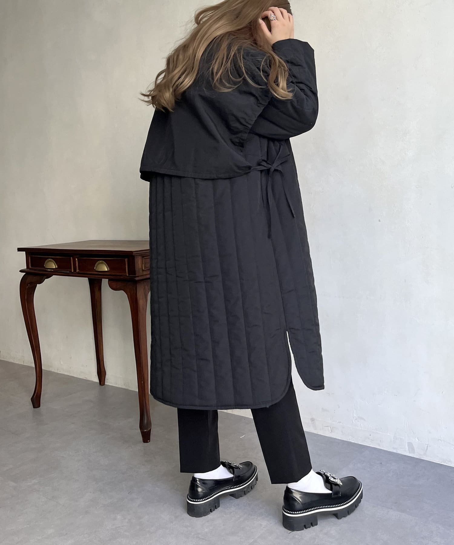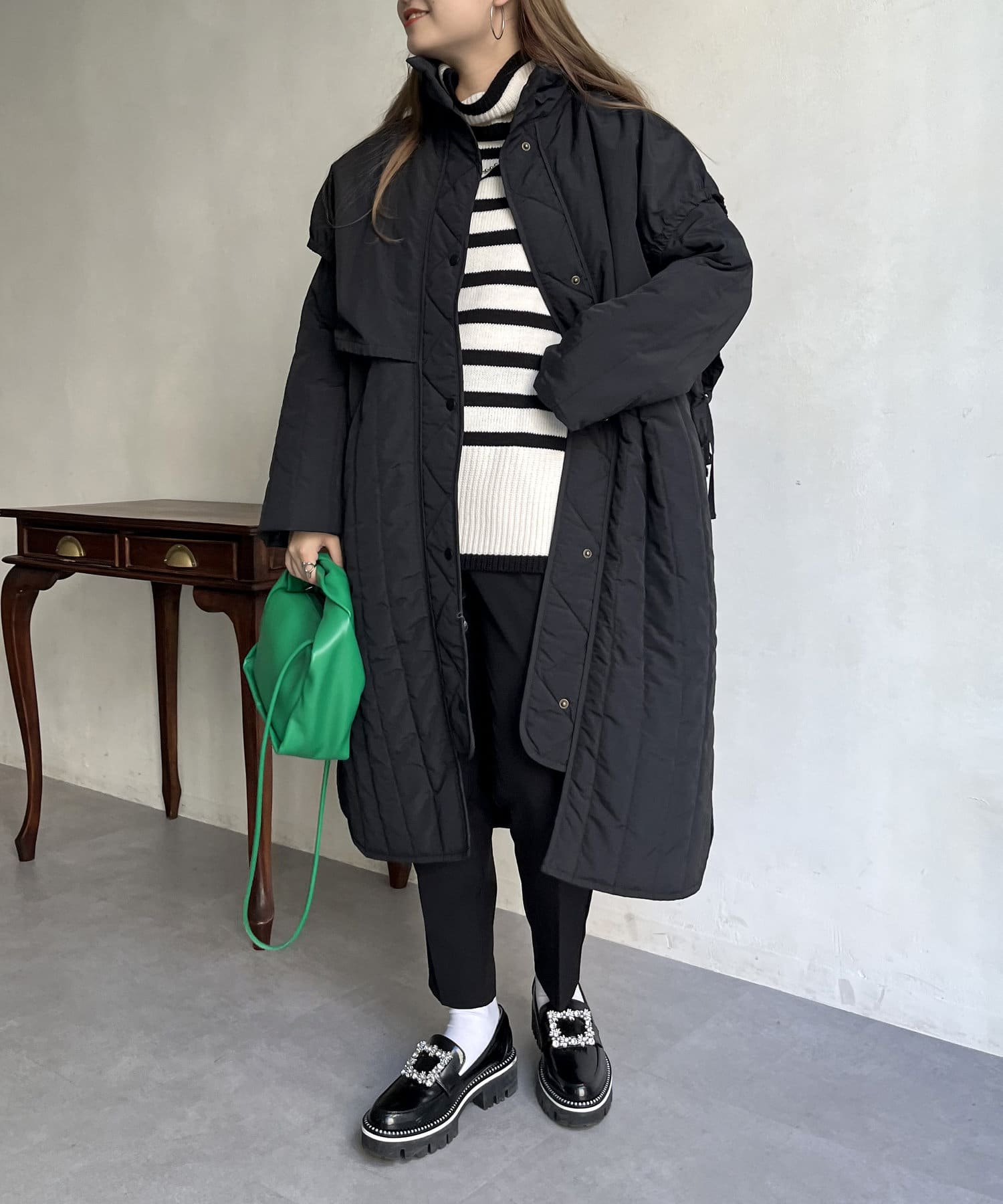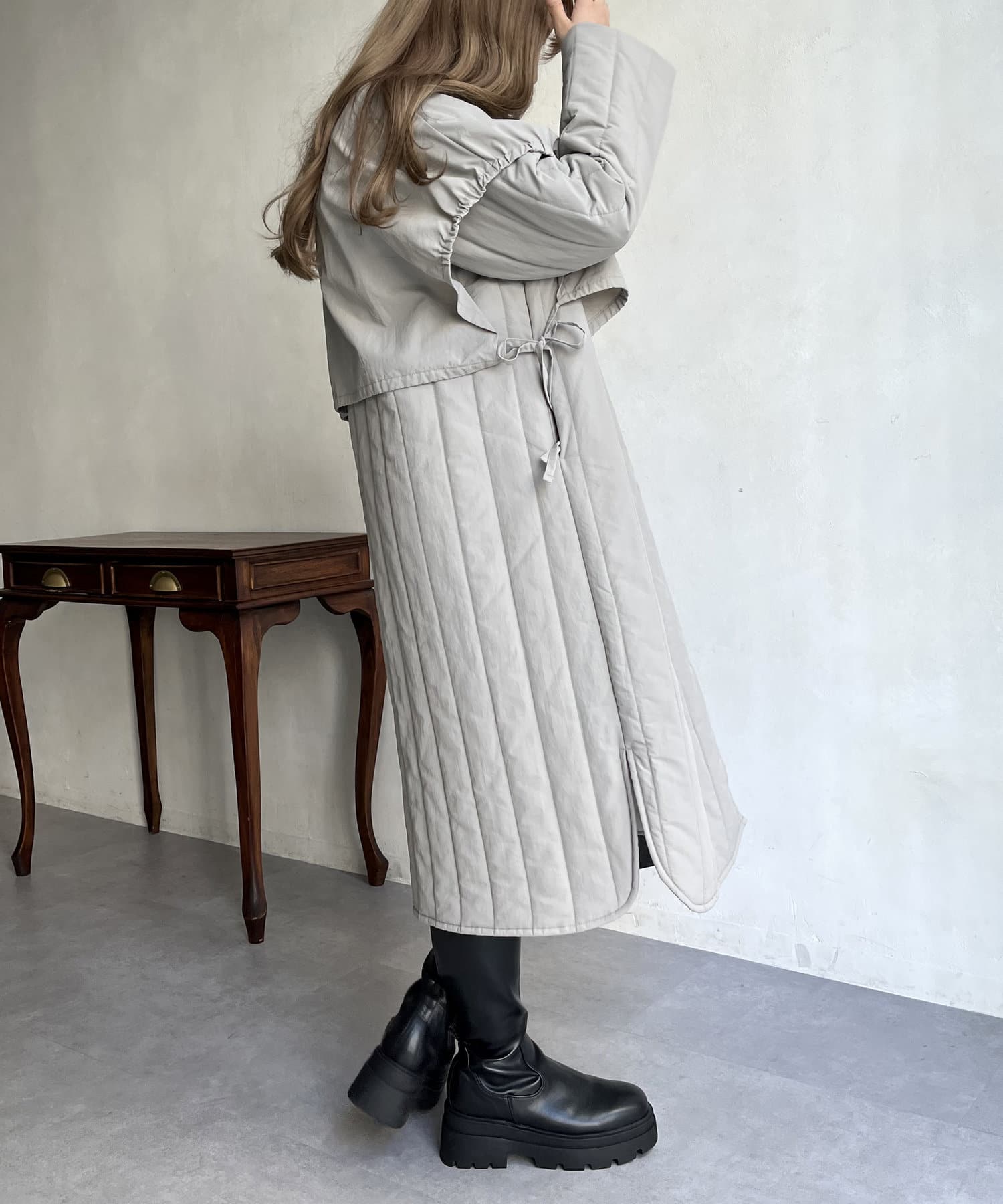 キルト切替スタンドネックコート