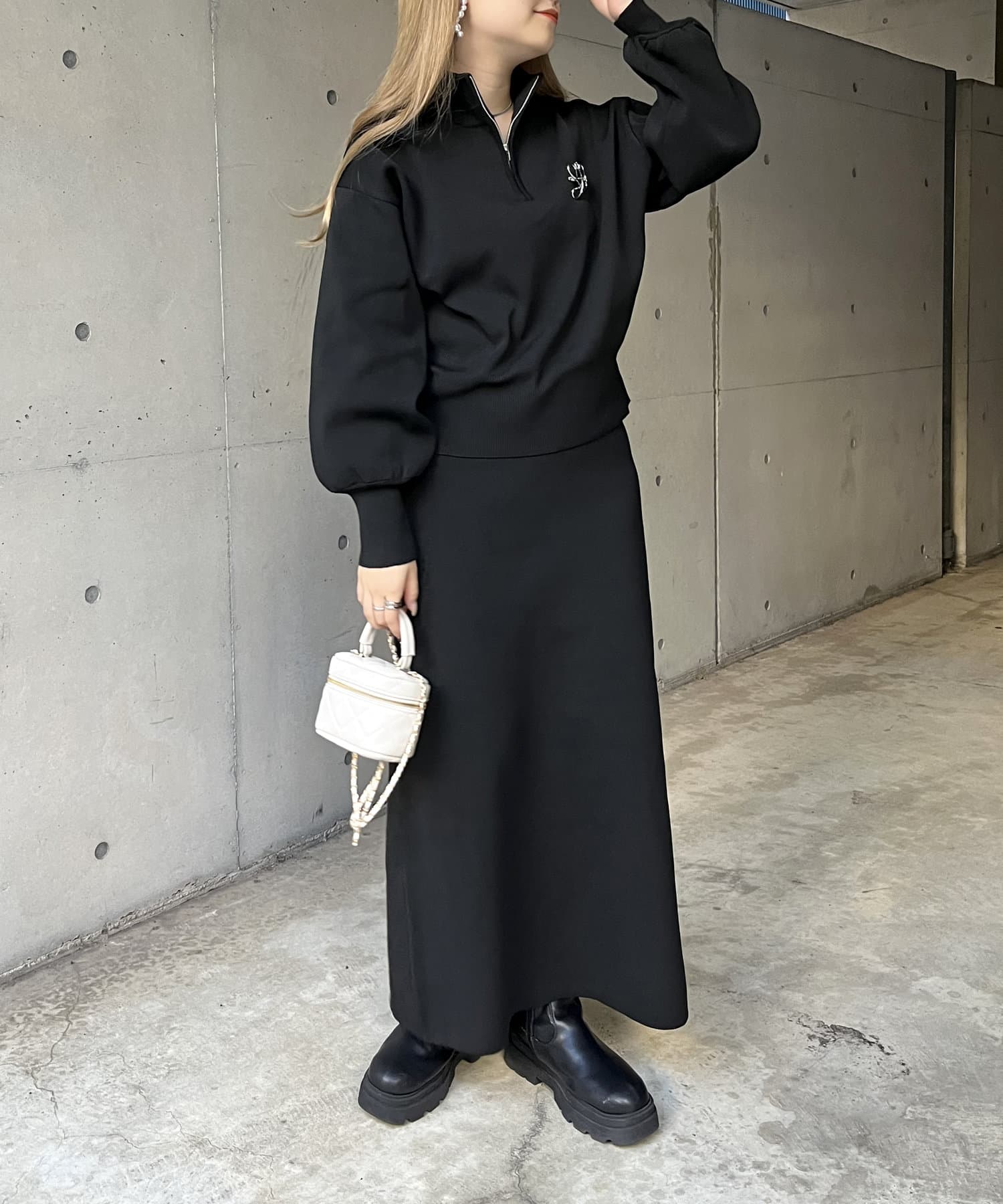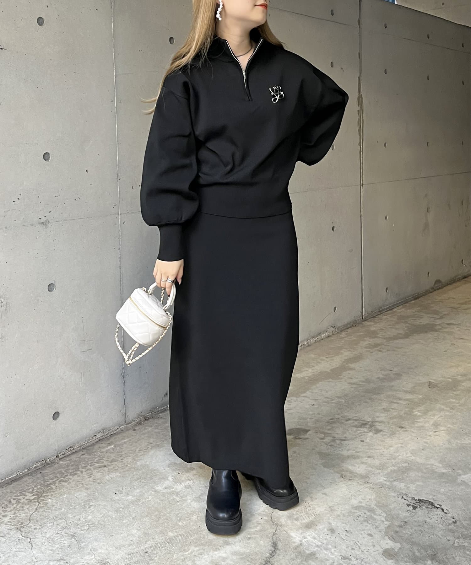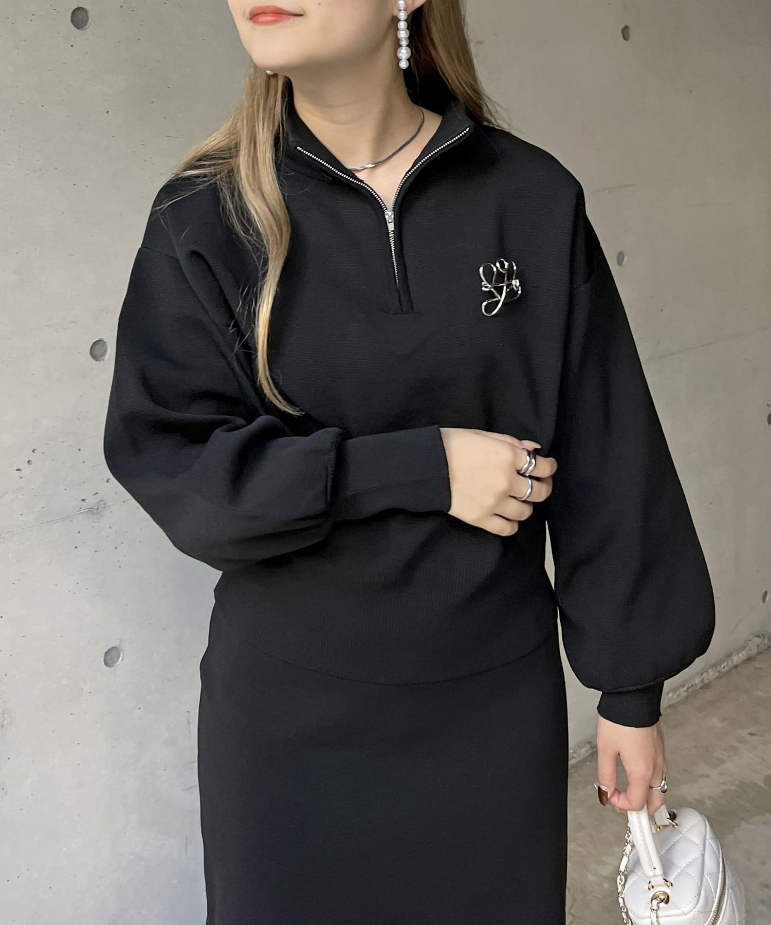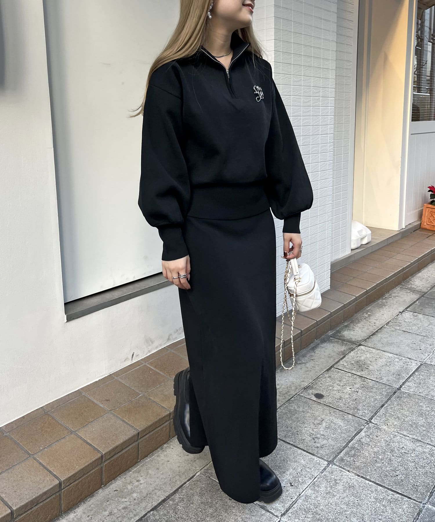 ●ハーフジップに袖ふわっと、タイトスカートで綺麗なシルエットに見せてくれます!