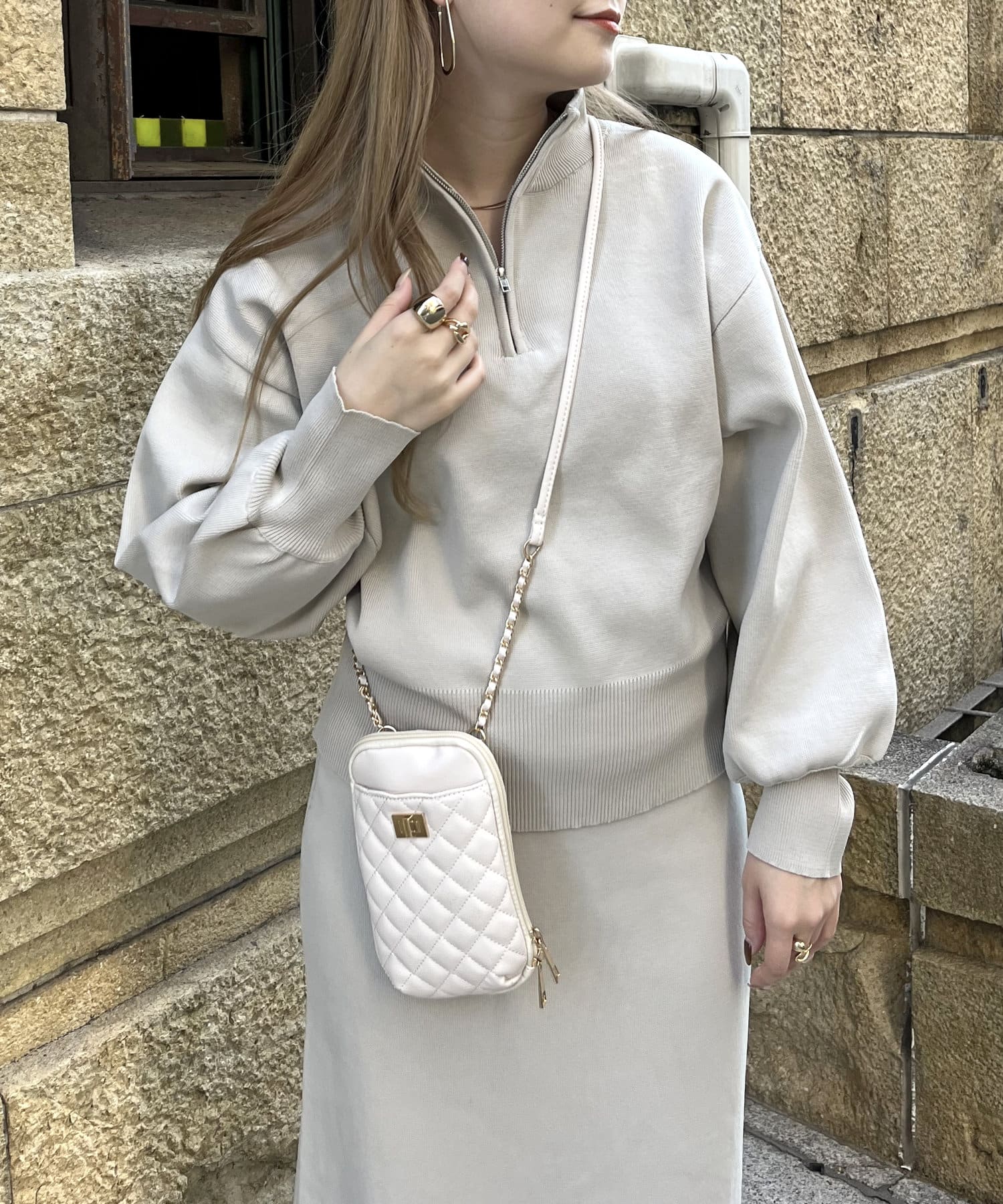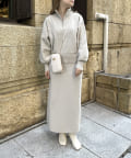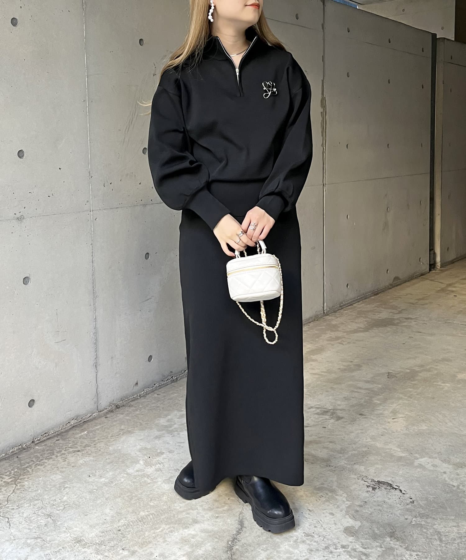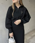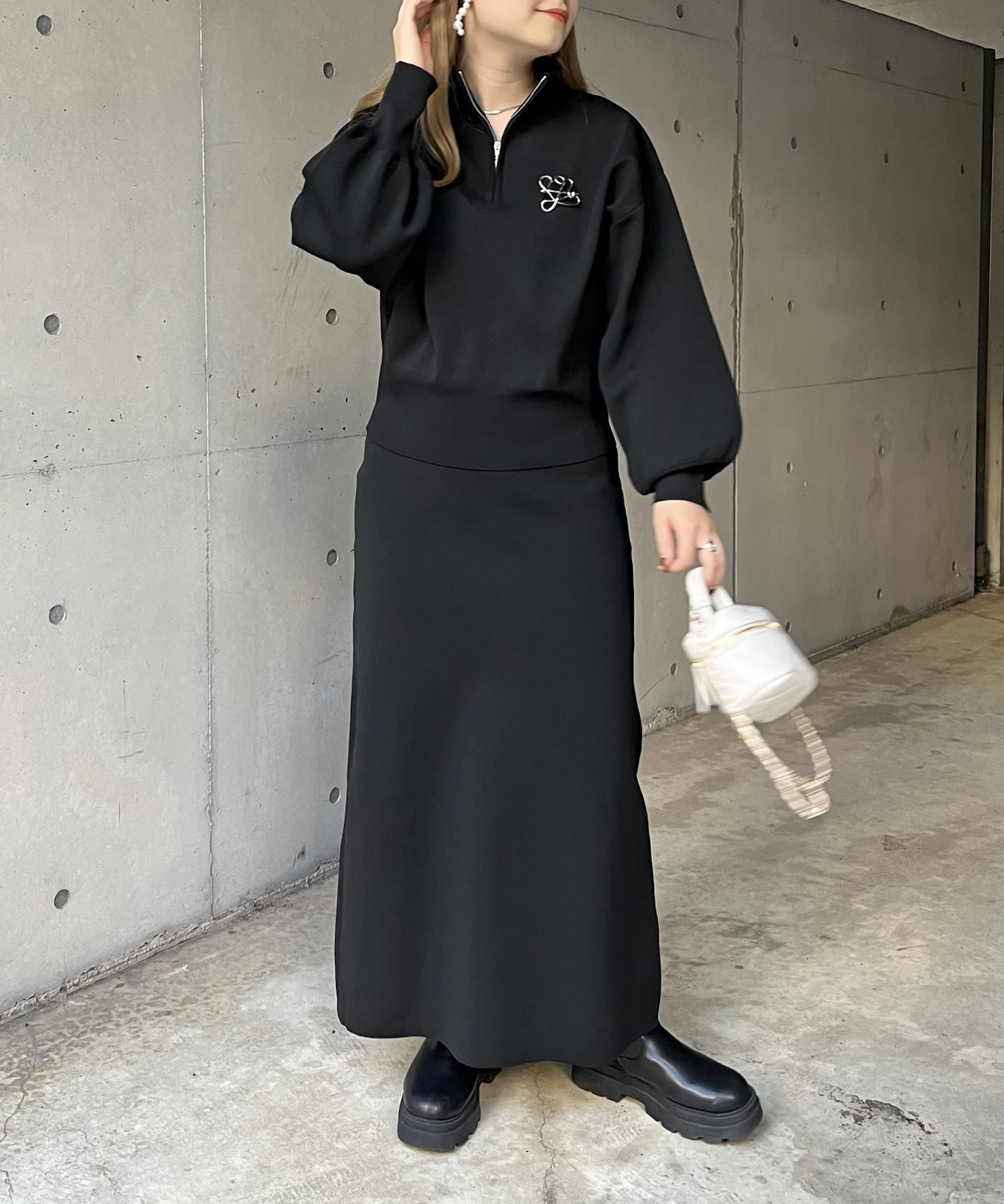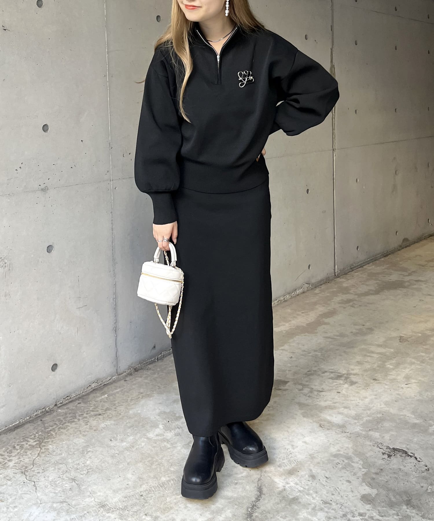 ●ハーフジップに袖ふわっと、タイトスカートで綺麗なシルエットに見せてくれます!