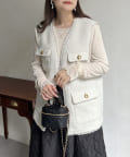 ベスト/ ツイード / フリンジ / 金ボタン/キレイめカジュアル