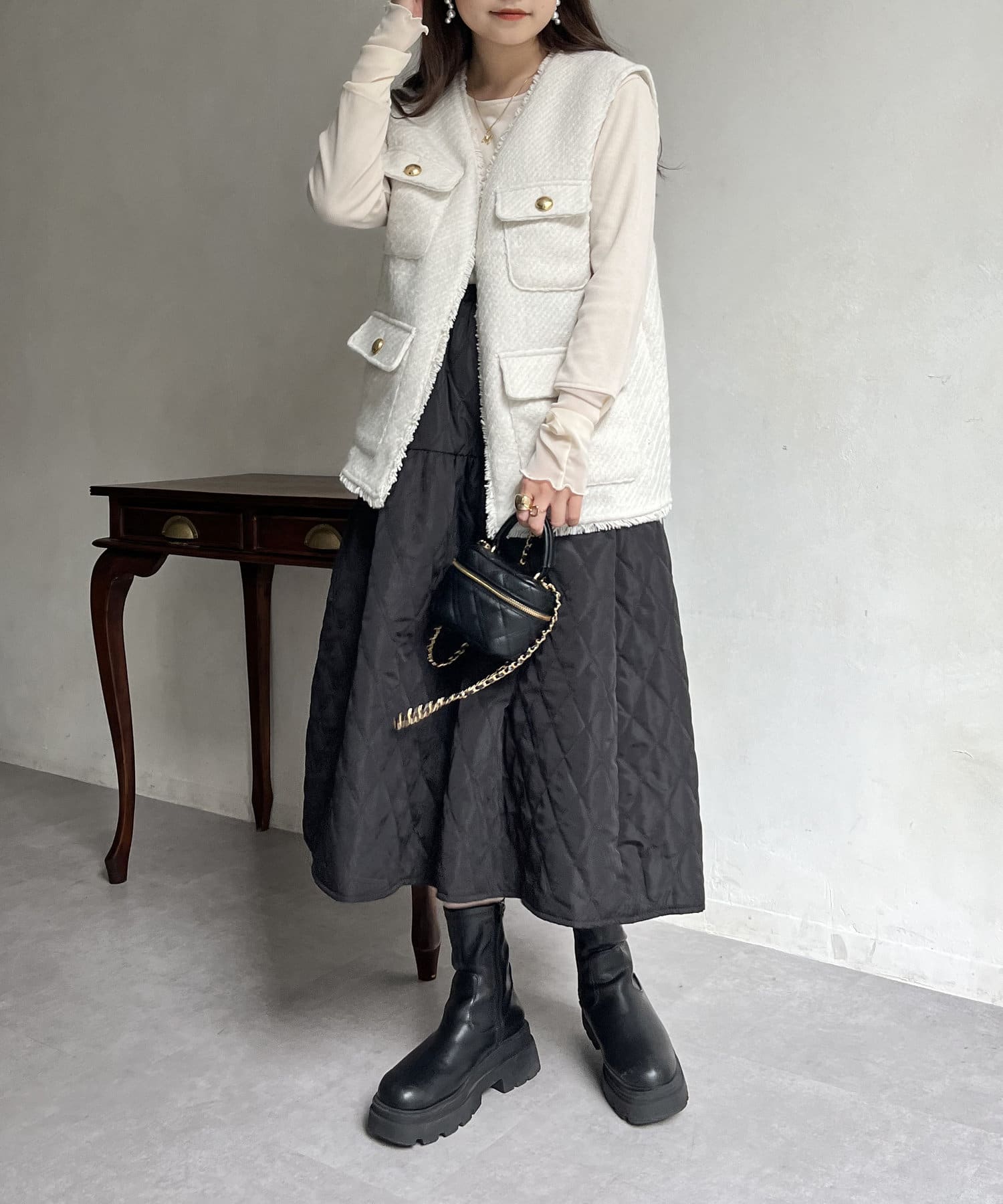 ●ツイード素材×フリンジがこなれた印象に見せてくれます!