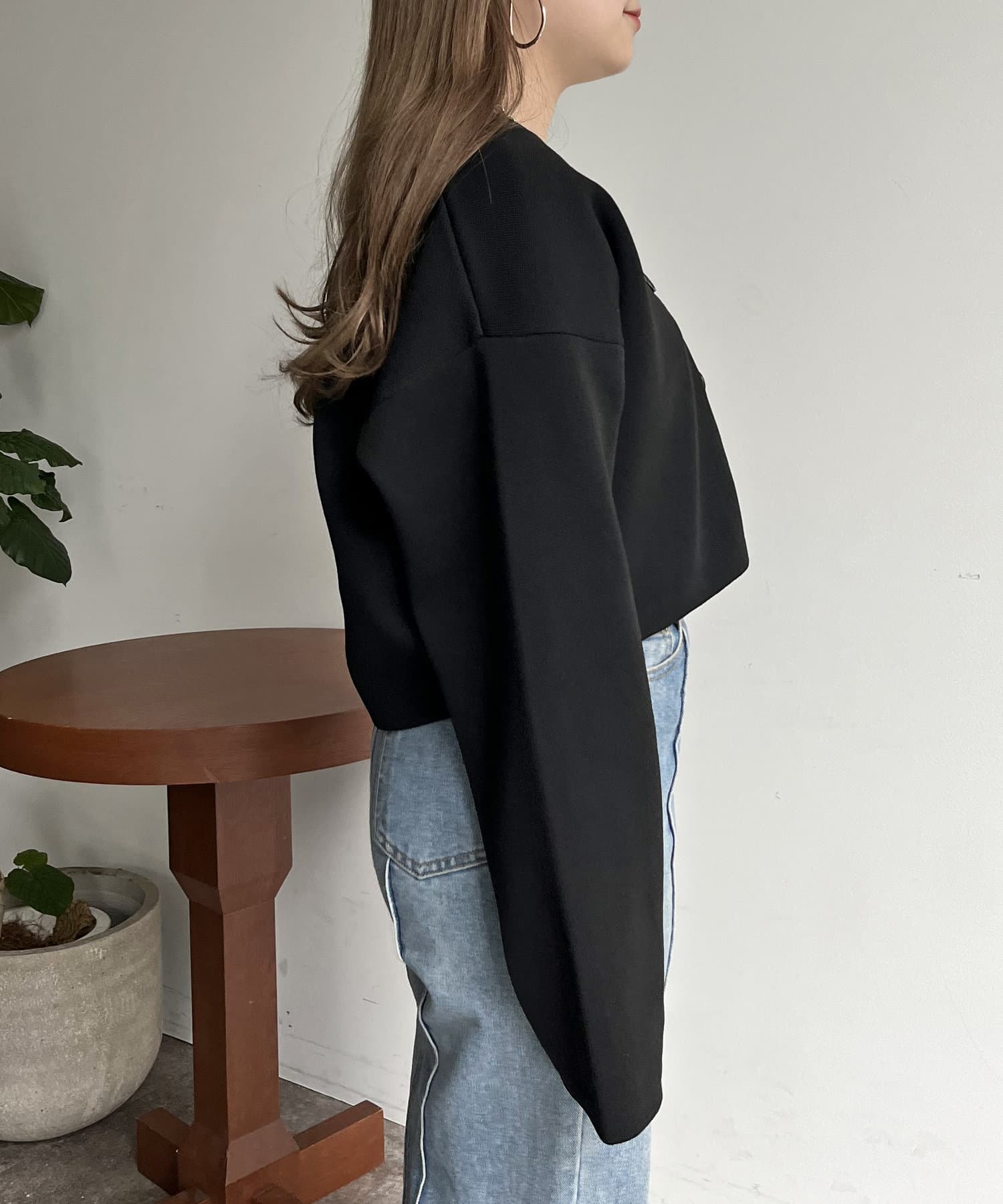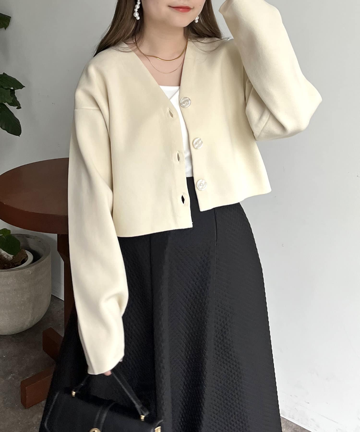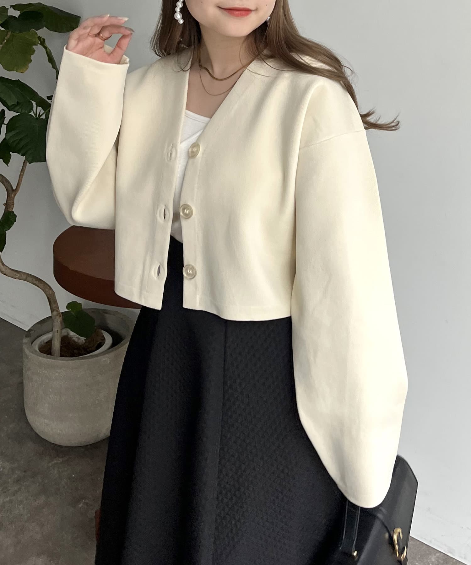 ショート丈が脚長効果になるスポンディッシュショートカーデ