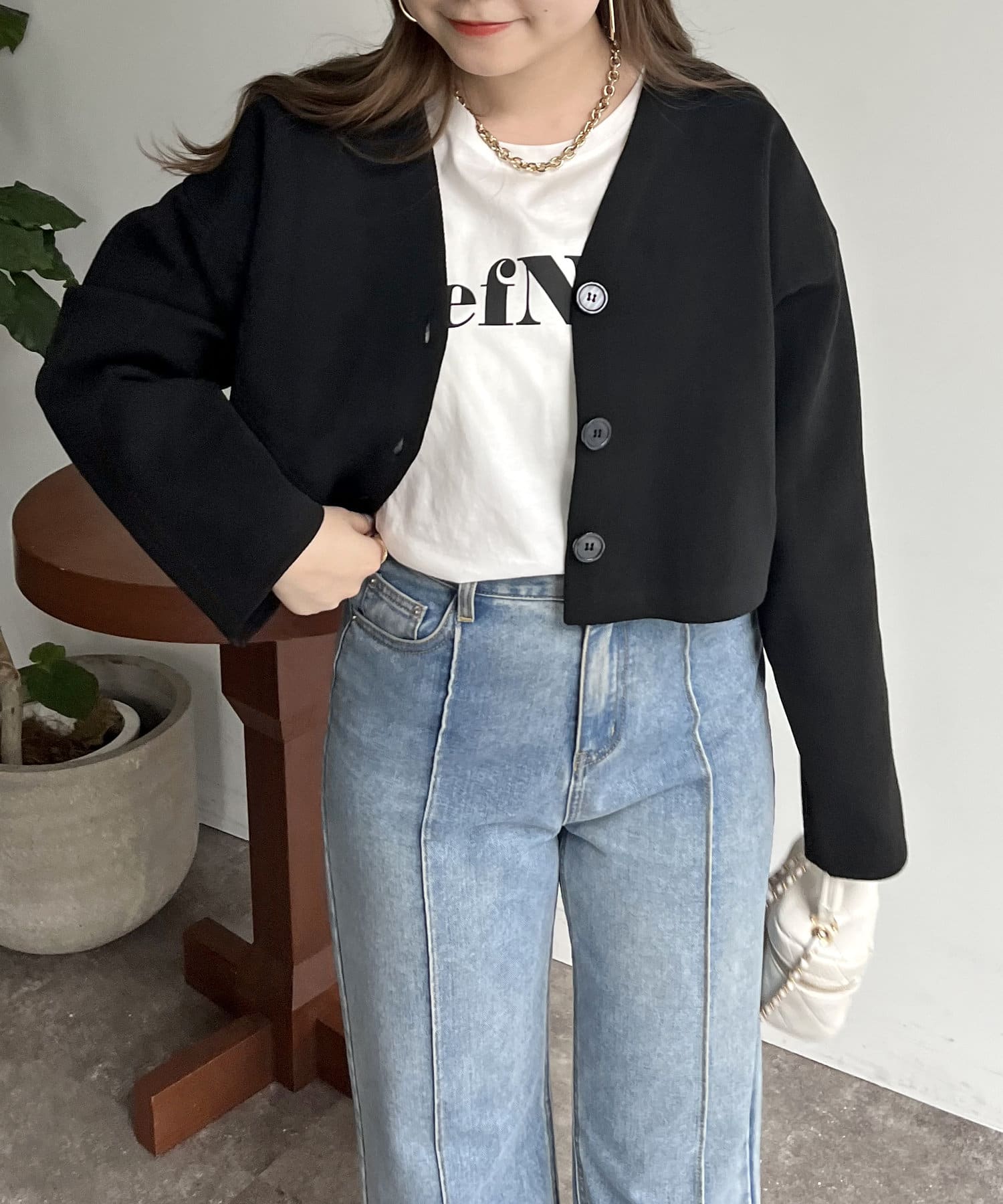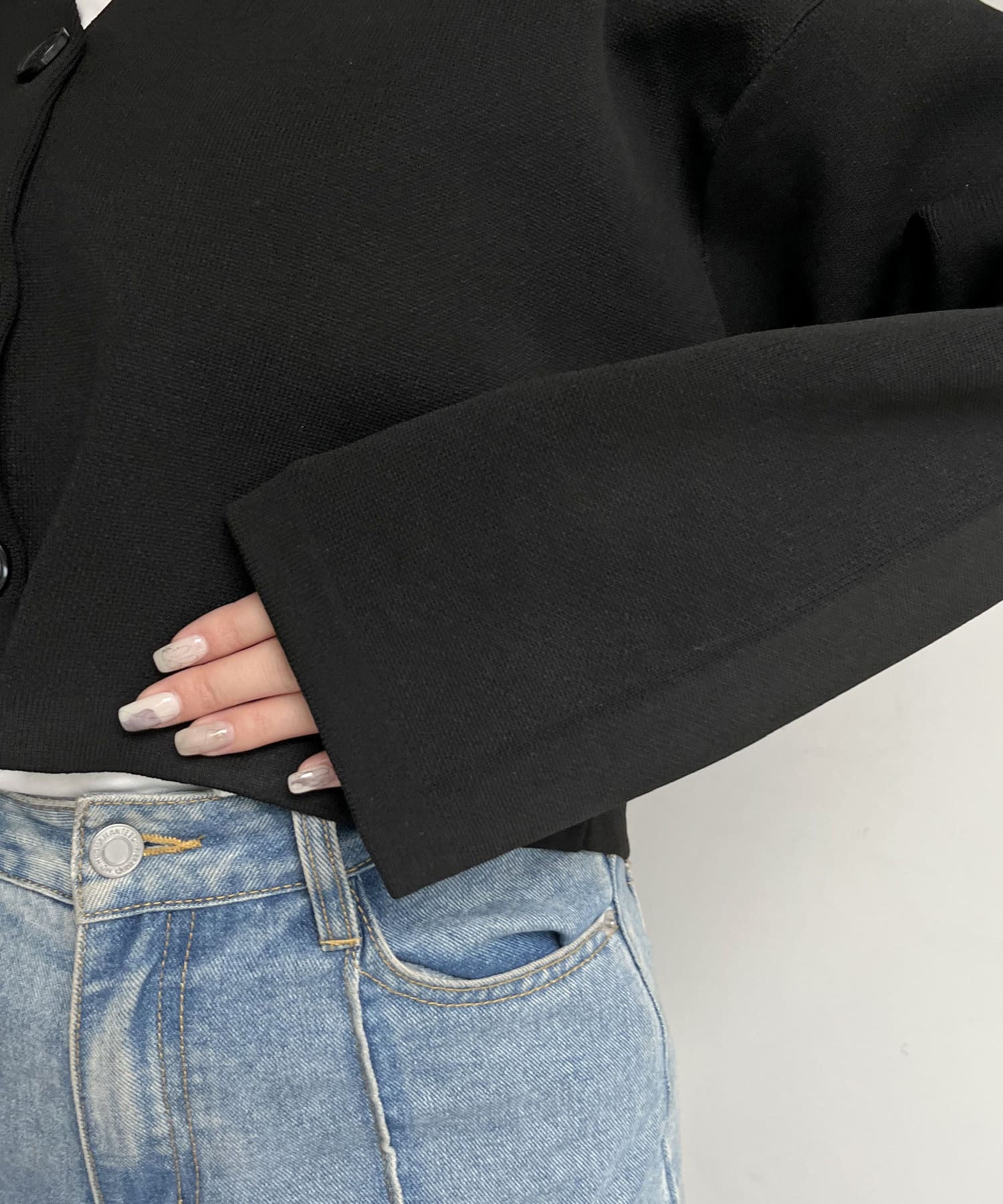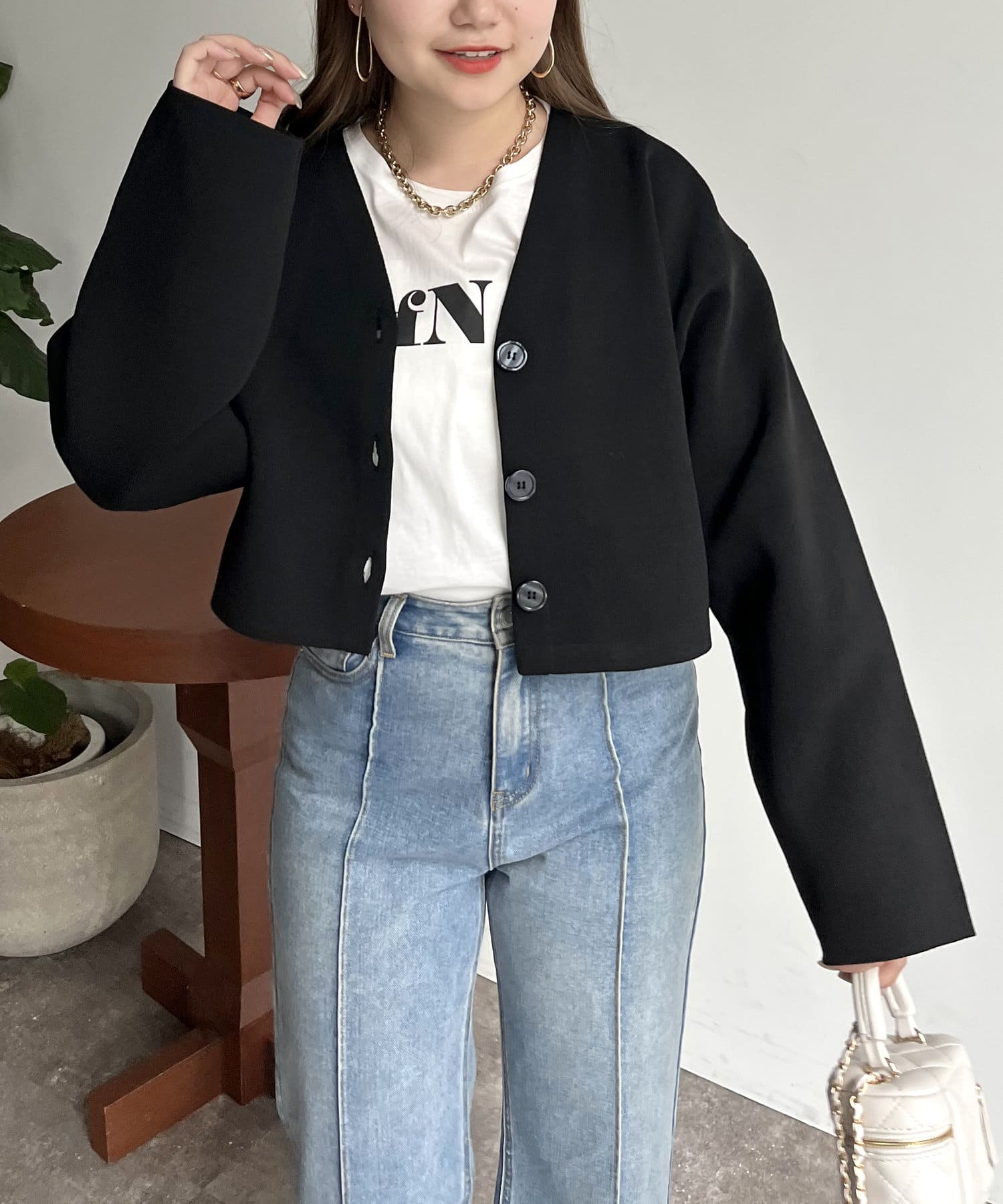 ショート丈が脚長効果になるスポンディッシュショートカーデ