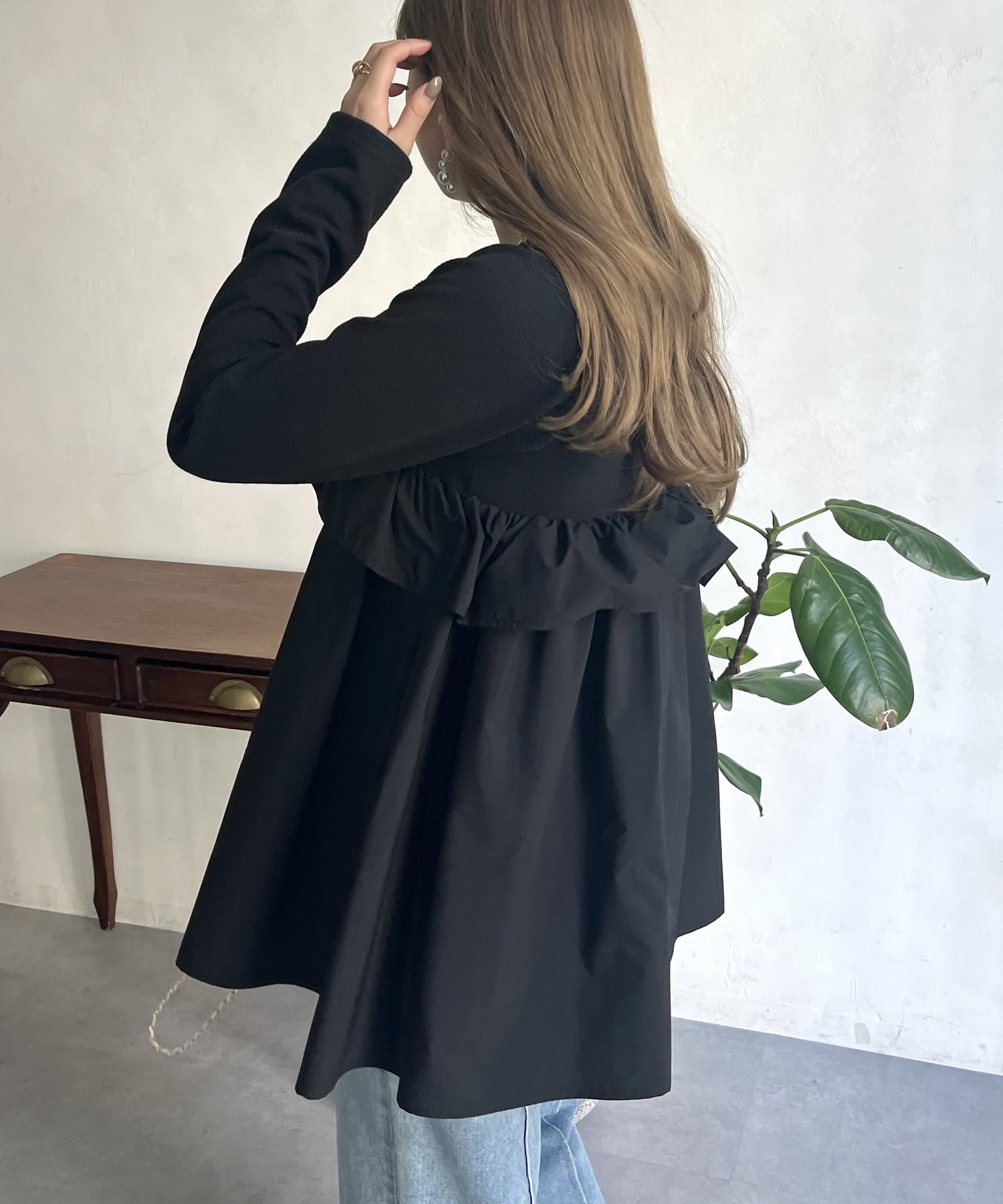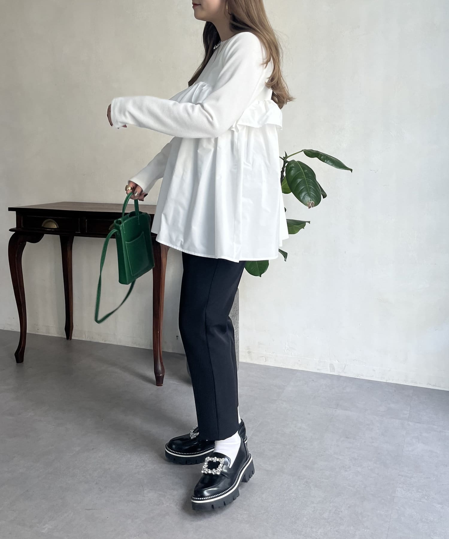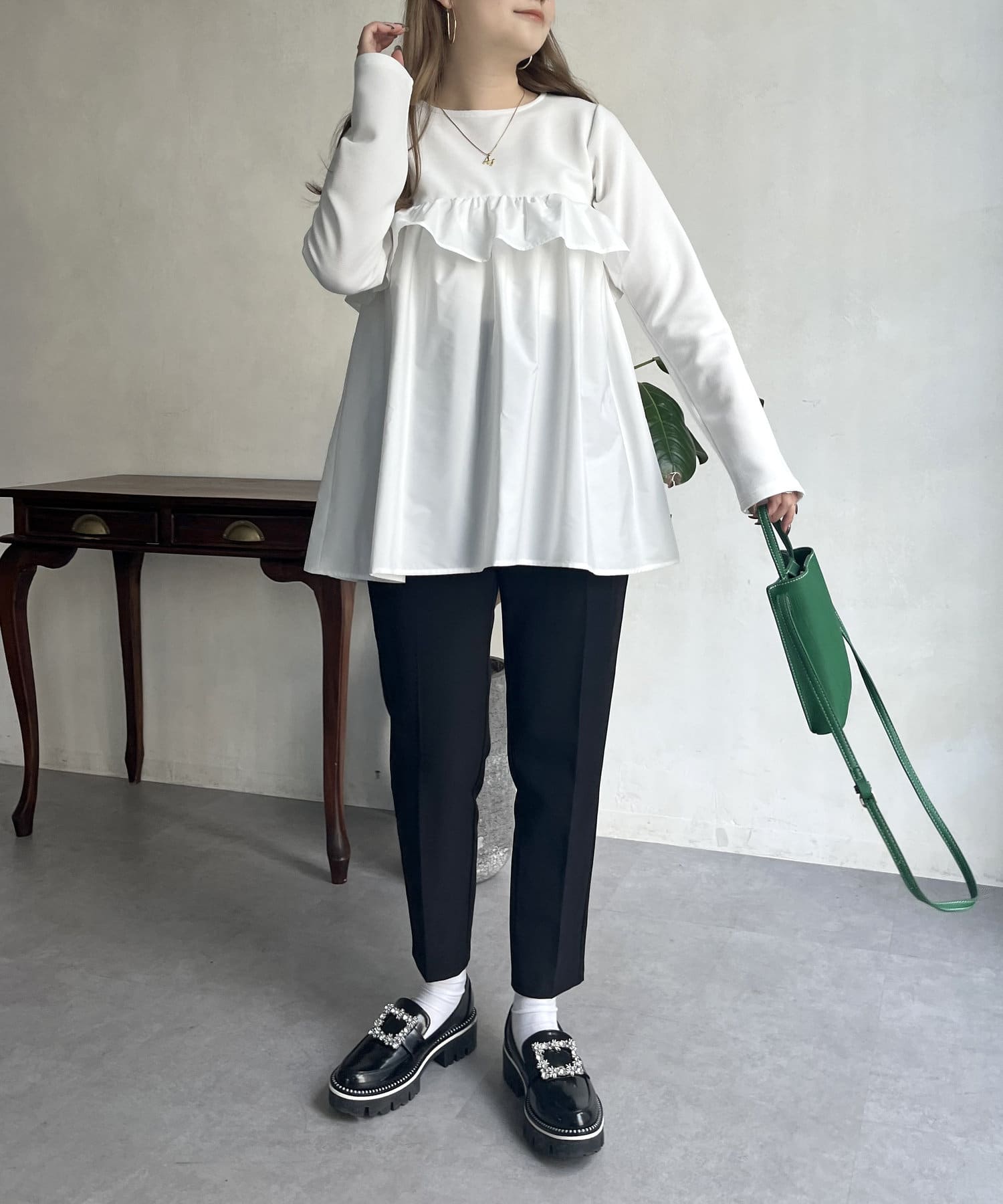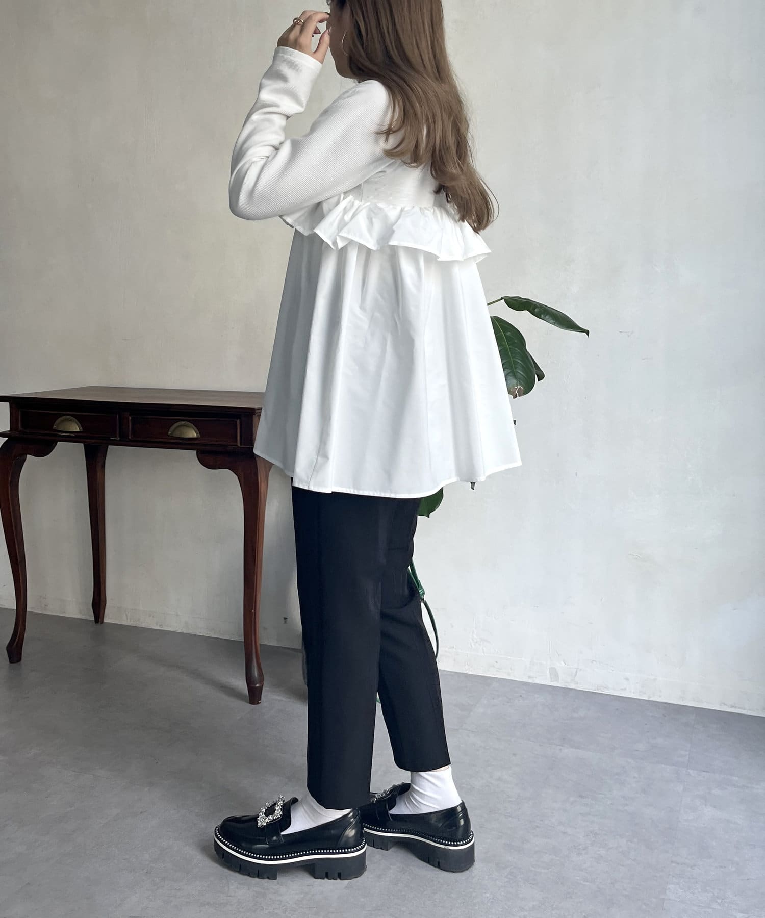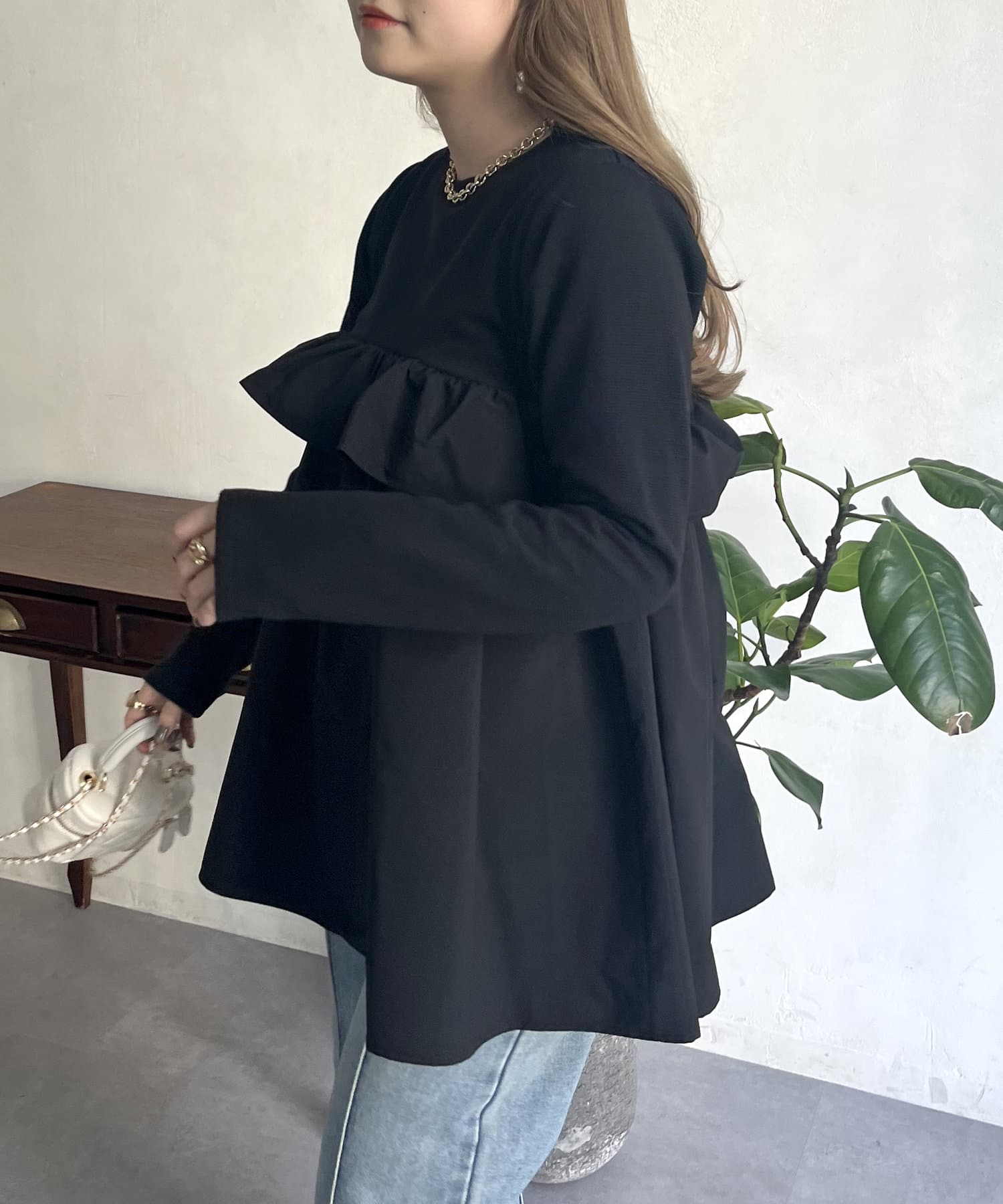 ●フリルがシャツ生地のようなハリ感がありこなれた印象に見せてくれます