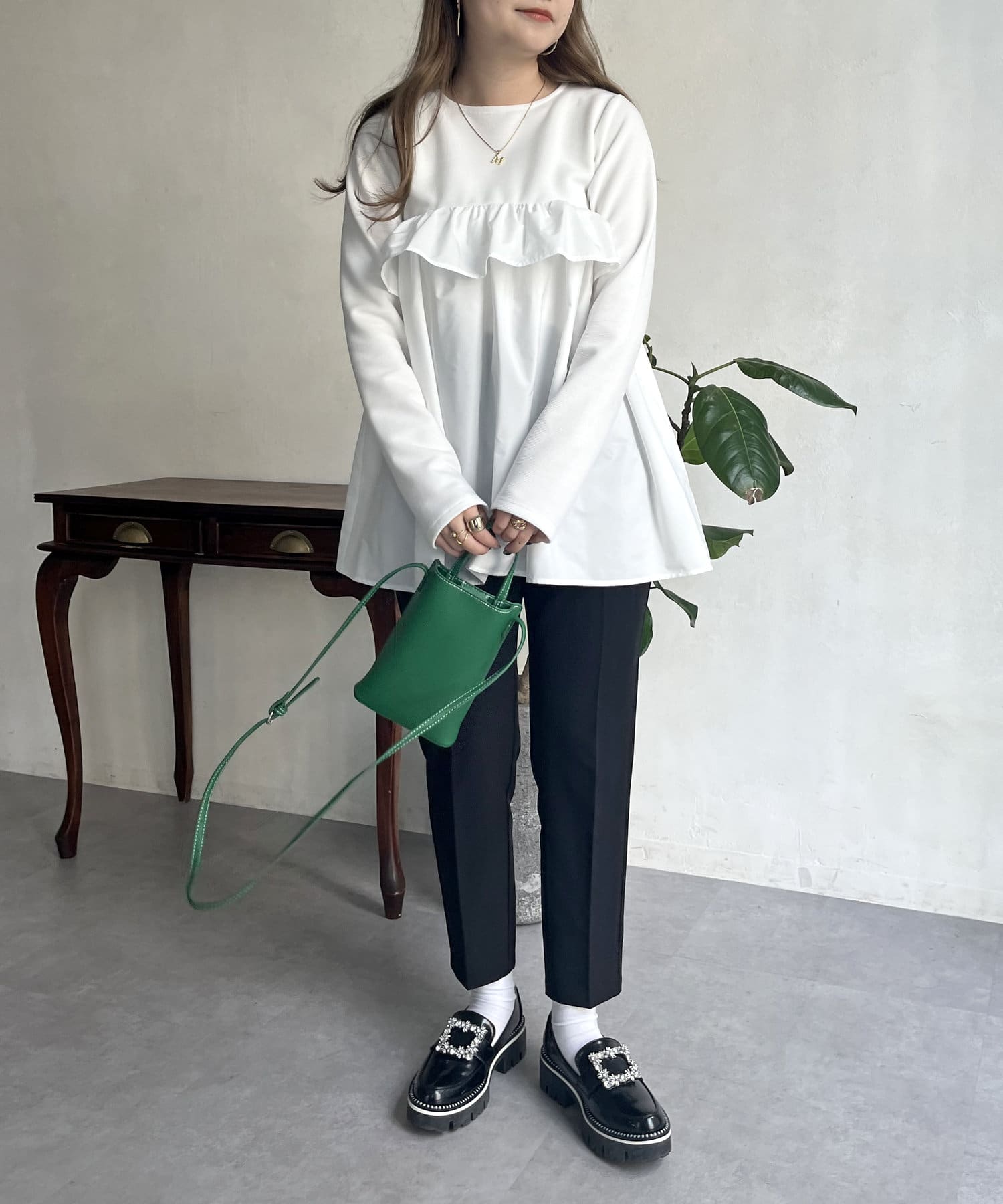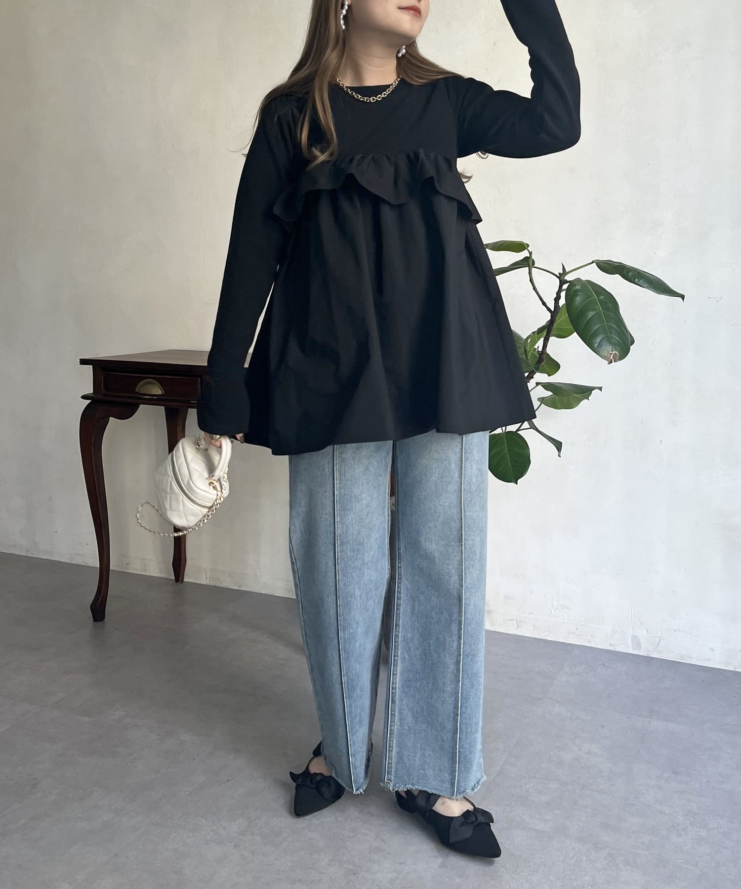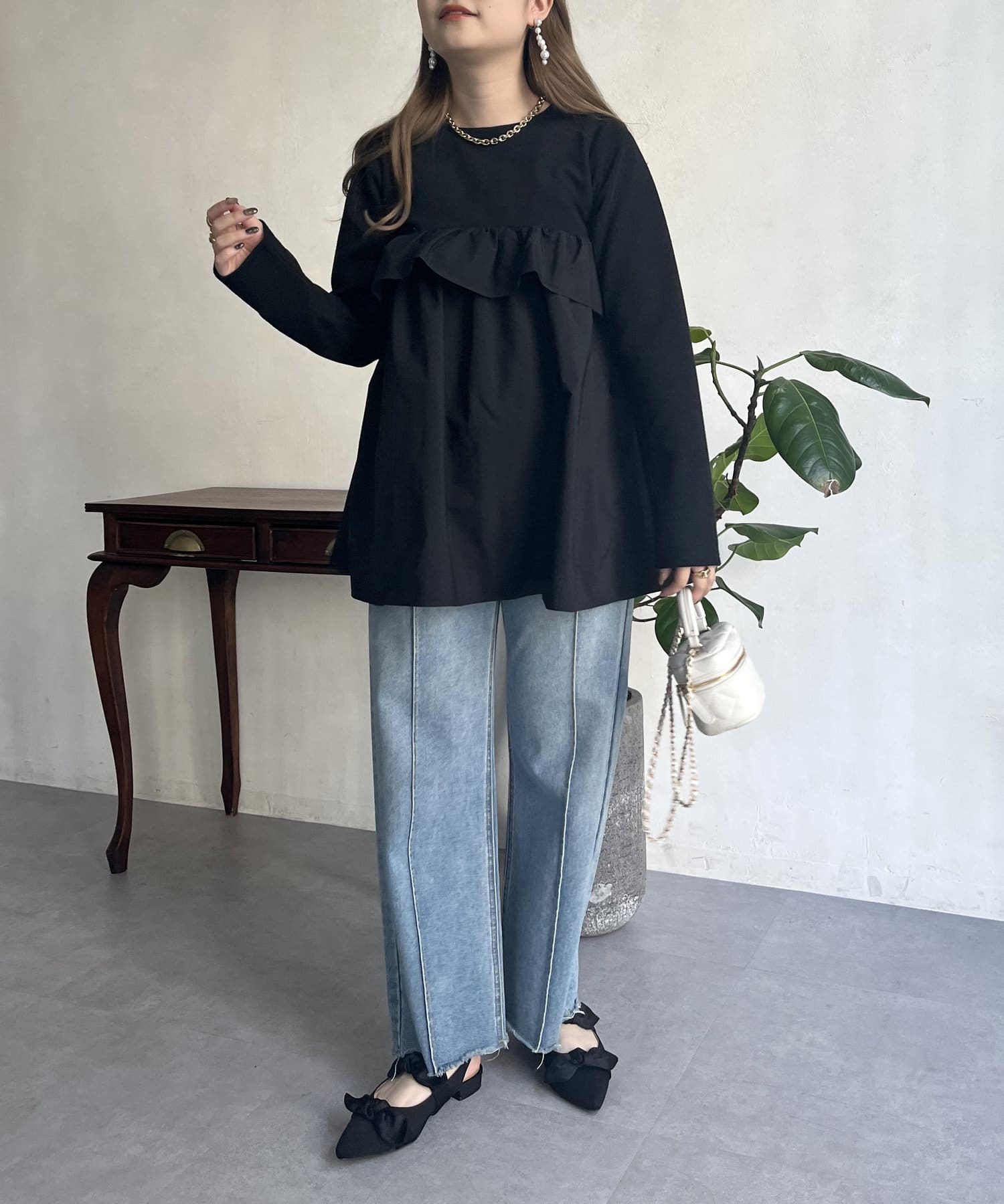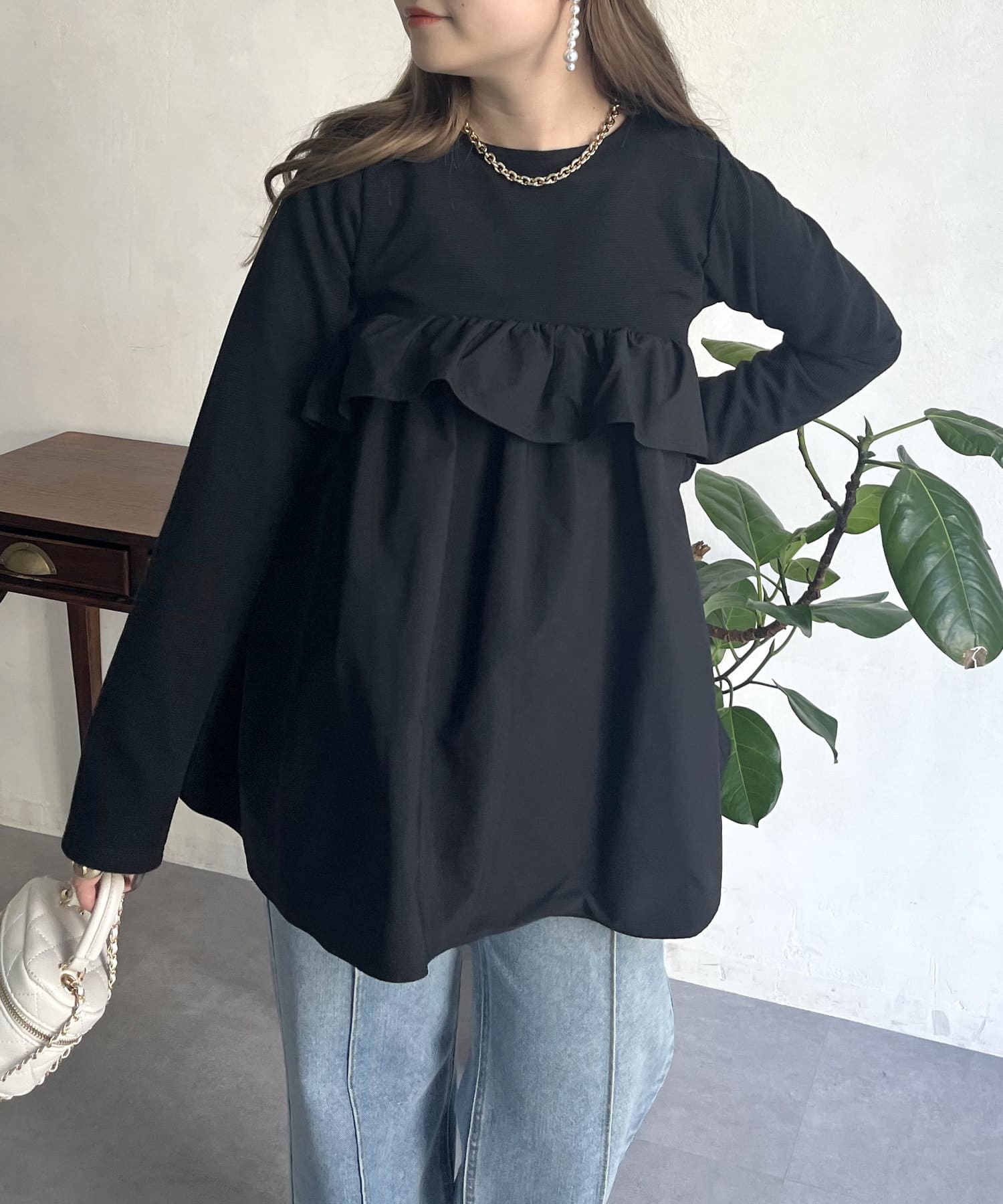●フリルがシャツ生地のようなハリ感がありこなれた印象に見せてくれます