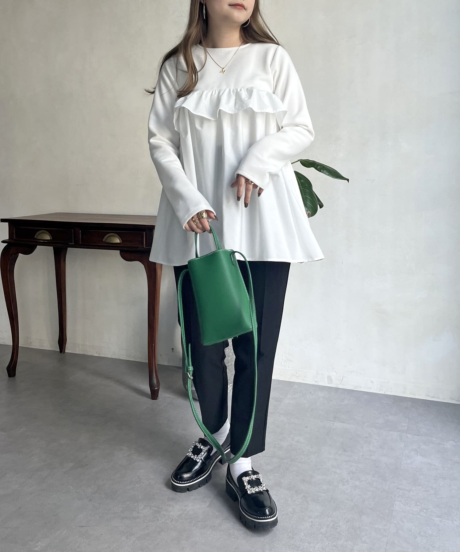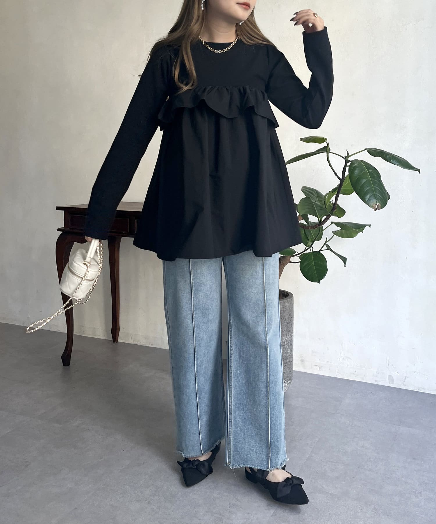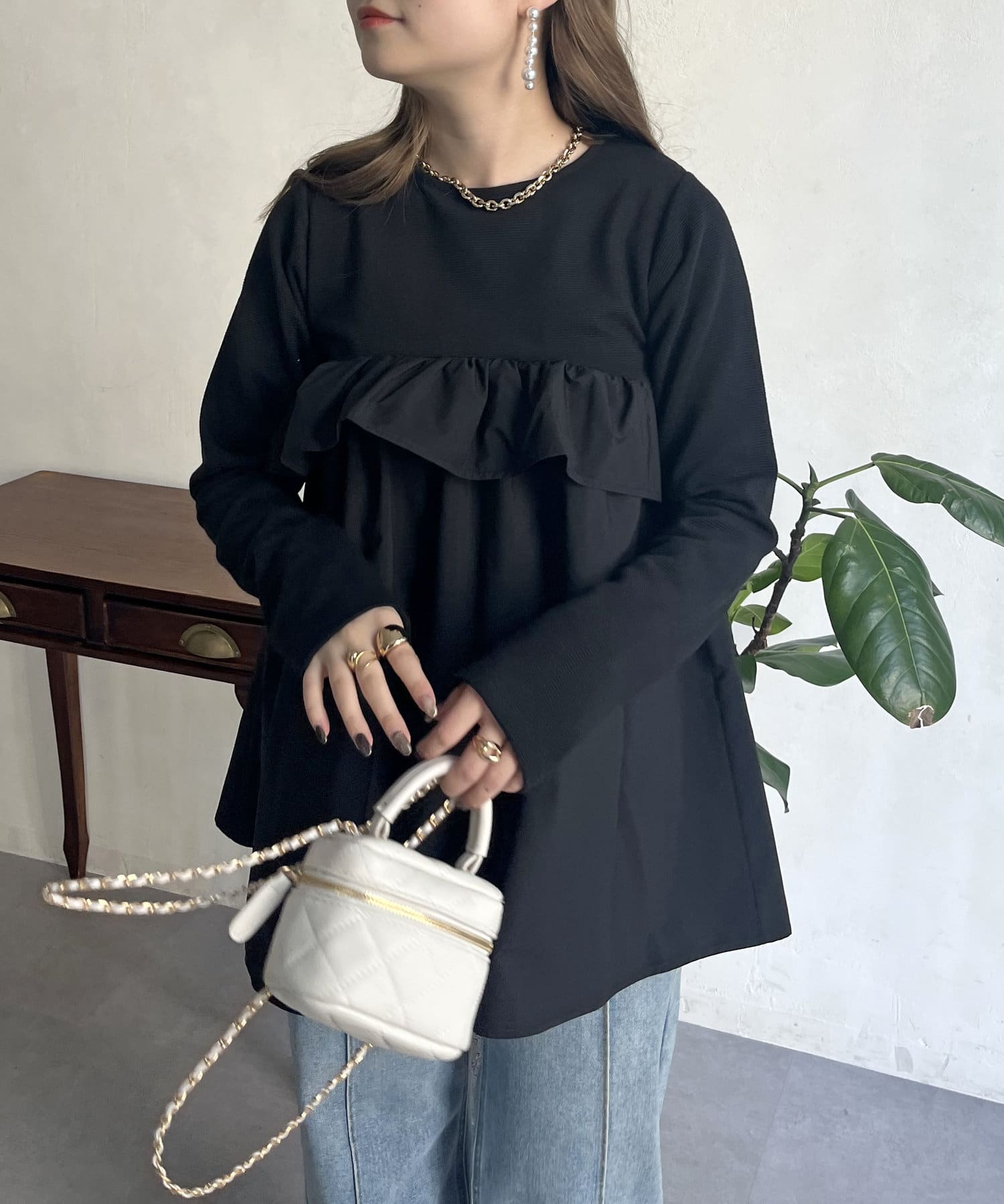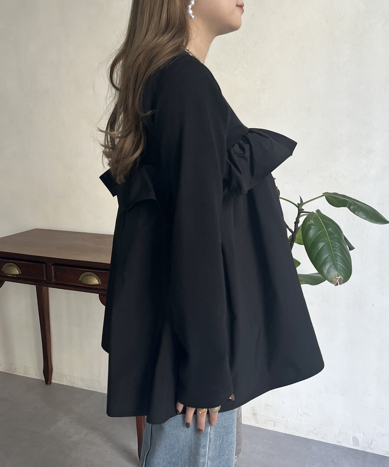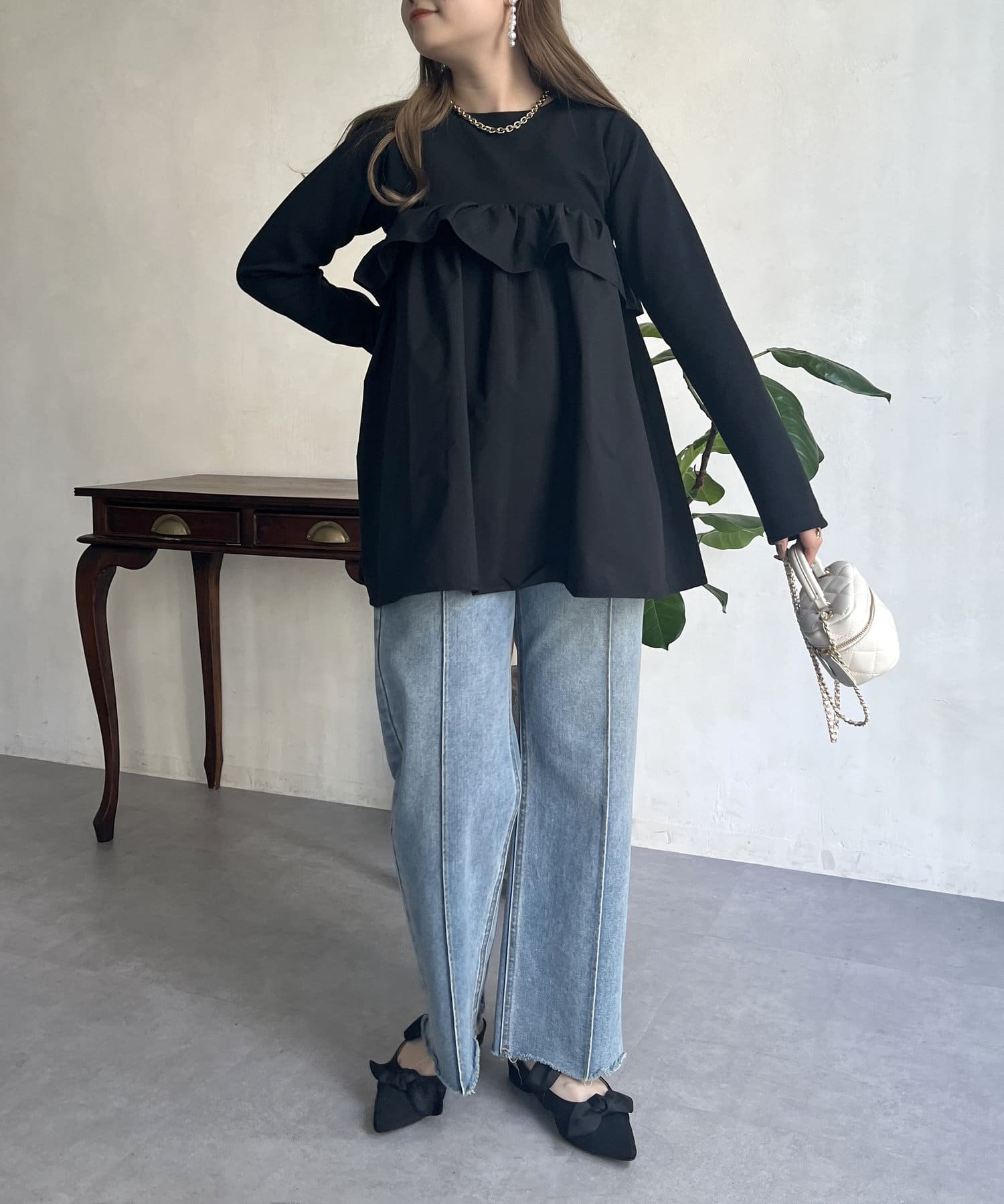 ●フリルがシャツ生地のようなハリ感がありこなれた印象に見せてくれます