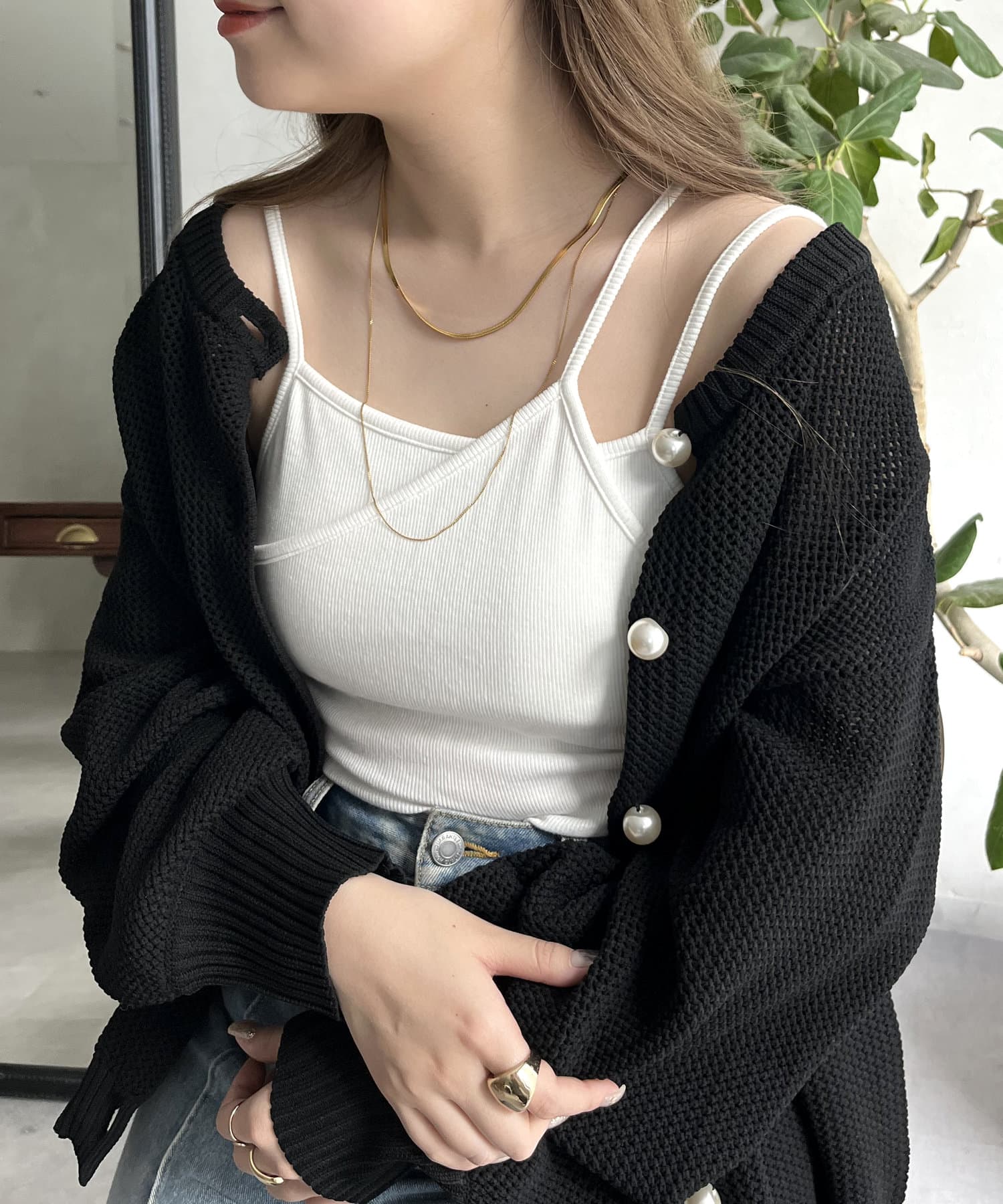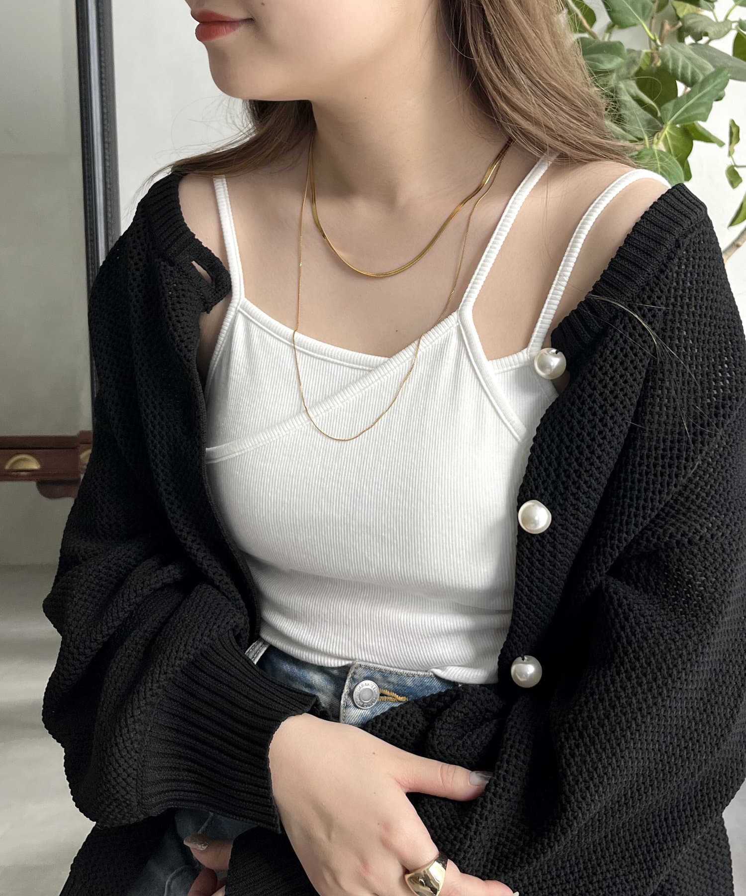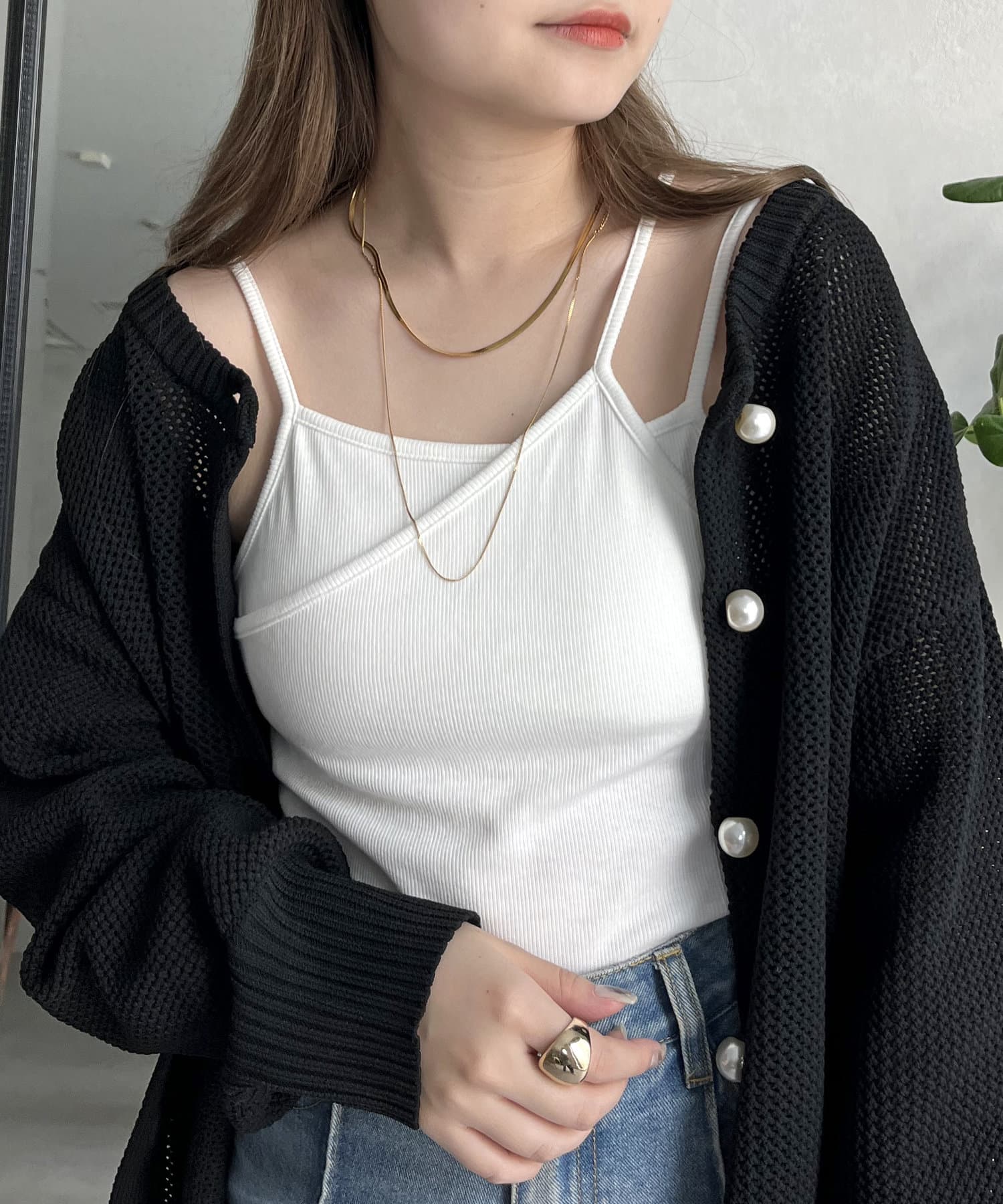 購入場所:パルクローゼット最近流行りのデザイン性のあるキャミで、一枚着るだけでおしゃれに決まります