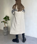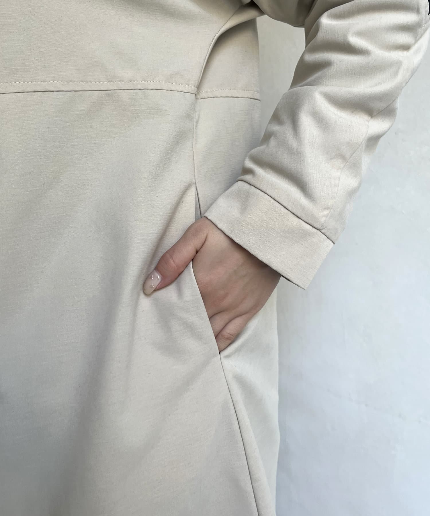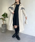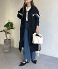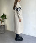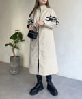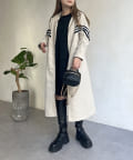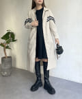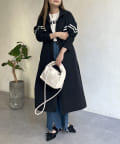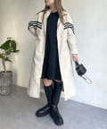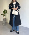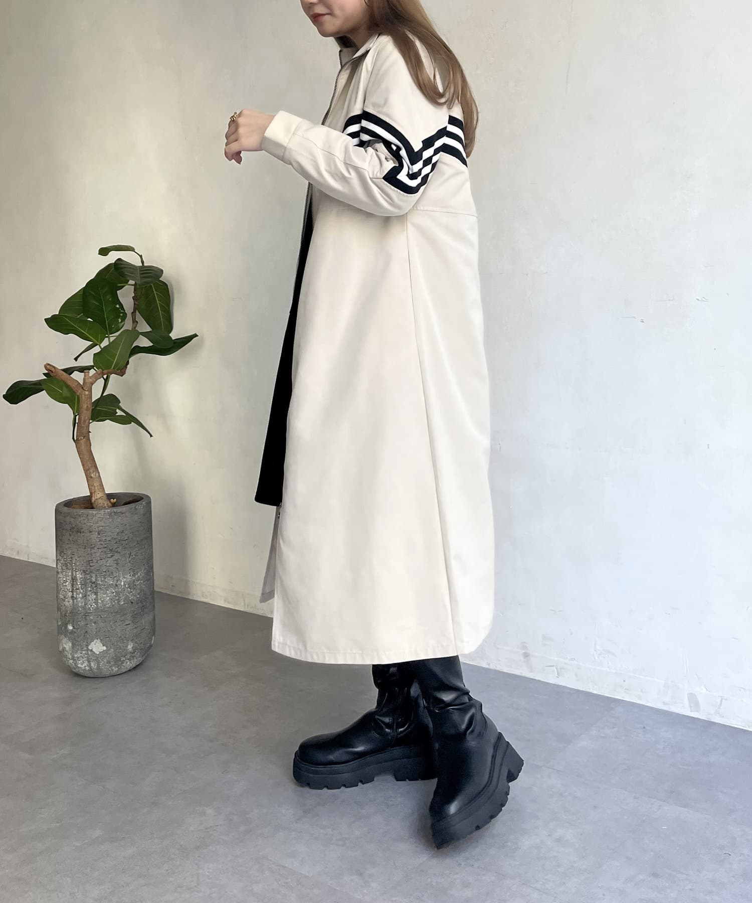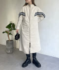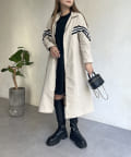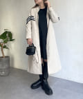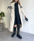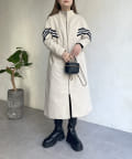 配色テープスタンドネックロングコート