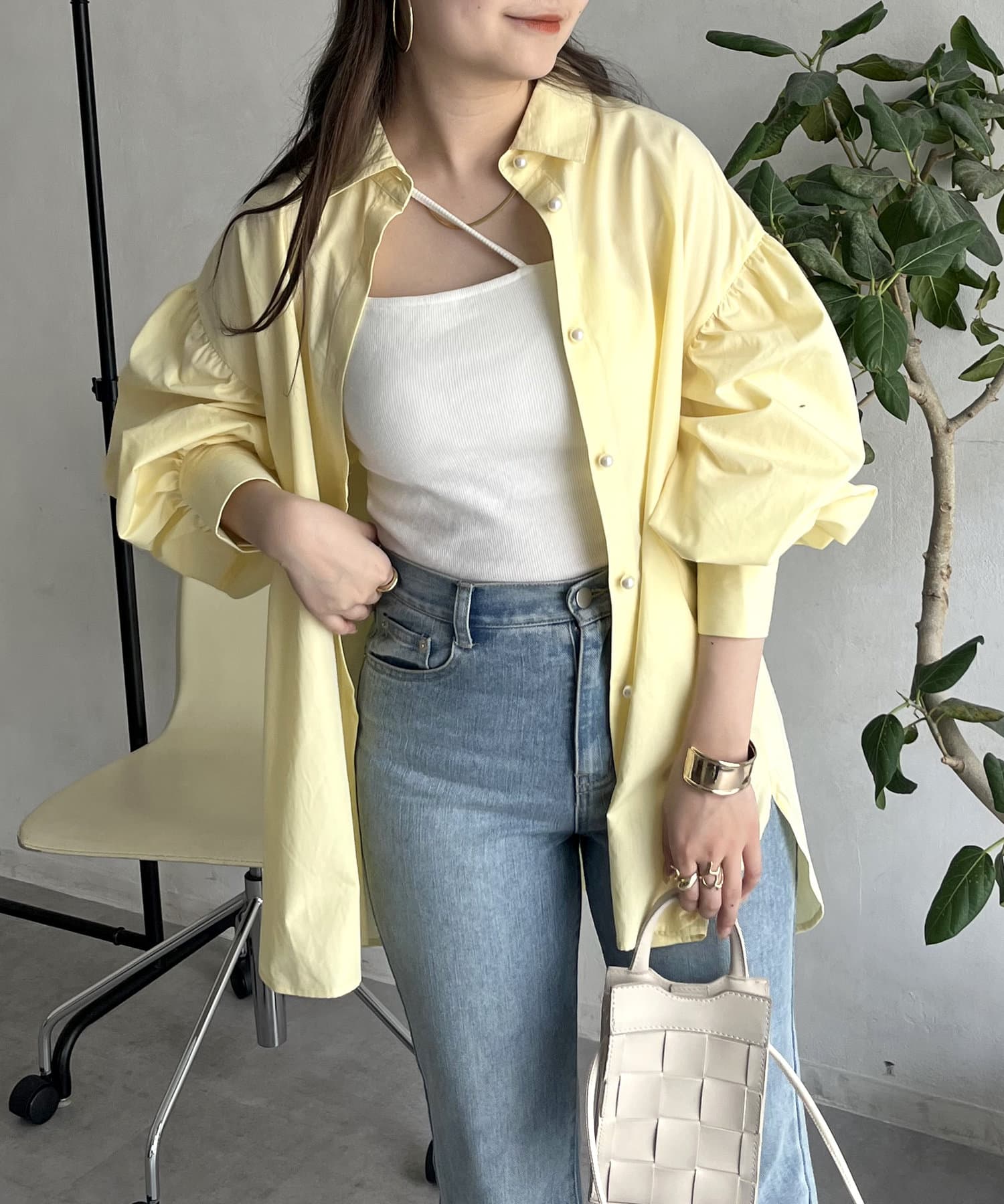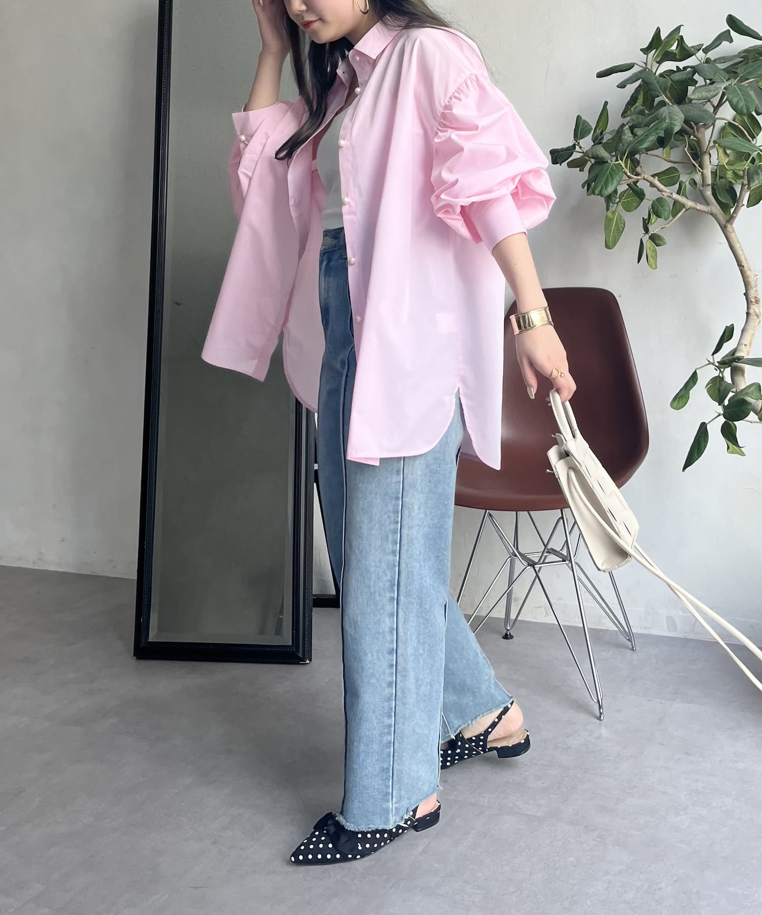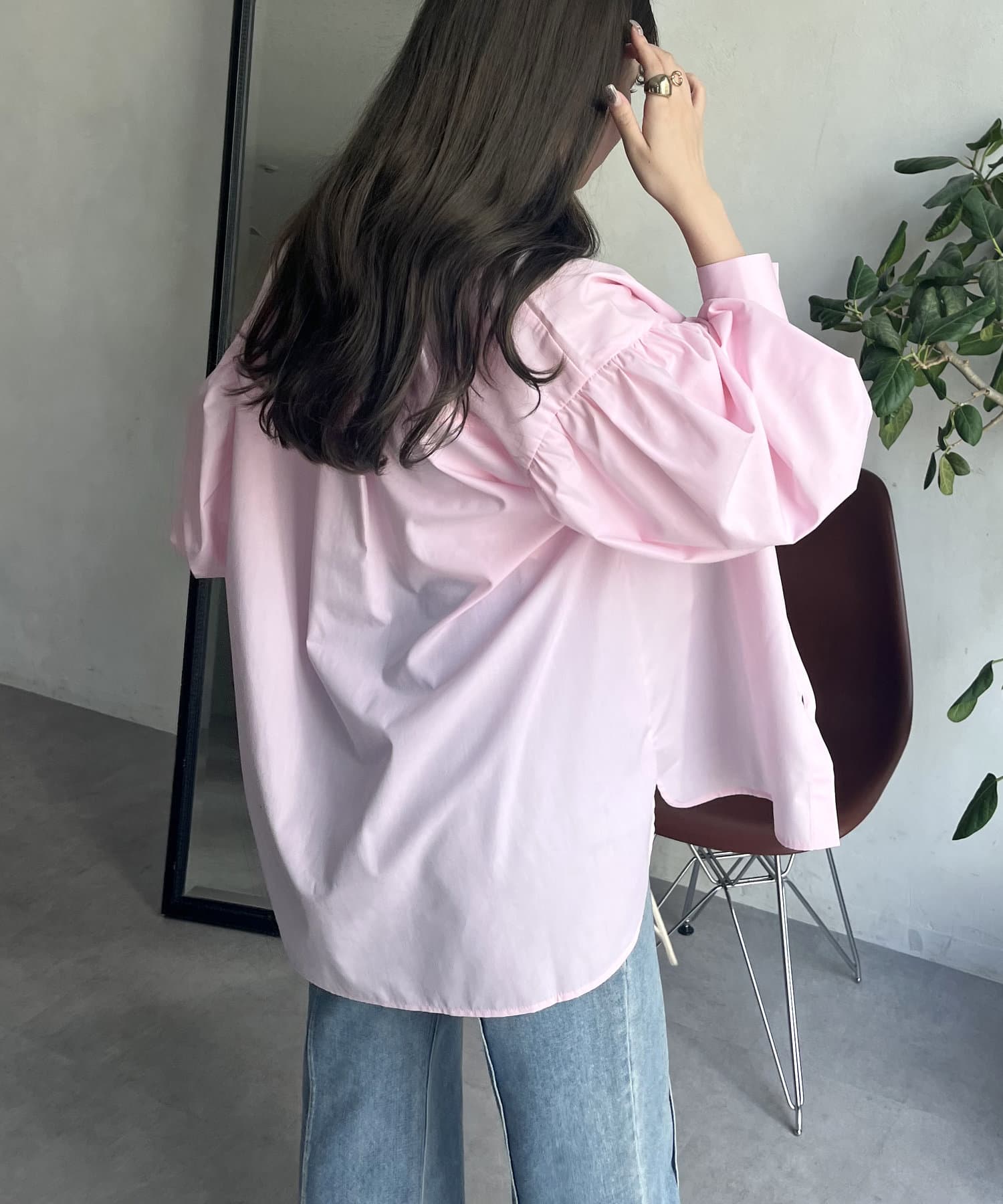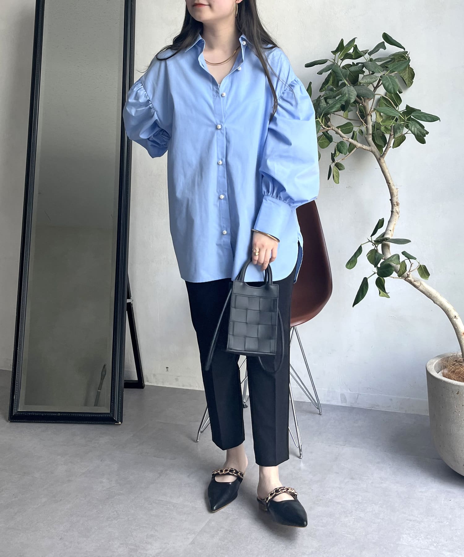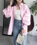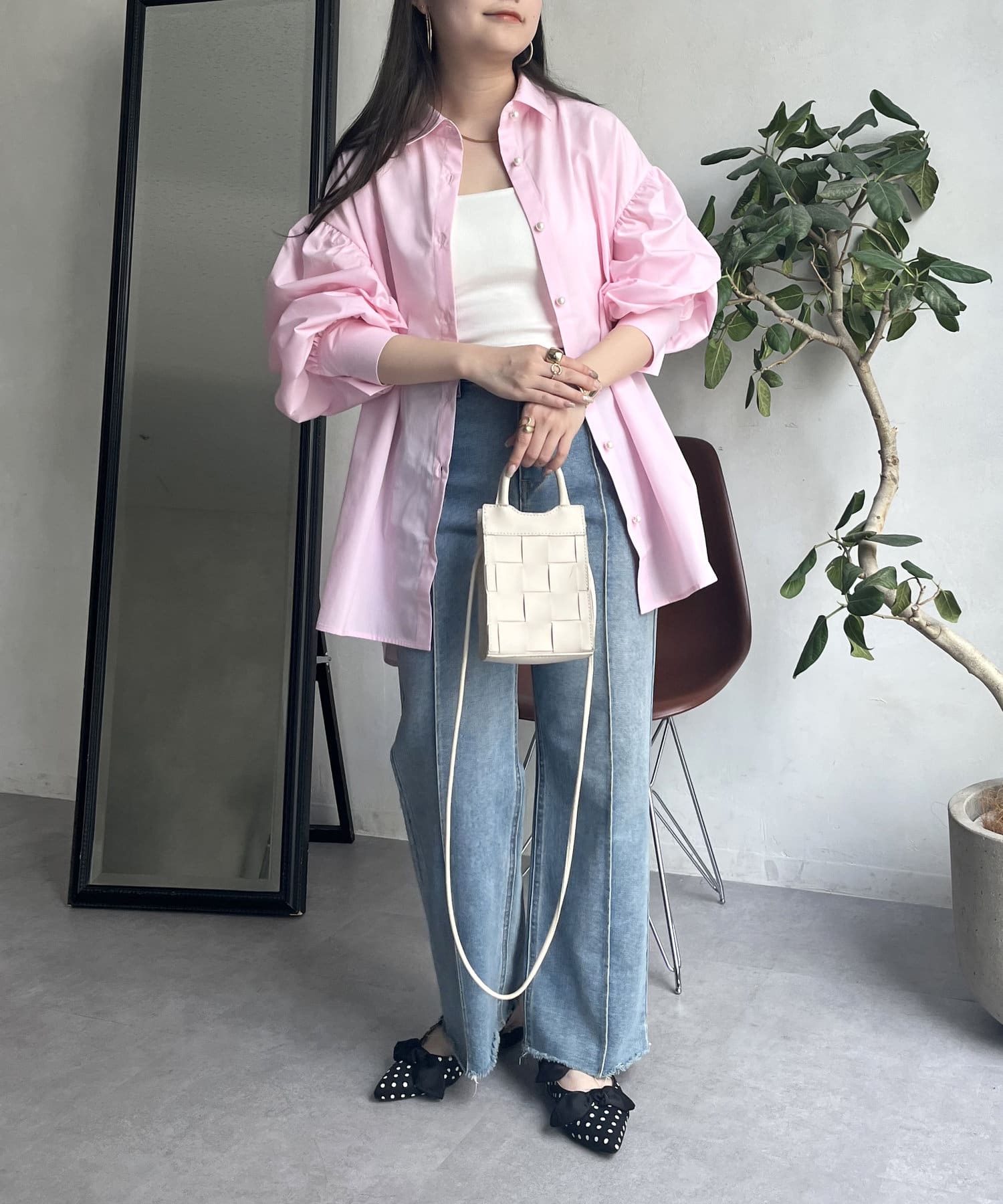パールボタン袖ボリュームシャツ