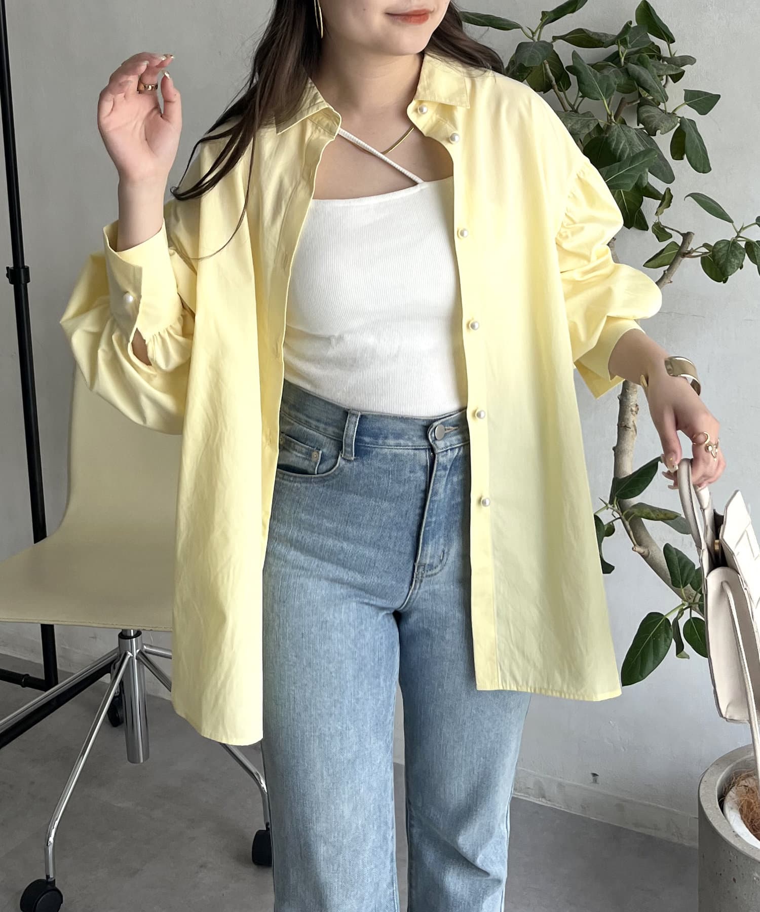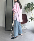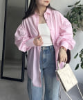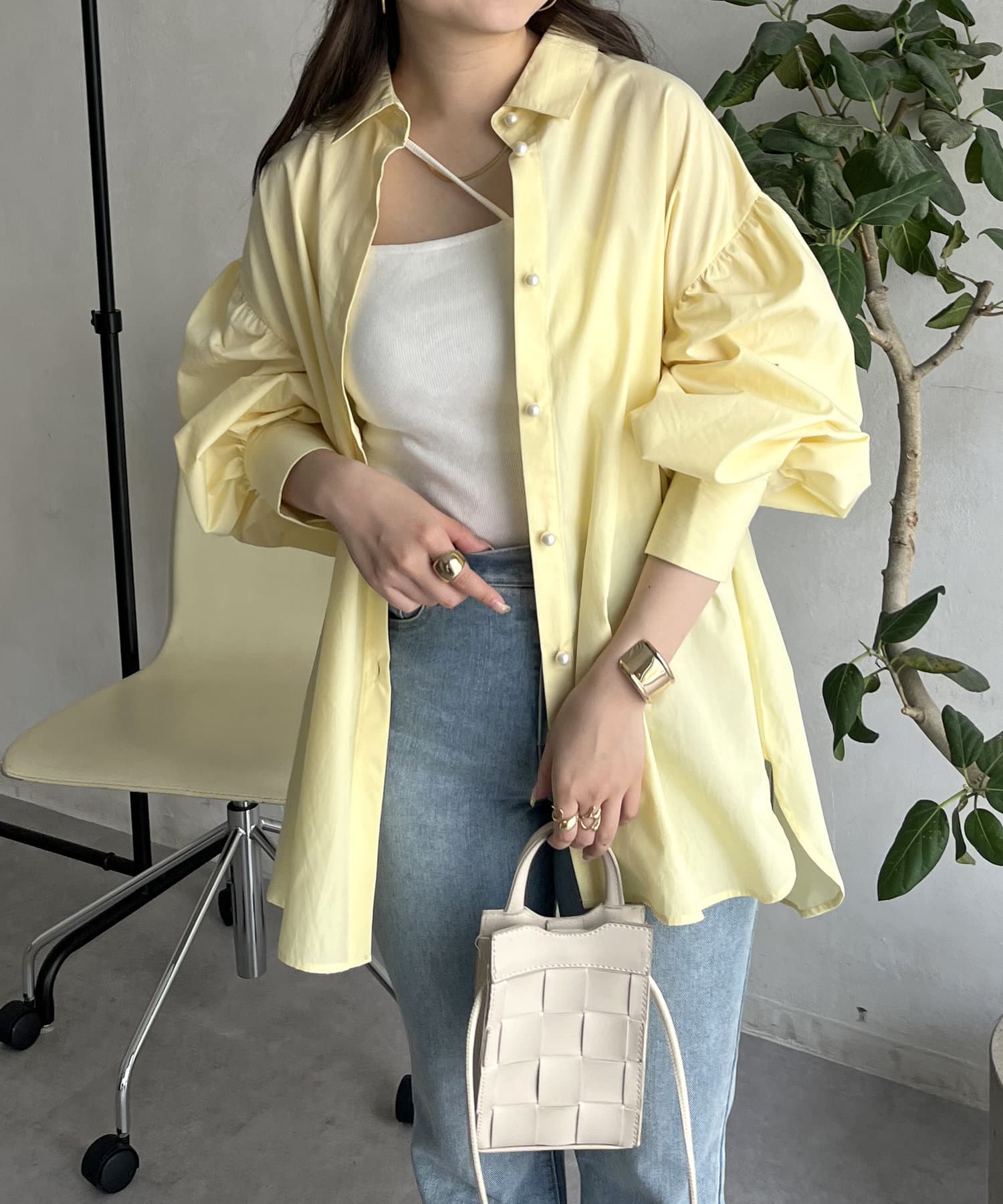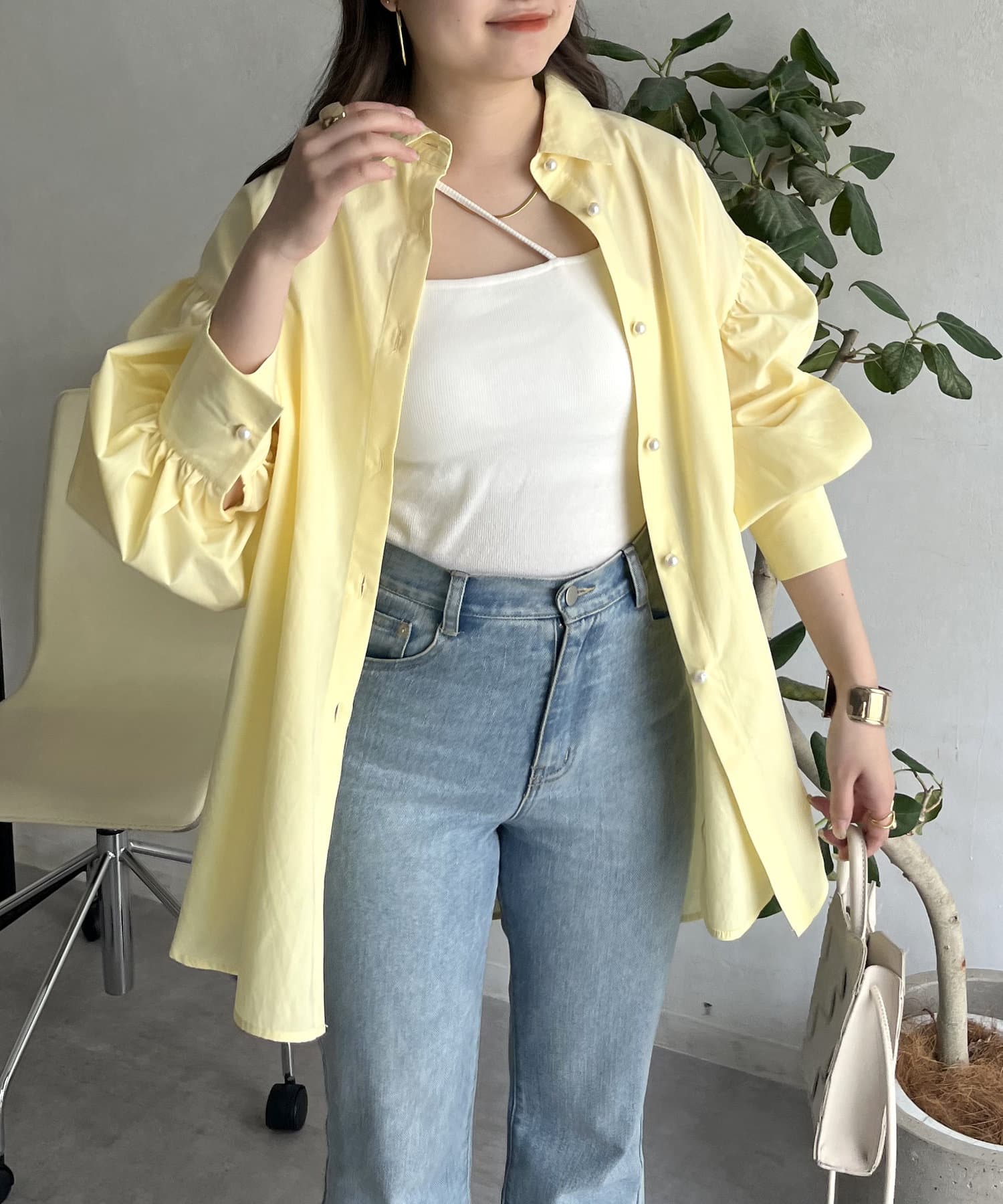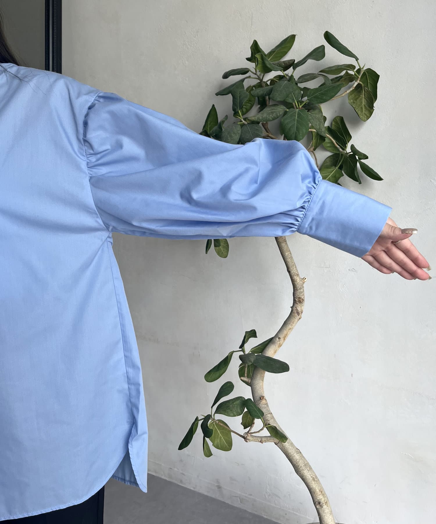 パールボタン袖ボリュームシャツ