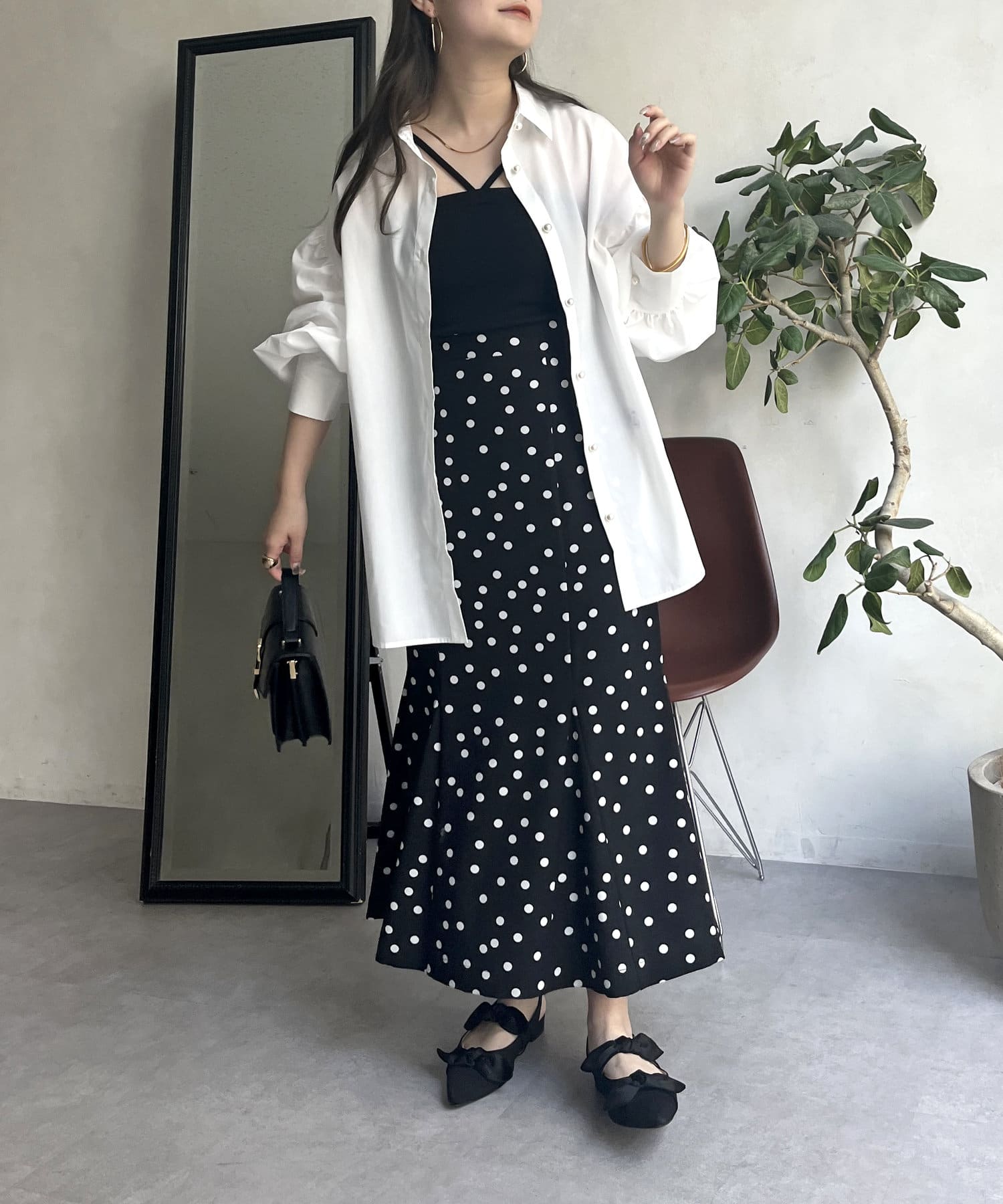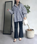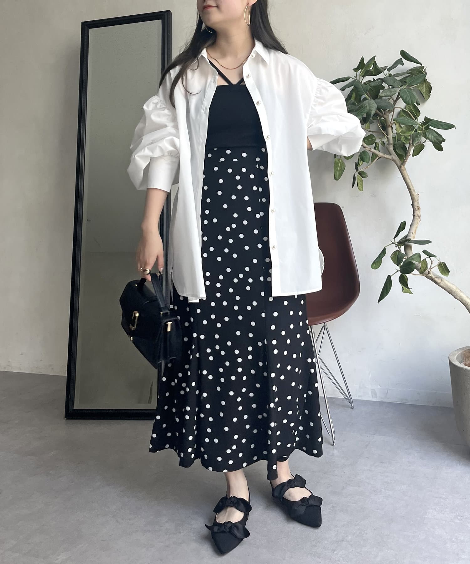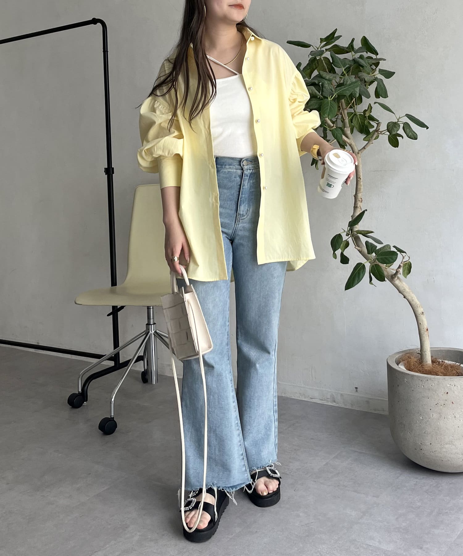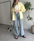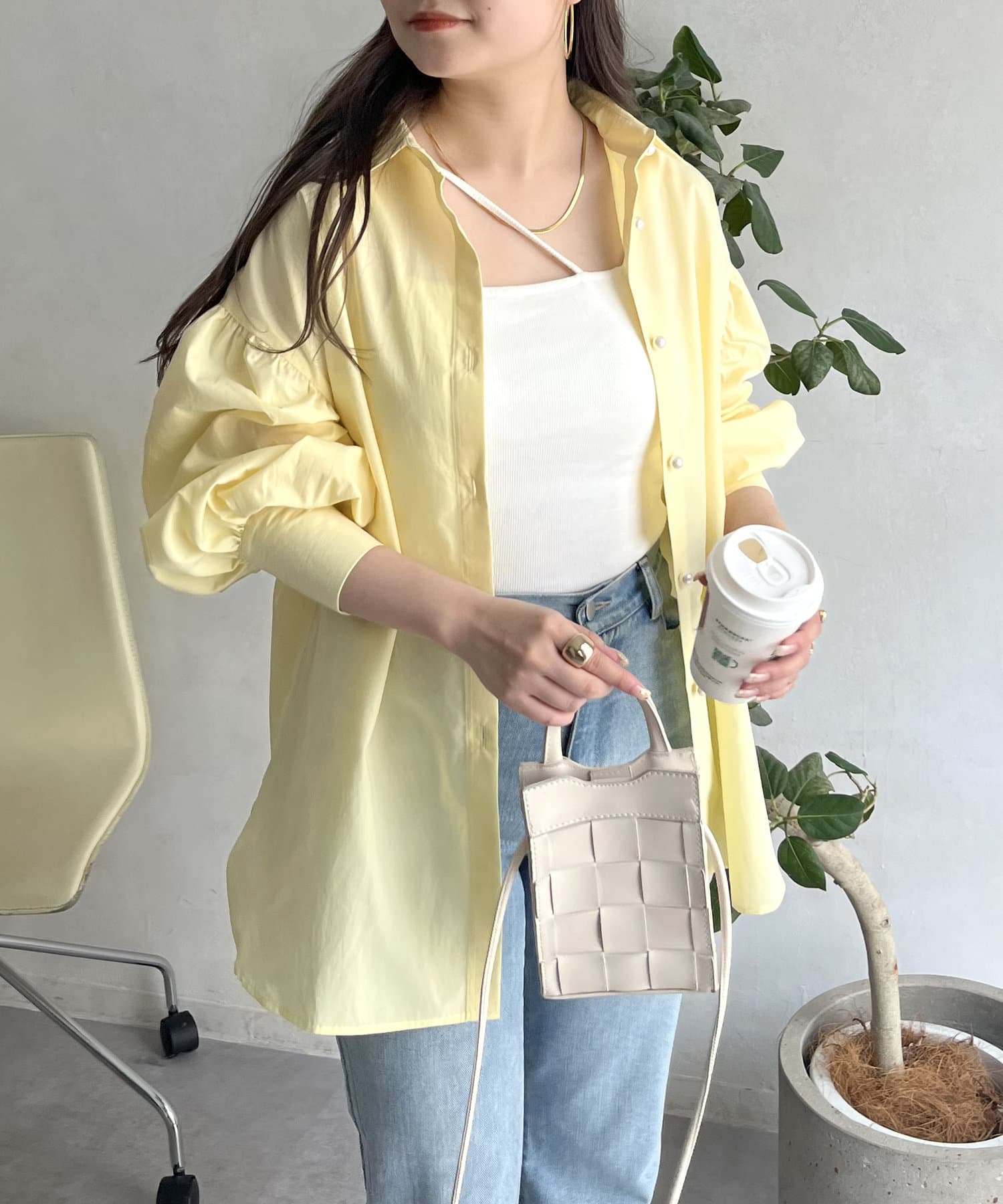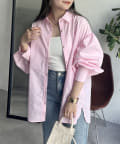 パールボタン袖ボリュームシャツ