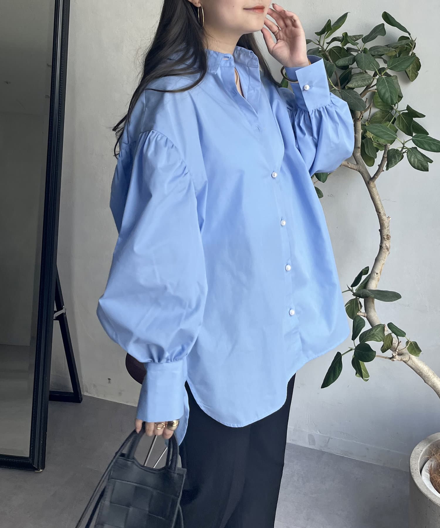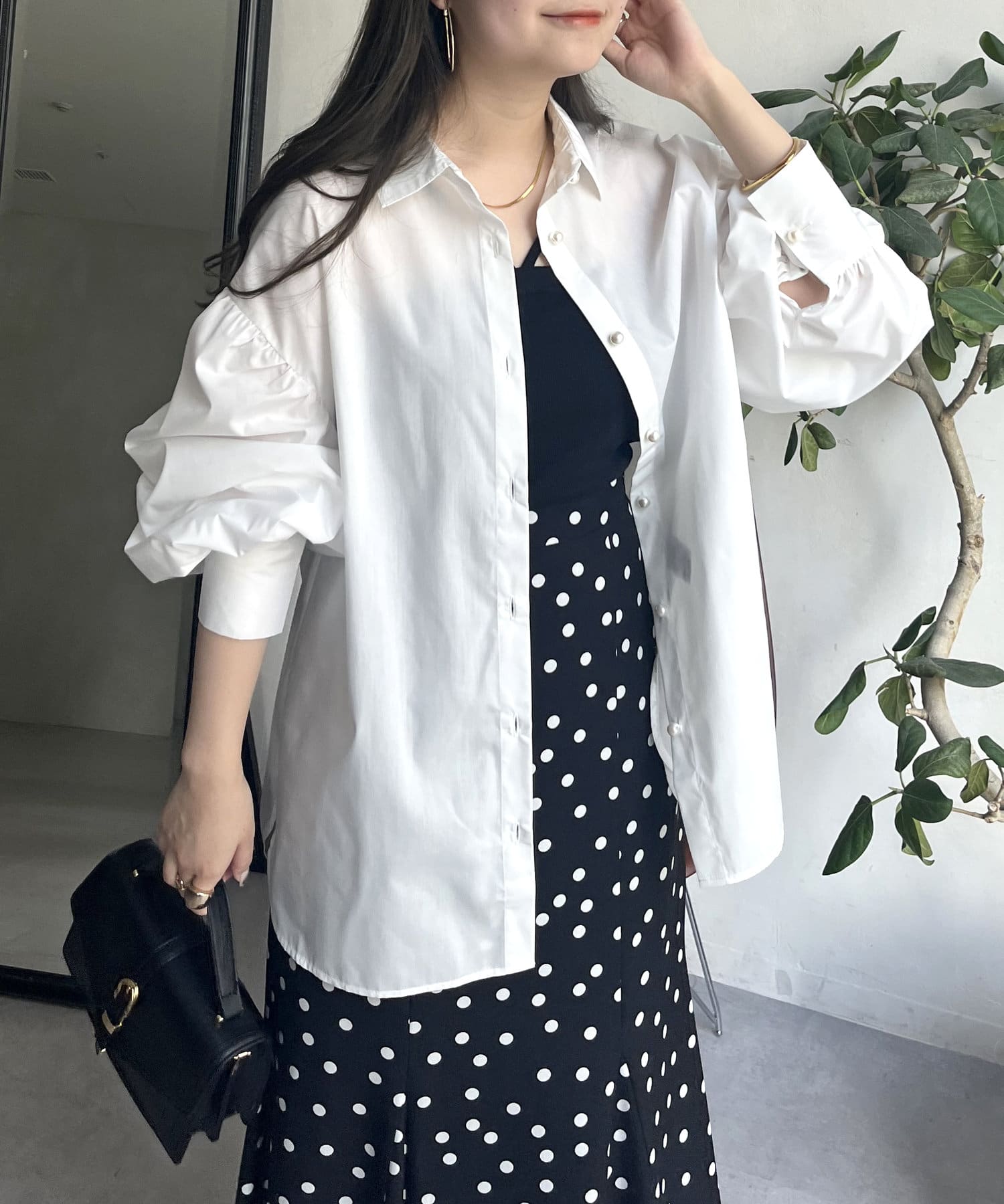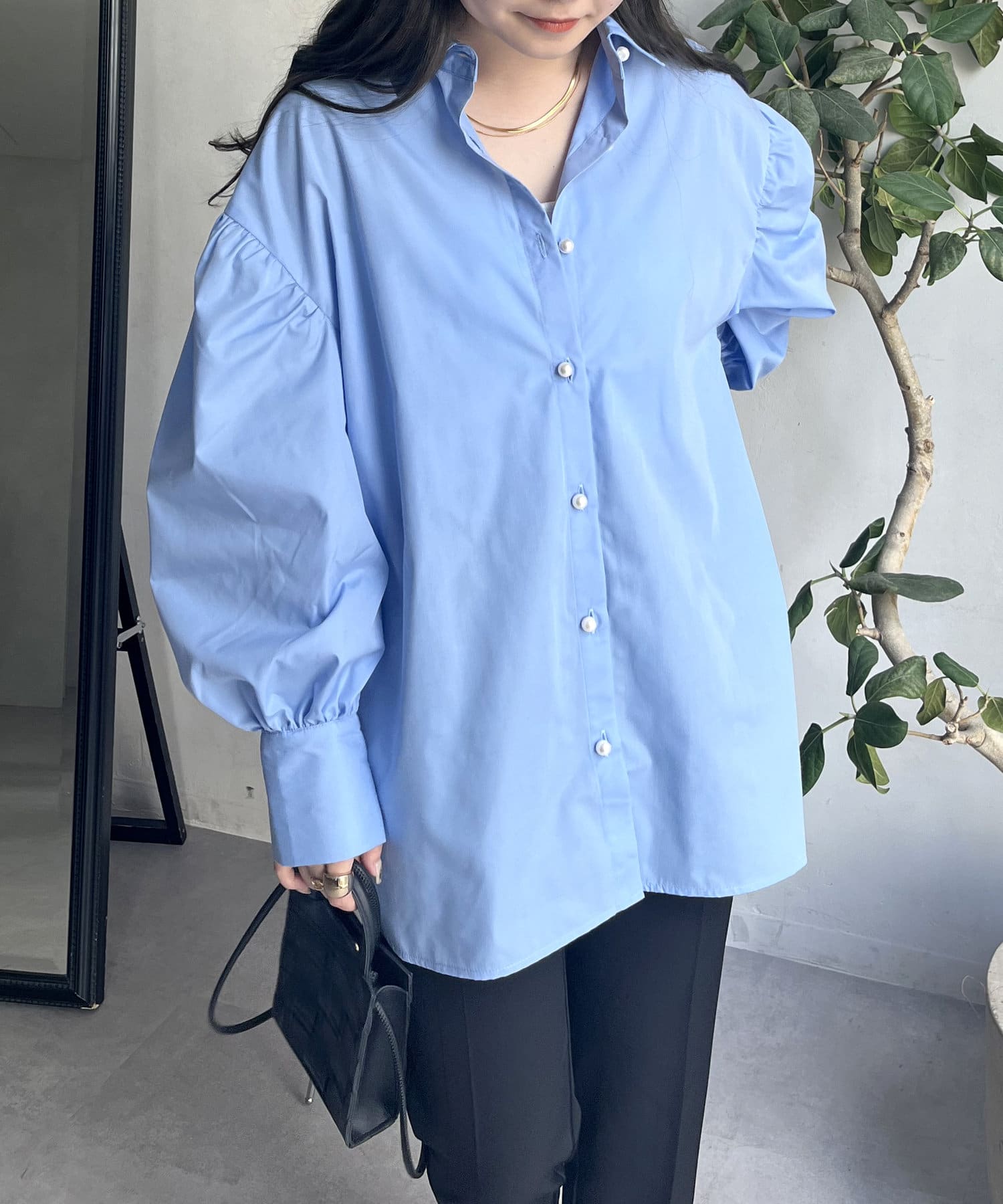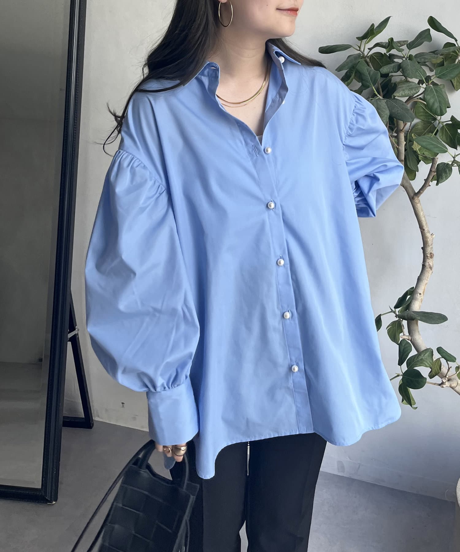 着回し万能パールボタン袖ボリュームシャツ