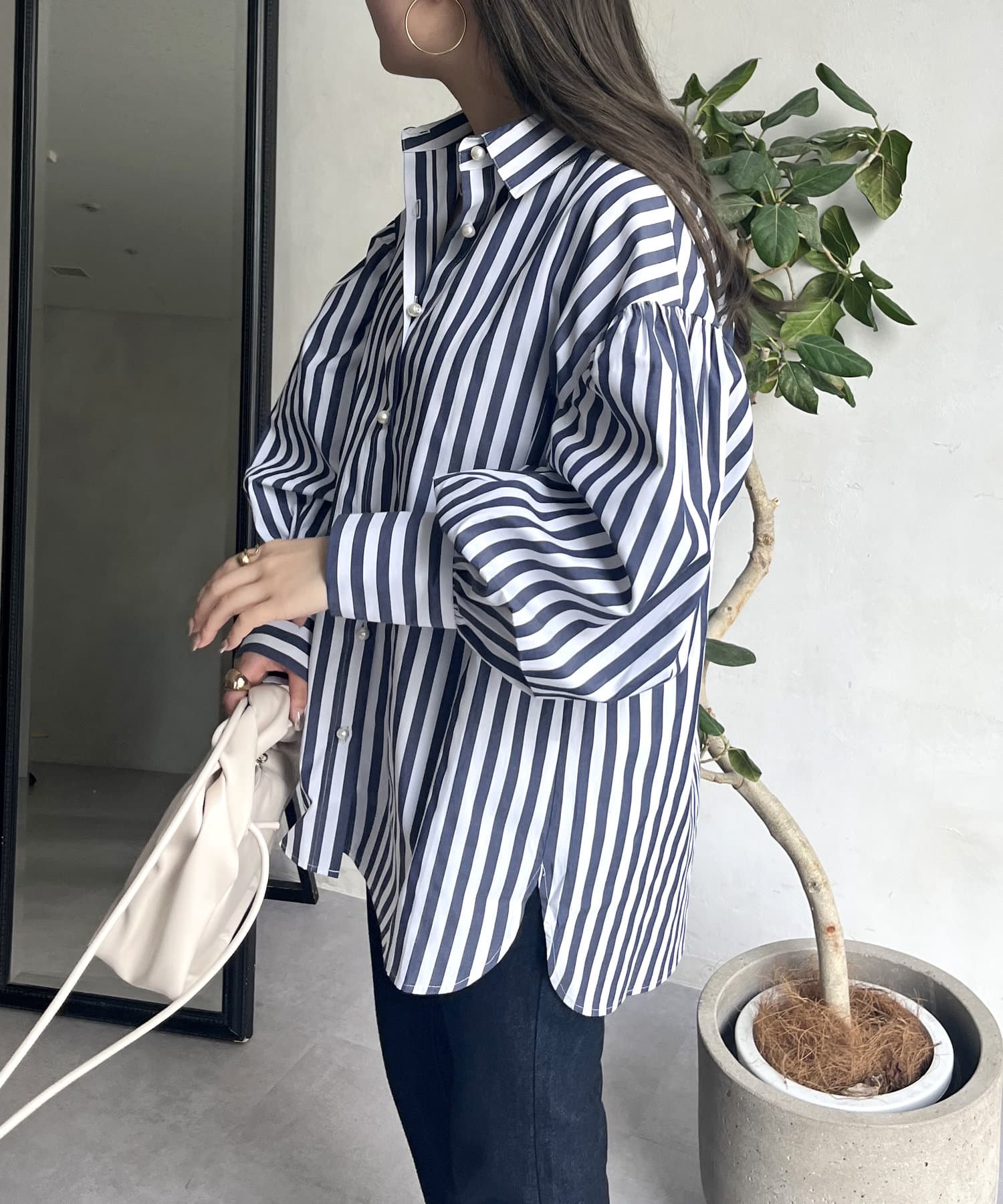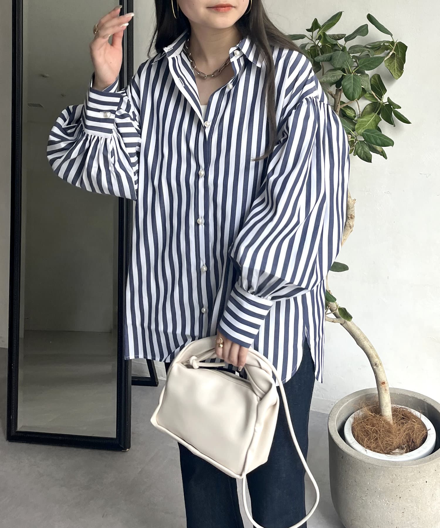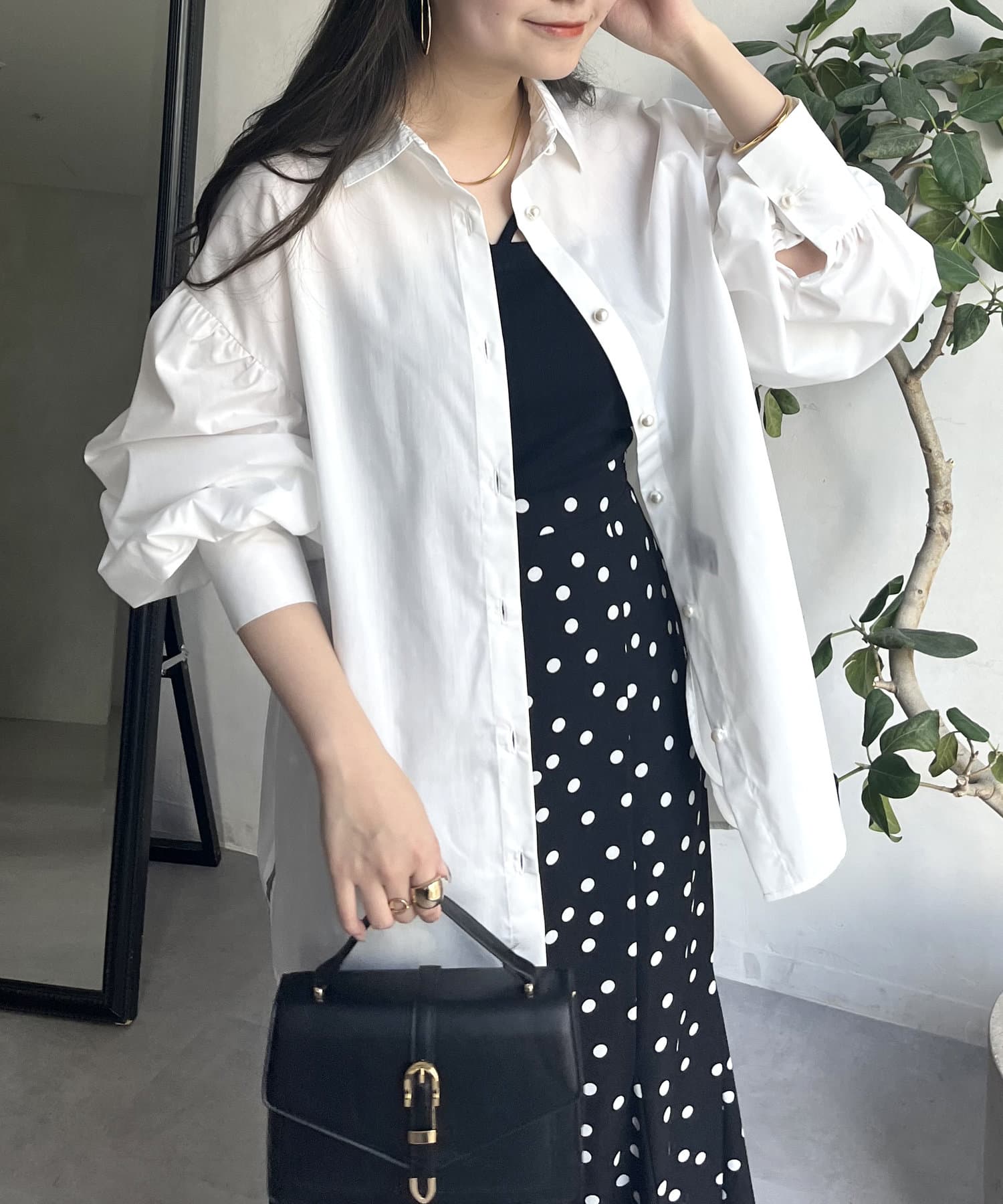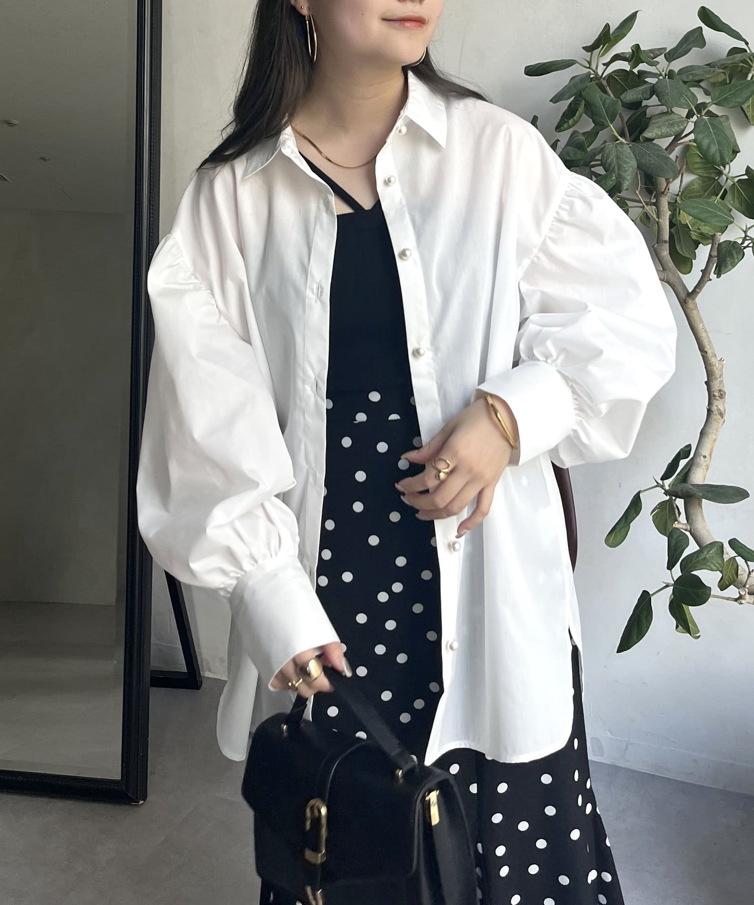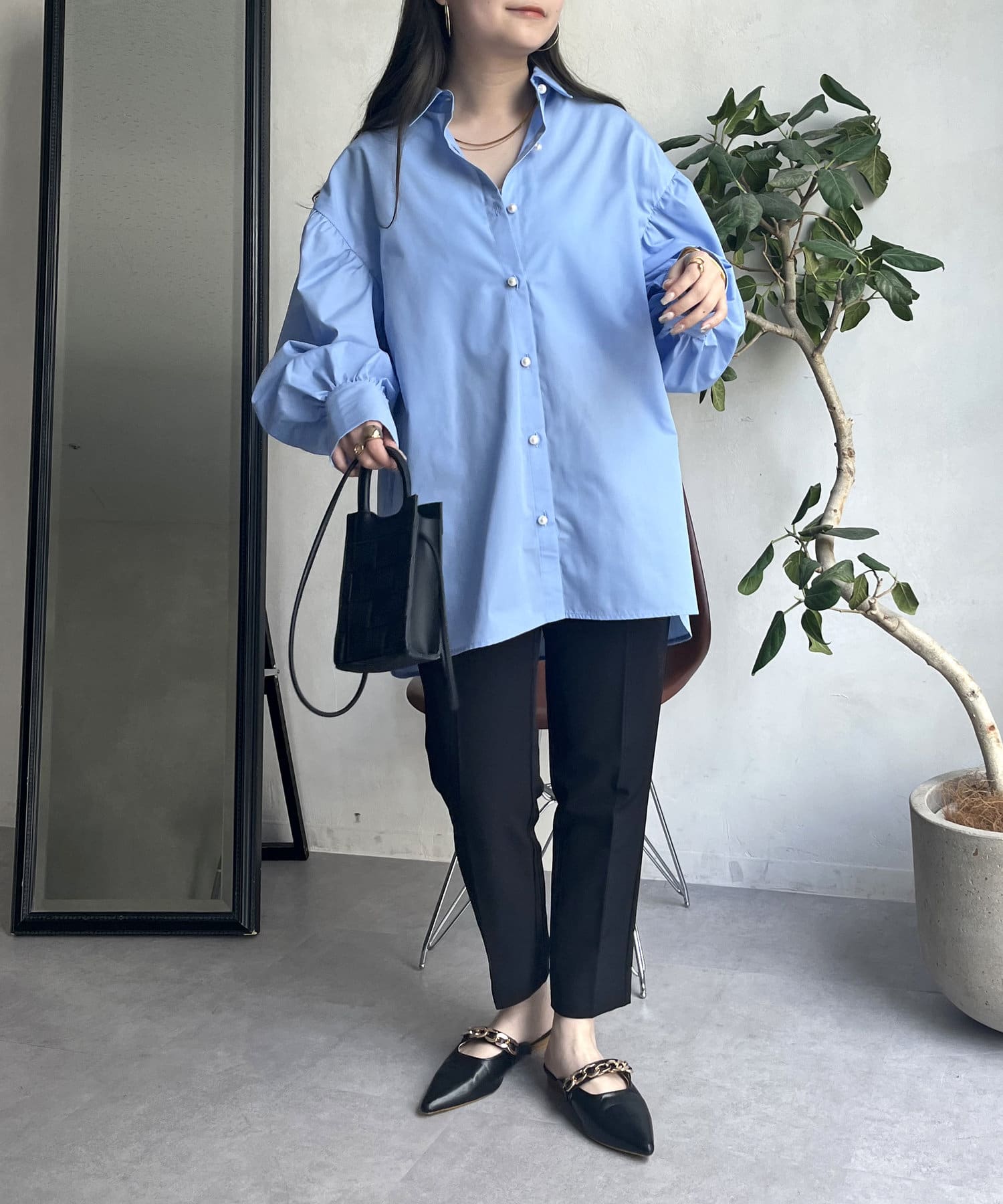 着回し万能パールボタン袖ボリュームシャツ
