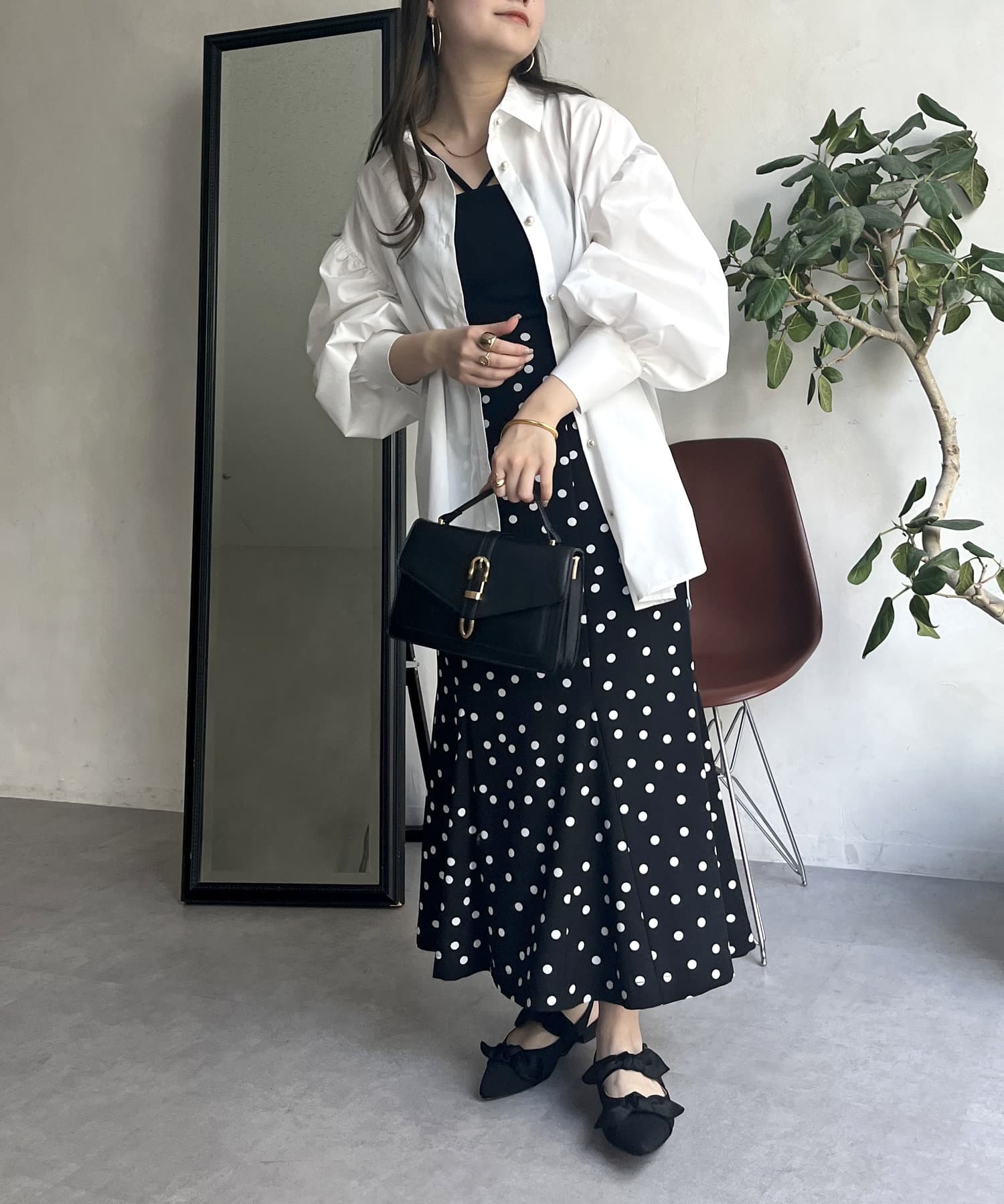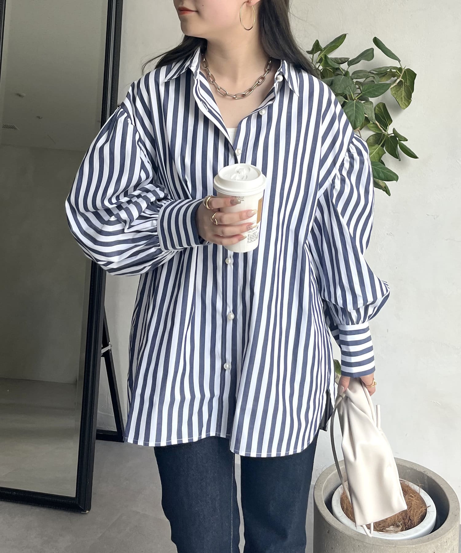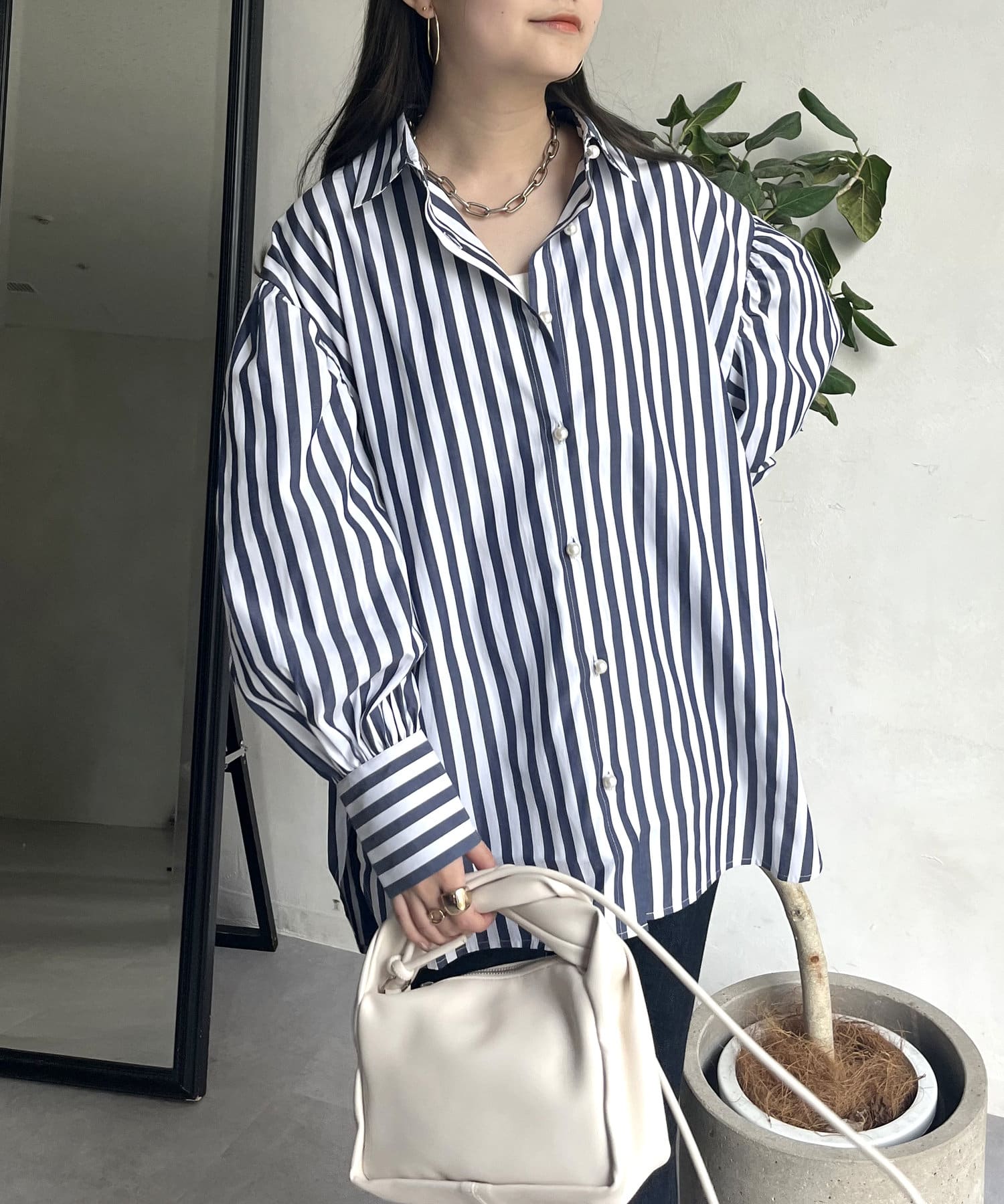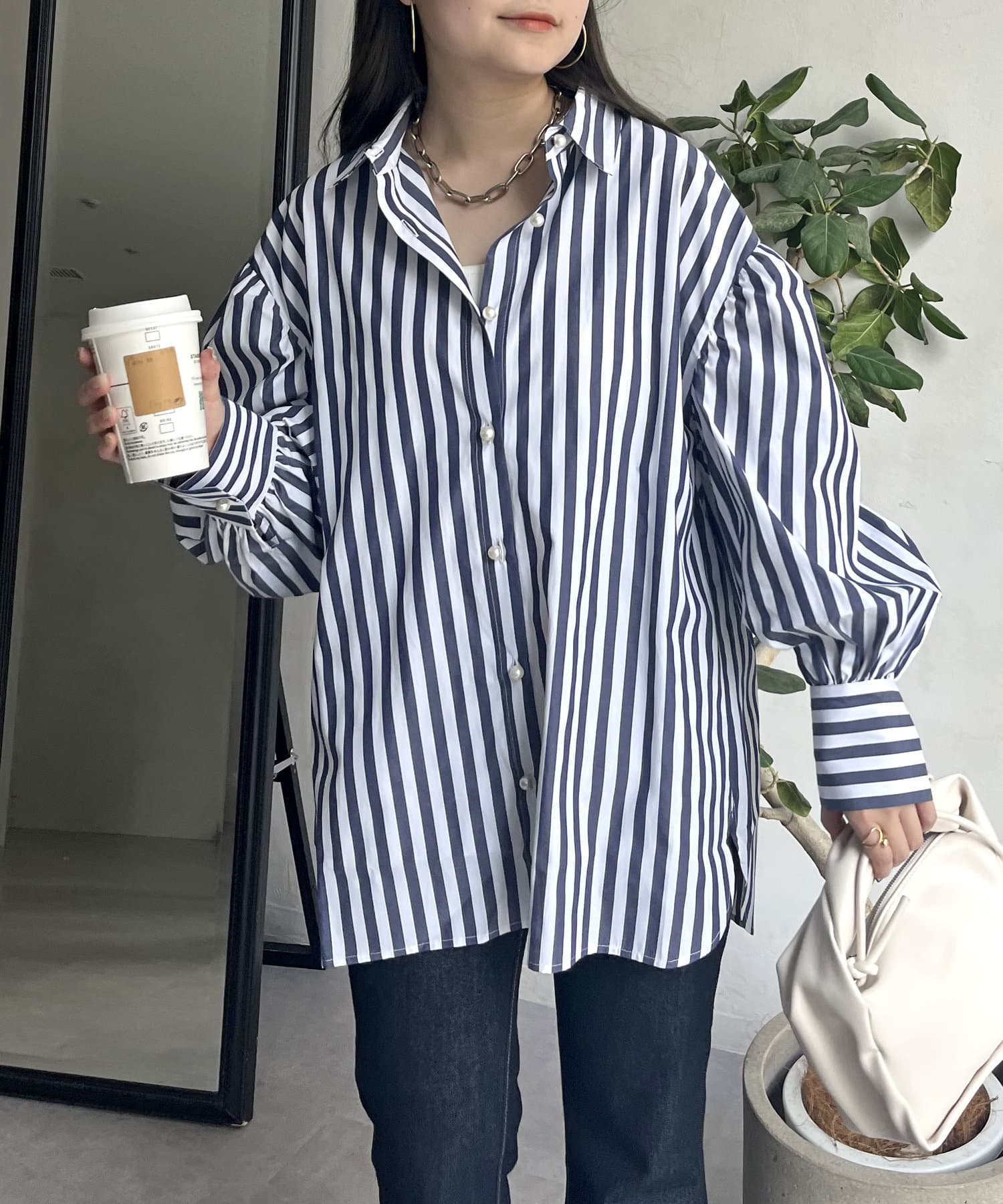 着回し万能パールボタン袖ボリュームシャツ