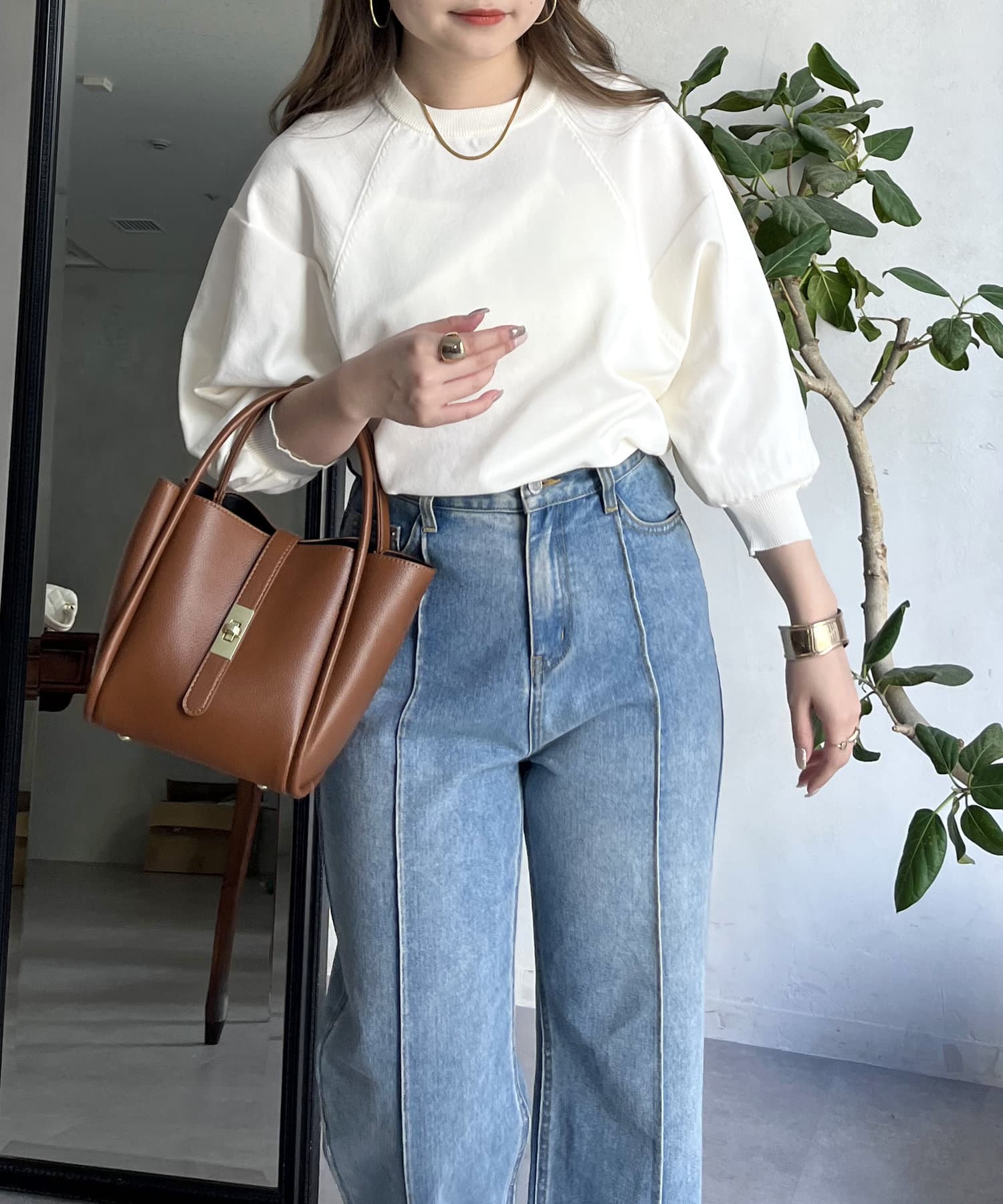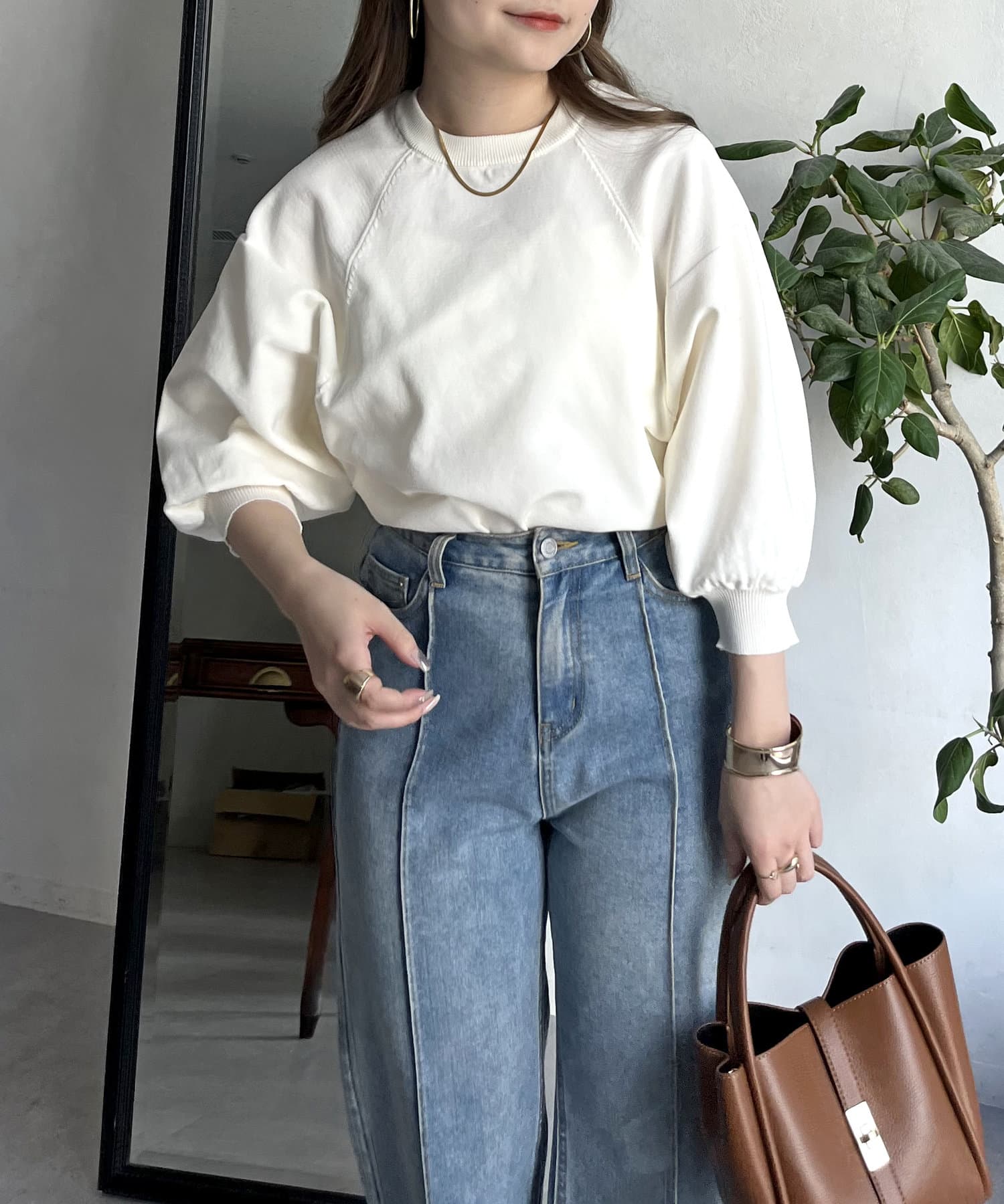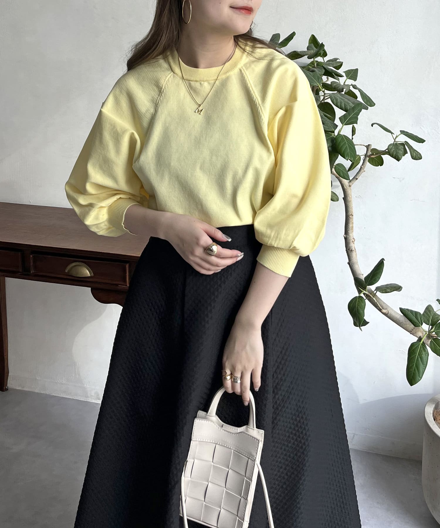 シンプルで着回し万能アイテムラグラン3Dボリュームスリーブニット