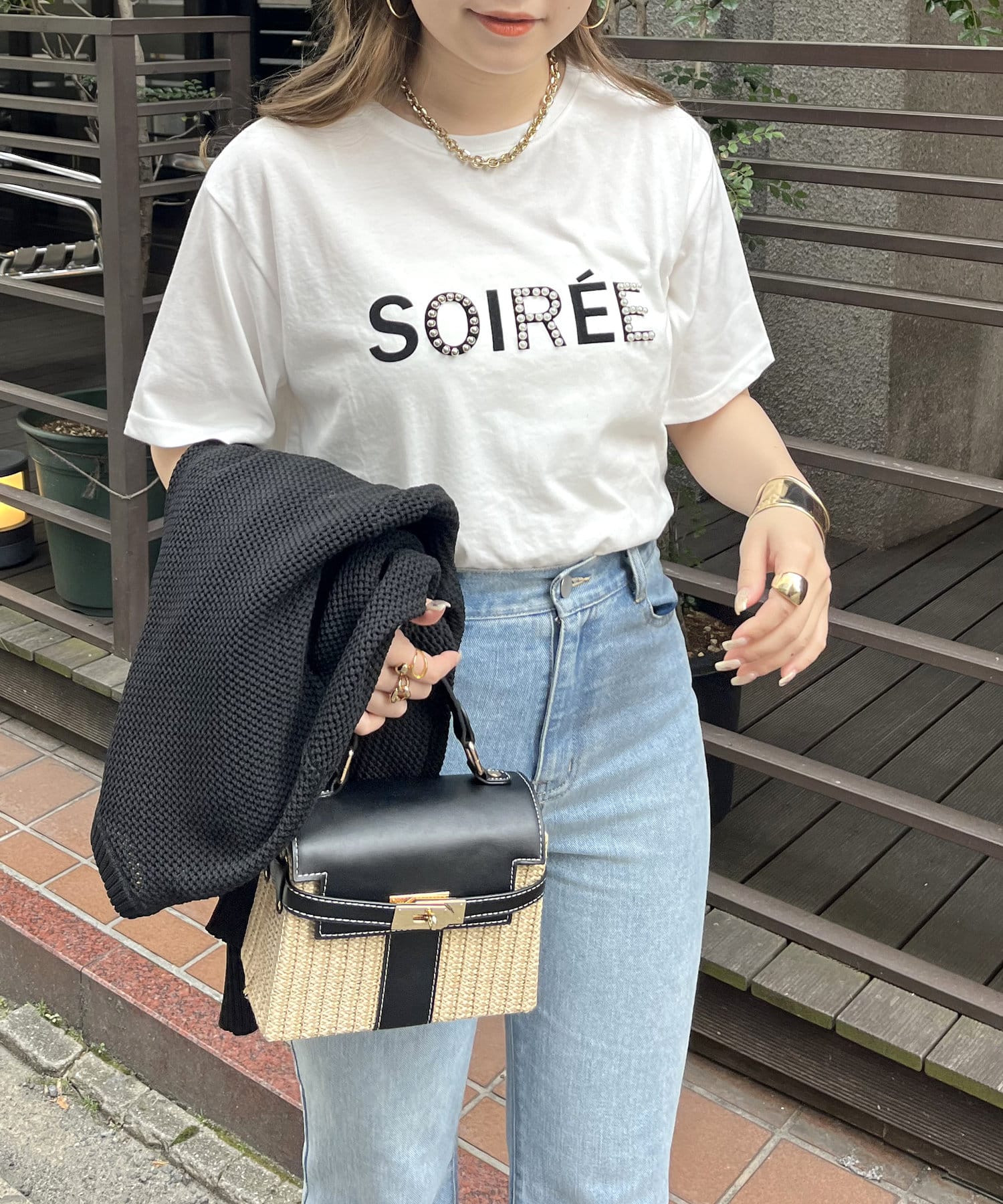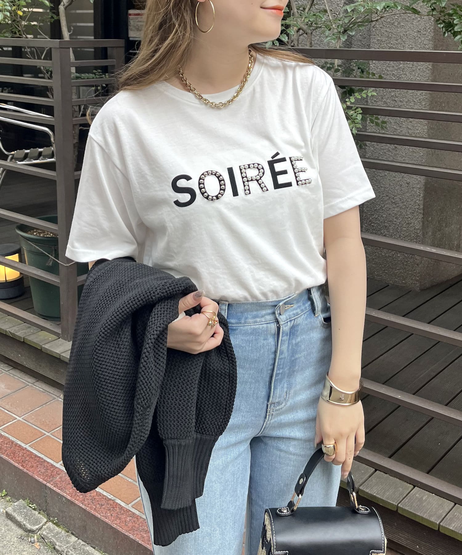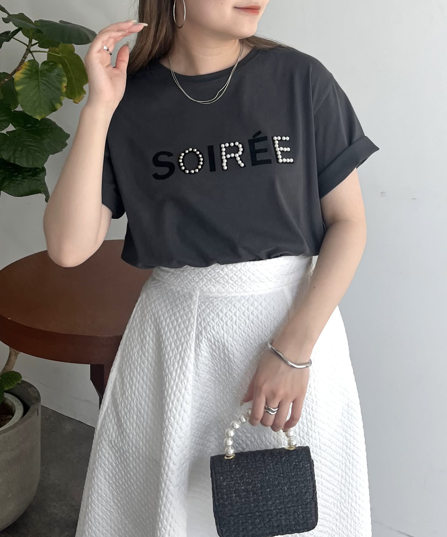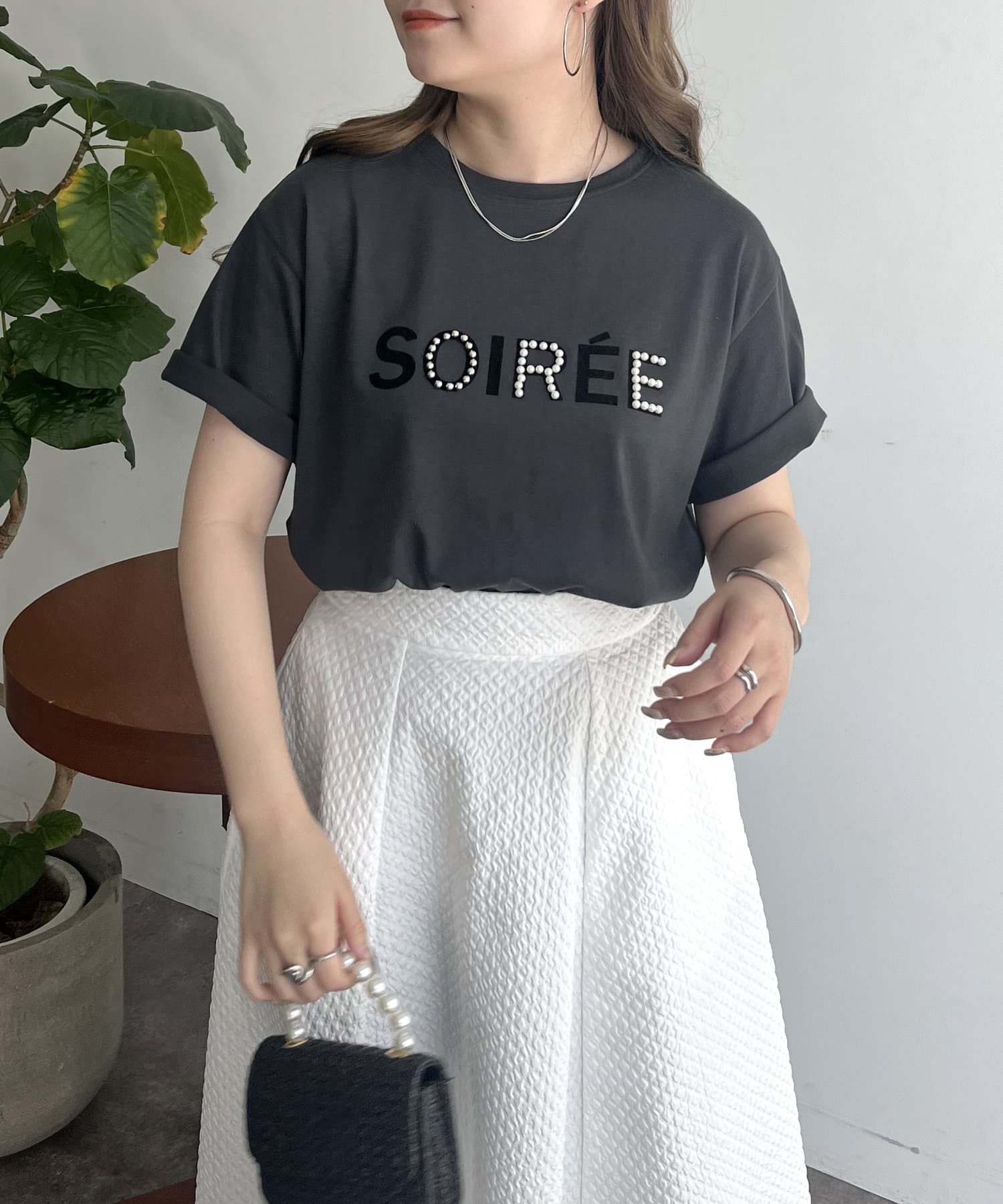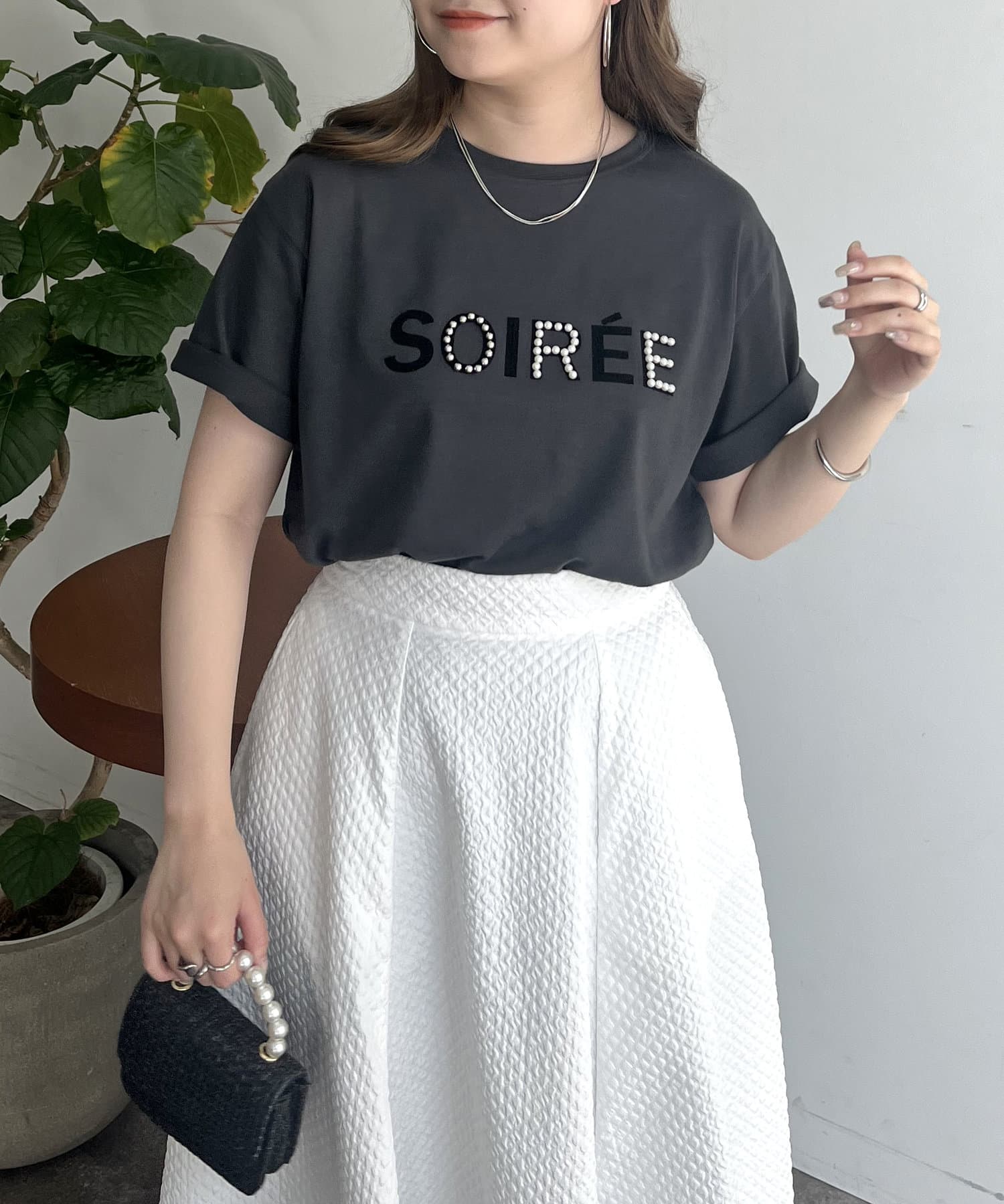 TOP > prose verse > レディース > トップス > Tシャツ/カットソー > パール付きフロッキーロゴTシャツ