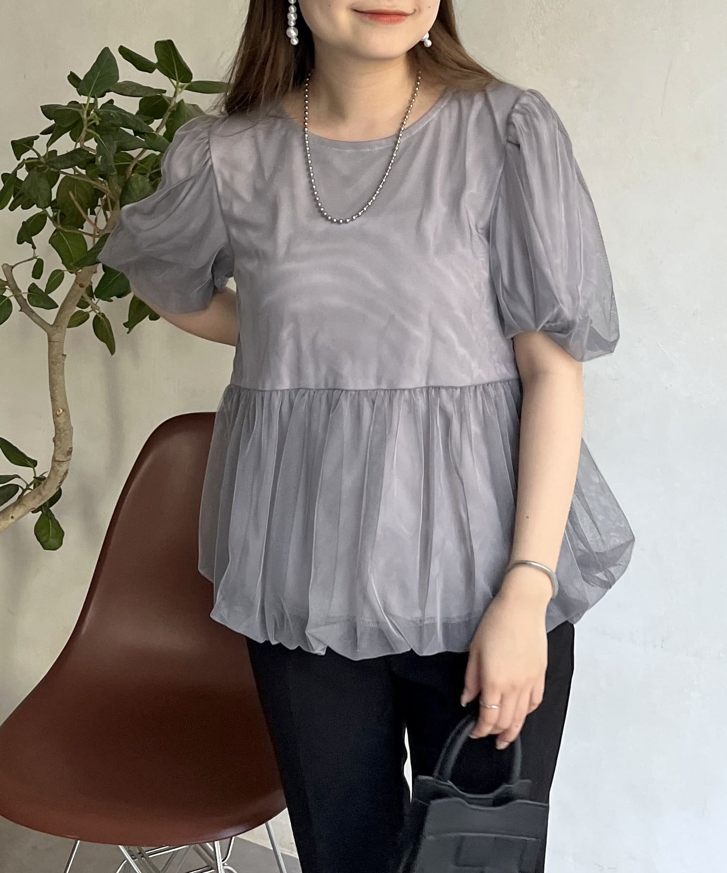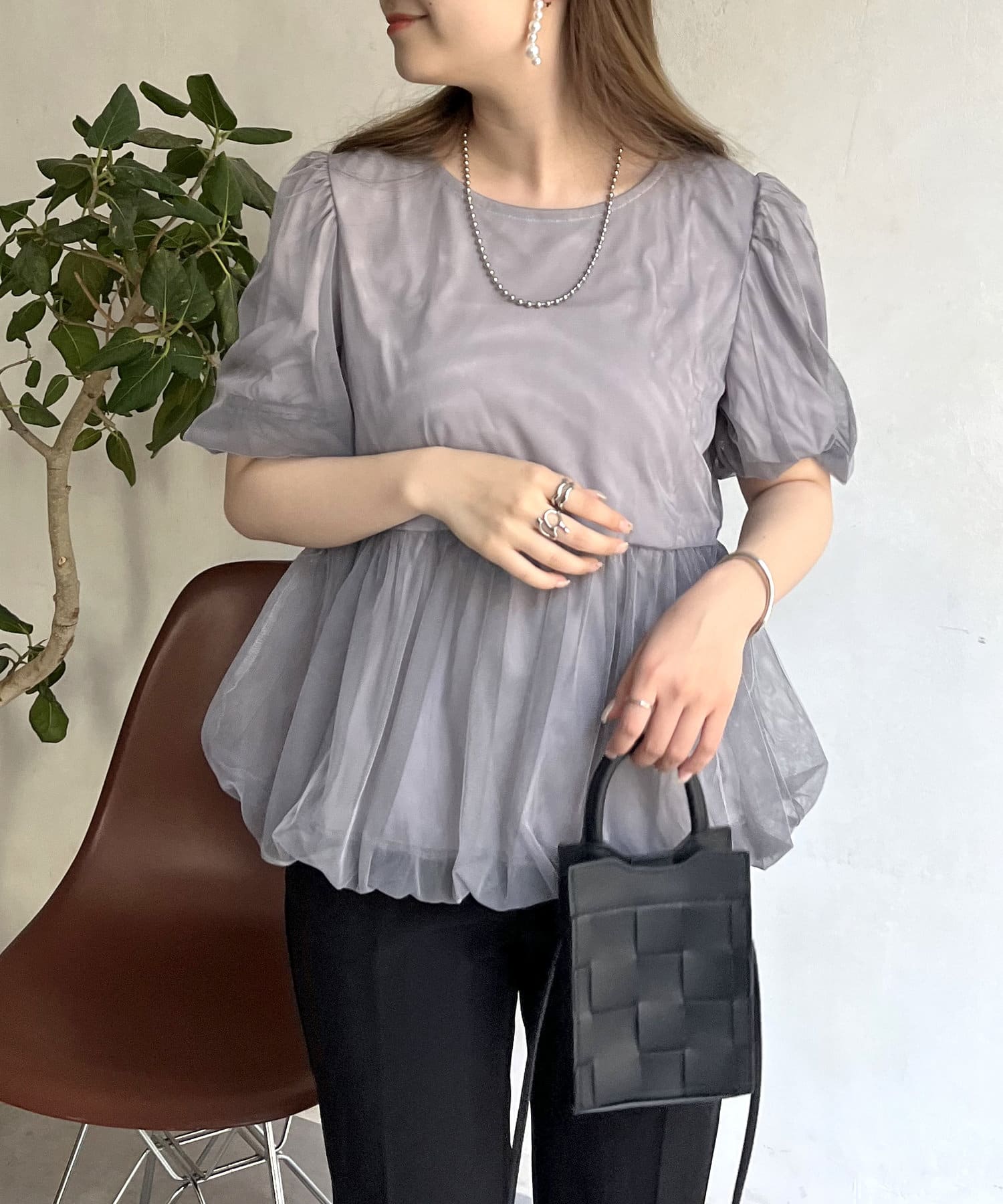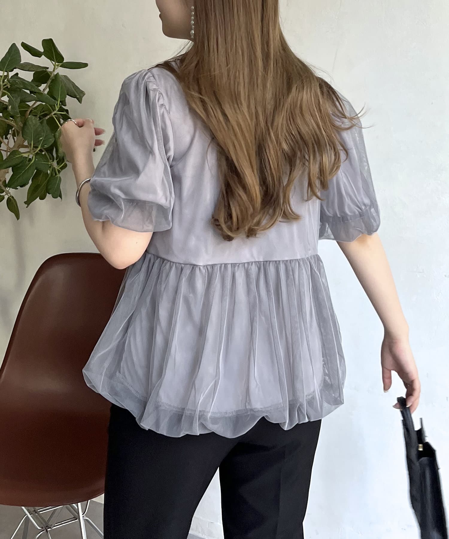 • prose verse(プロズヴェール) チュールレイヤードペプラムブラウス