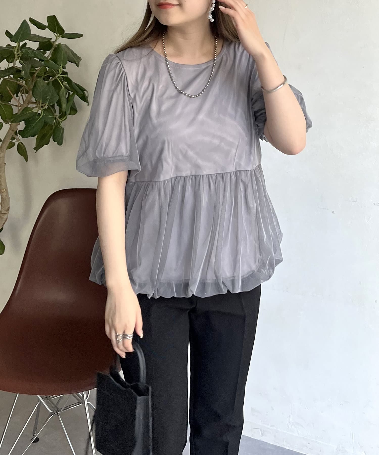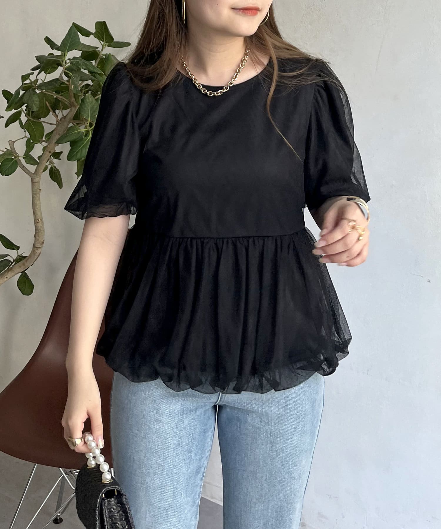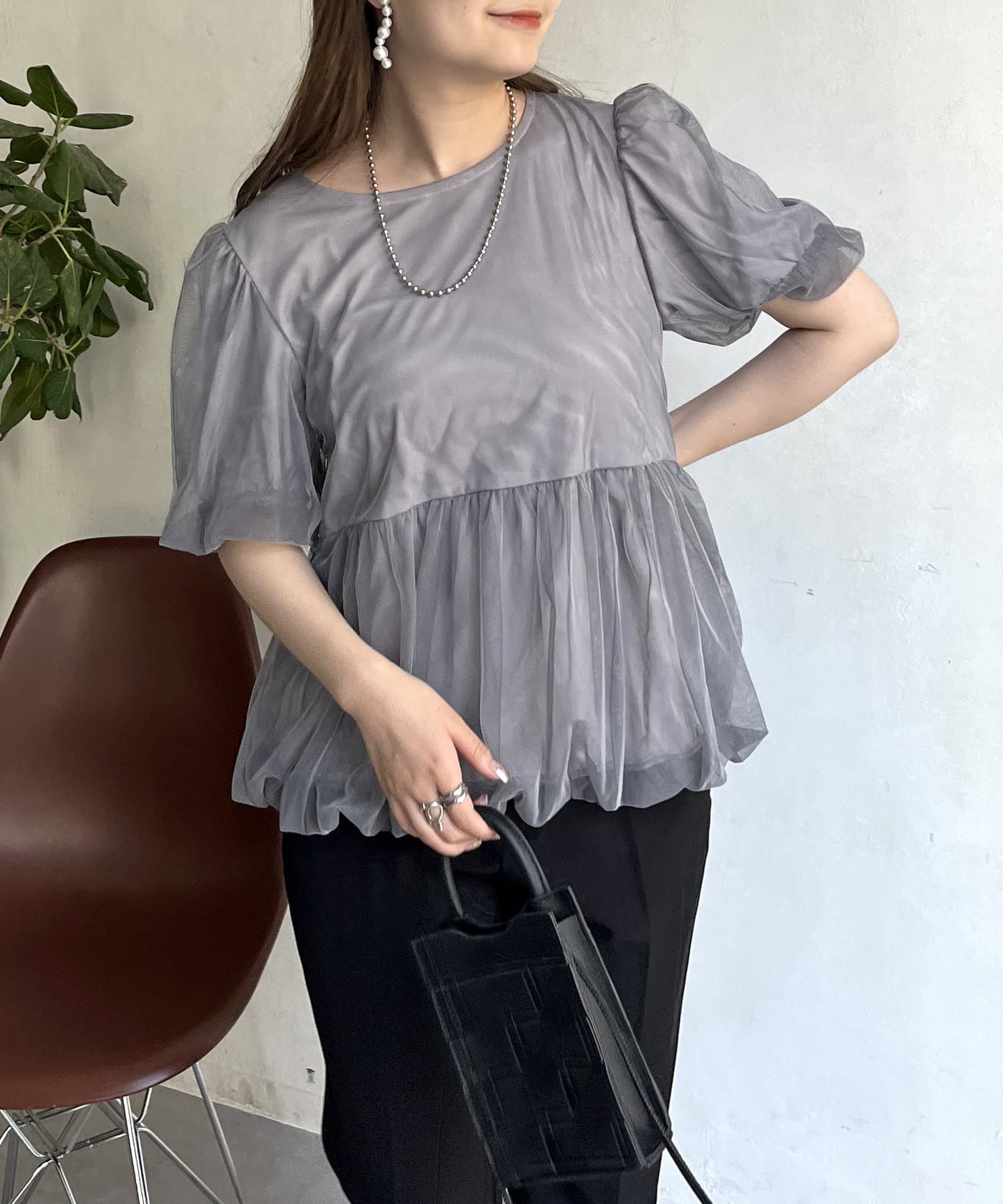 • prose verse(プロズヴェール) チュールレイヤードペプラムブラウス