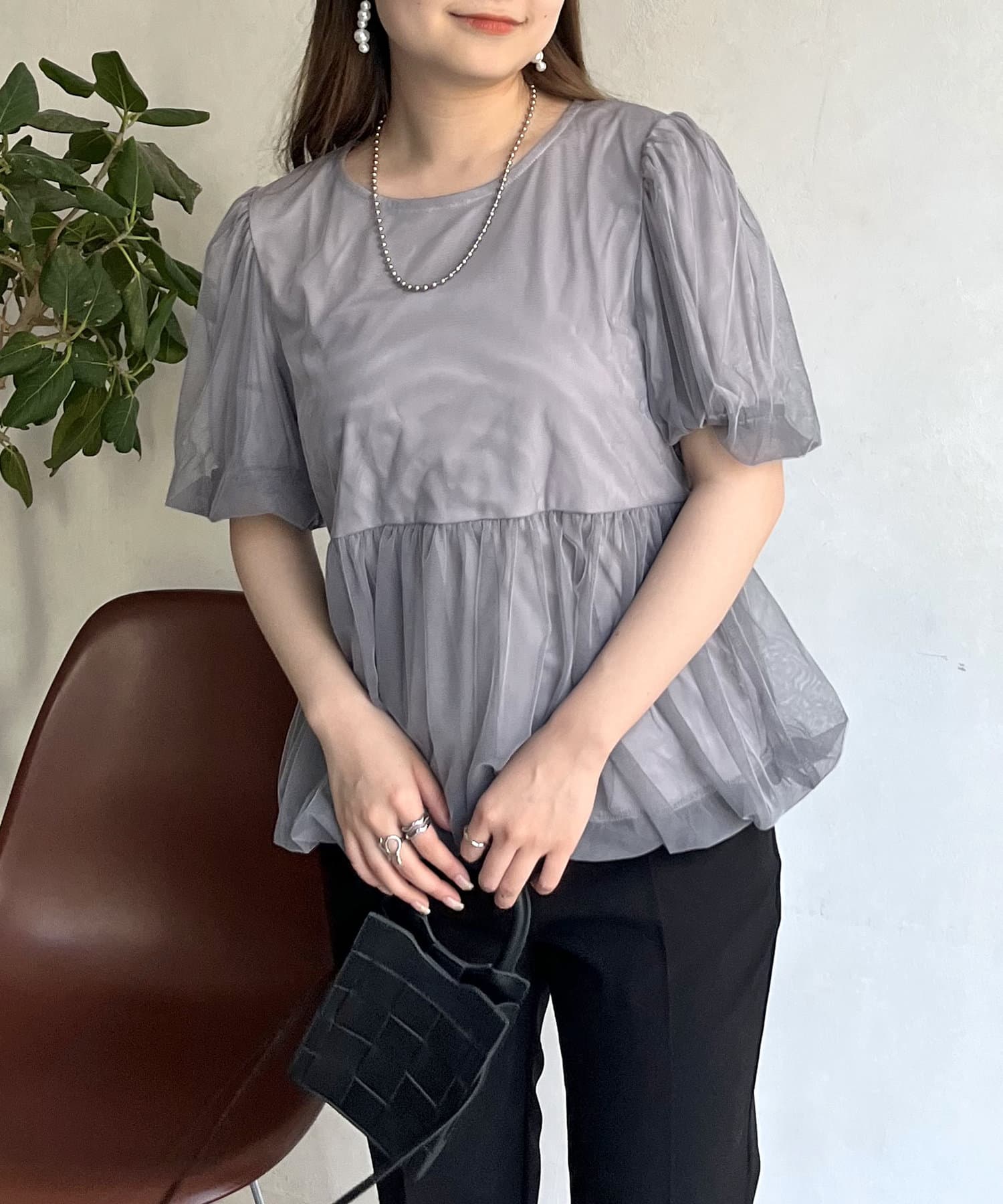 prose verse(プロズヴェール) チュールレイヤードペプラムブラウス