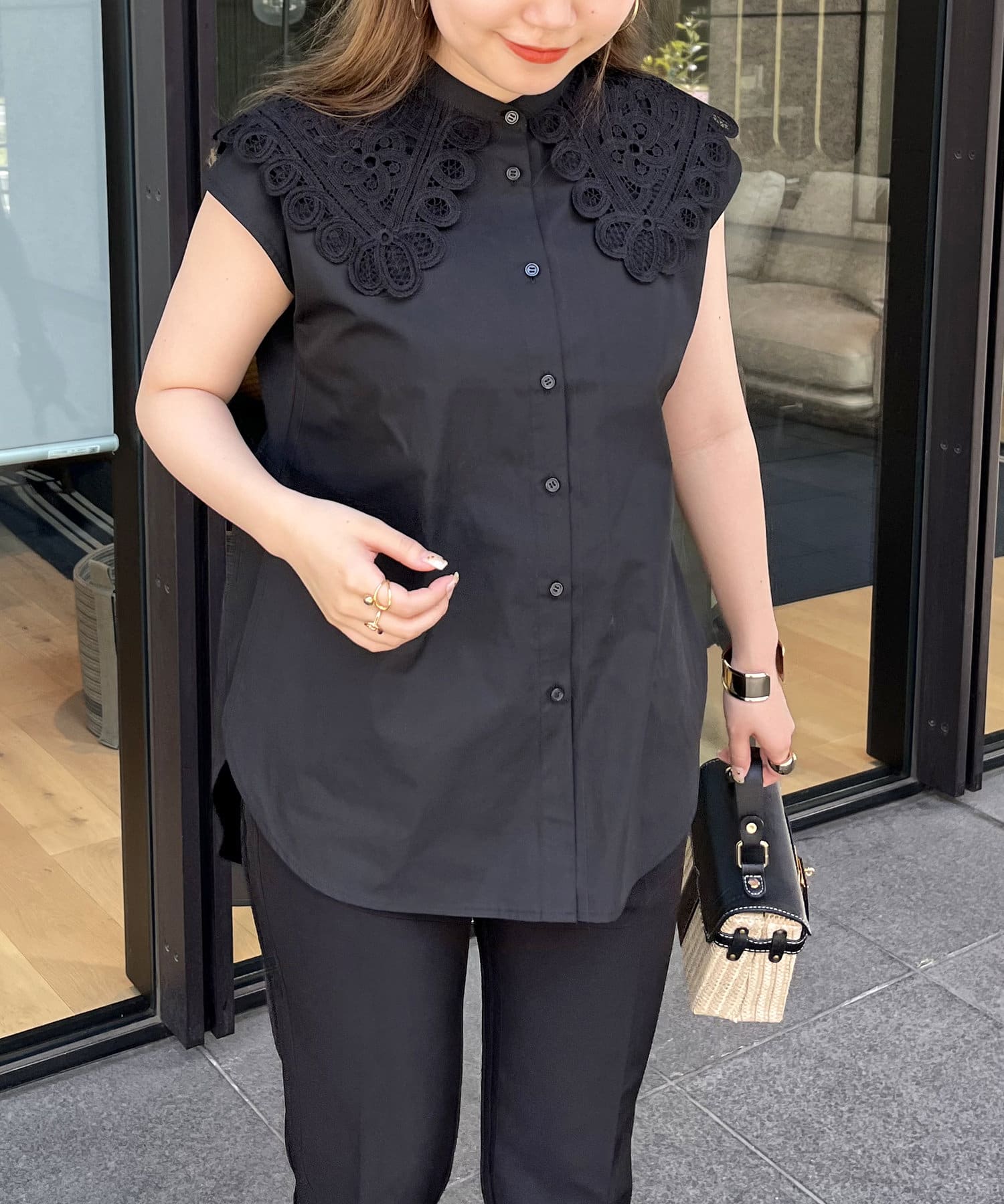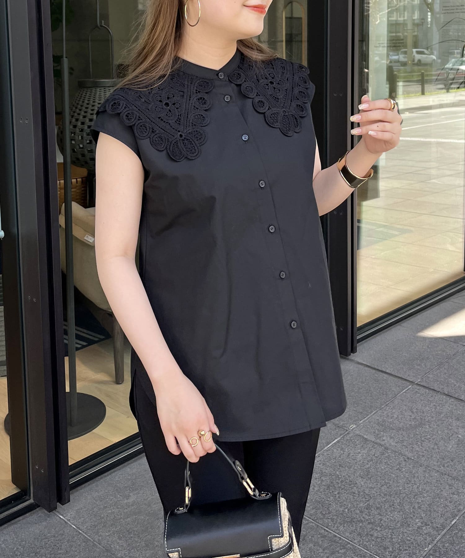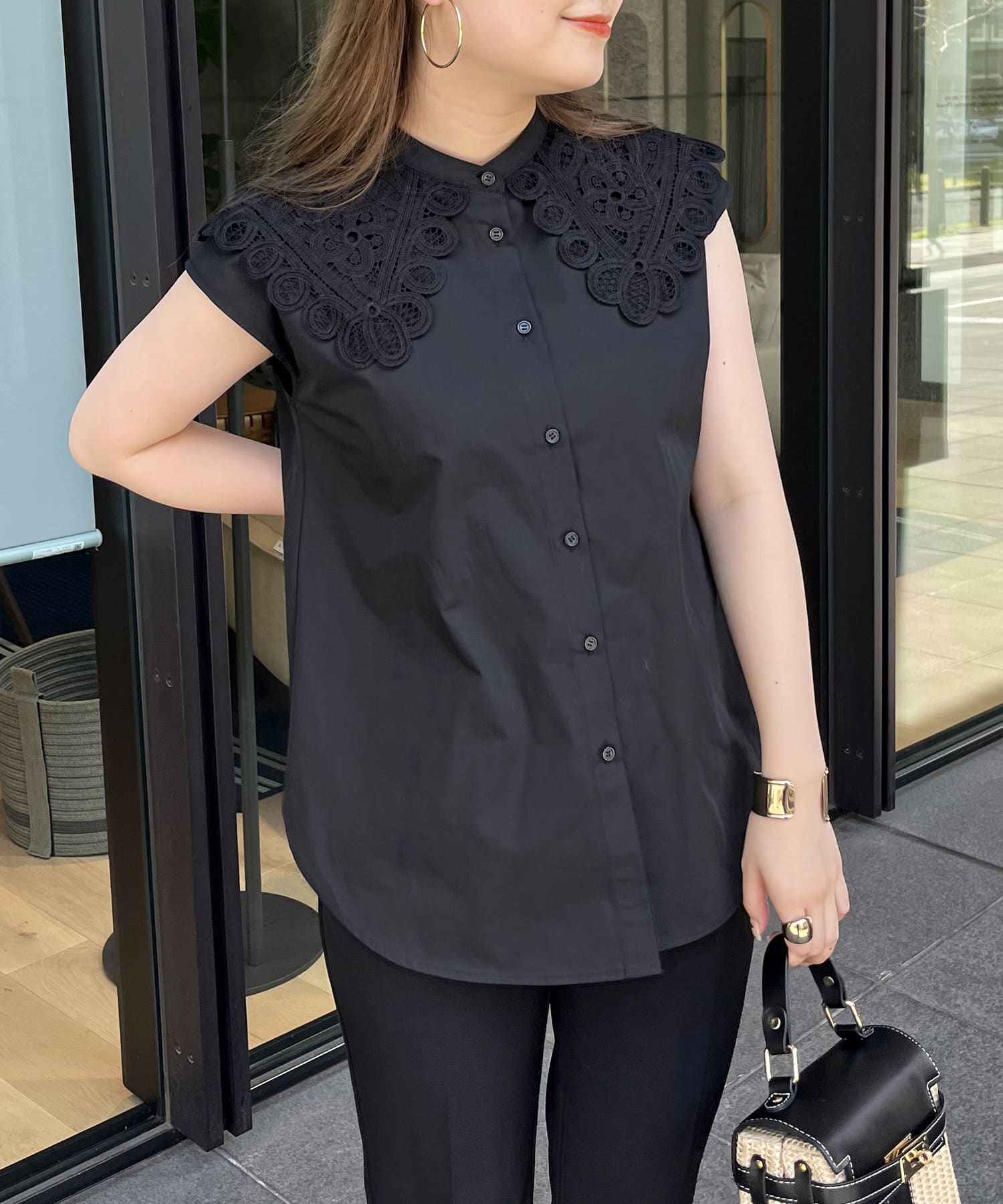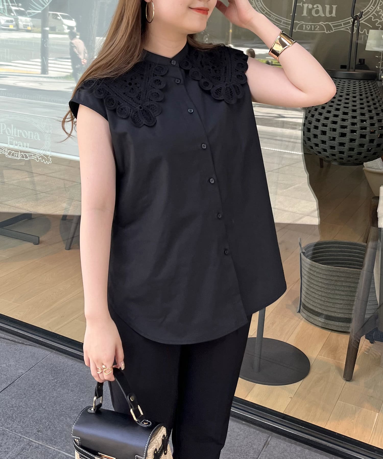 モチーフレース襟が華やかに見せてくれるブラウス