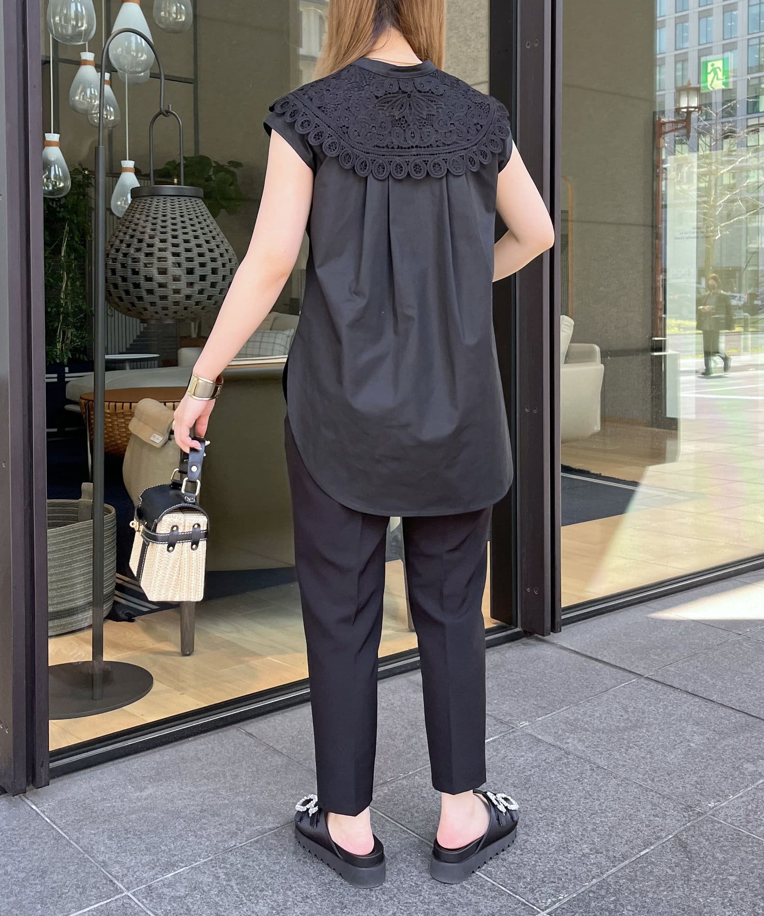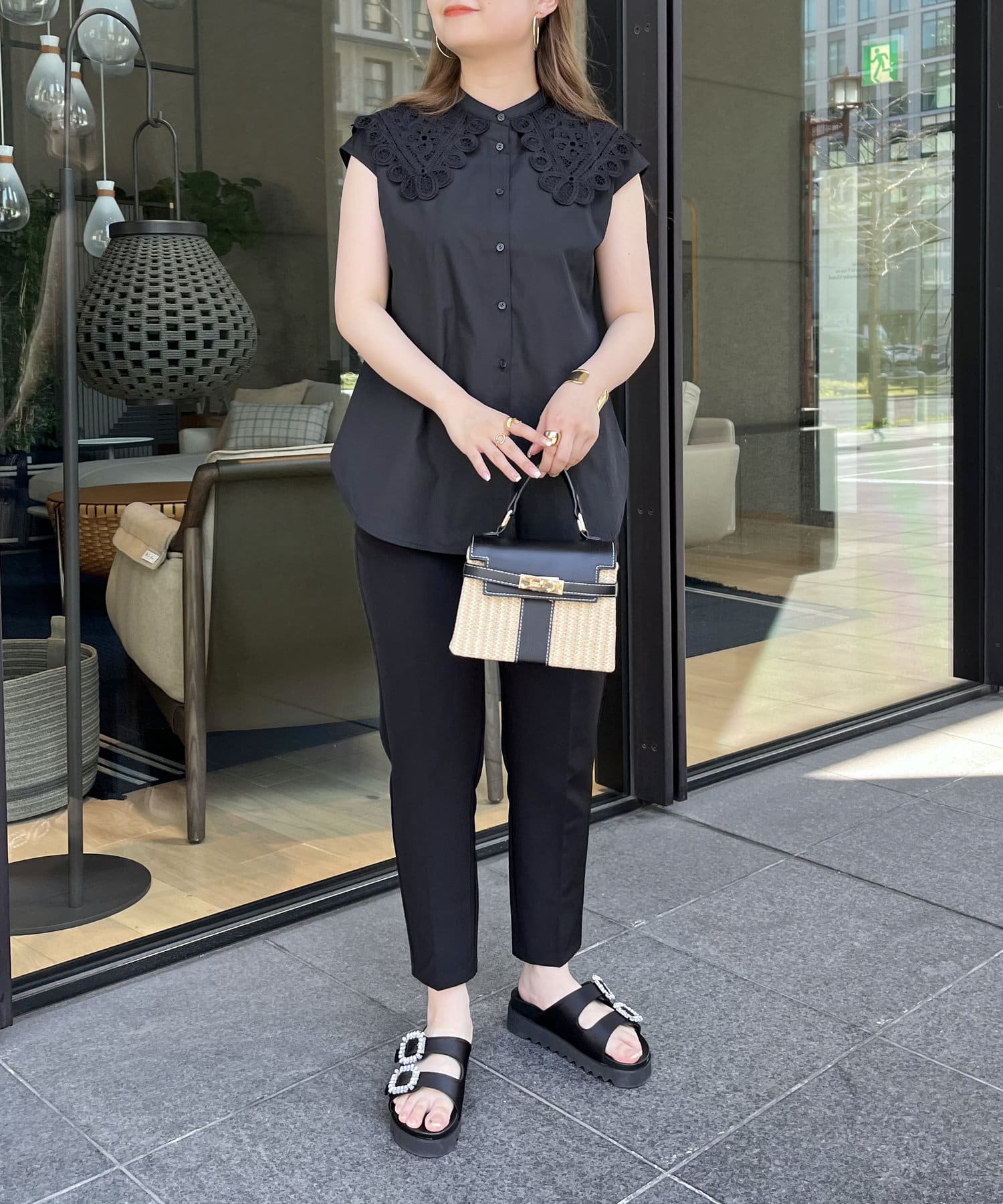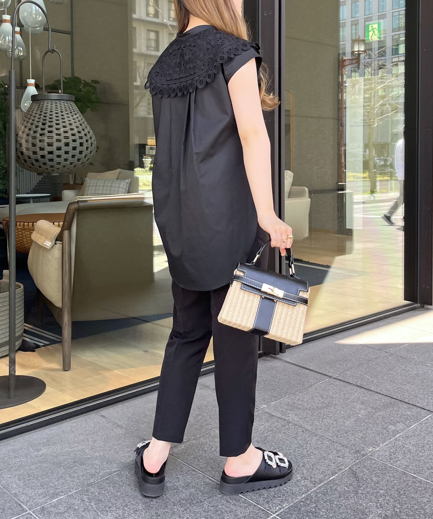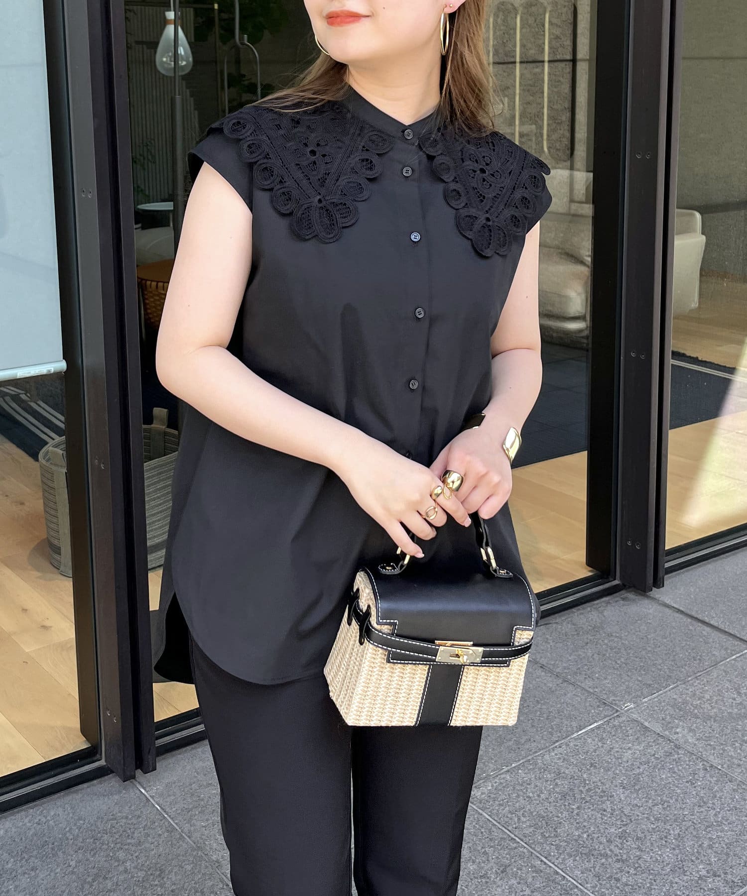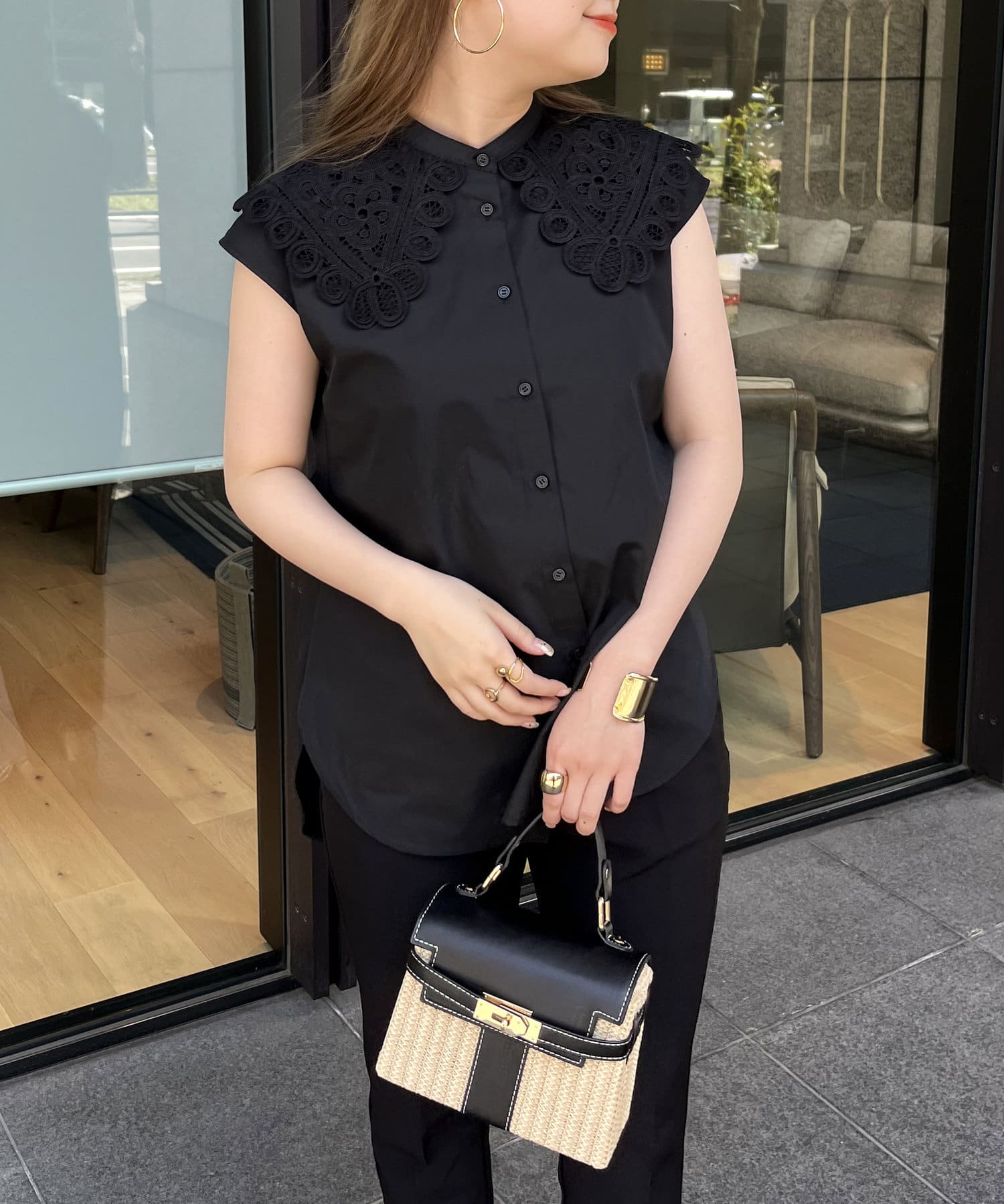 モチーフレース襟が華やかに見せてくれるブラウス
